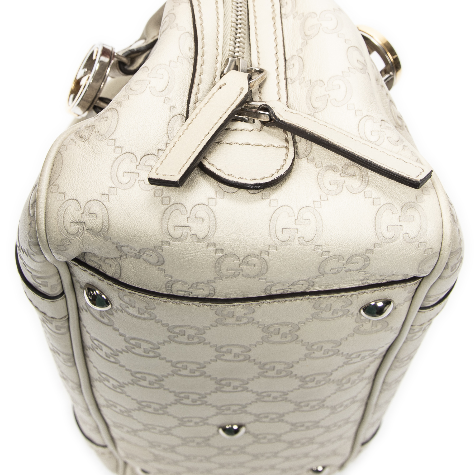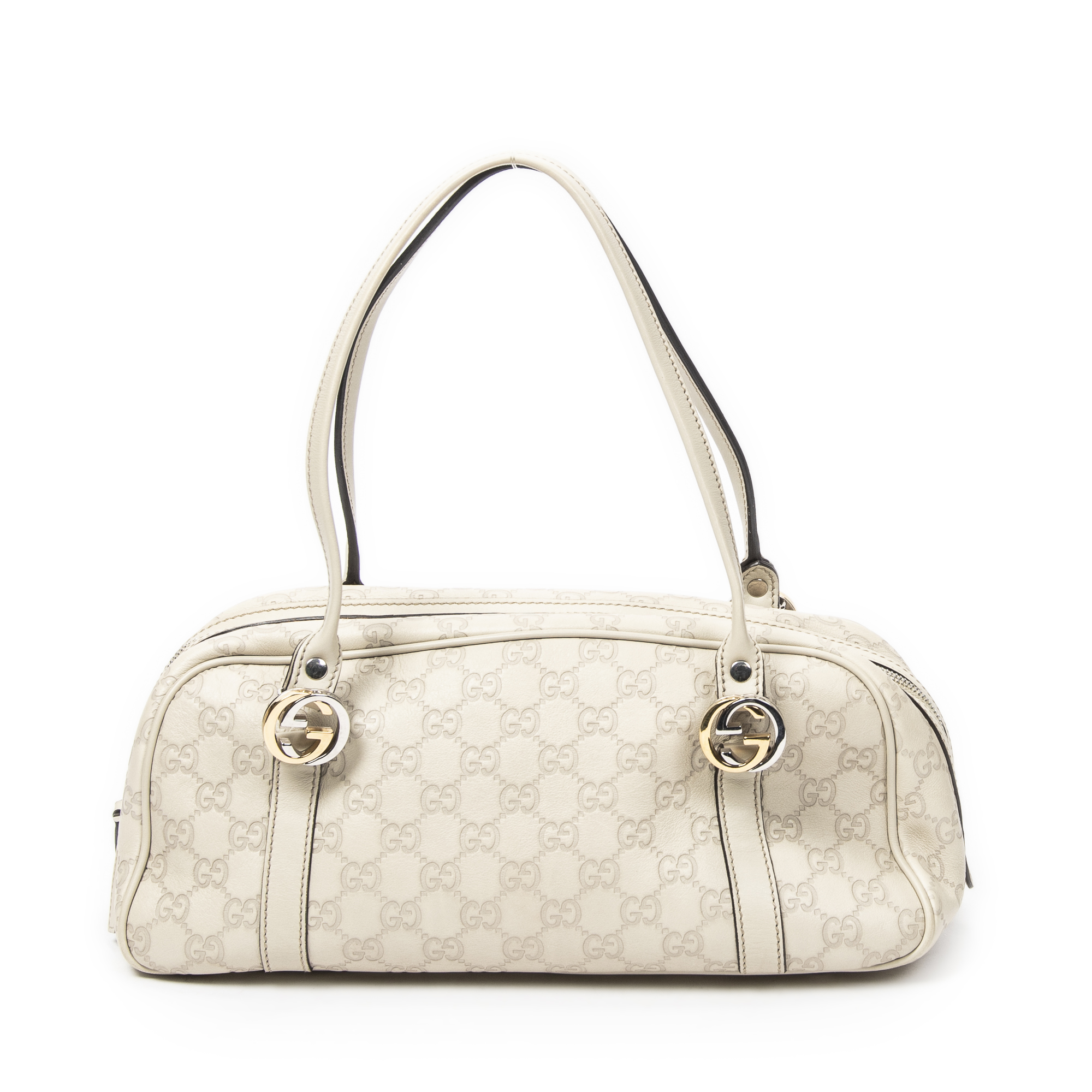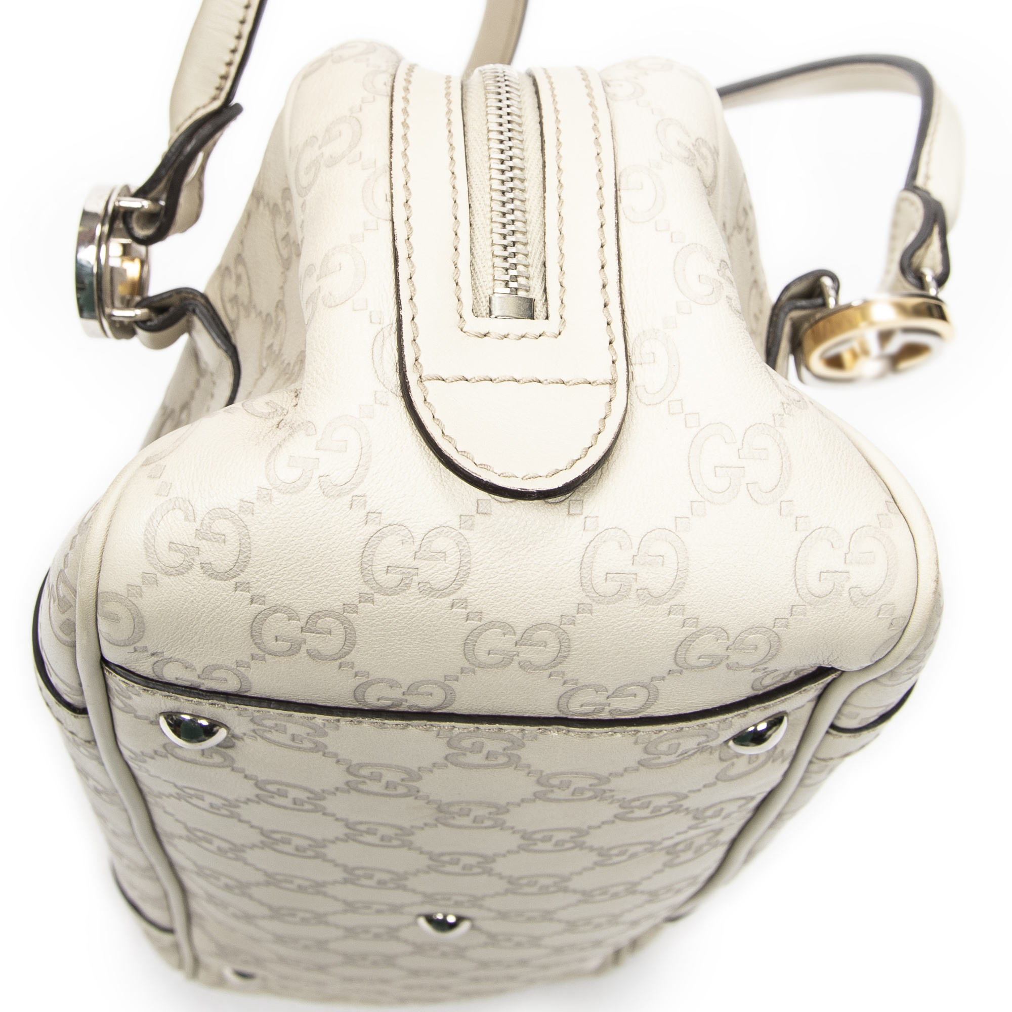 Gucci Shoulder Bag Twins Boston in Ivory Guccissima Leather and Silver/Gold hardware. The product is in Excellent Condition (A).