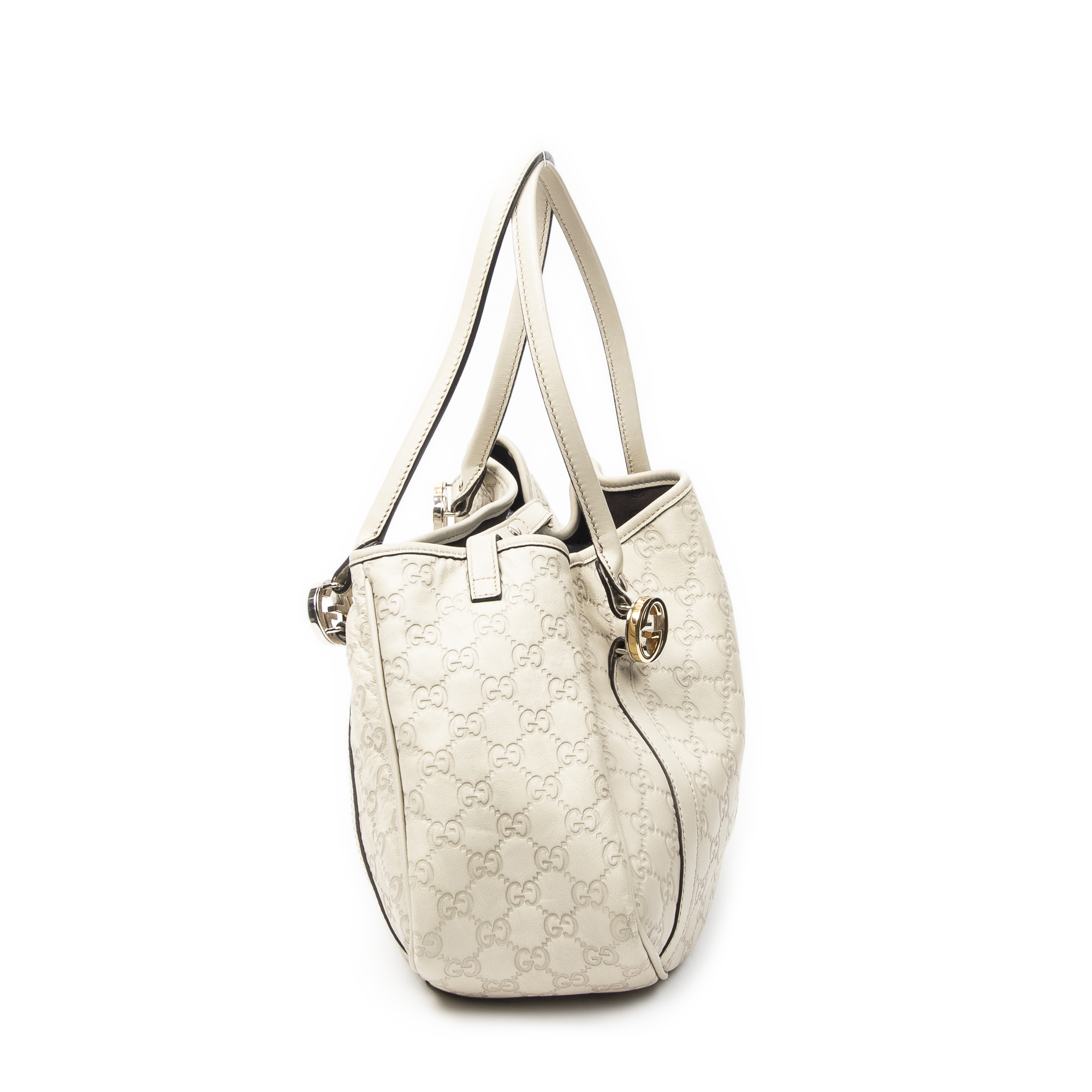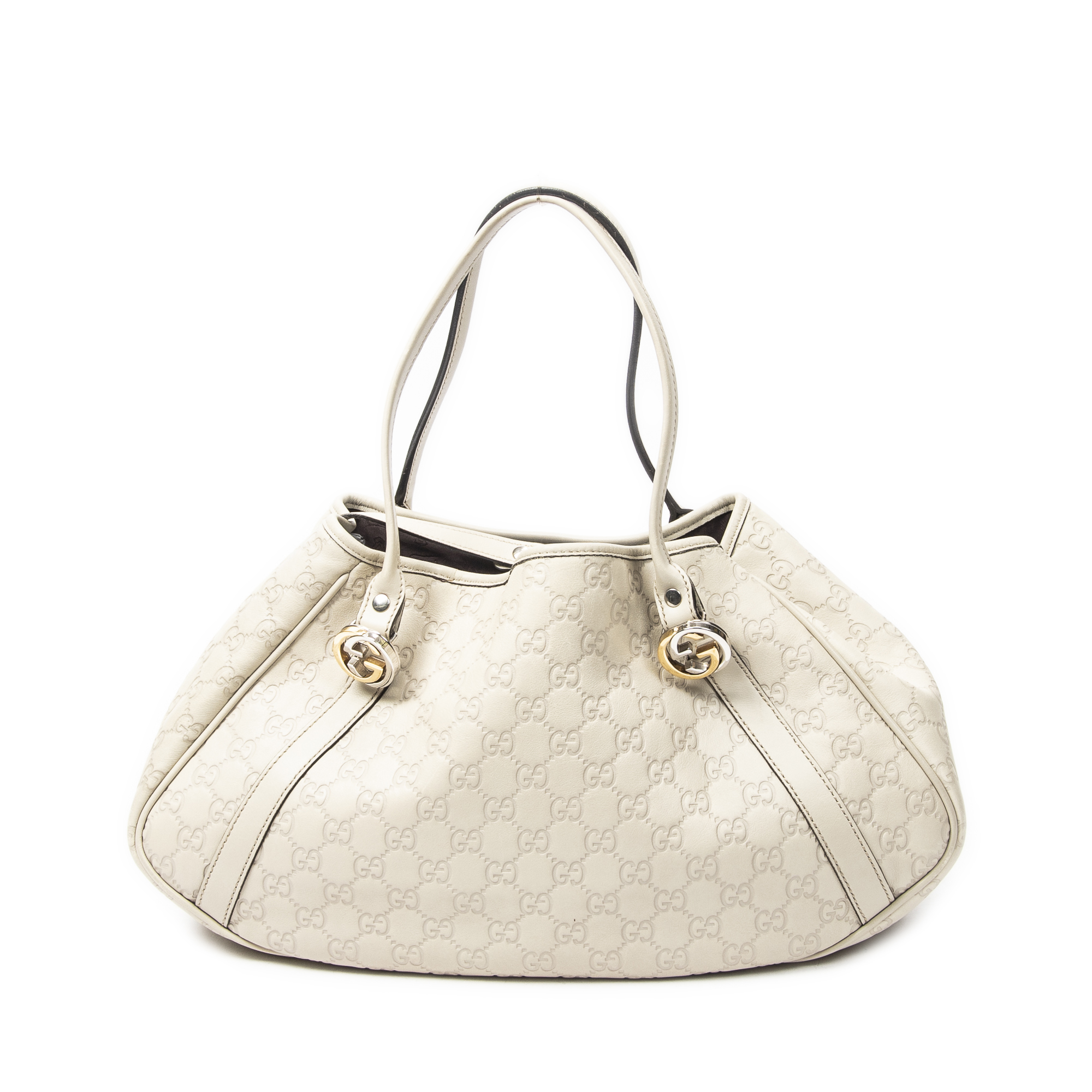 Gucci Shoulder Bag Twins Tote in Ivory Guccissima Leather and Gold/Silver hardware. The product is in Perfect Condition (AA).
