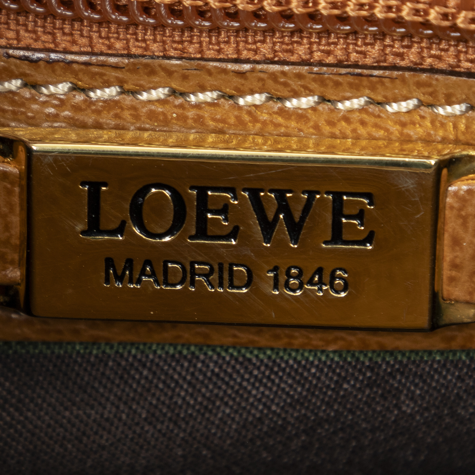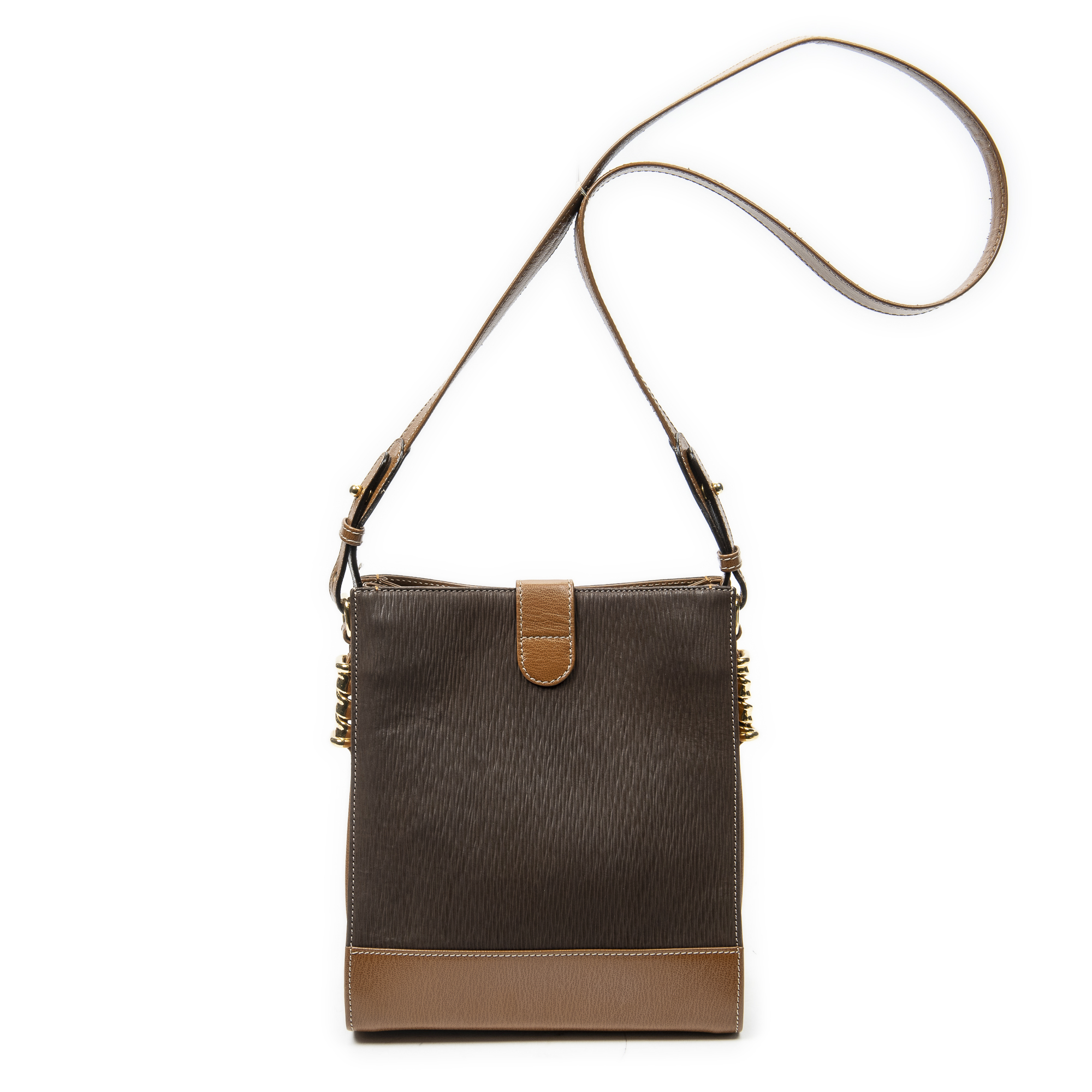 Loewe Shoulder Bag Velazquez Twist Crossbody in Brown Textured Leather and Gold hardware. The product is in Excellent Condition (A).