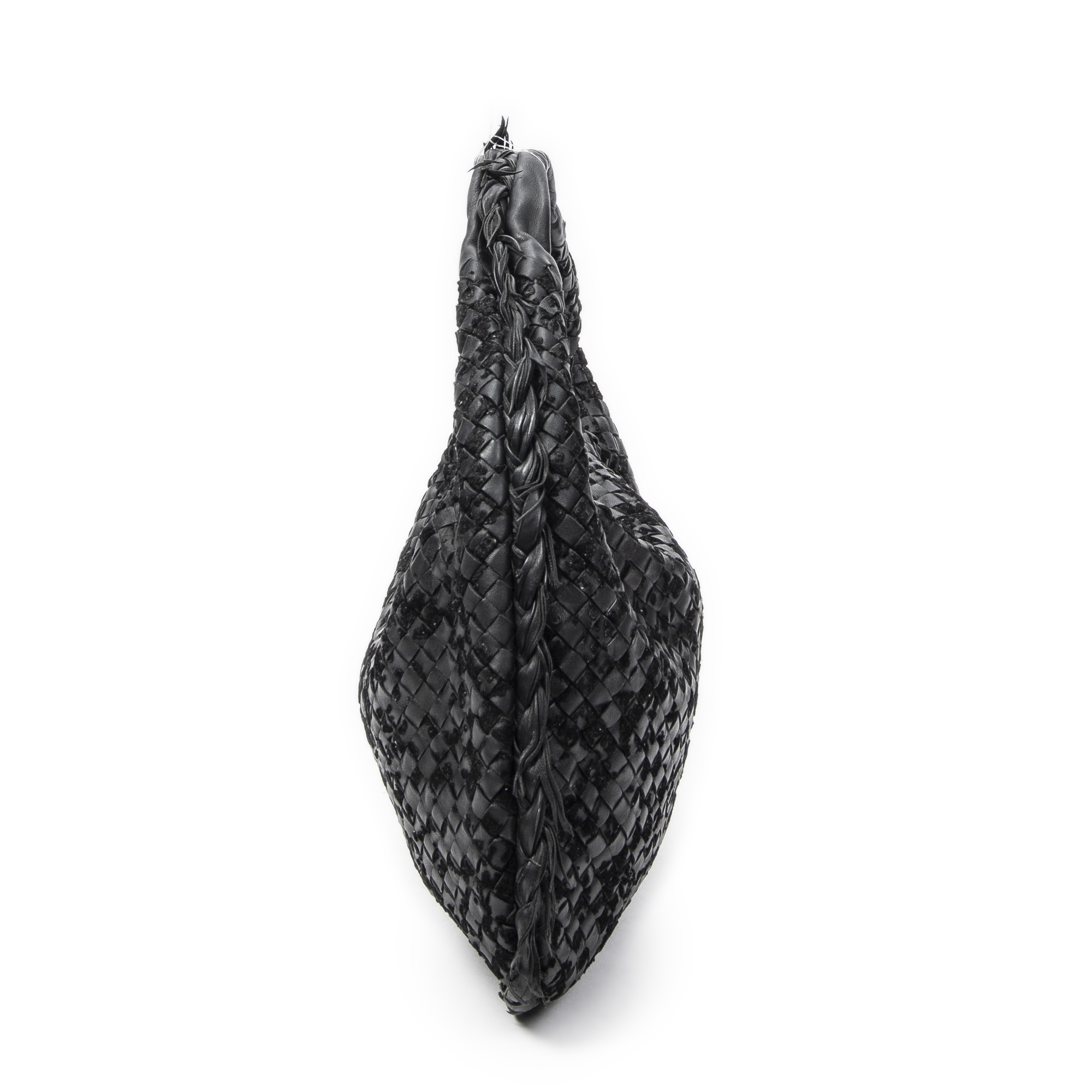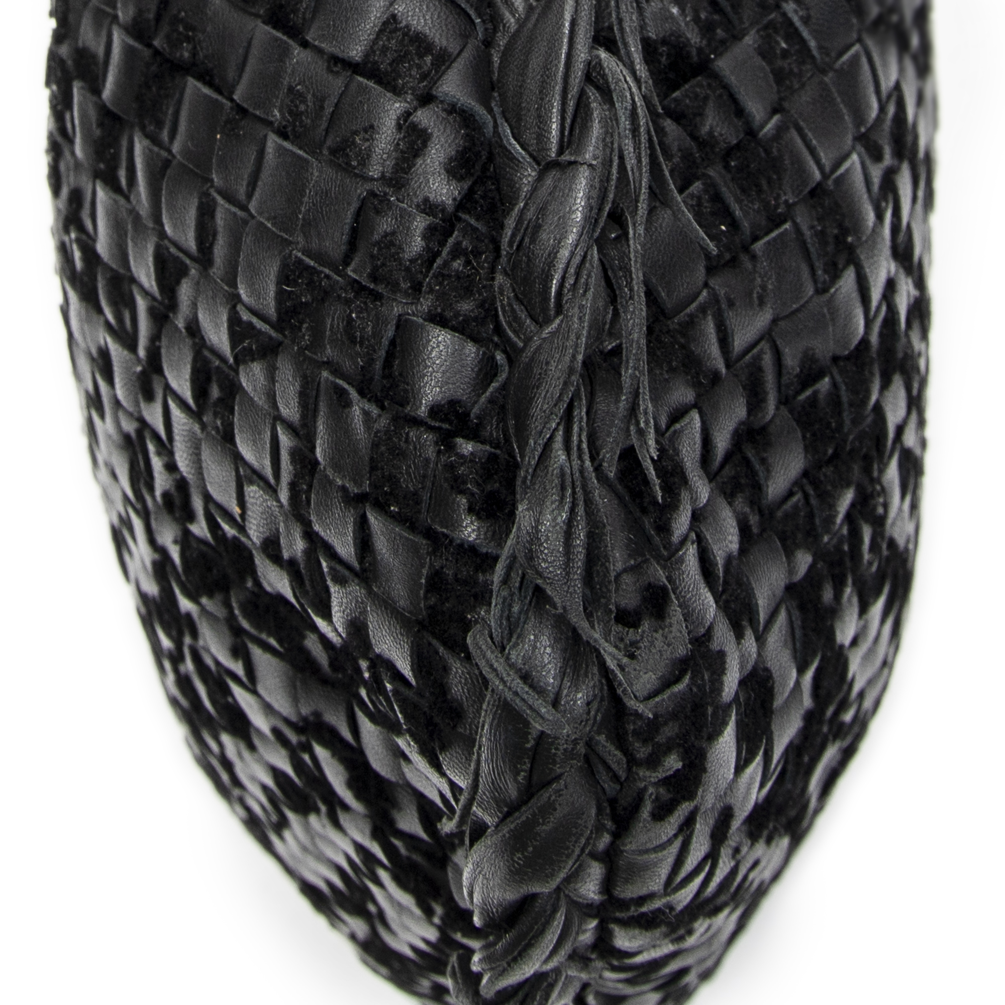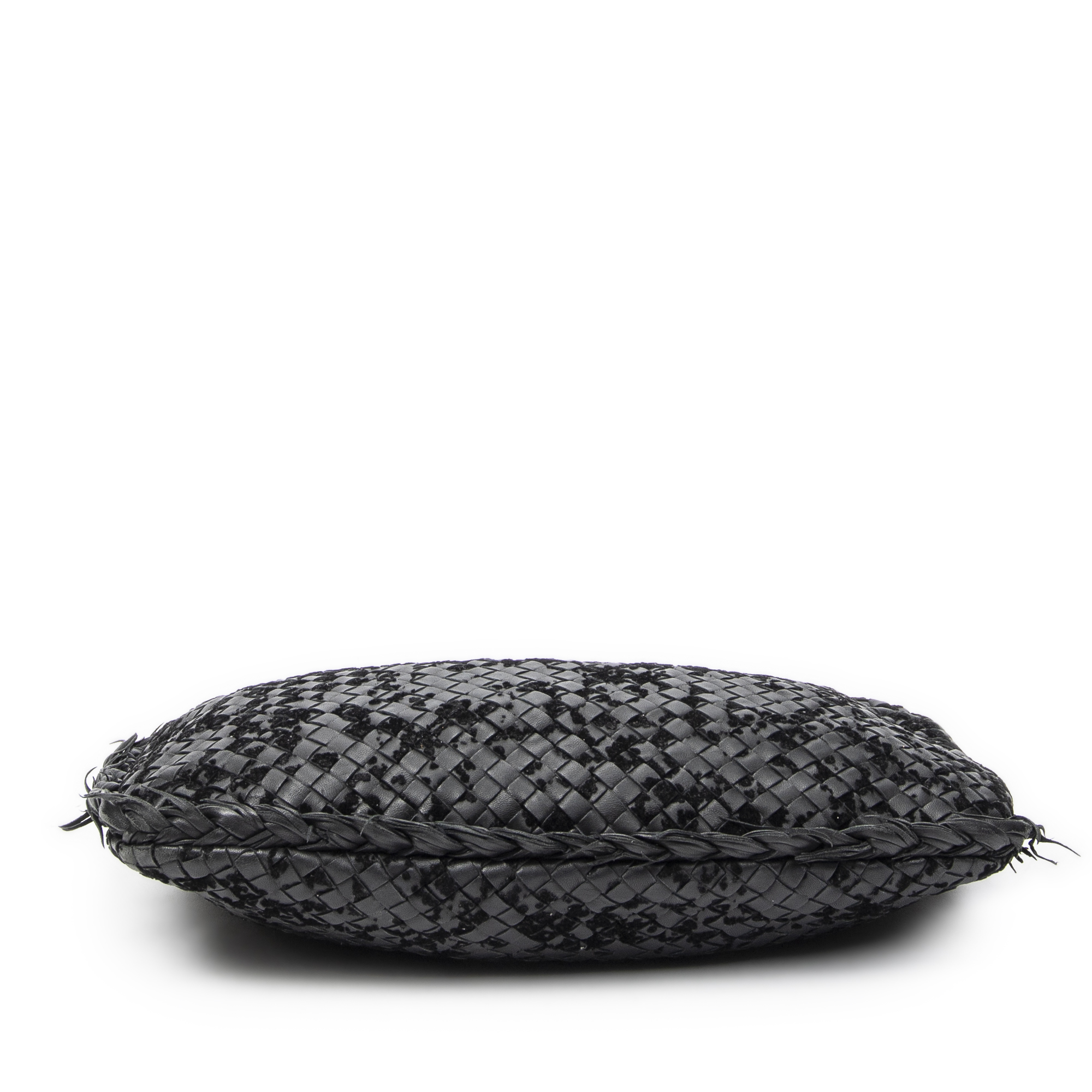 Bottega Veneta Shoulder Bag Velvet Speckled Veneta Hobo in Black Intrecciato Leather and Aged Brass hardware. The product is in Excellent Condition (A).