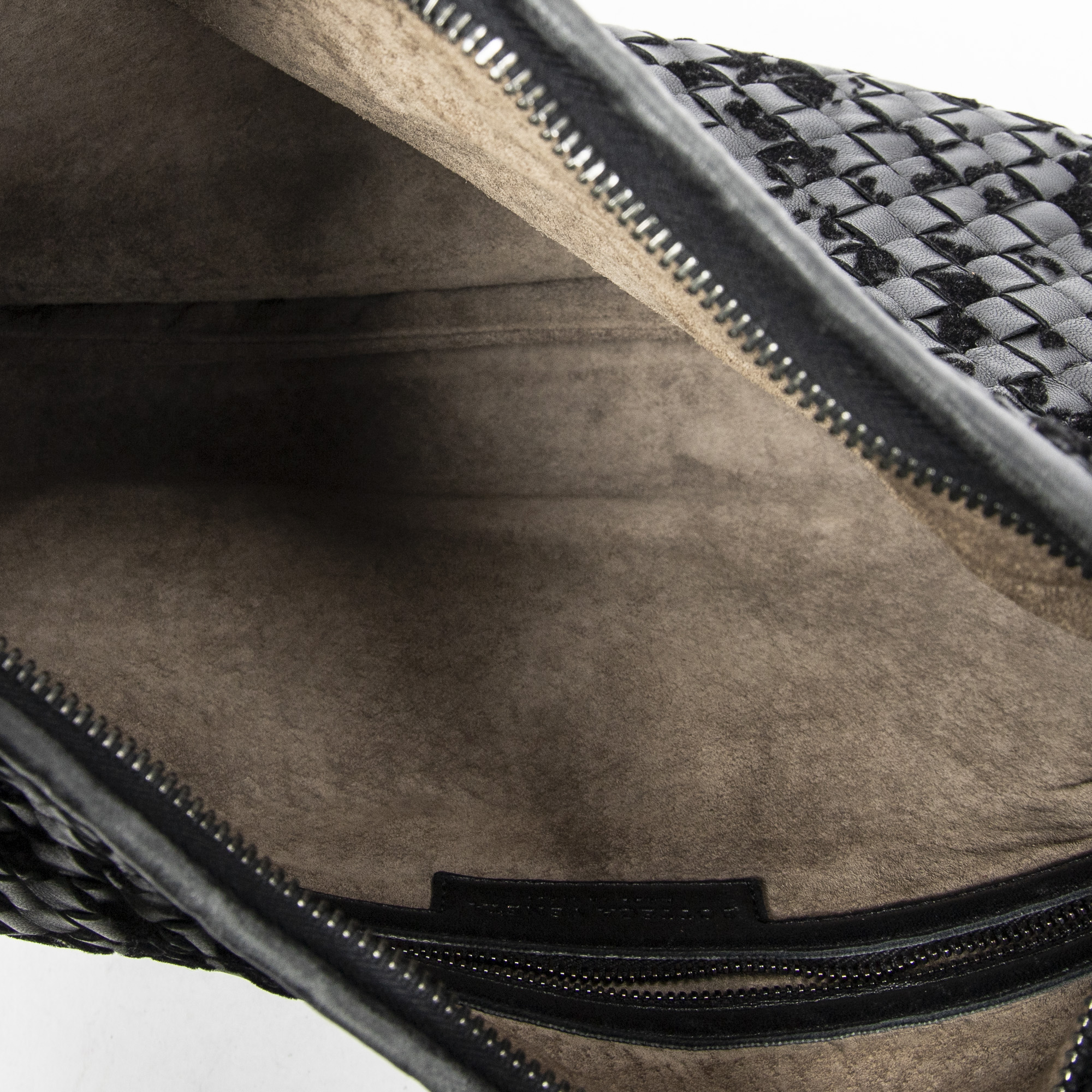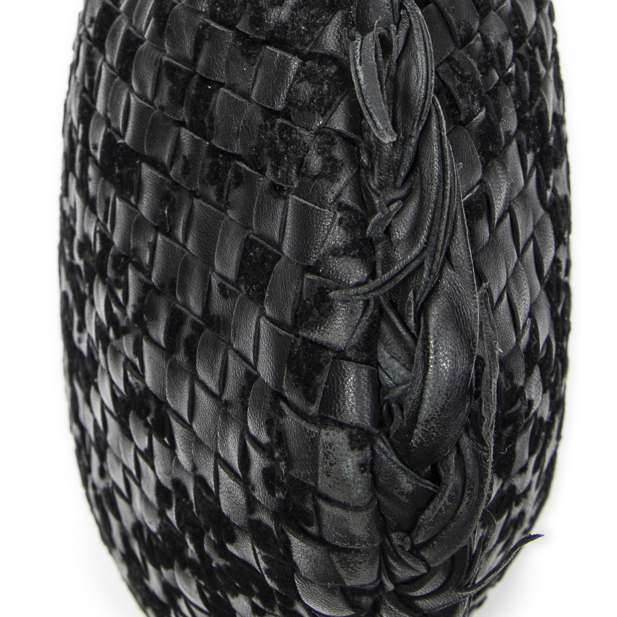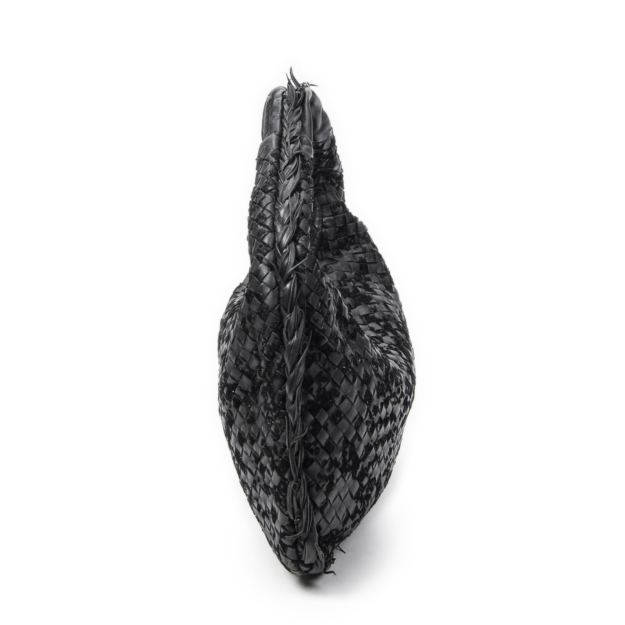 Bottega Veneta Shoulder Bag Velvet Speckled Veneta Hobo in Black Intrecciato Leather and Aged Brass hardware. The product is in Excellent Condition (A).