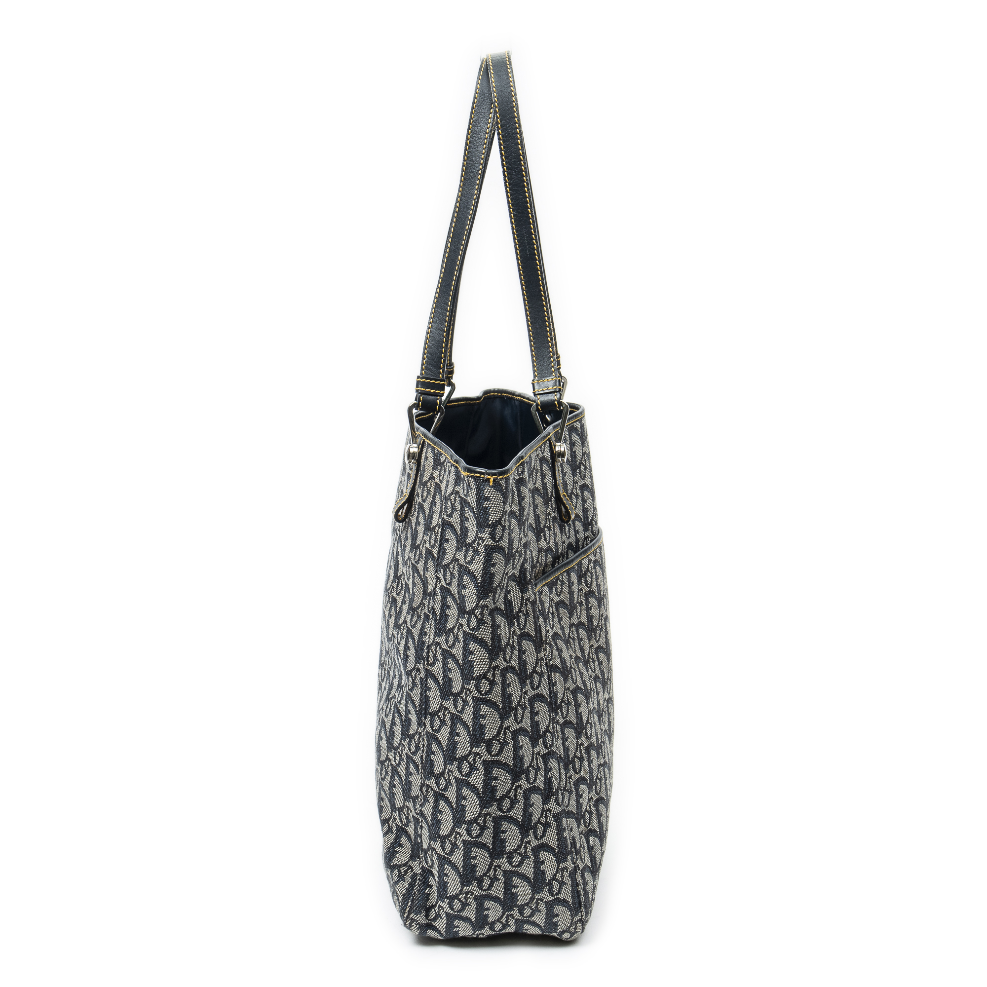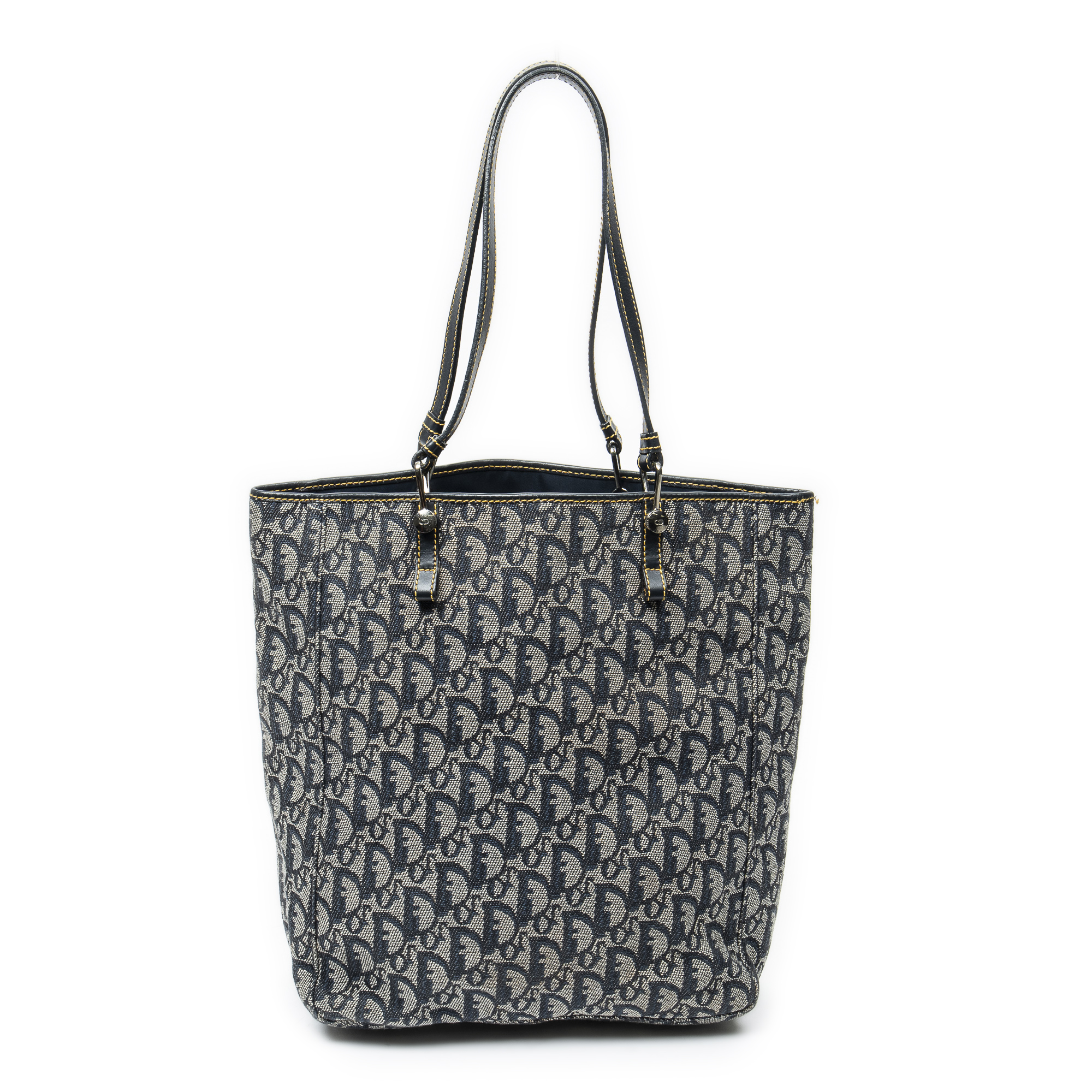 Dior Shoulder Bag Vertical Shopping Tote in Navy/Grey Diorissimo Canvas and Silver hardware. The product is in Excellent Condition (A).