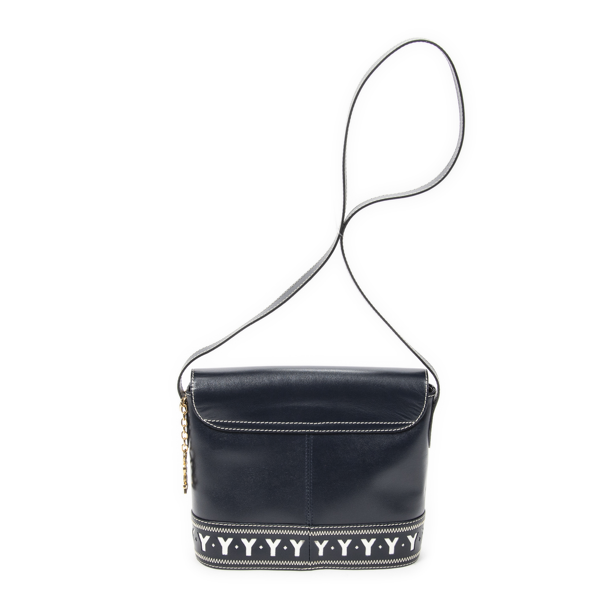 Yves Saint Laurent Shoulder Bag Vintage Cutout Y Flap Crossbody in Navy Cutout Y Leather and Gold hardware. The product is in Excellent Condition (A).