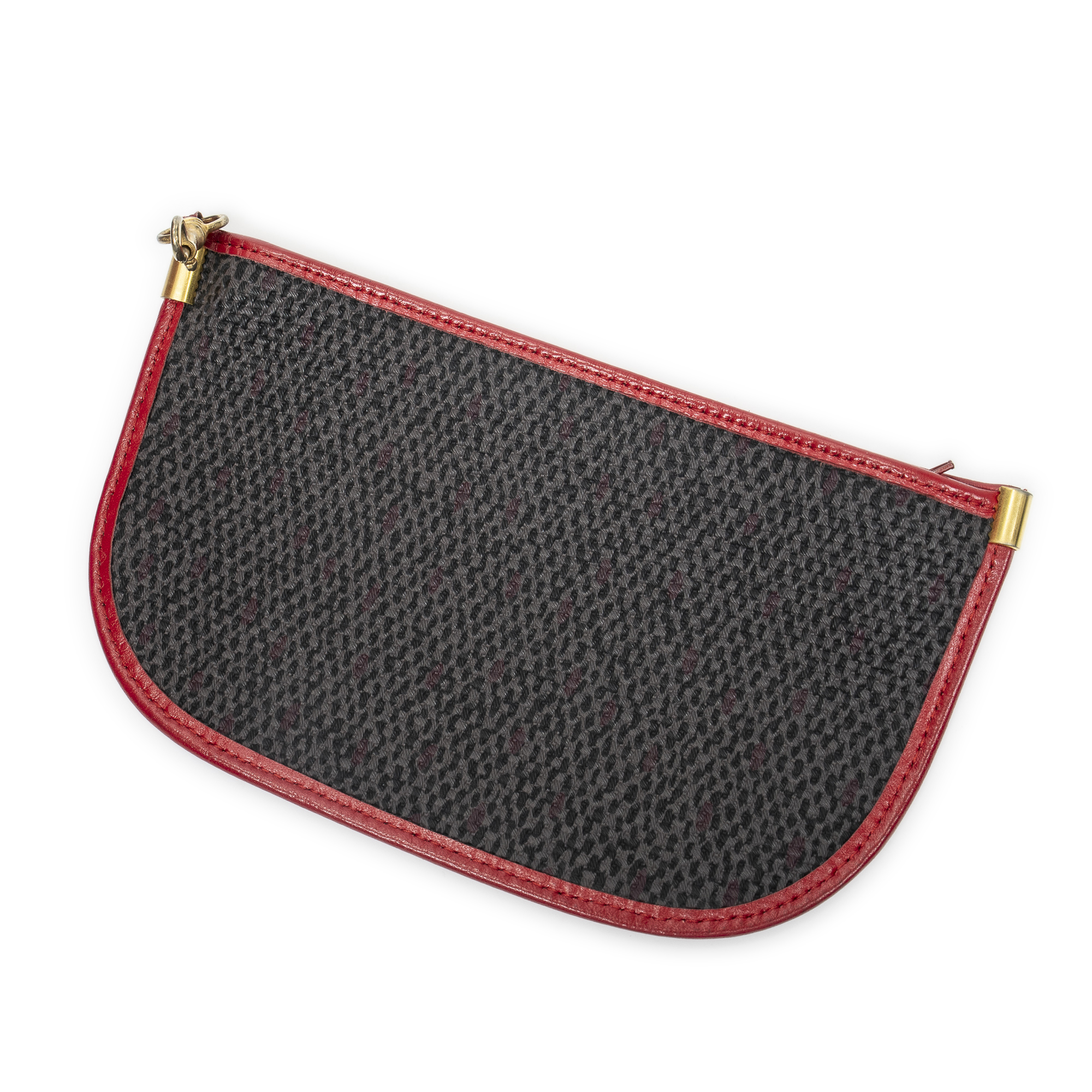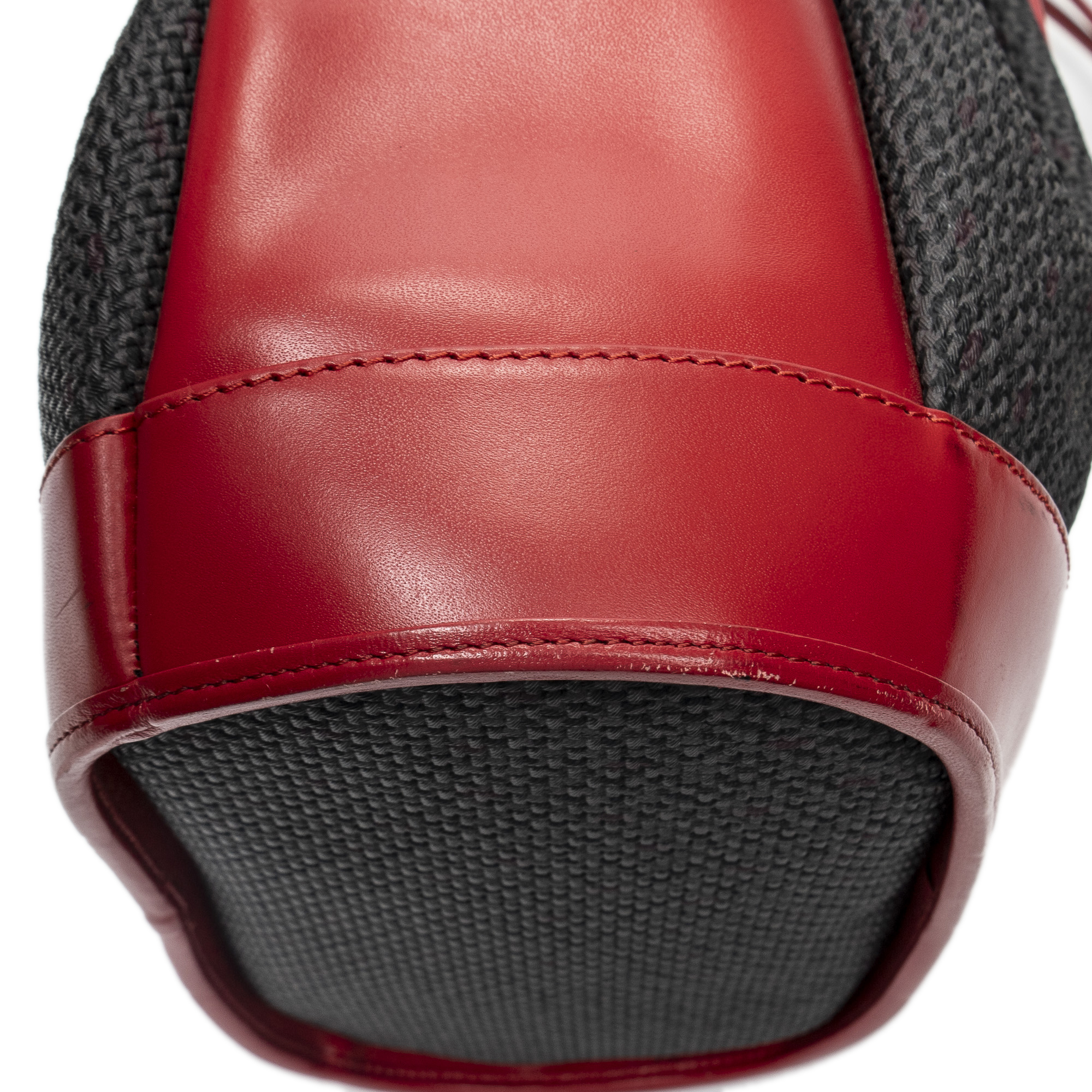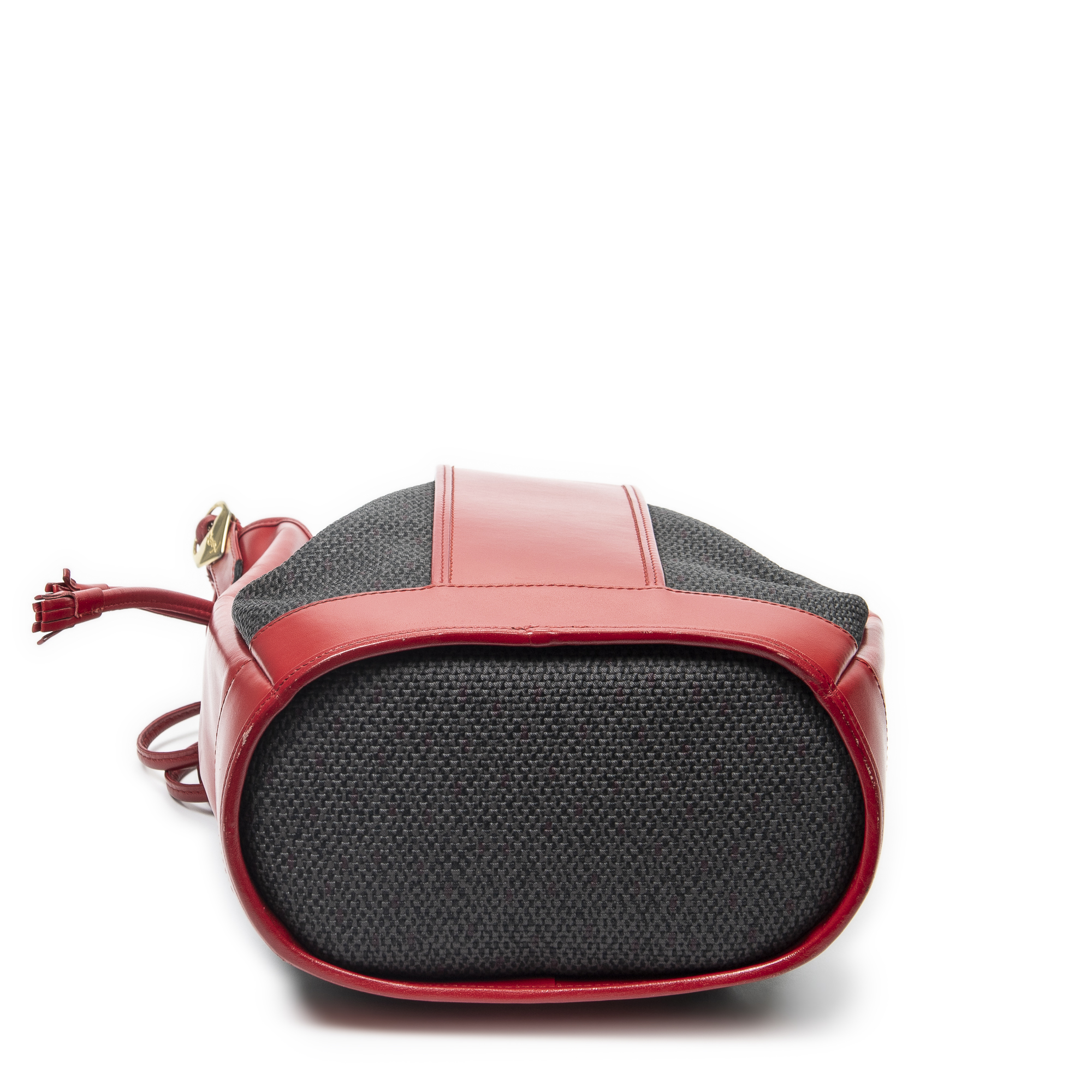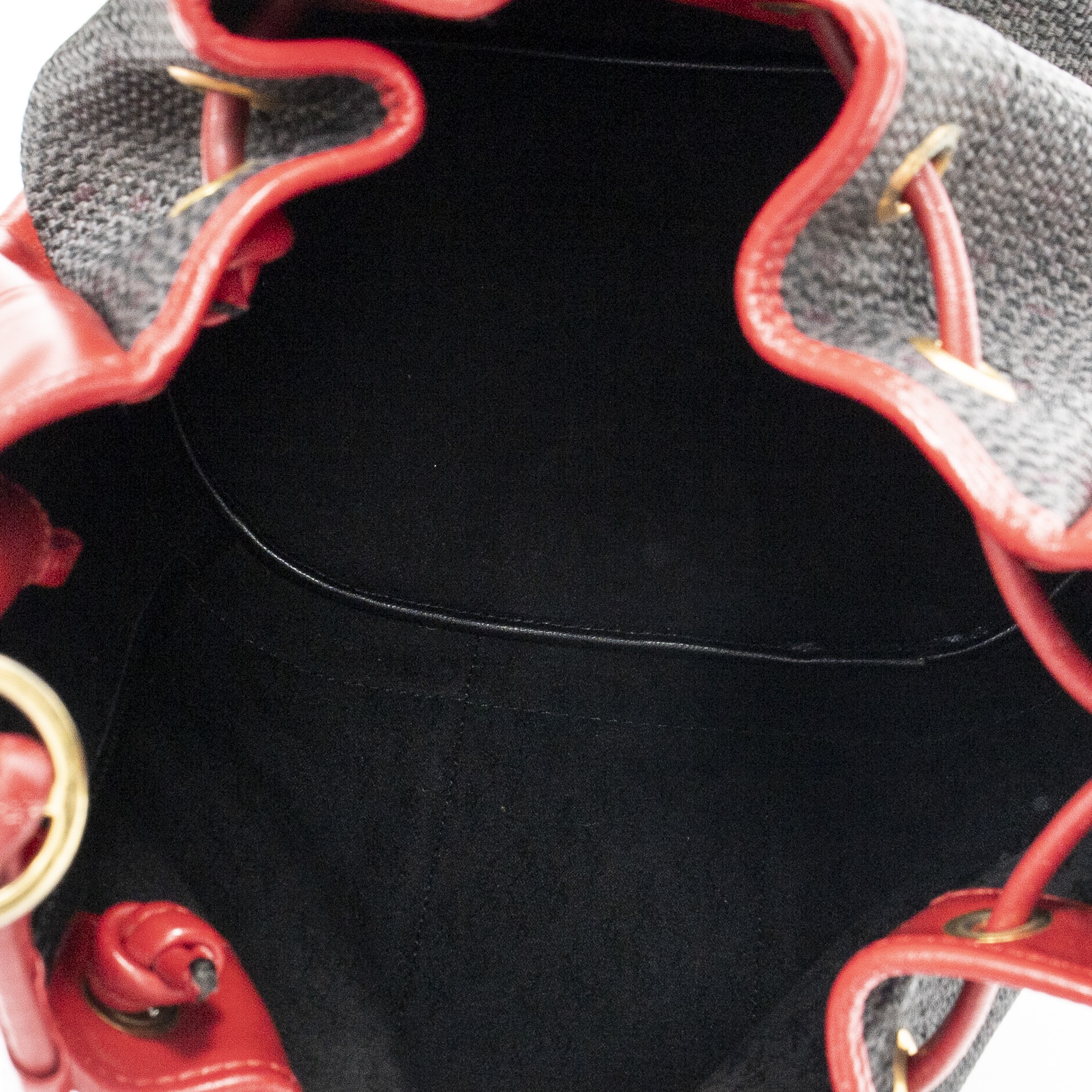 Yves Saint Laurent Shoulder Bag Vintage Drawstring Bucket in Red/Grey Woven Coated Canvas and Gold hardware. The product is in Very Good Condition (AB).