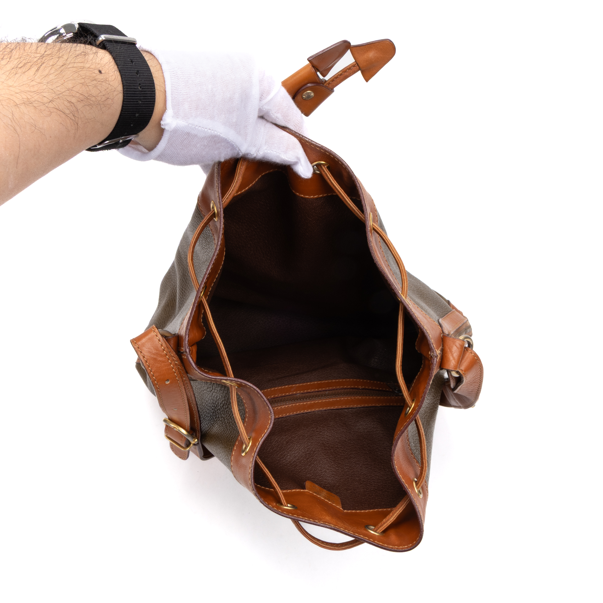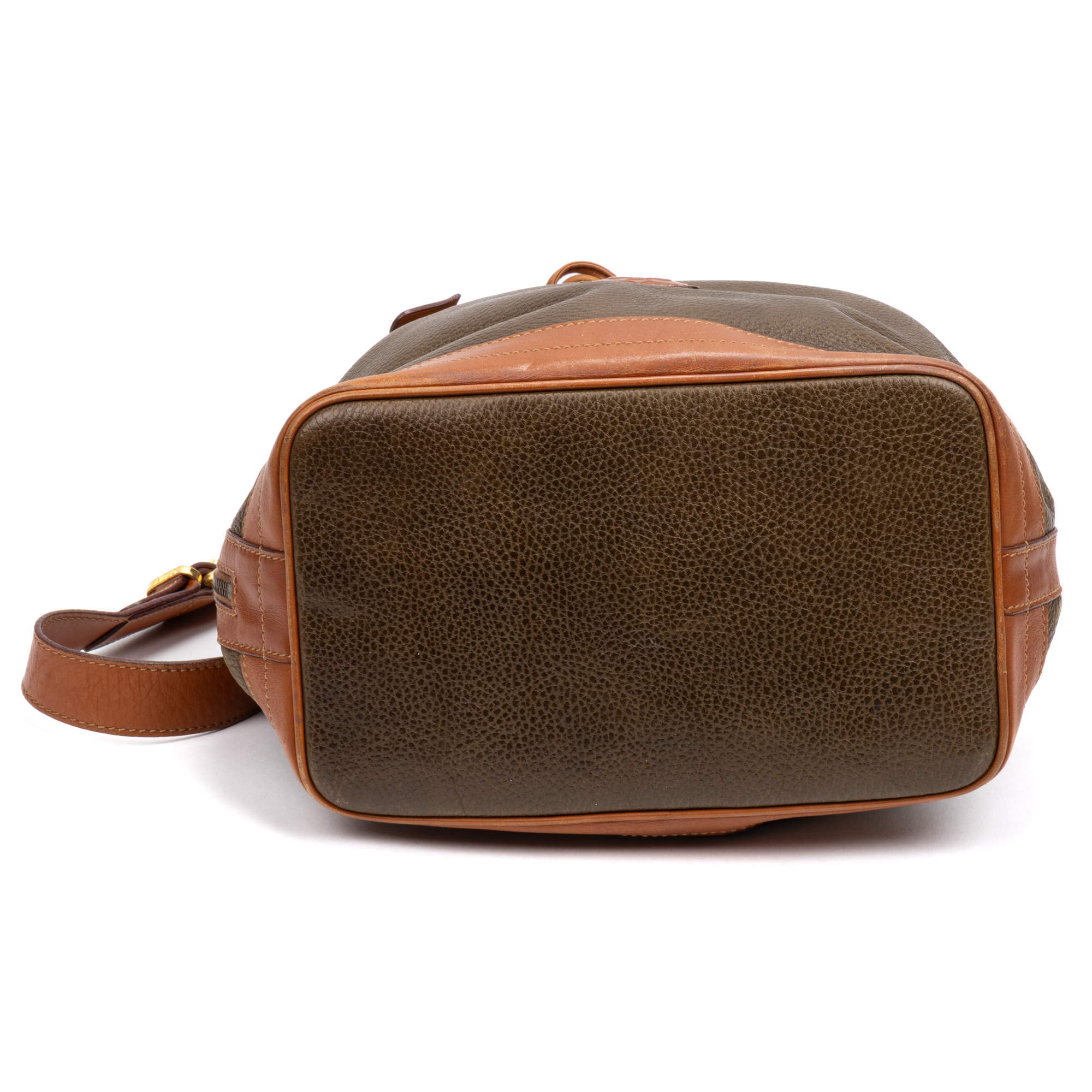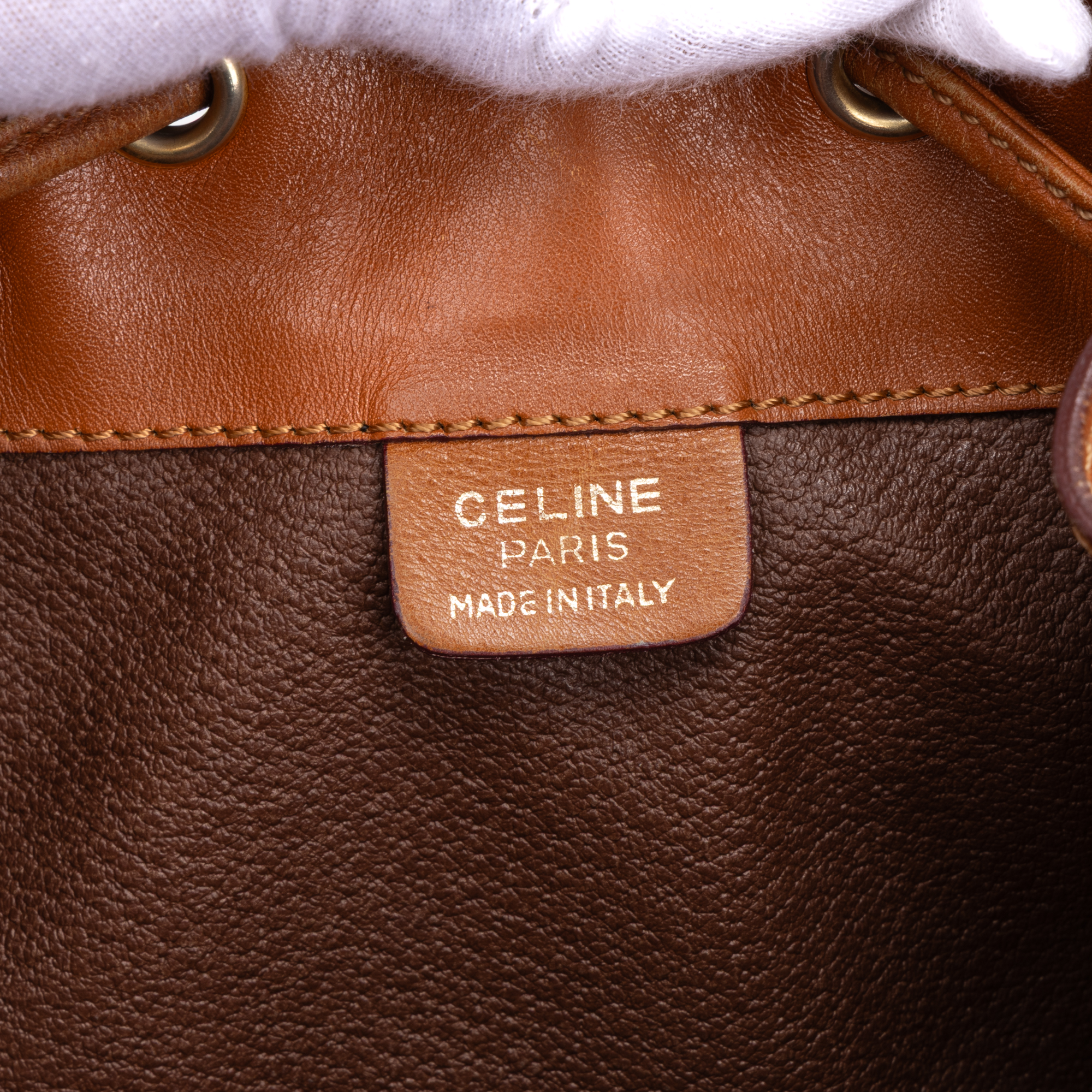 Celine Shoulder Bag Vintage Drawstring Bucket in Green Calfskin Leather and Gold hardware. The product is in Excellent Condition (A).