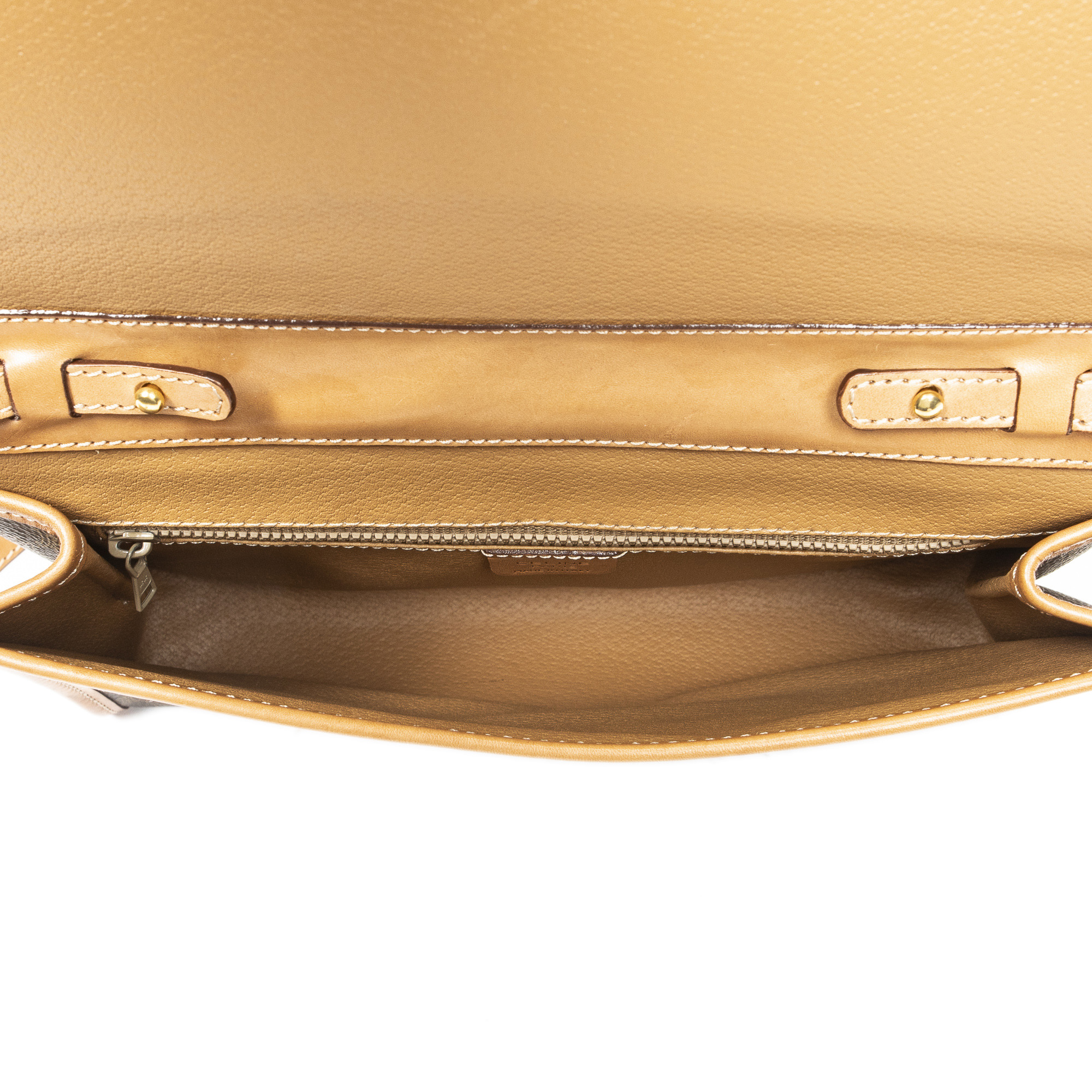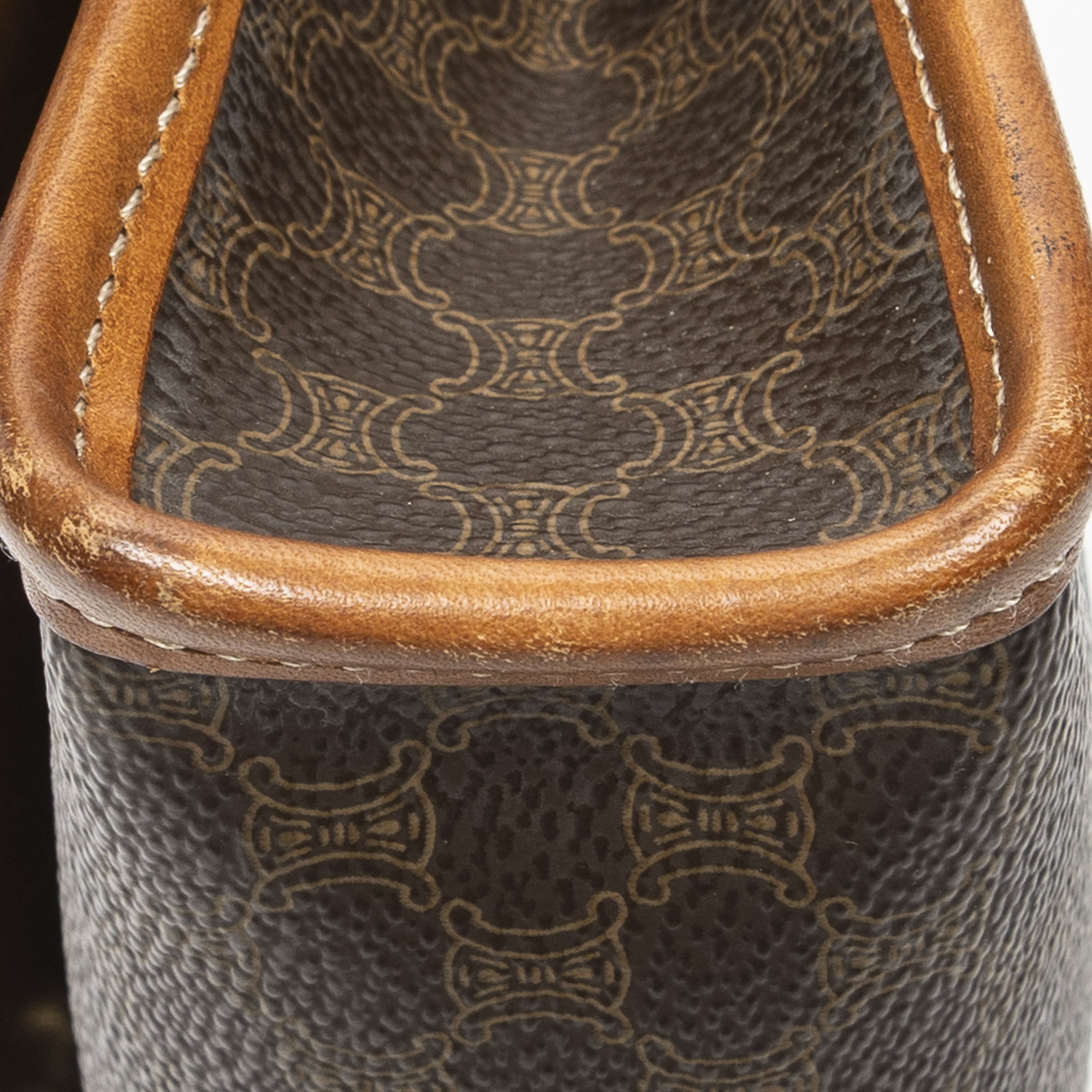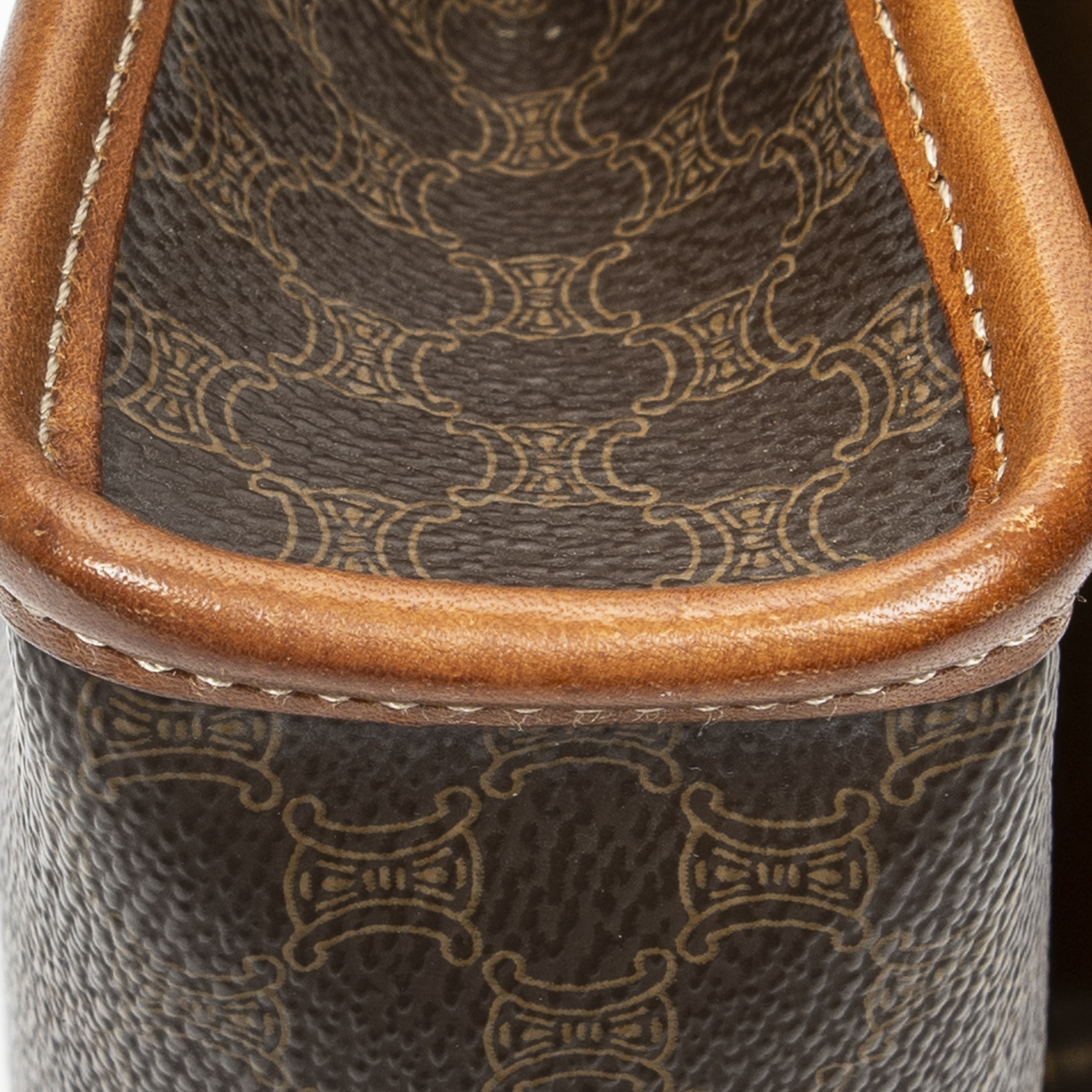 Celine Shoulder Bag Vintage Flap Crossbody in Brown Macadam Coated Canvas and Gold hardware. The product is in Excellent Condition (A).