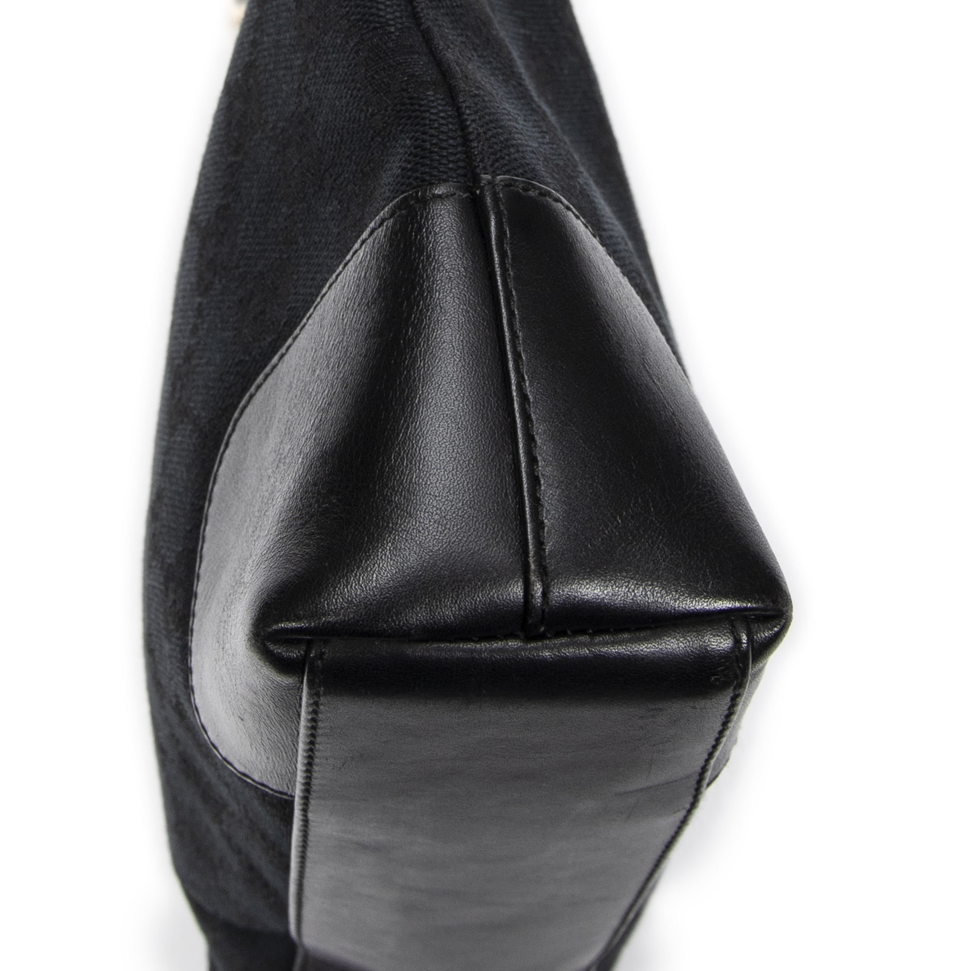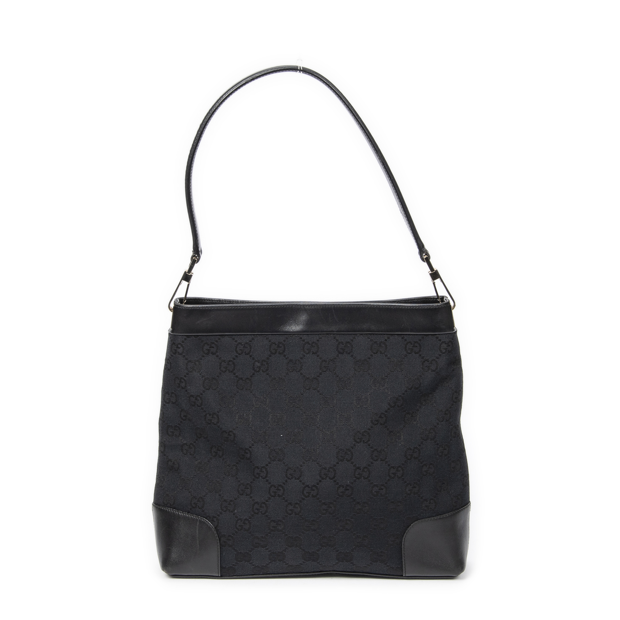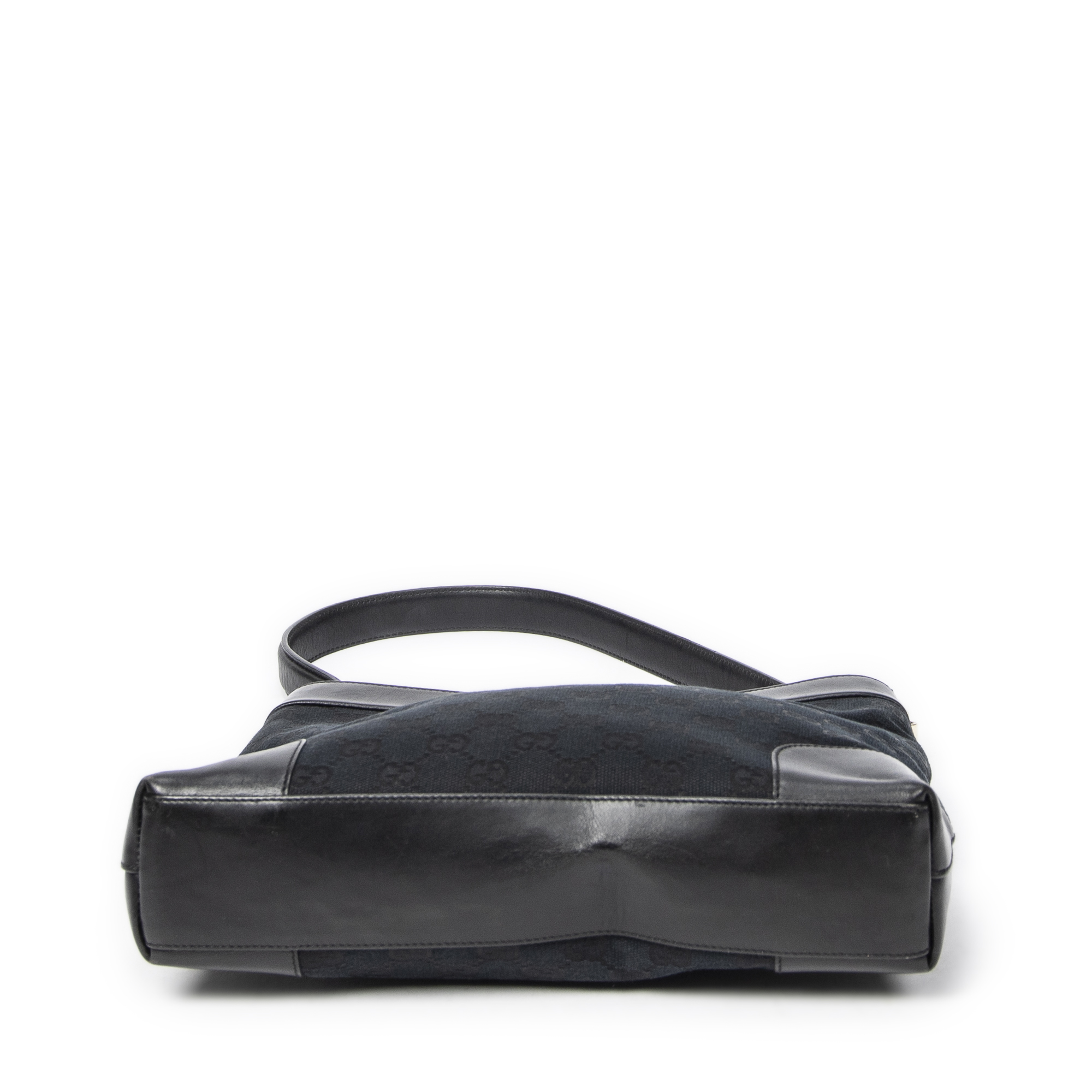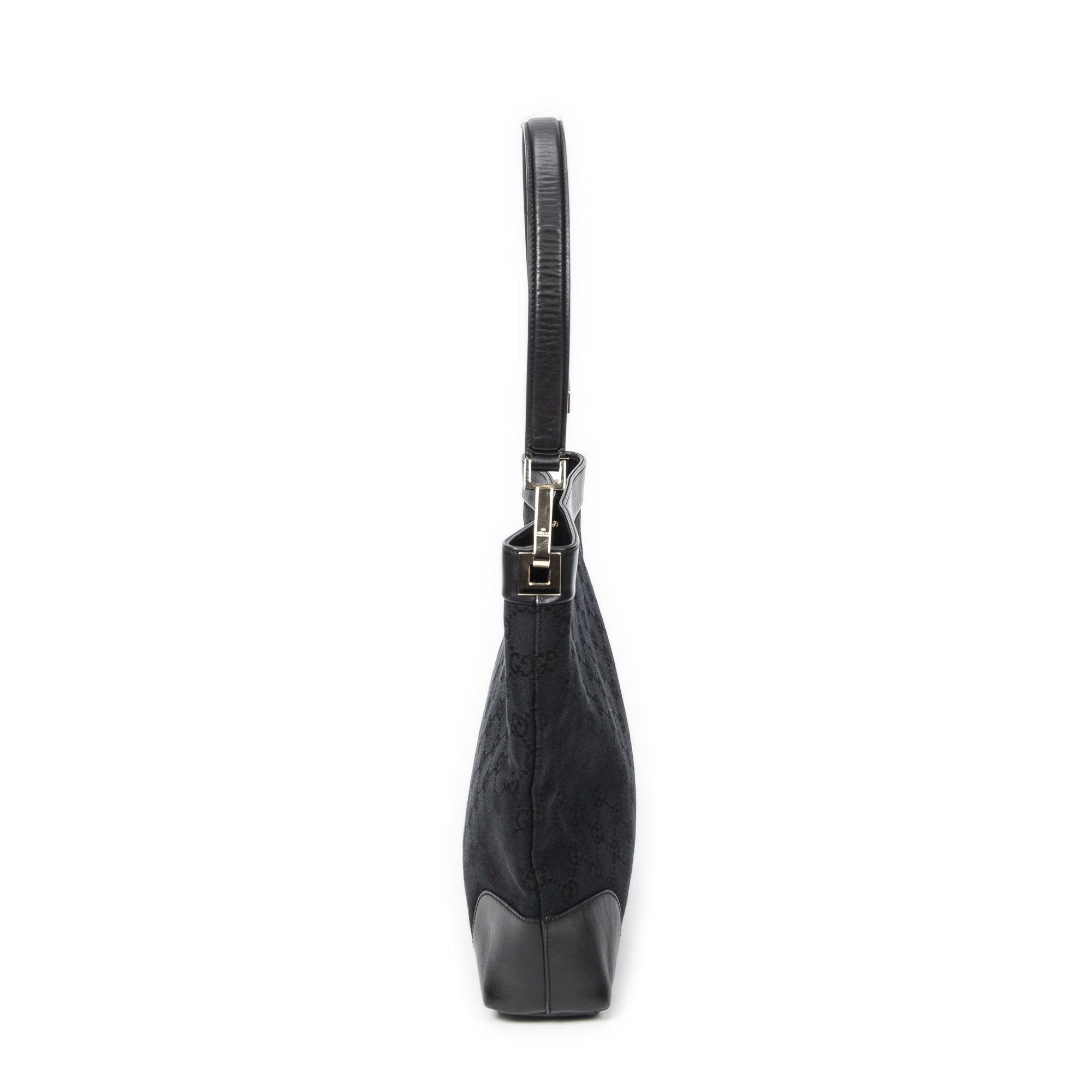 Gucci Shoulder Bag Vintage GG Shoulder Bag in Black Monogrammed Canvas and Gold hardware. The product is in Excellent Condition (A).