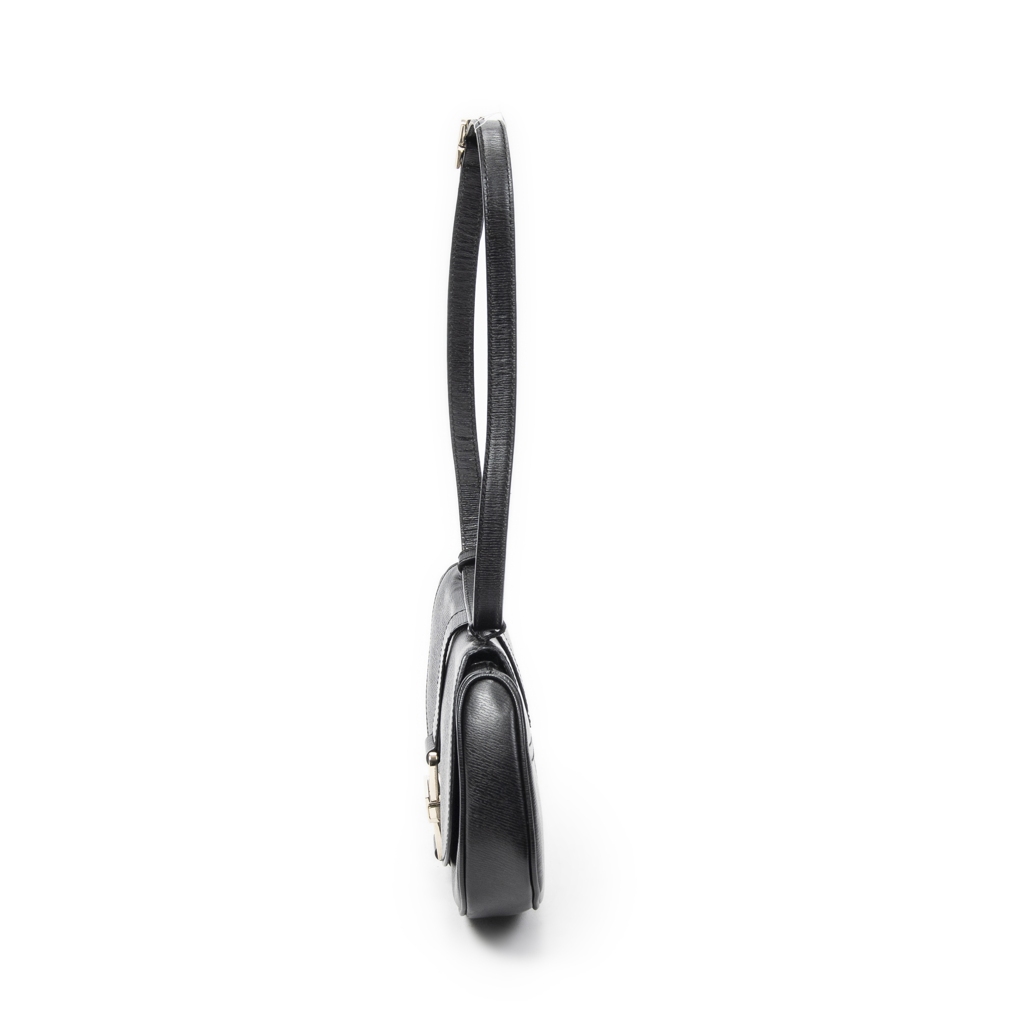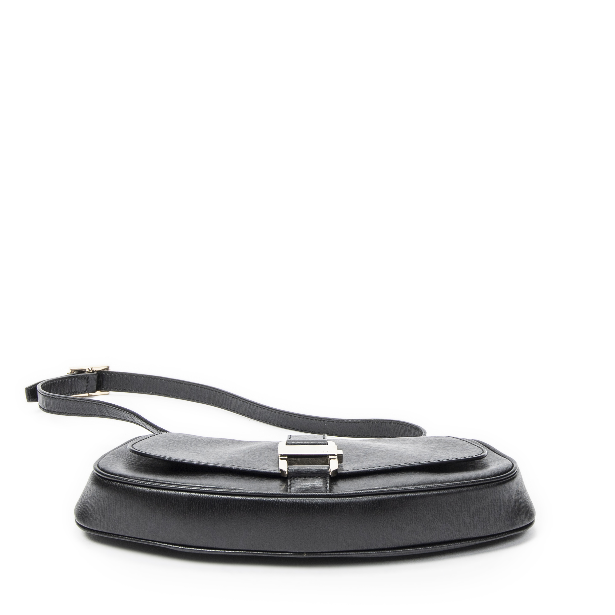 Gucci Shoulder Bag Vintage Half Moon Flap in Black Calfskin Leather and Gold hardware. The product is in Perfect Condition (AA).