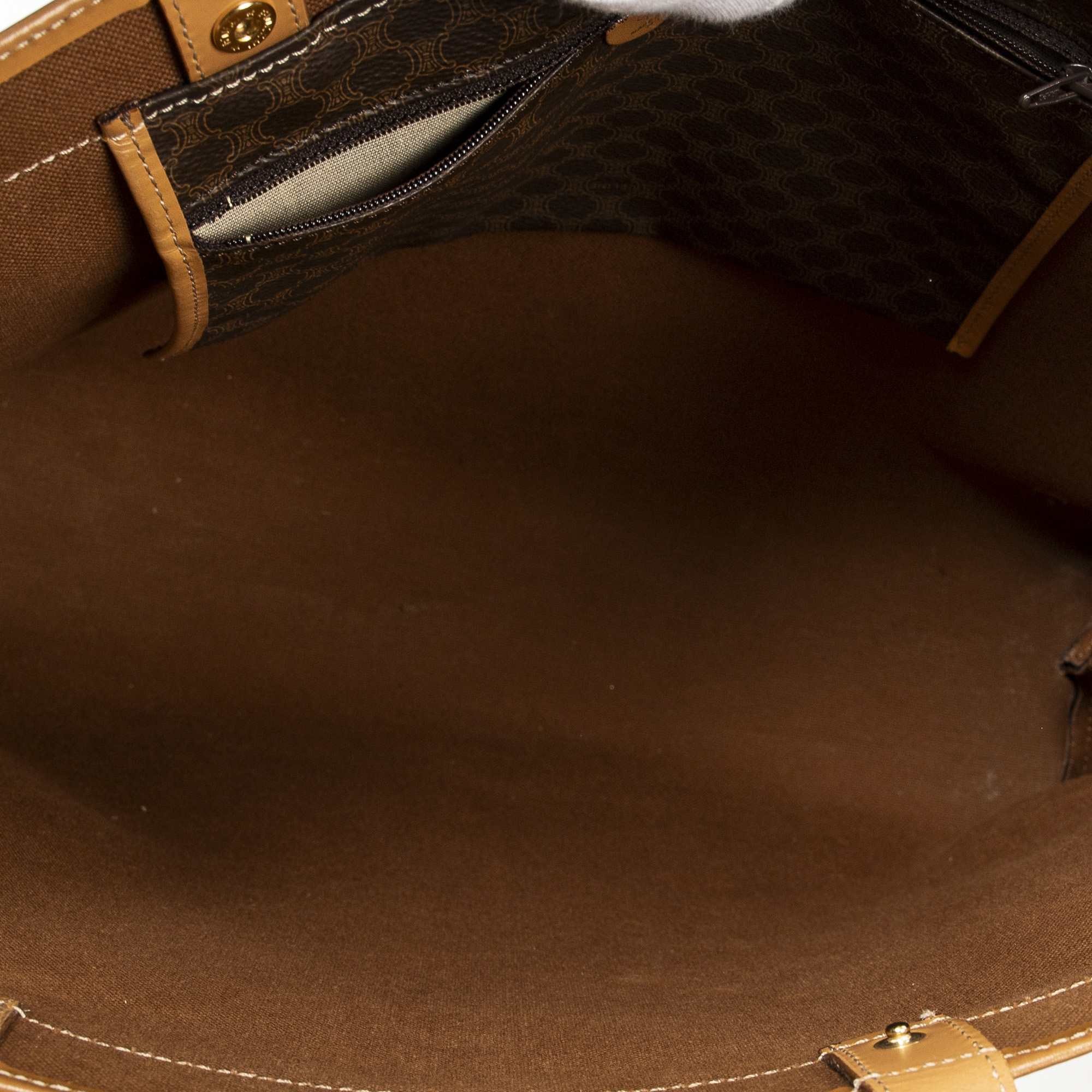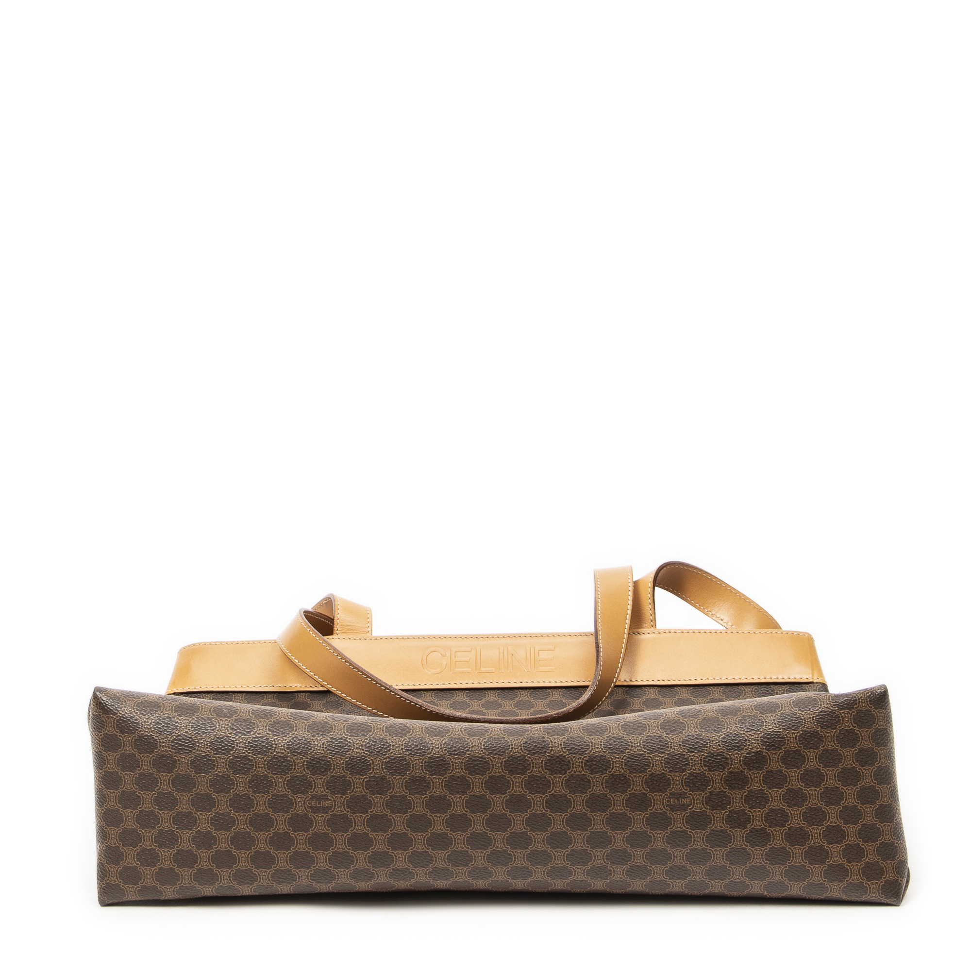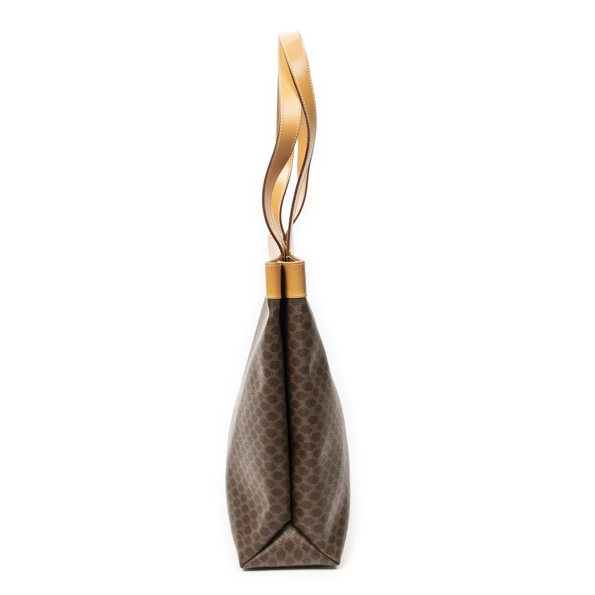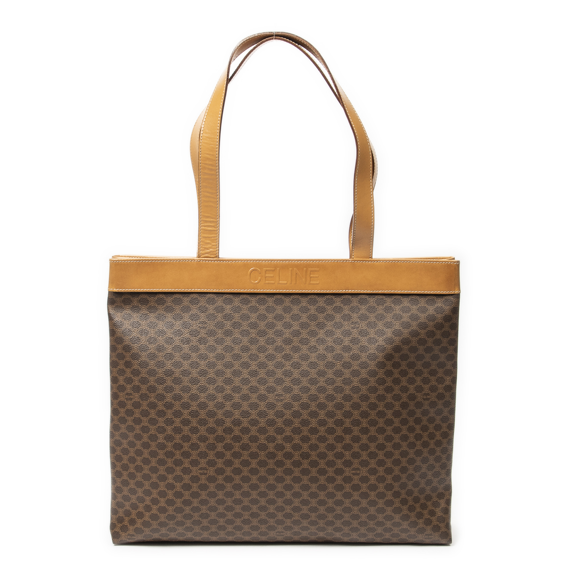 Celine Shoulder Bag Vintage Large Macadam Tote in Beige/Brown Macadam Coated Canvas and Gold hardware. The product is in Excellent Condition (A).