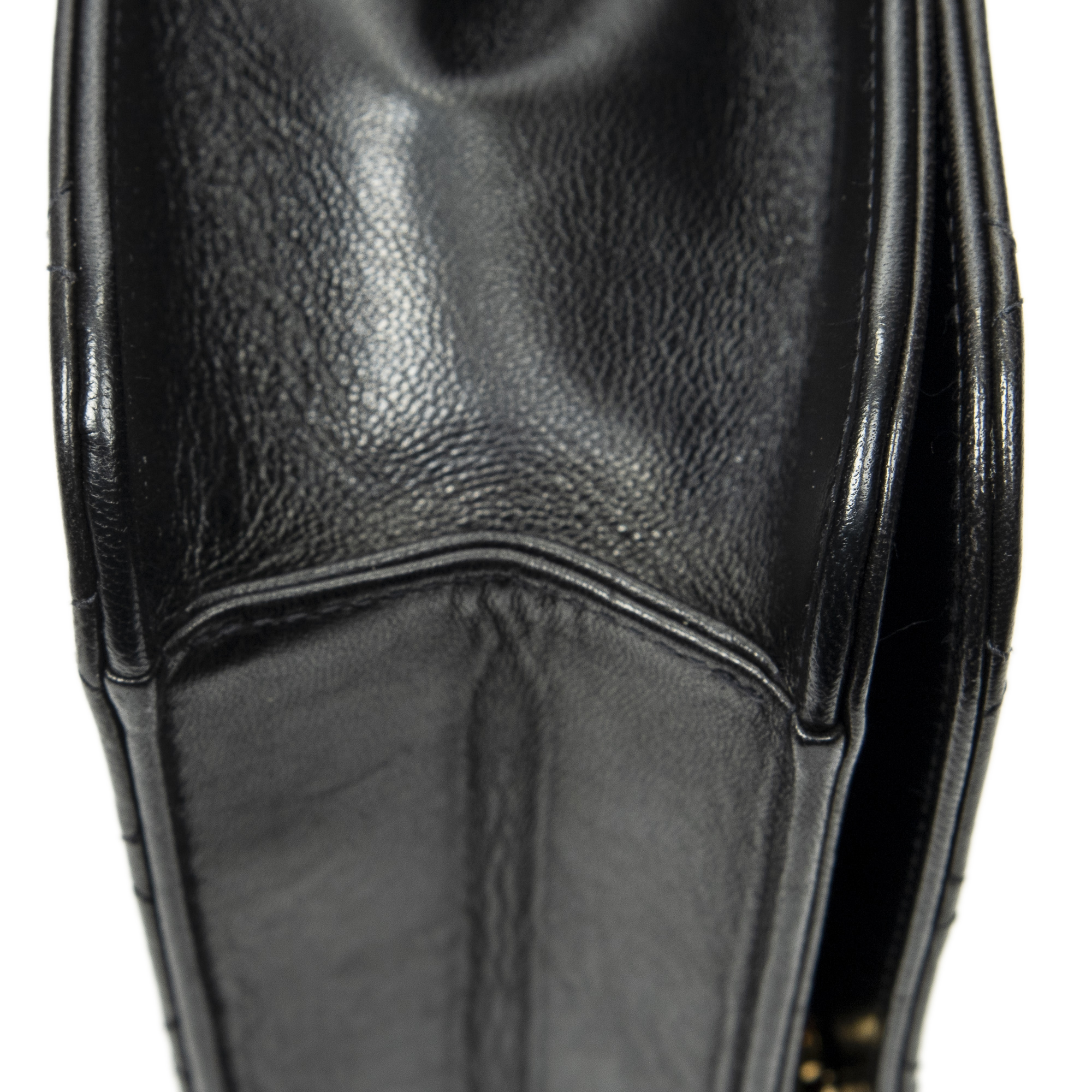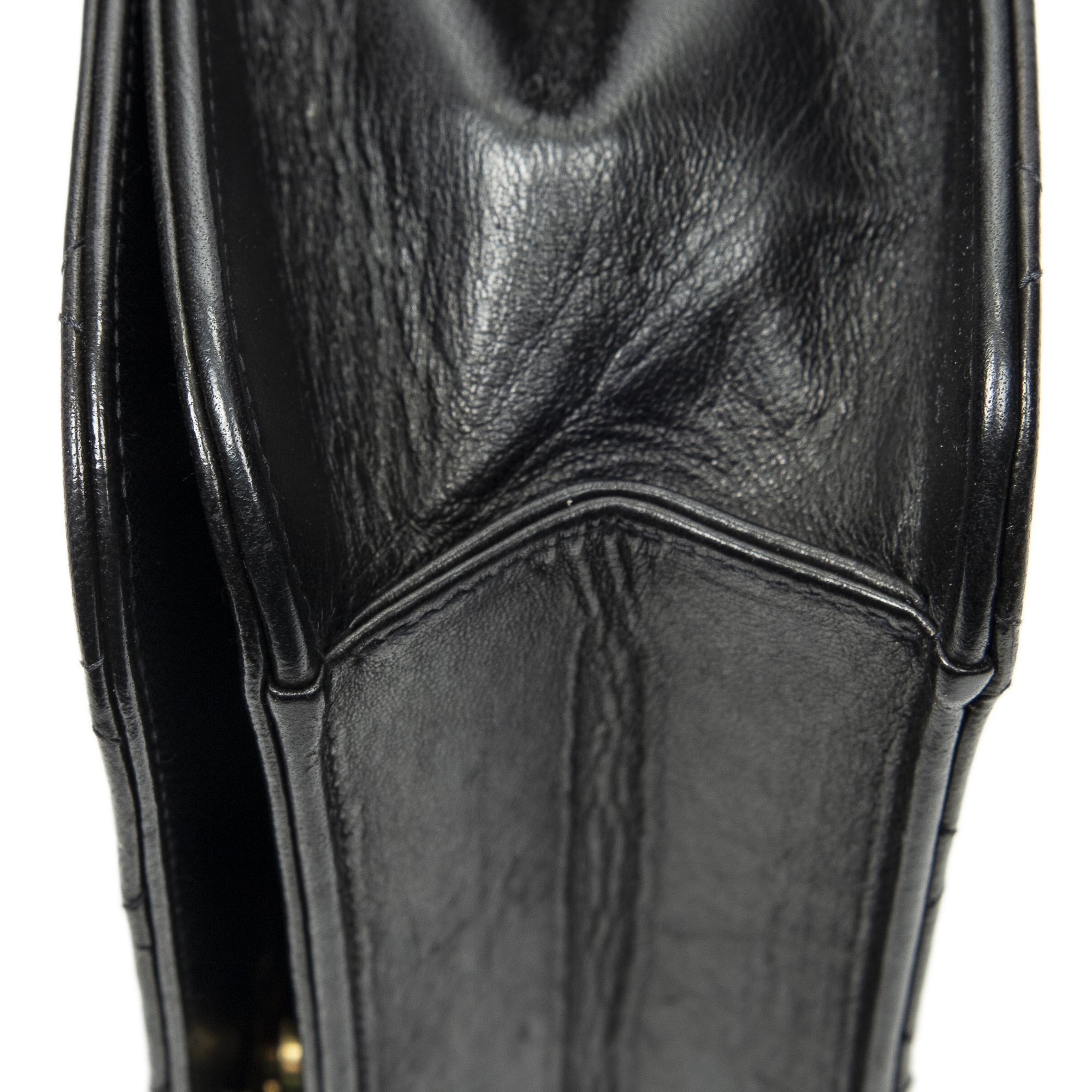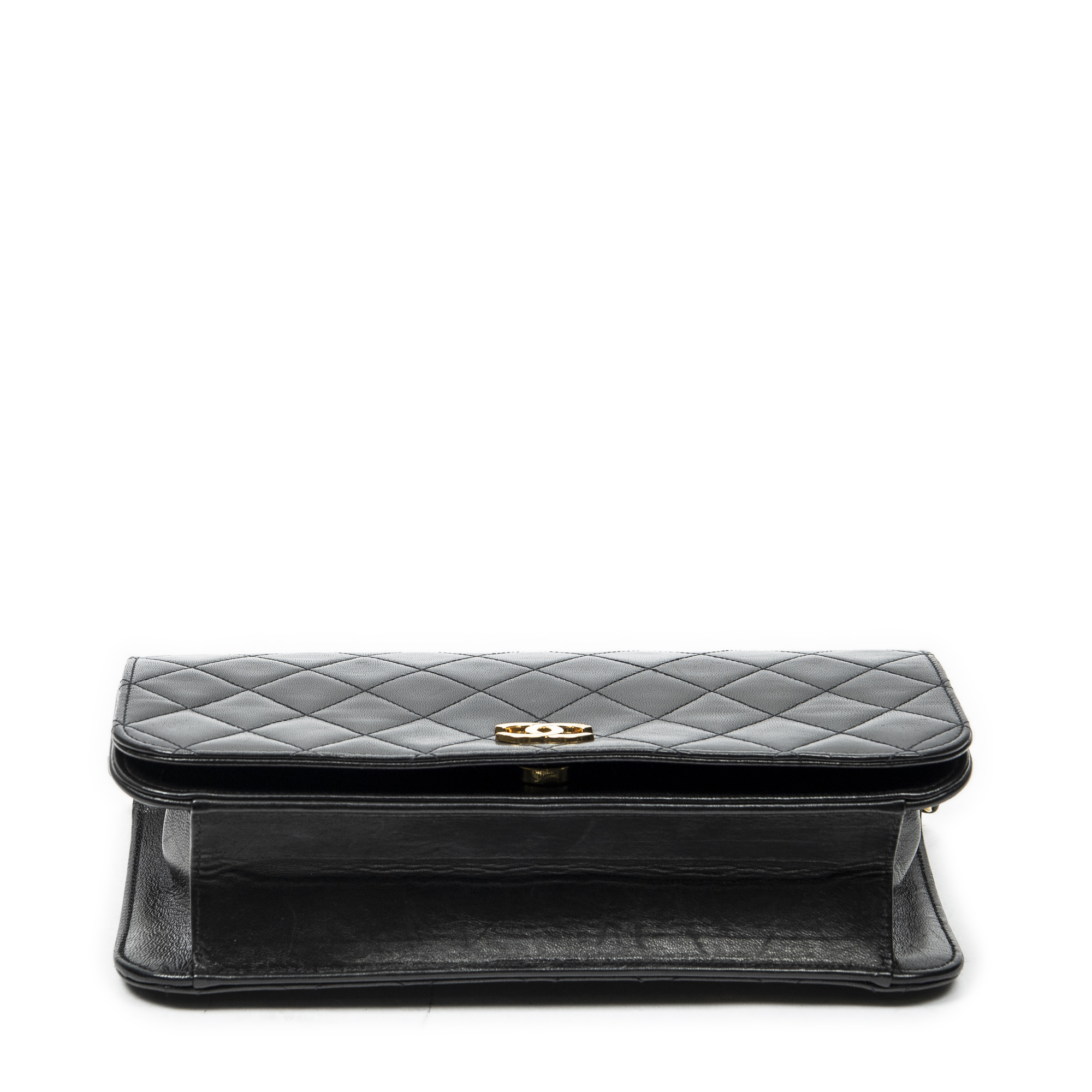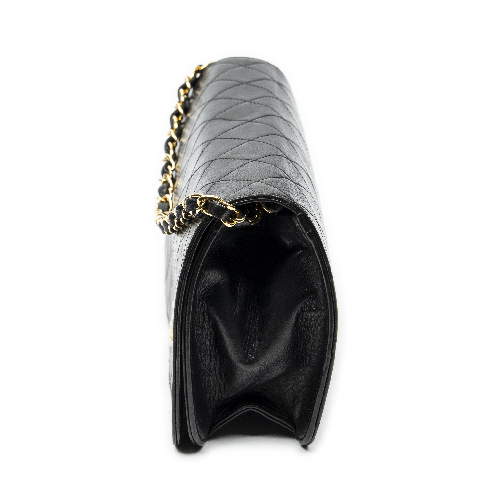 Chanel Shoulder Bag Vintage Mademoiselle Full Flap in Black Quilted Lambskin Leather and Gold hardware. The product is in Excellent Condition (A).