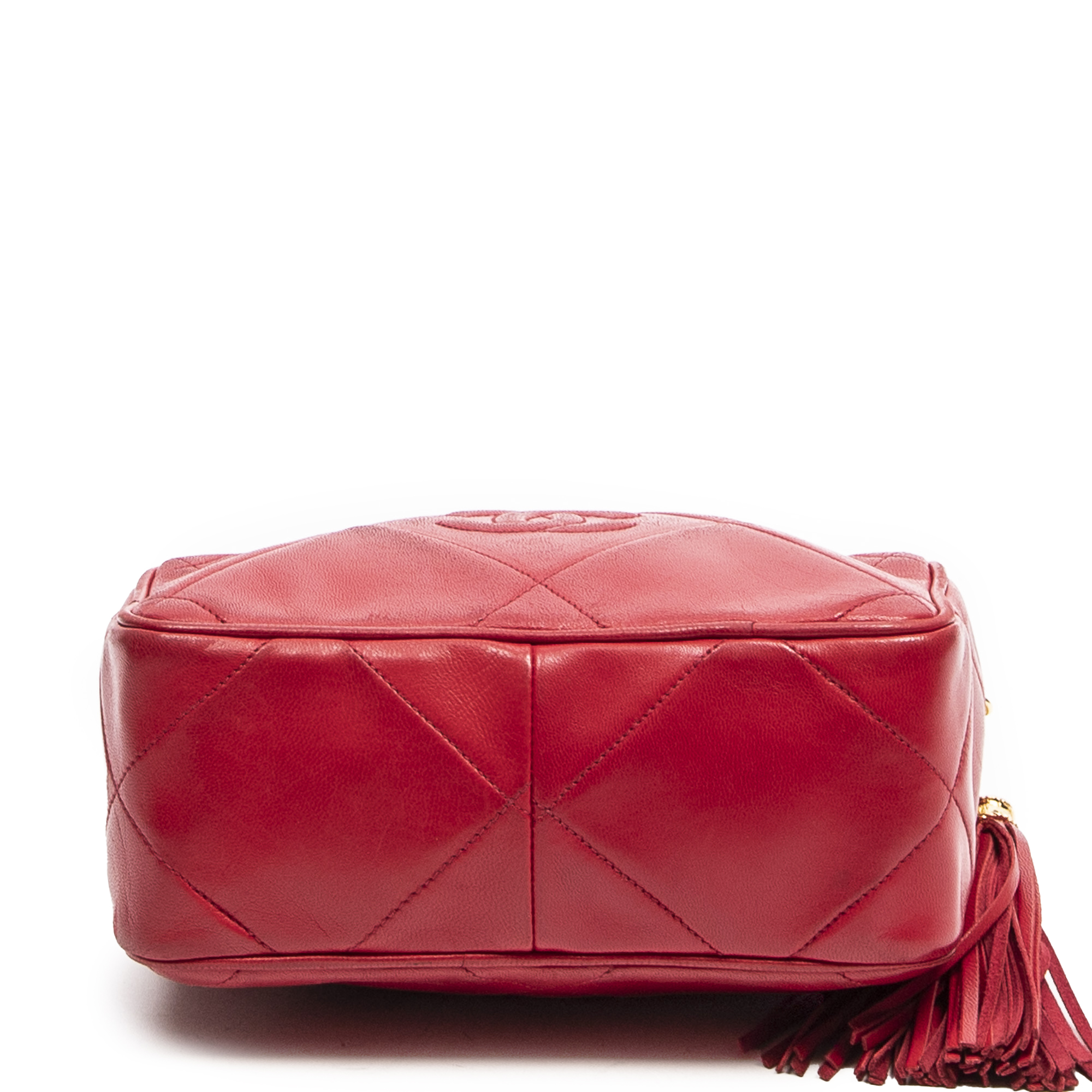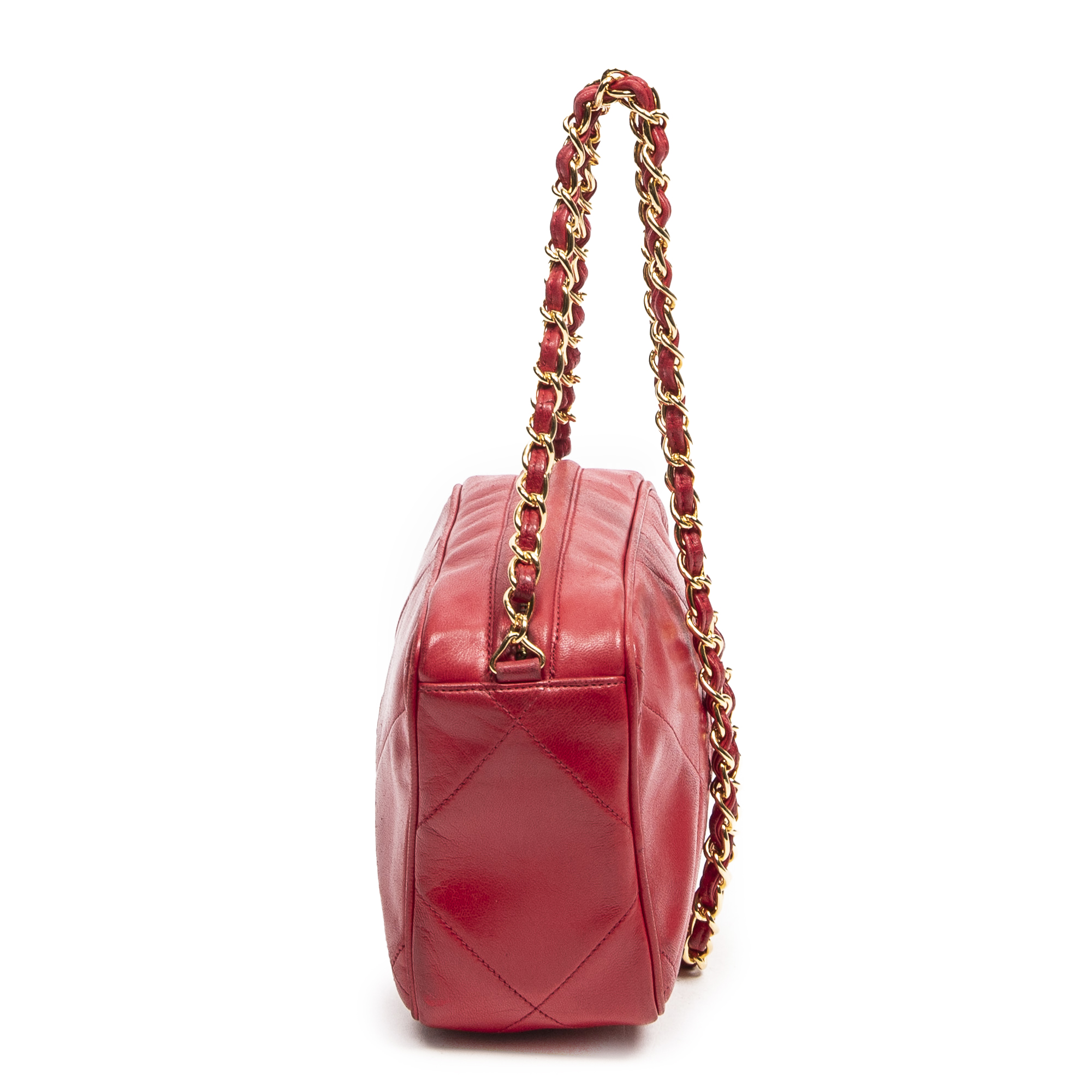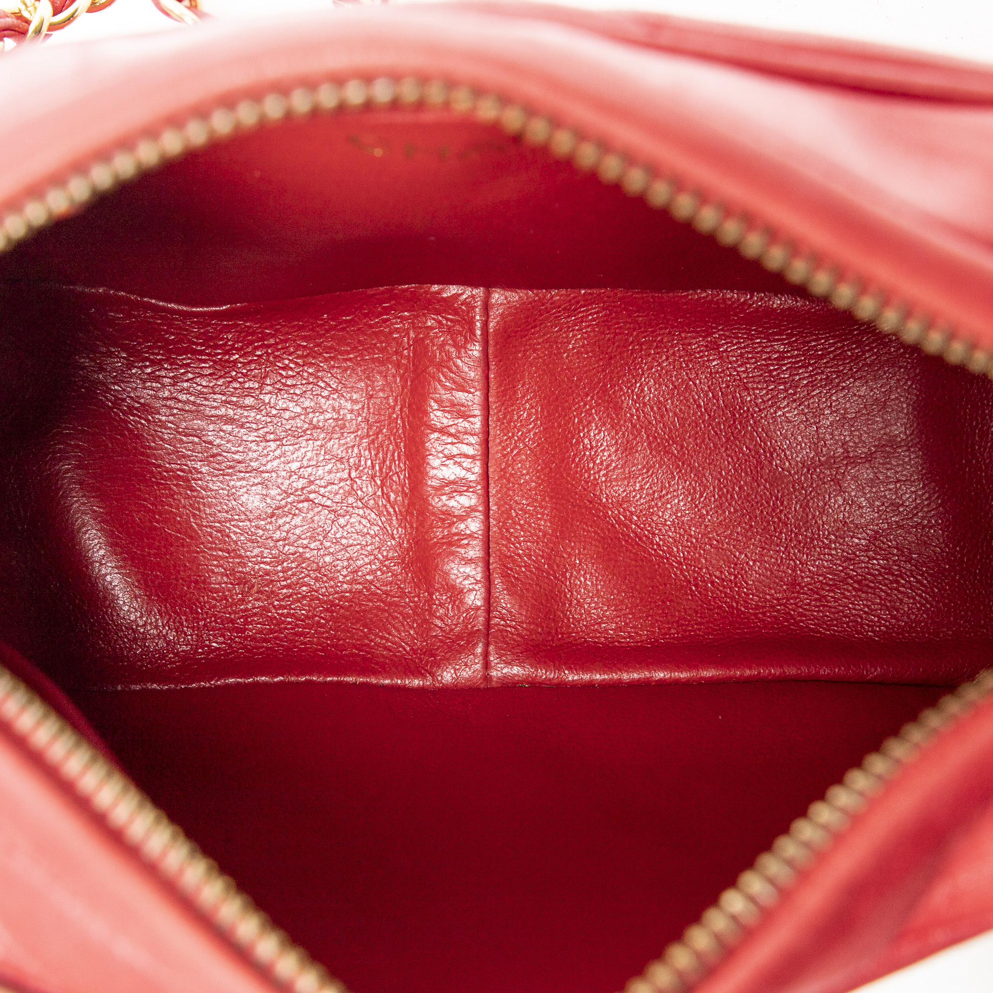 Chanel Shoulder Bag Vintage Mini Camera Bag in Red Diamond Quilted Lambskin Leather and Gold hardware. The product is in Excellent Condition (A).