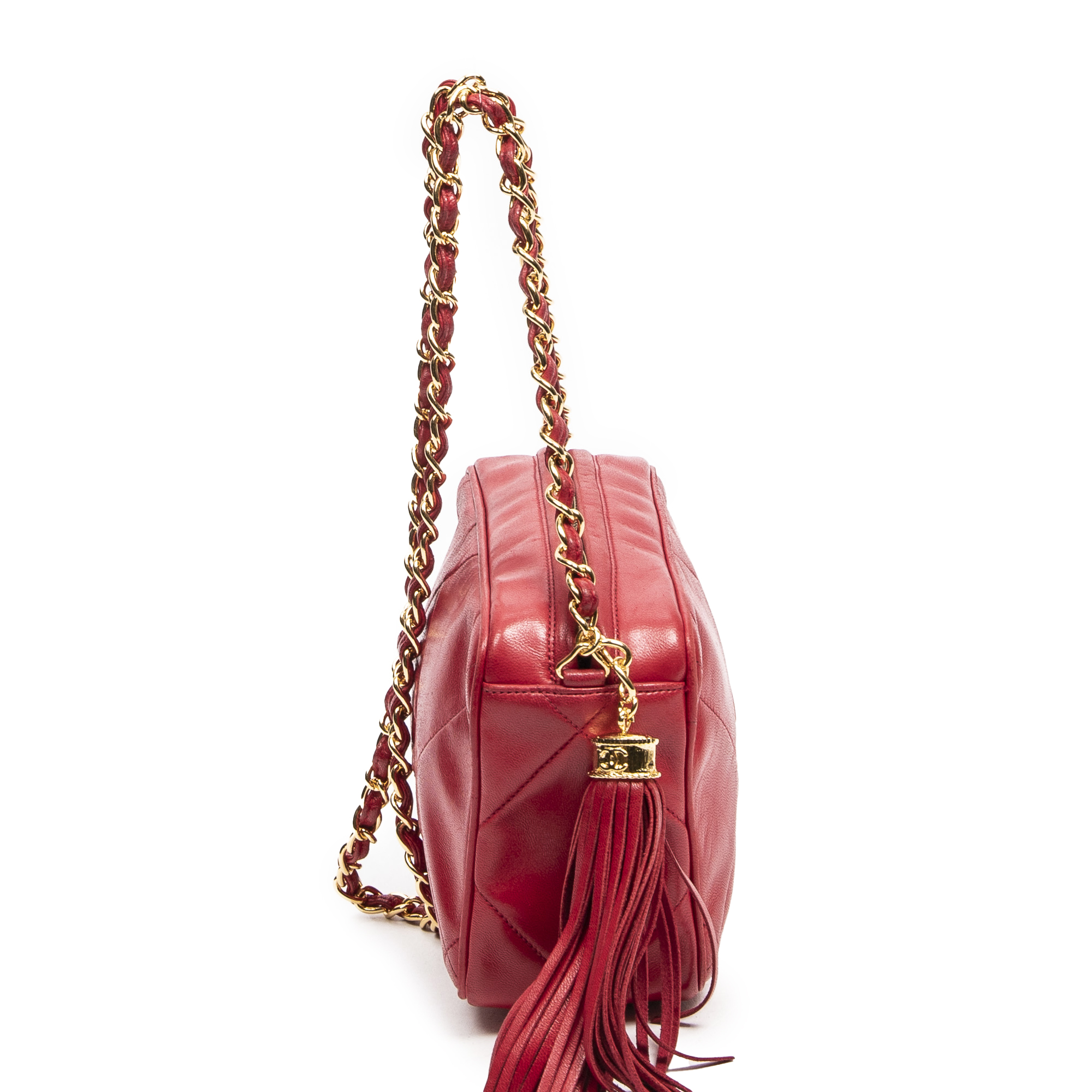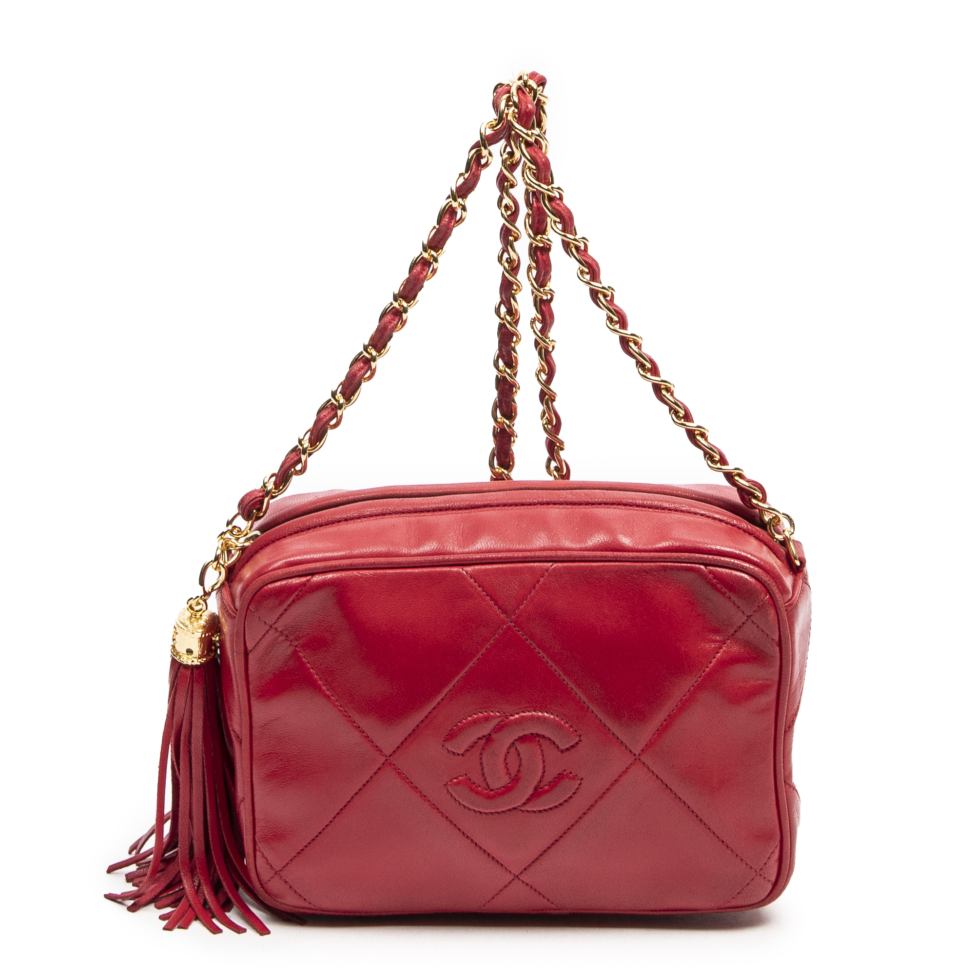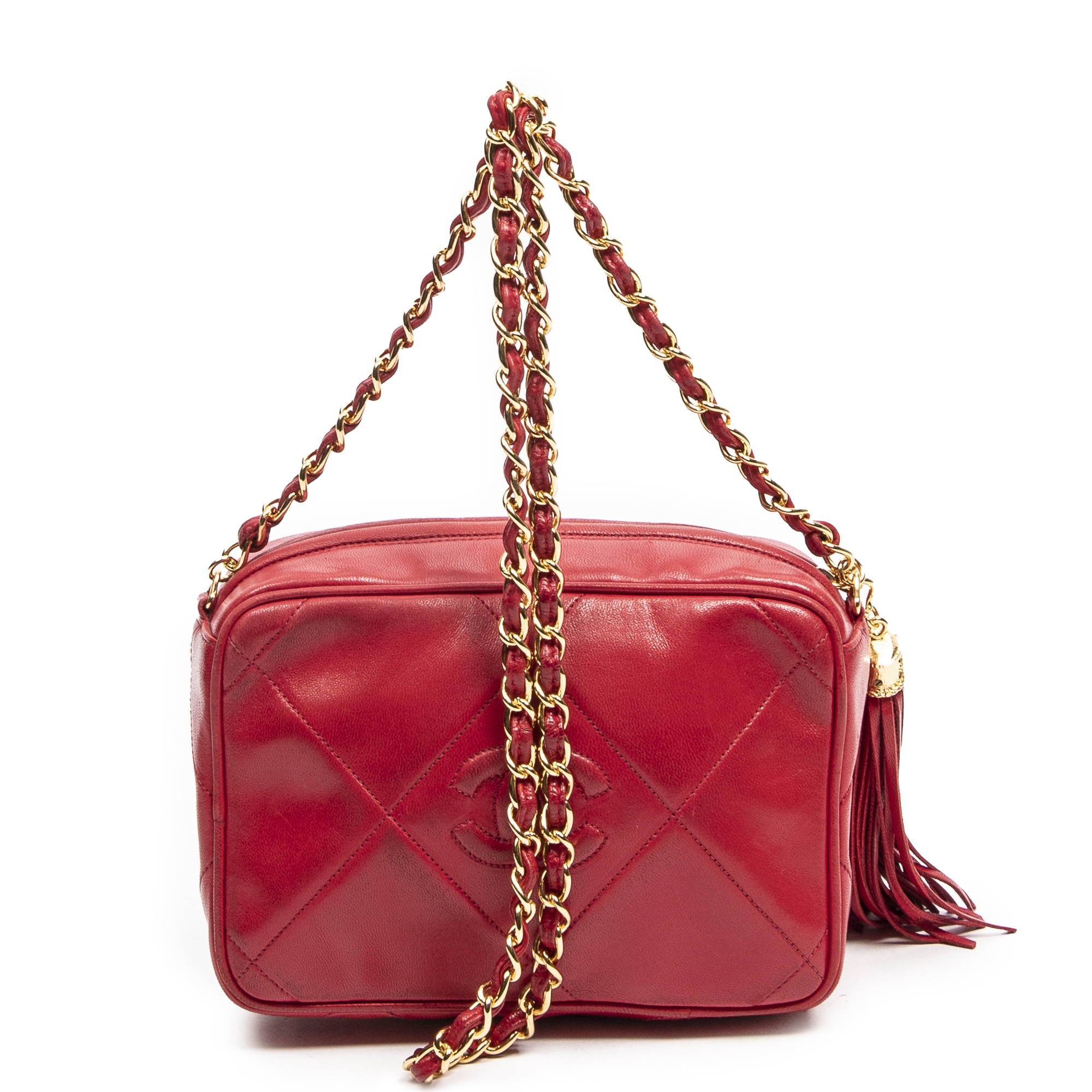Chanel Shoulder Bag Vintage Mini Camera Bag in Red Diamond Quilted Lambskin Leather and Gold hardware. The product is in Excellent Condition (A).