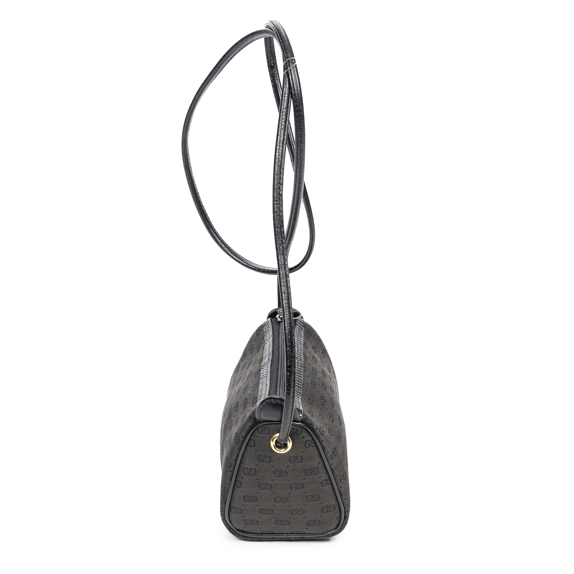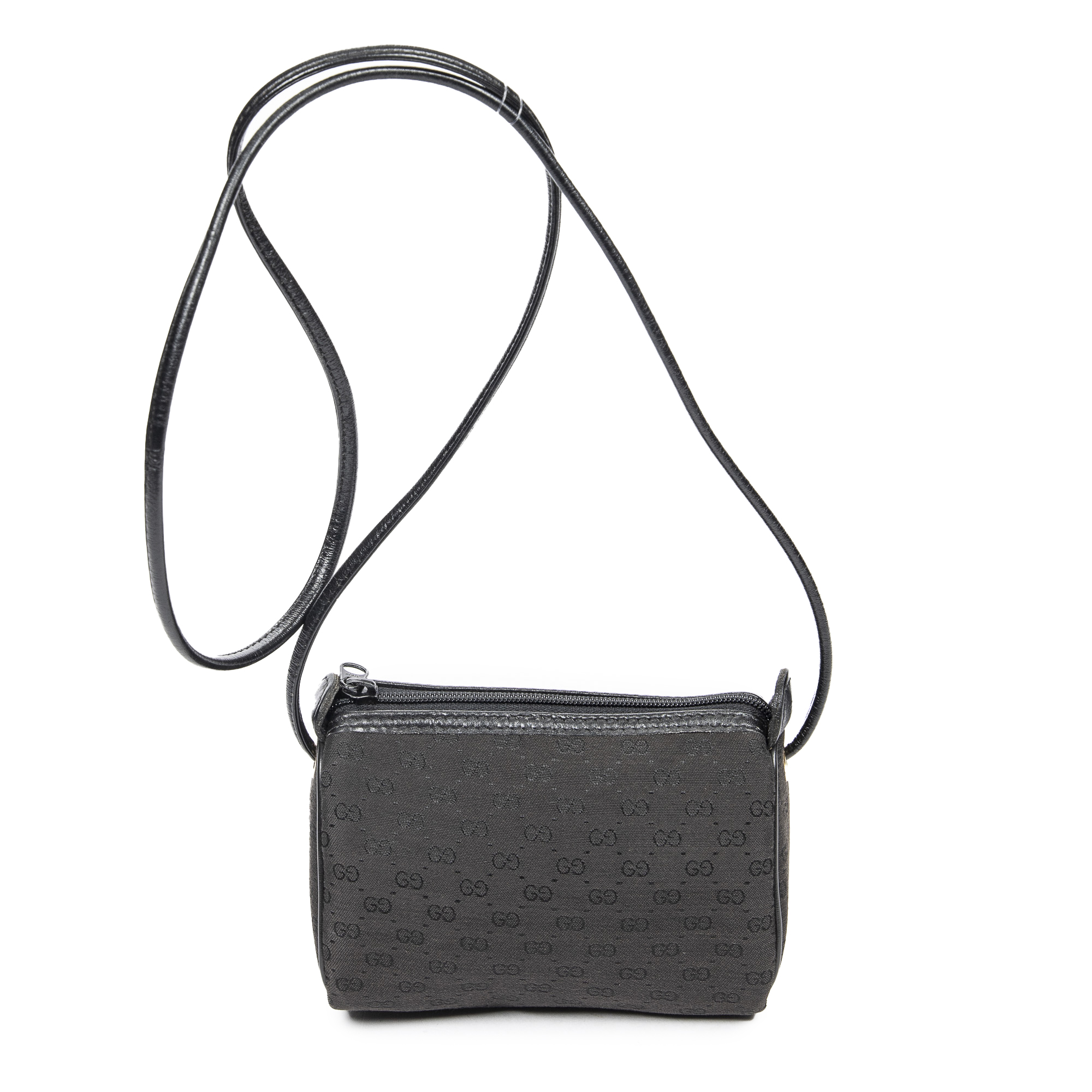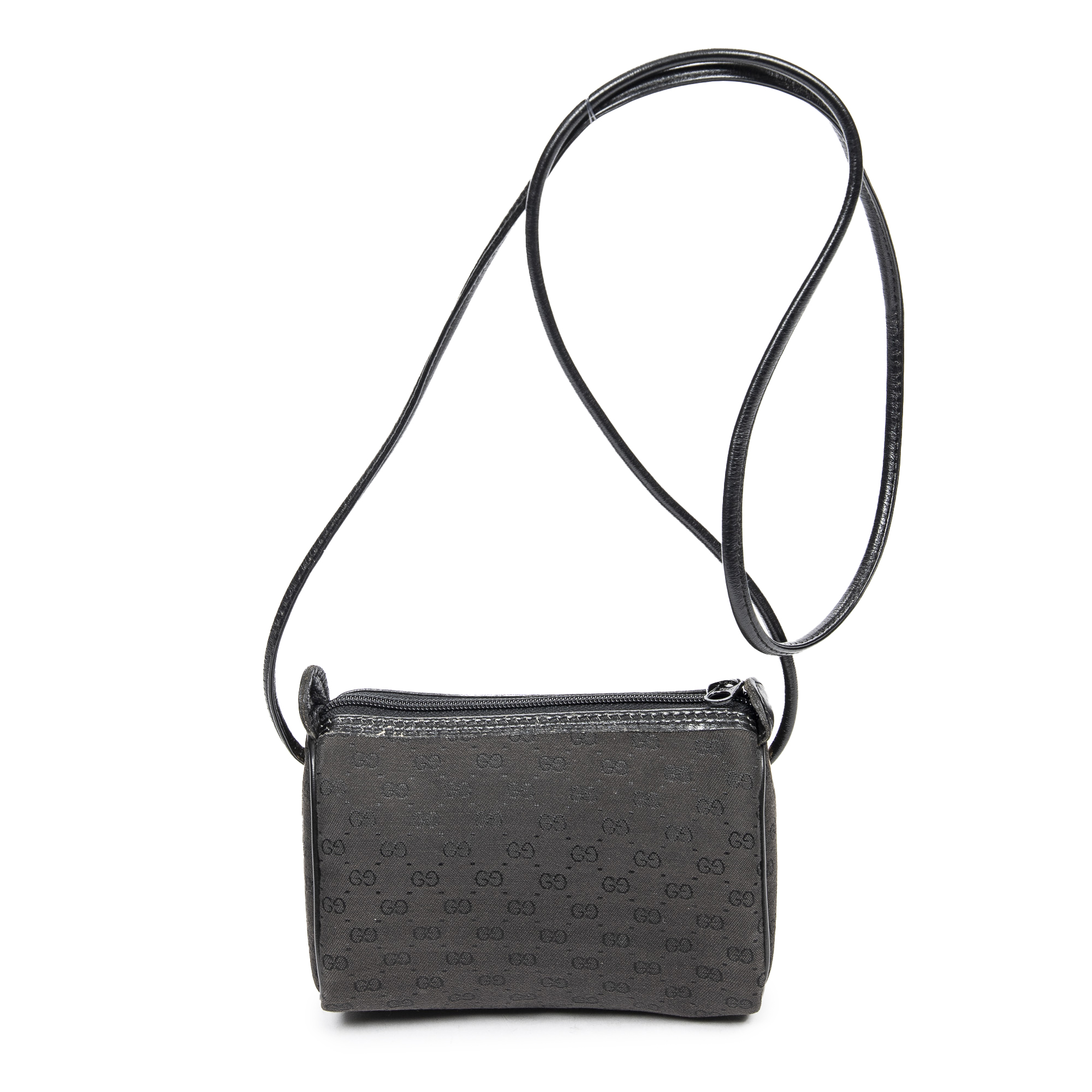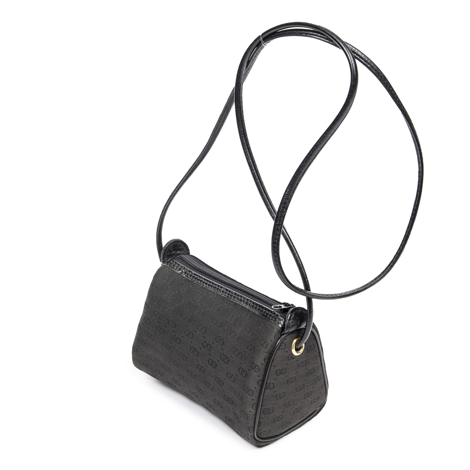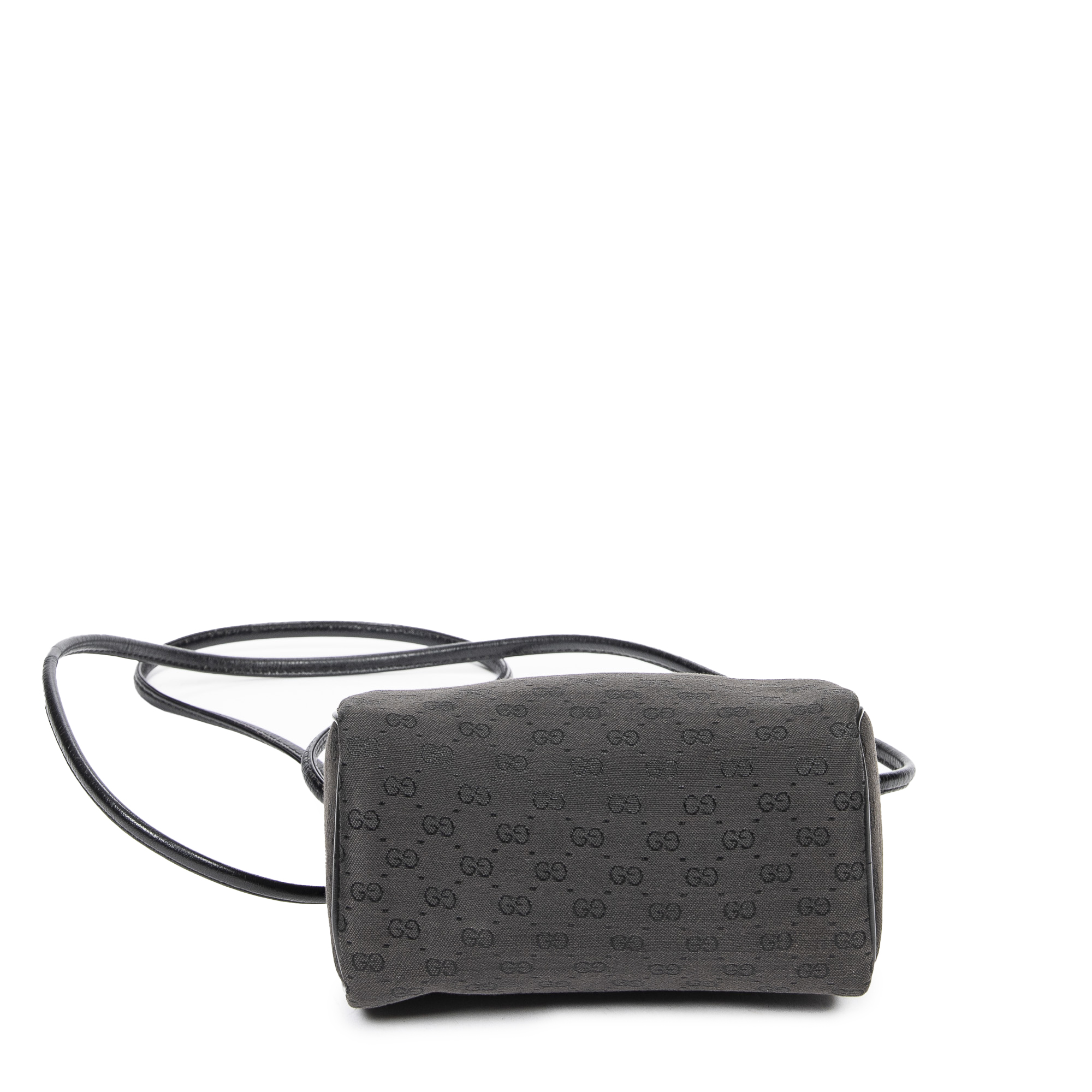Gucci Shoulder Bag Vintage Mini Pochette Crossbody in Black Microguccissima Canvas and Gold hardware. The product is in Excellent Condition (A).