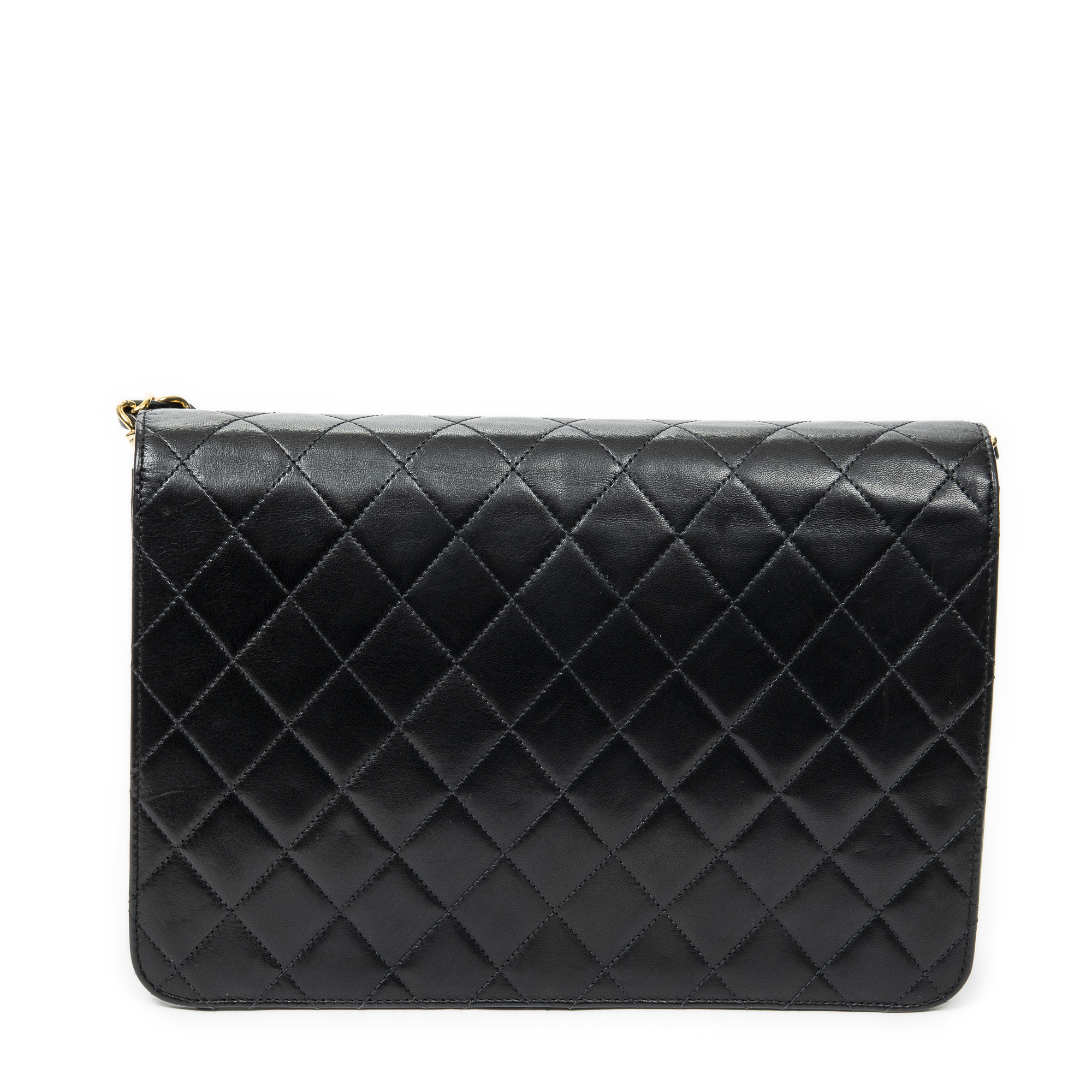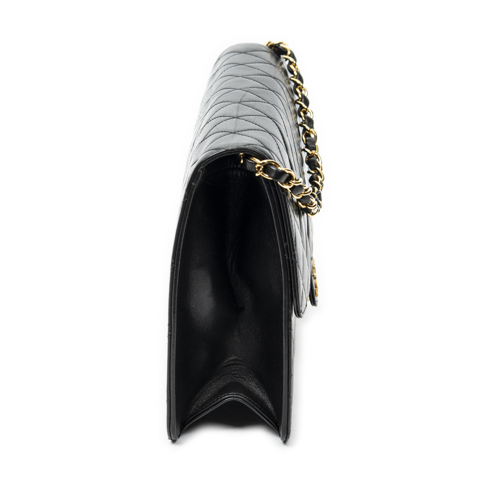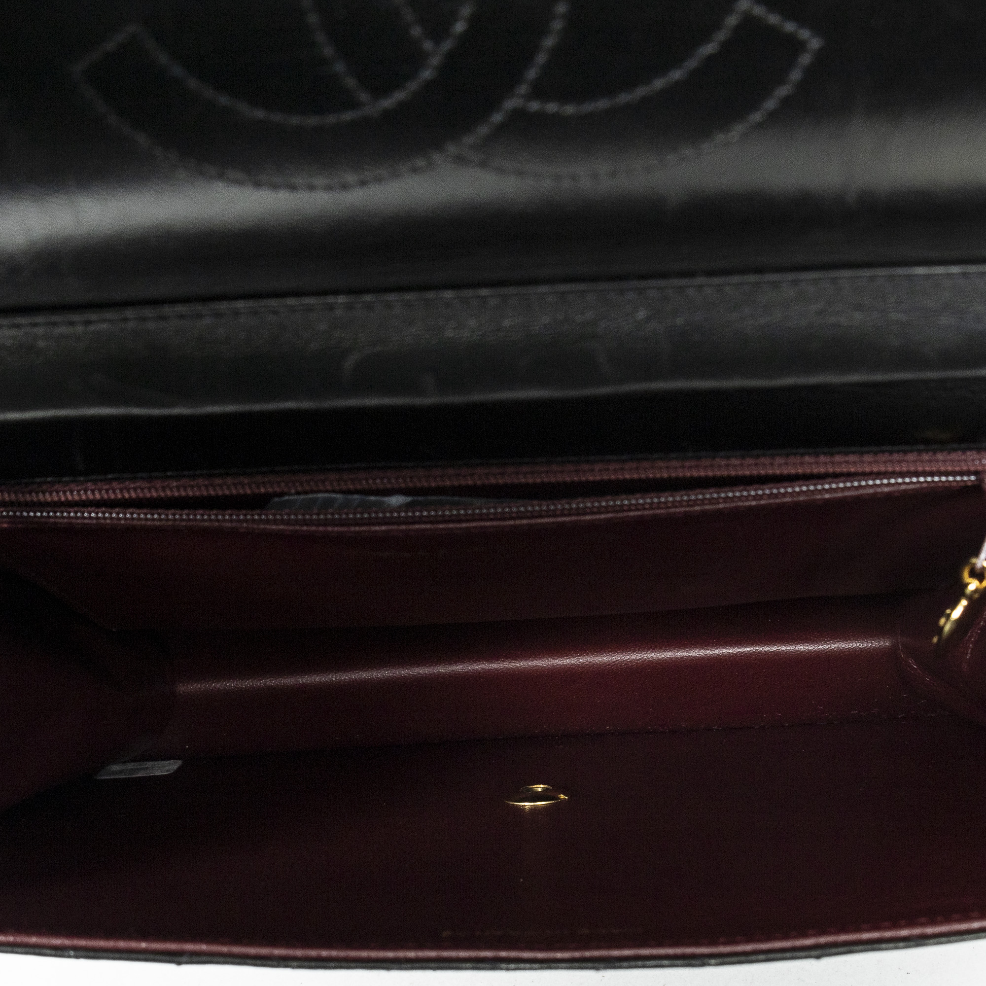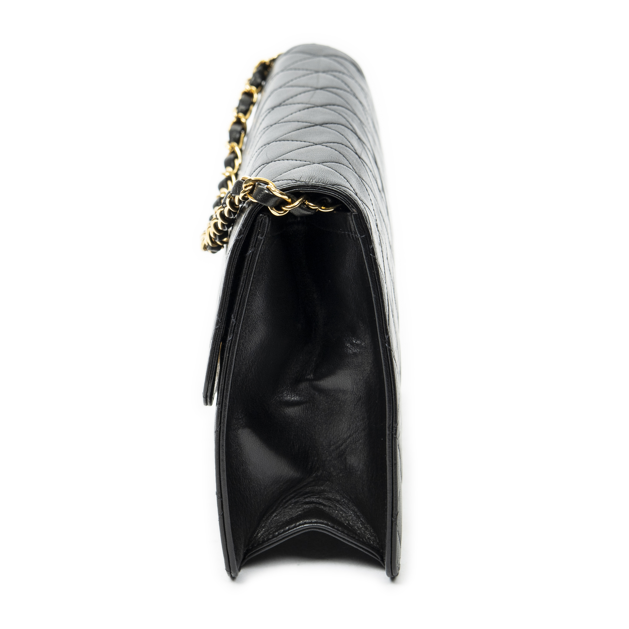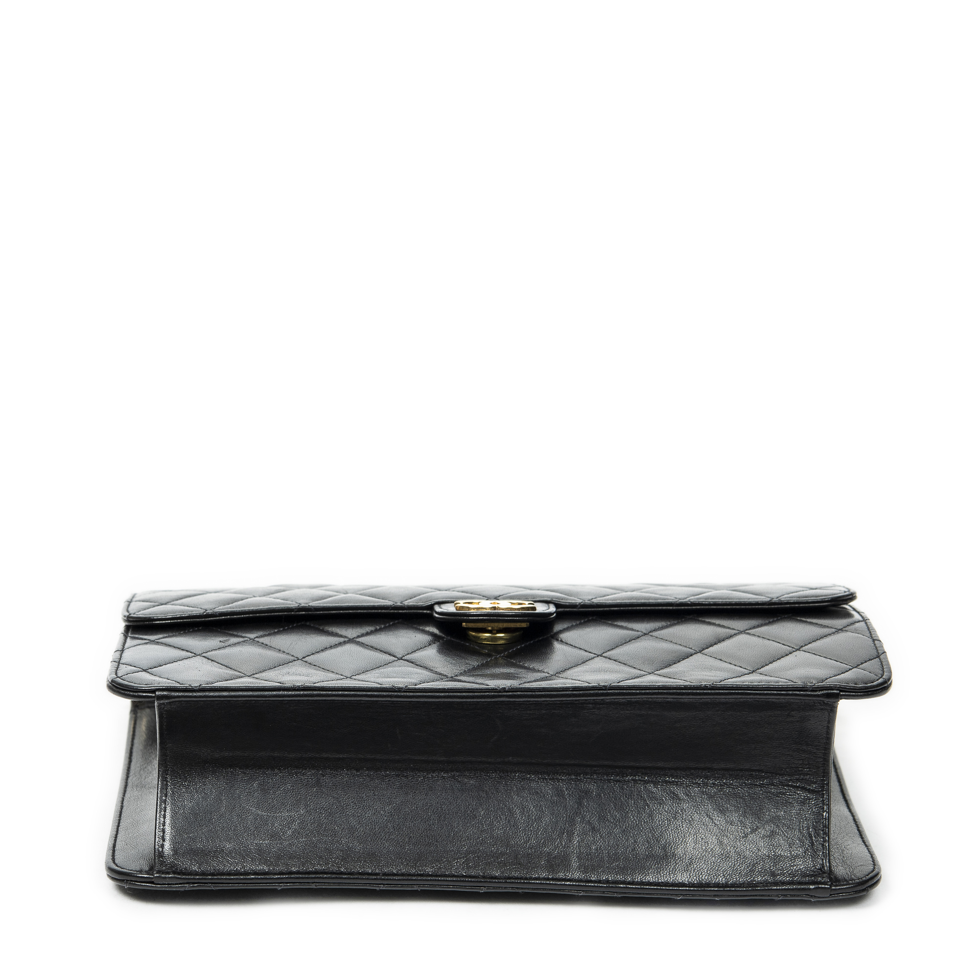 Chanel Shoulder bag Vintage Push Lock Straight Flap in Black Quilted Lambskin Leather and Gold hardware. The product is in Excellent Condition (A).