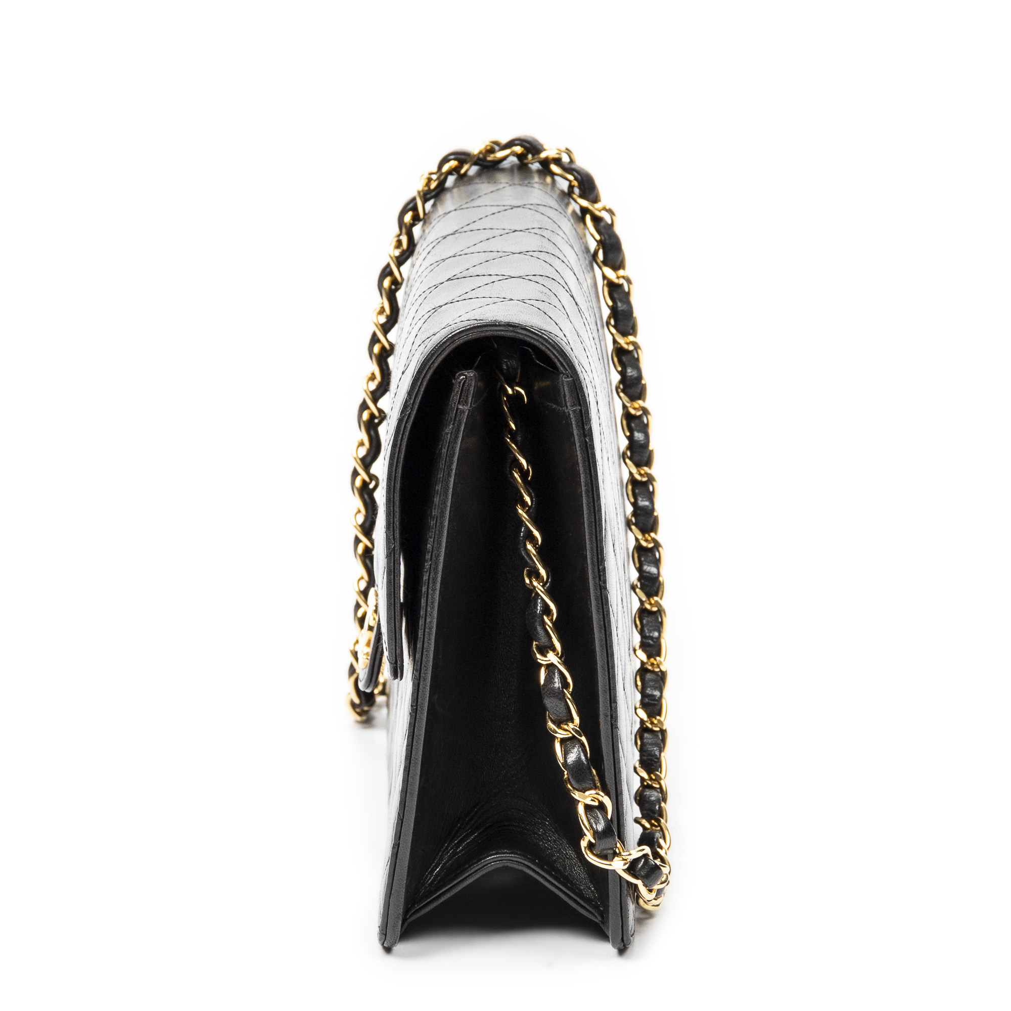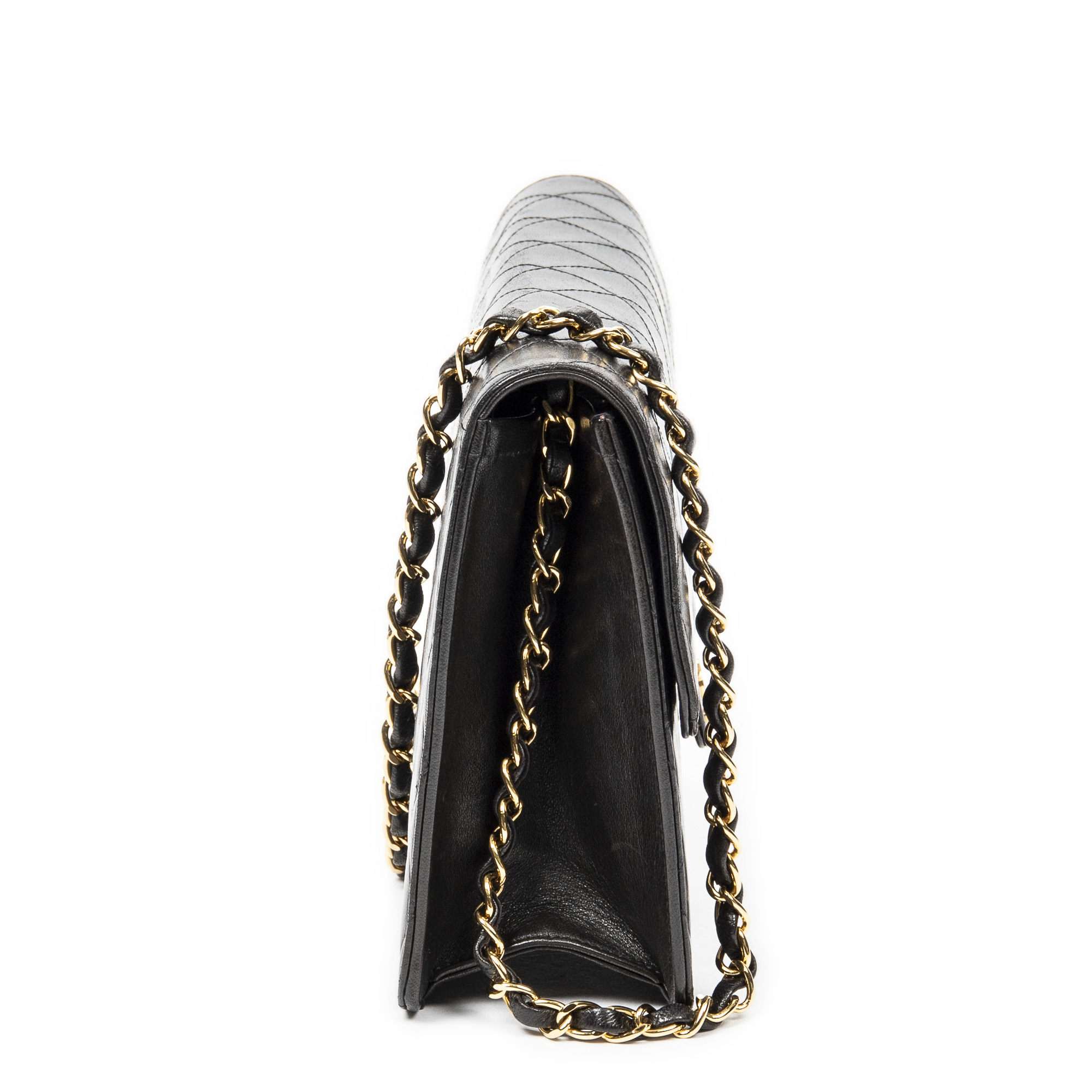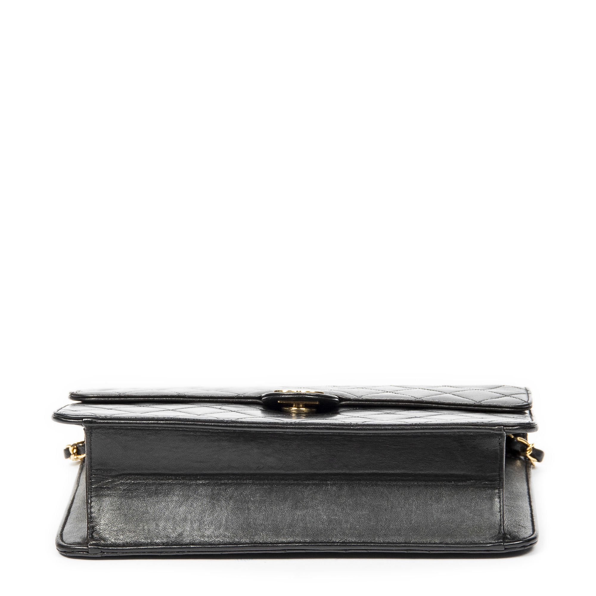 Chanel Shoulder Bag Vintage Push Lock Straight Flap in Black Quilted Lambskin Leather and Gold hardware. The product is in Excellent Condition (A).