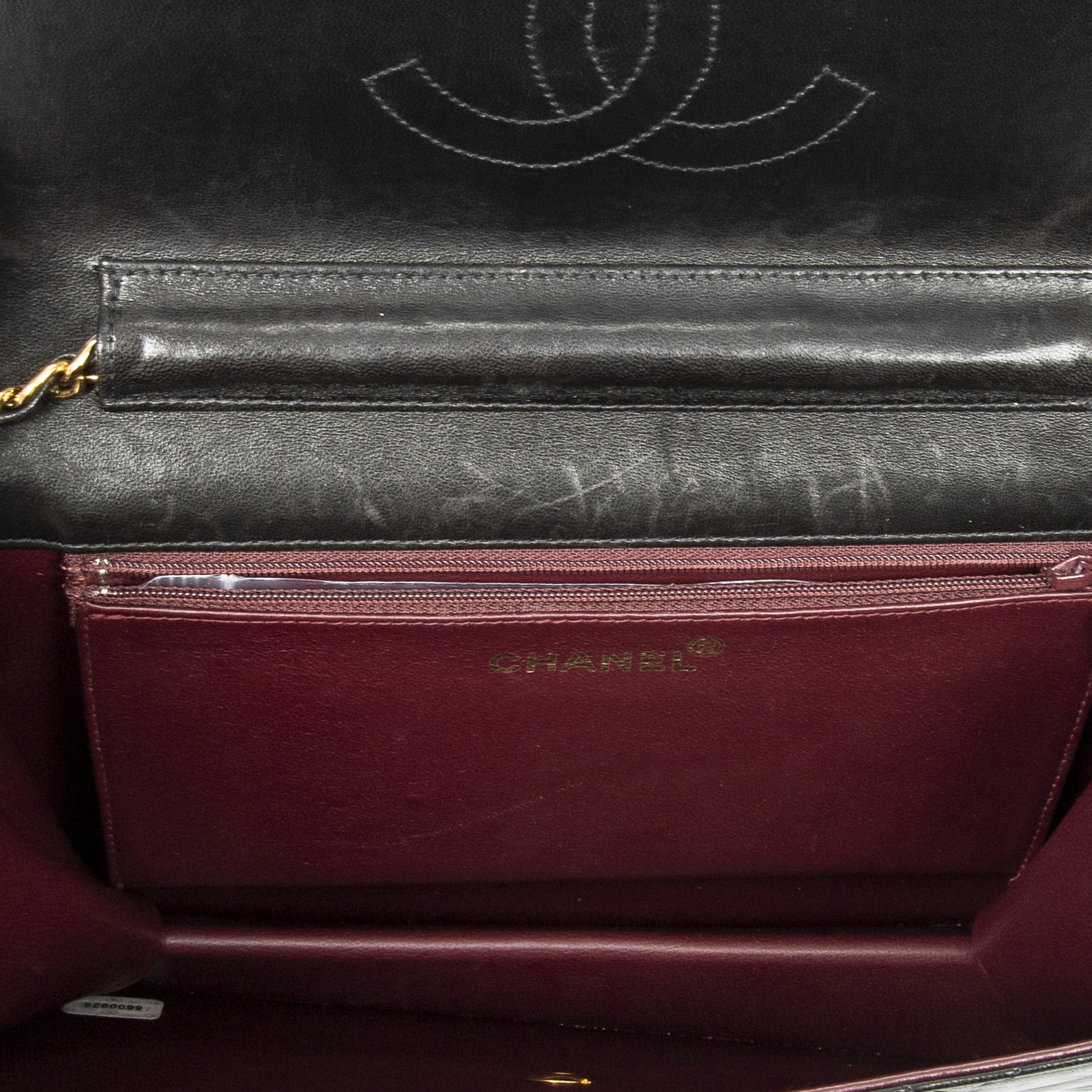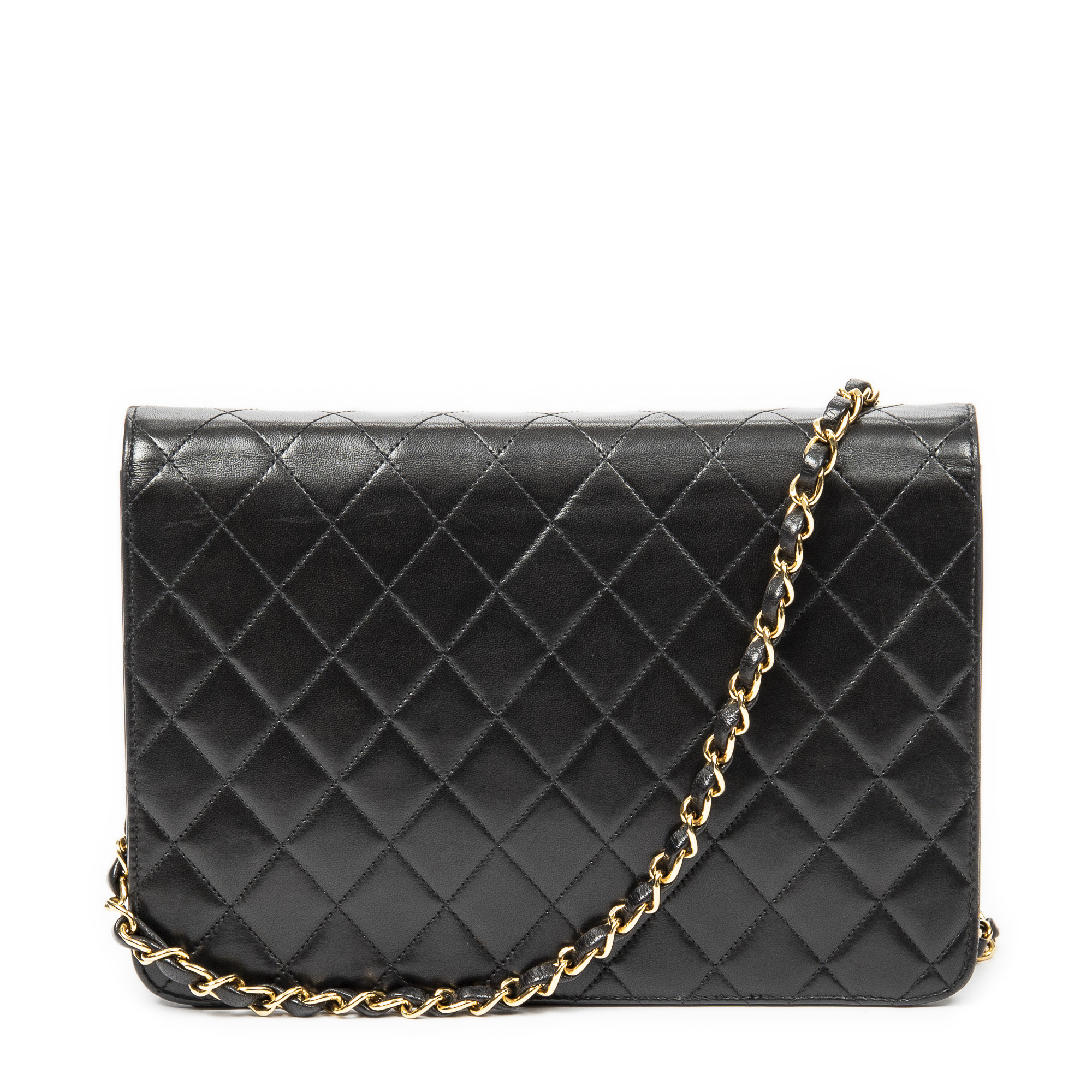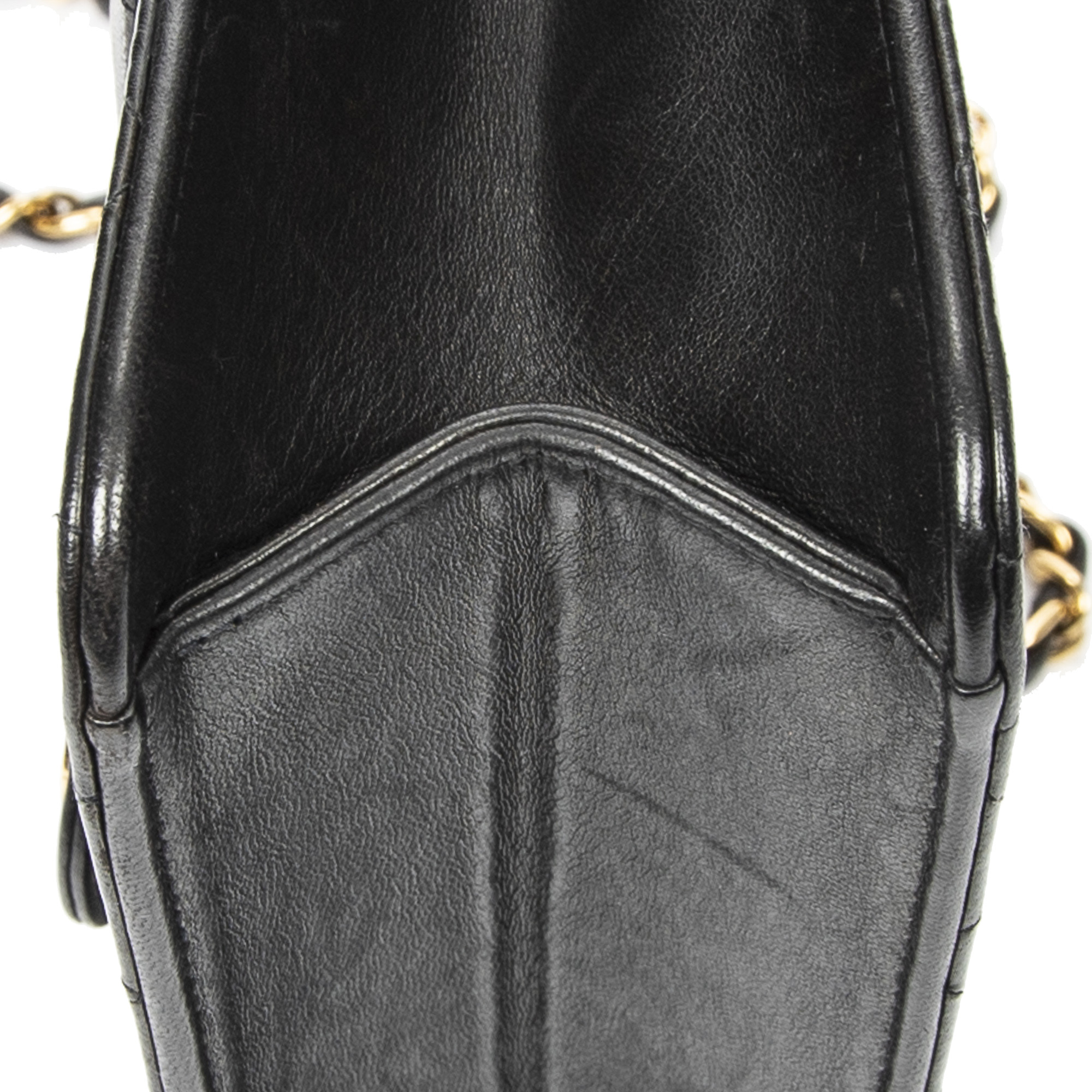 Chanel Shoulder Bag Vintage Push Lock Straight Flap in Black Quilted Lambskin Leather and Gold hardware. The product is in Excellent Condition (A).