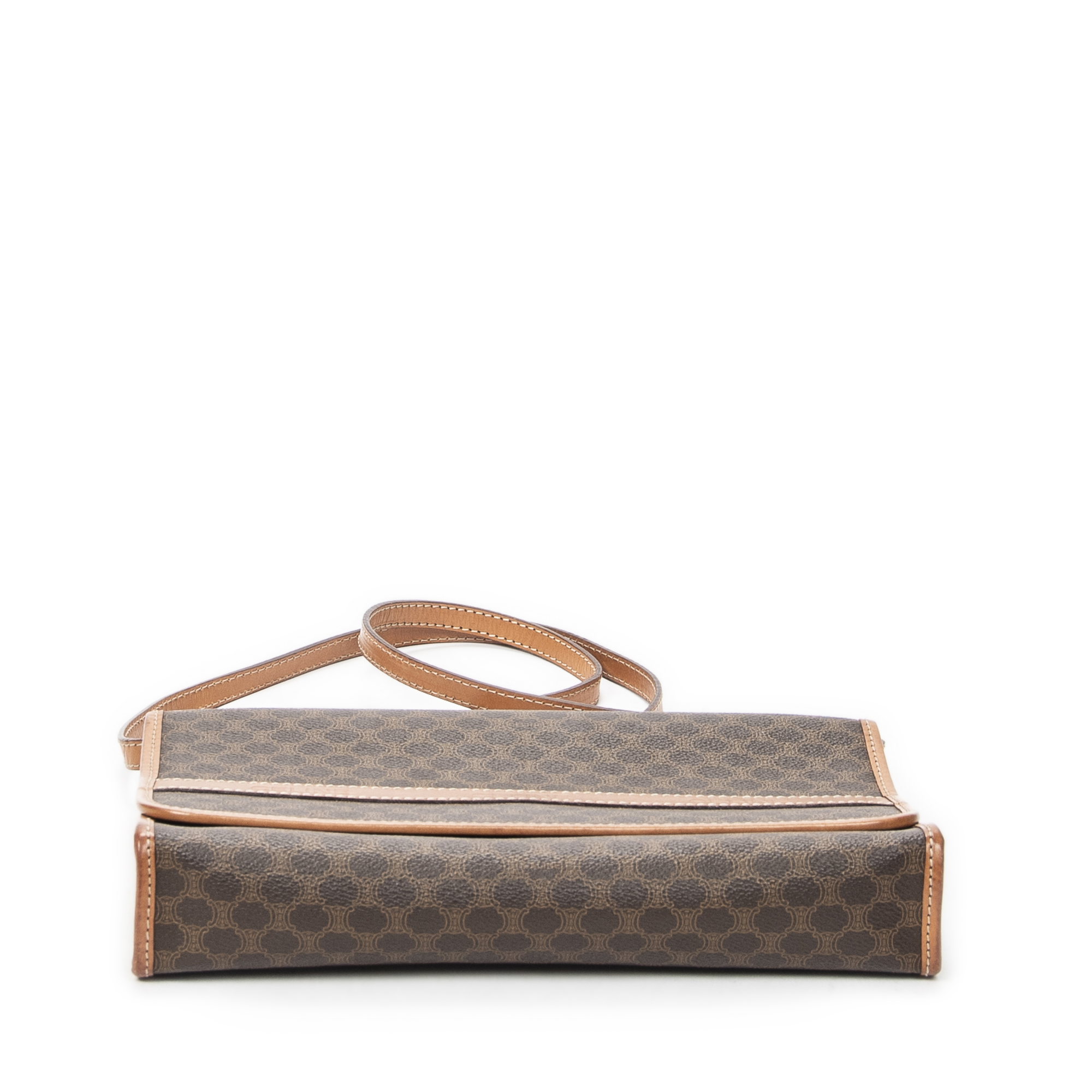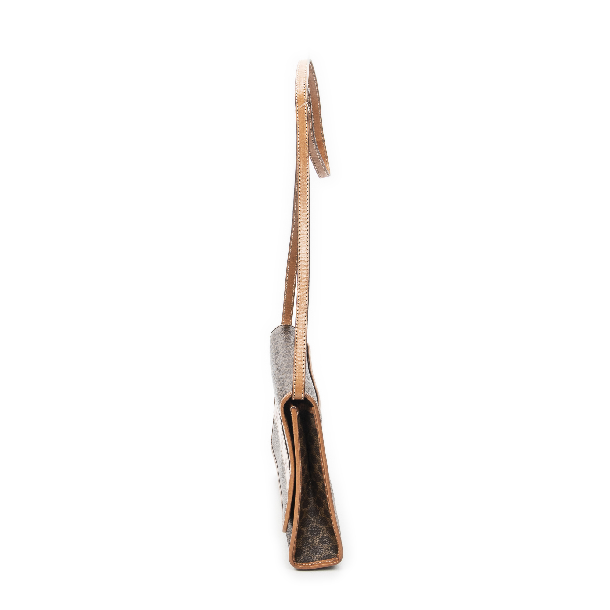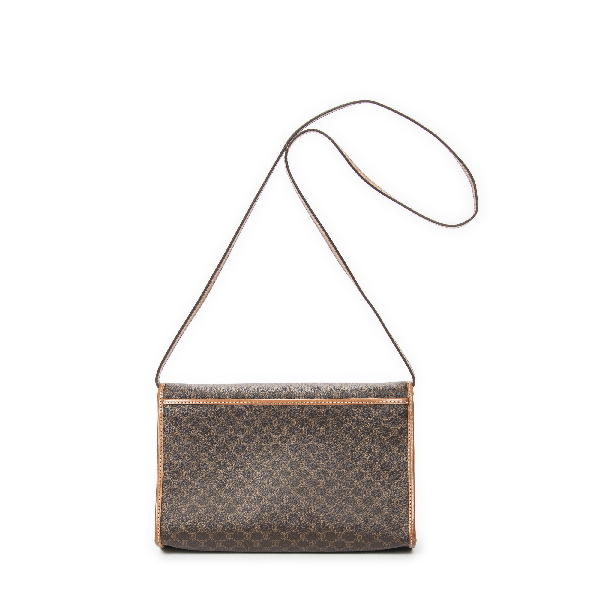 Celine Shoulder Bag Vintage Rectangular Crossbody in Brown Macadam Coated Canvas and Gold hardware. The product is in Excellent Condition (A).