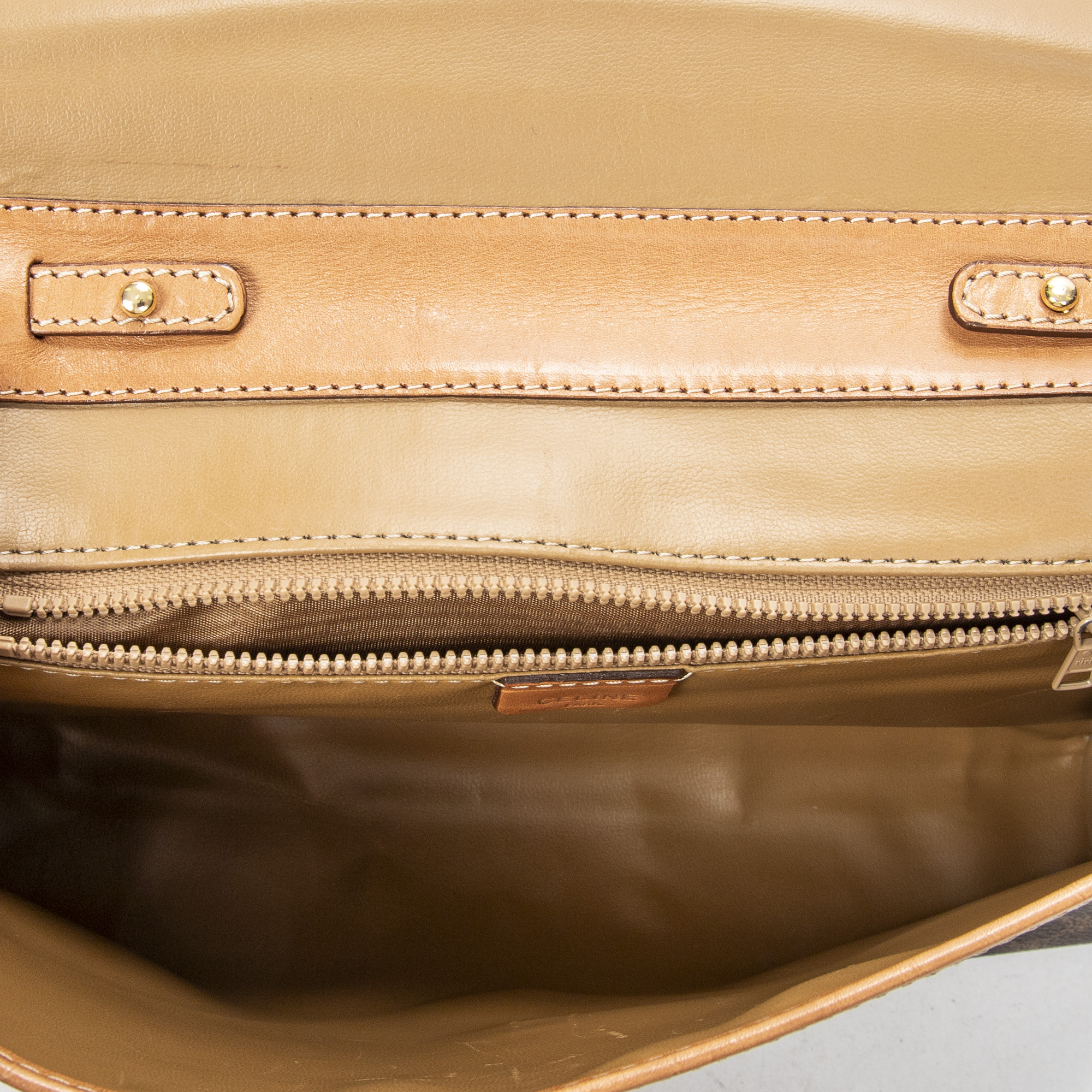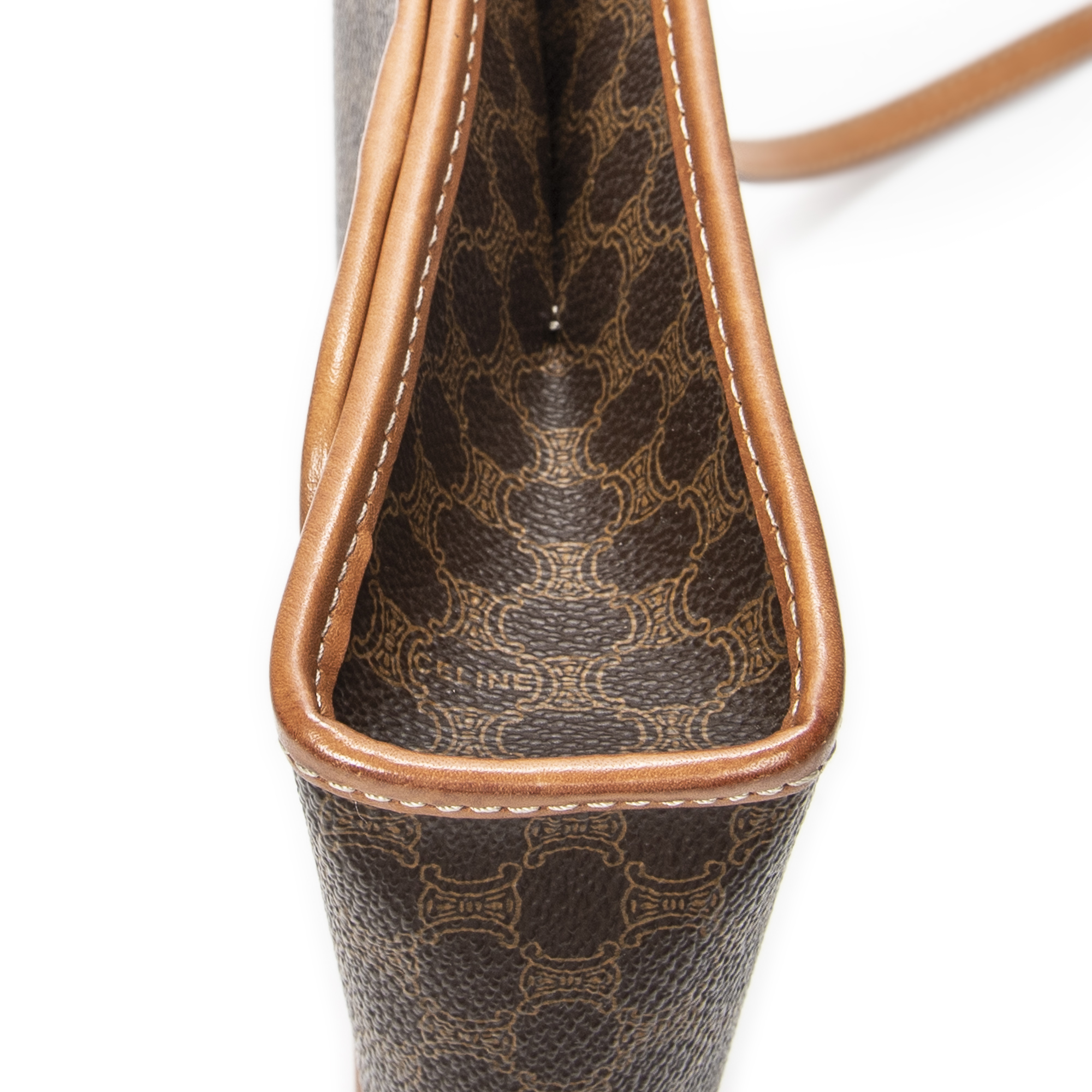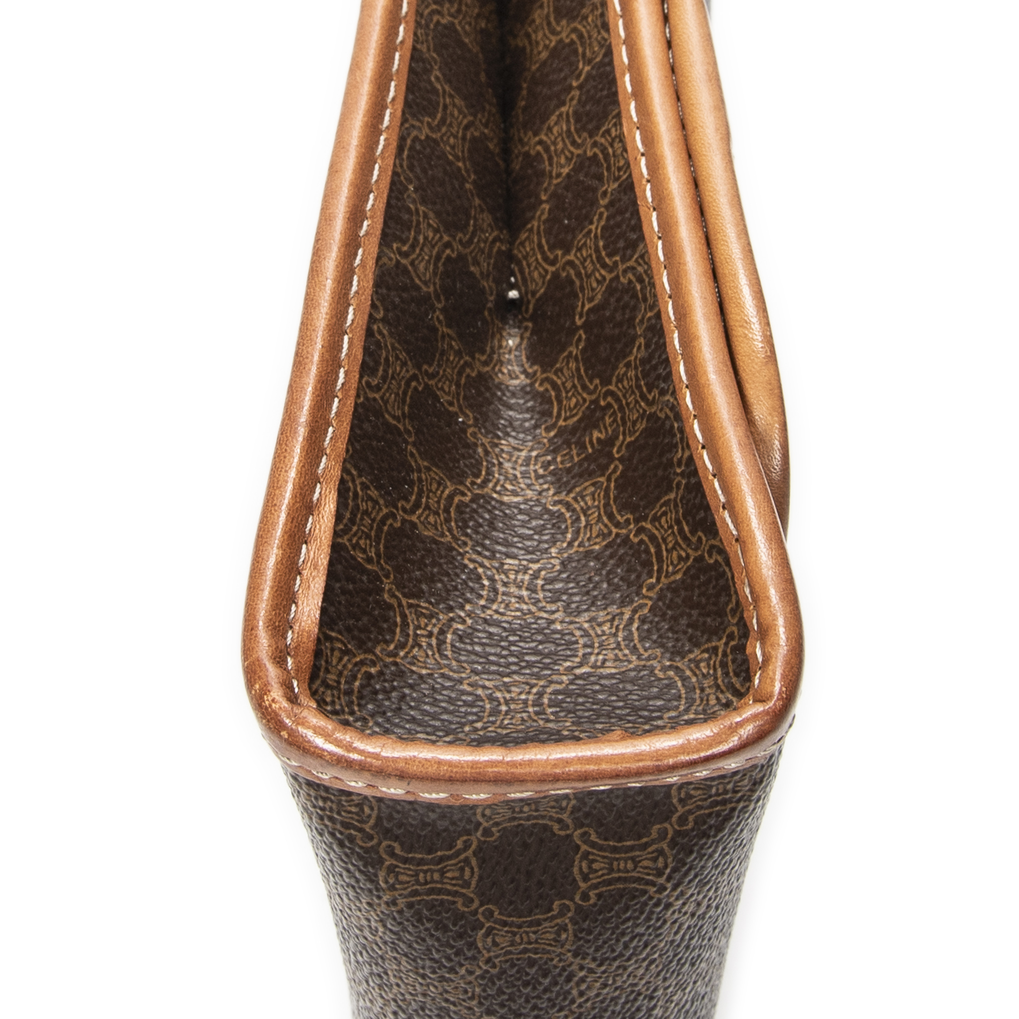 Celine Shoulder Bag Vintage Rectangular Crossbody in Brown Macadam Coated Canvas and Gold hardware. The product is in Excellent Condition (A).