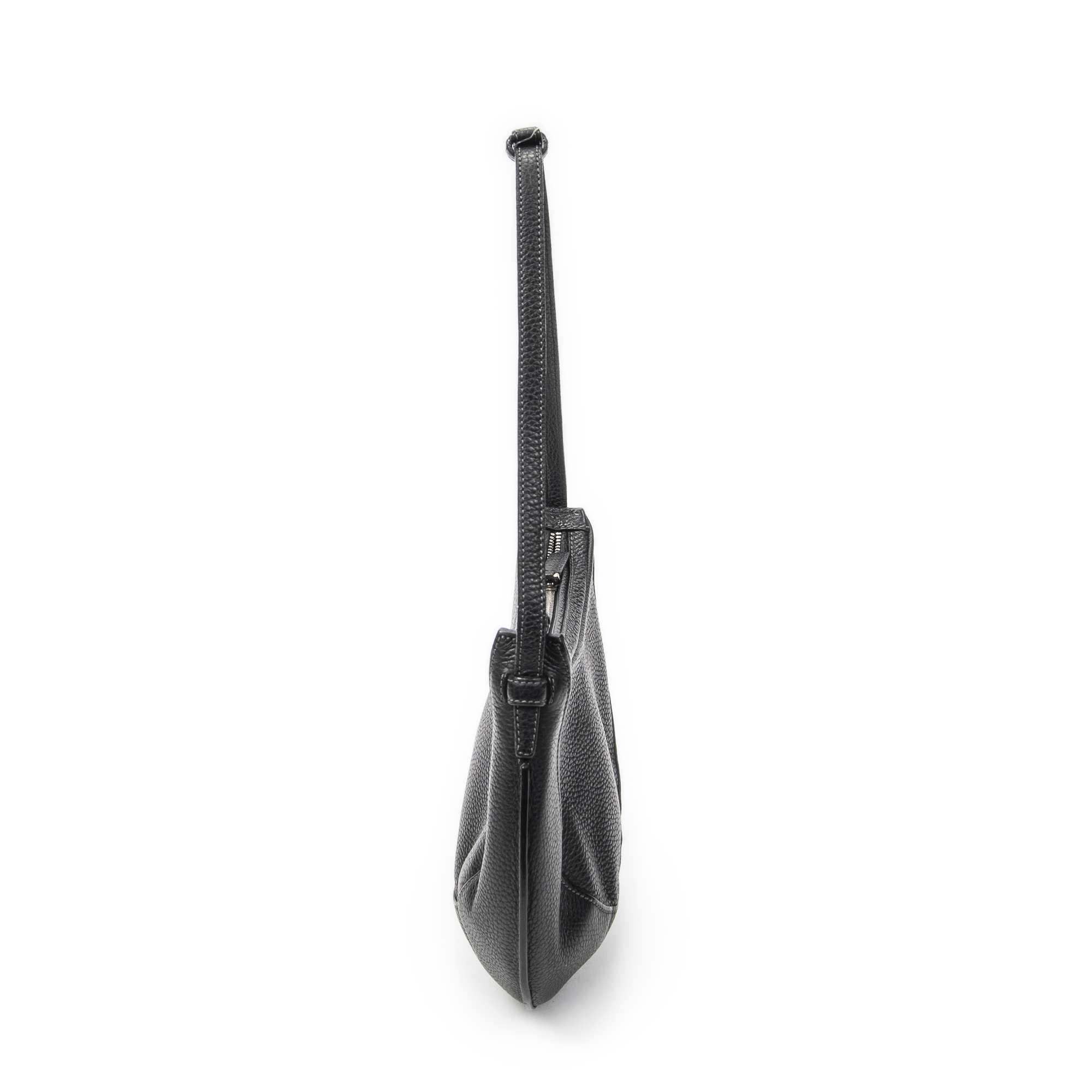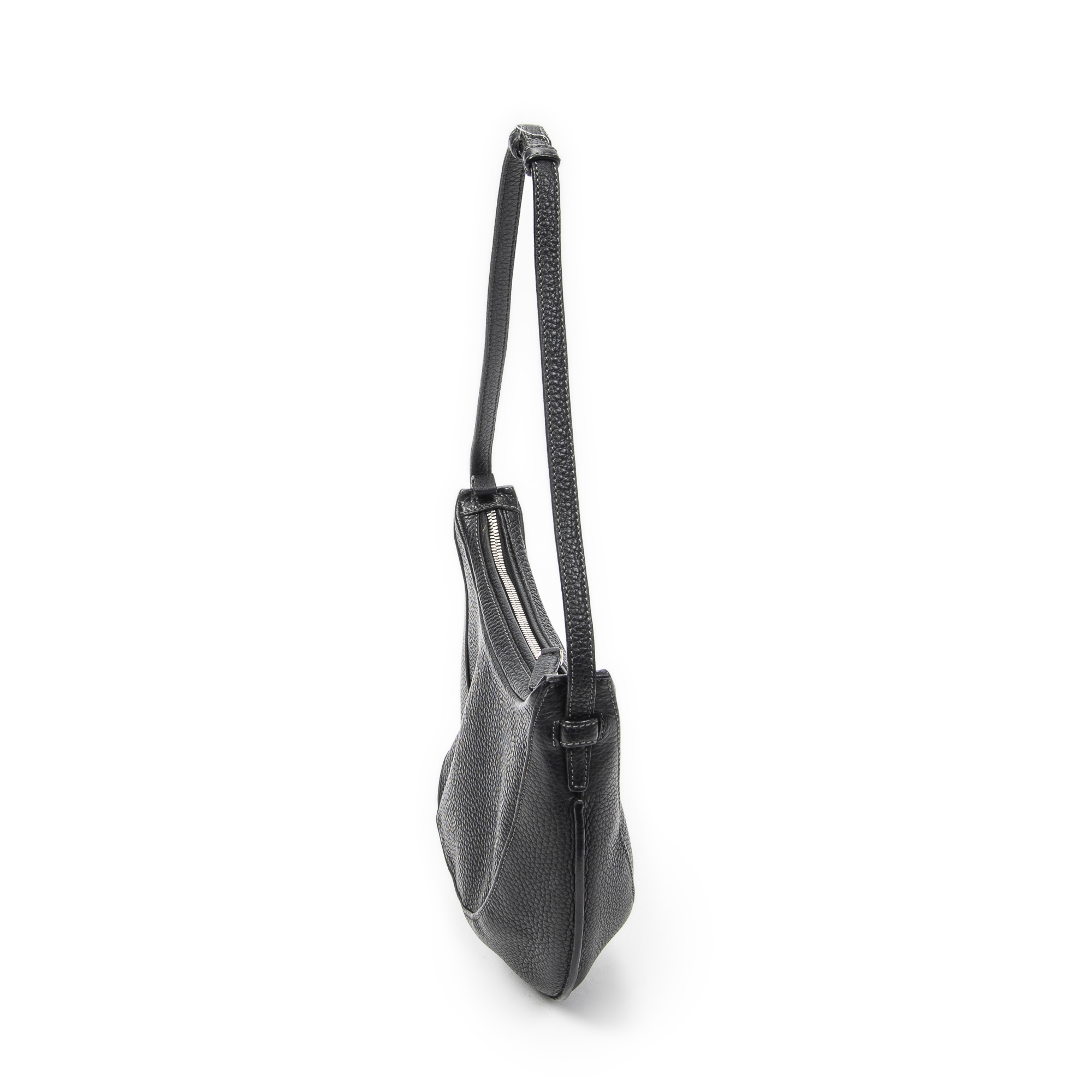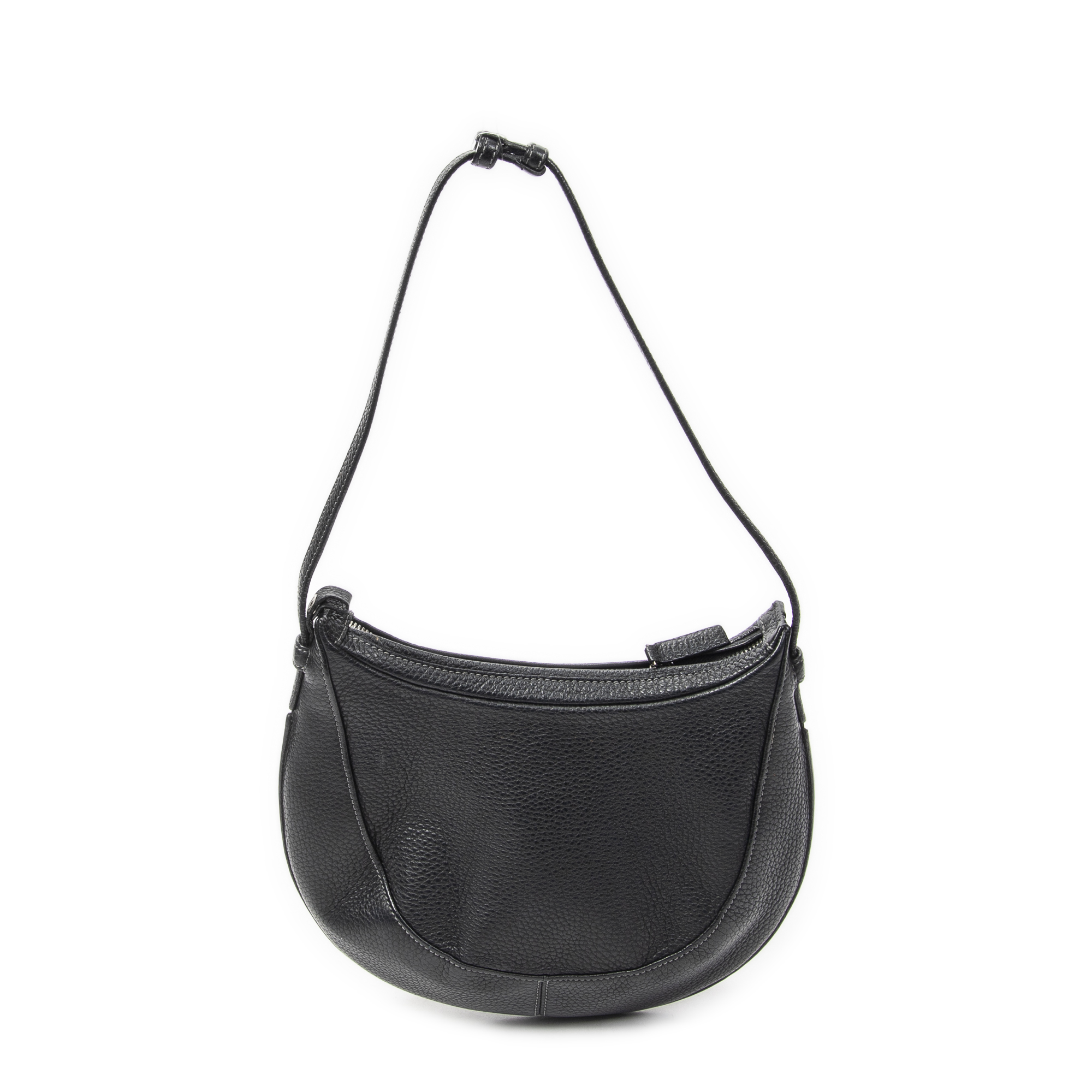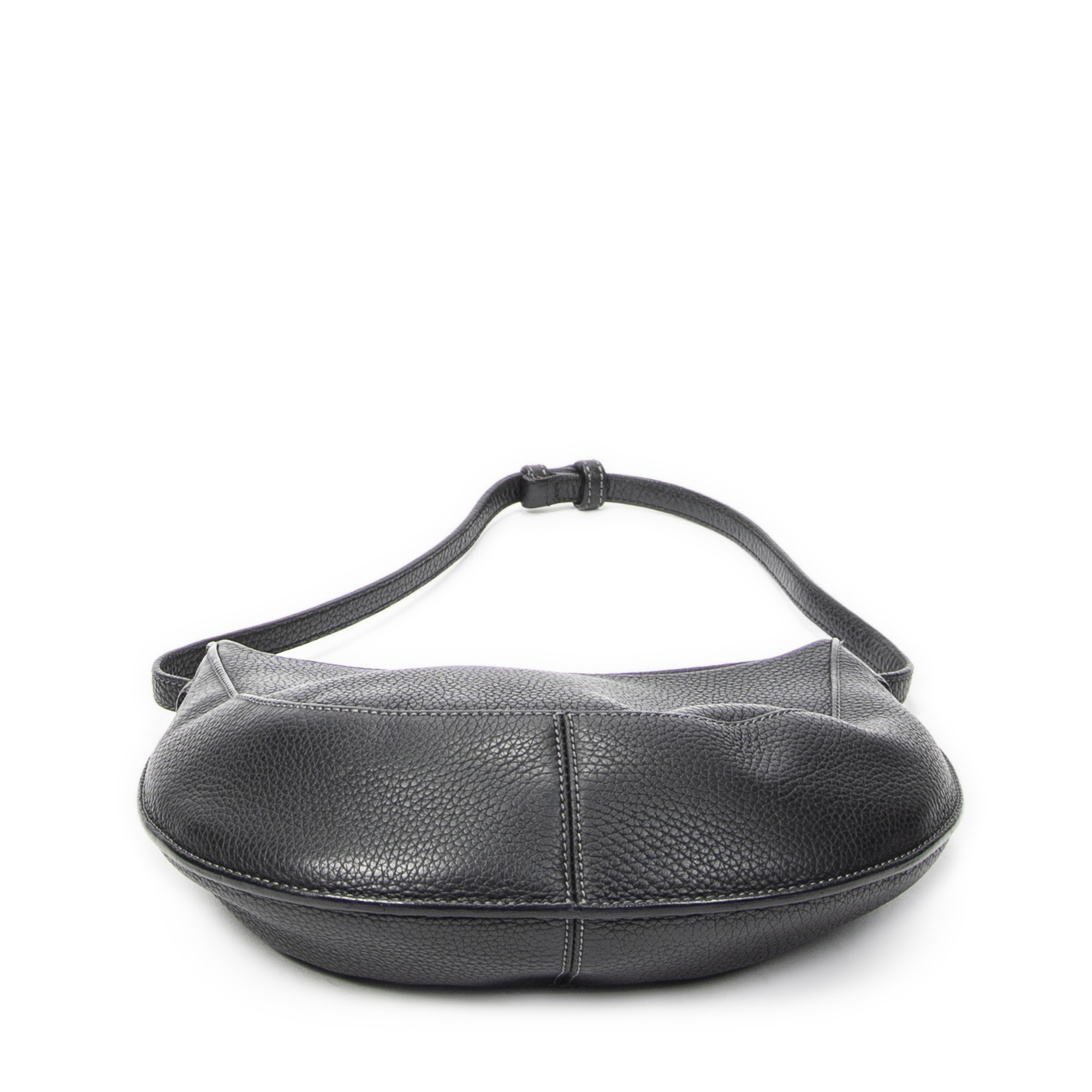 Loewe Shoulder Bag Vintage Round Hobo in Black Grained Calfskin Leather and Silver hardware. The product is in Excellent Condition (A).