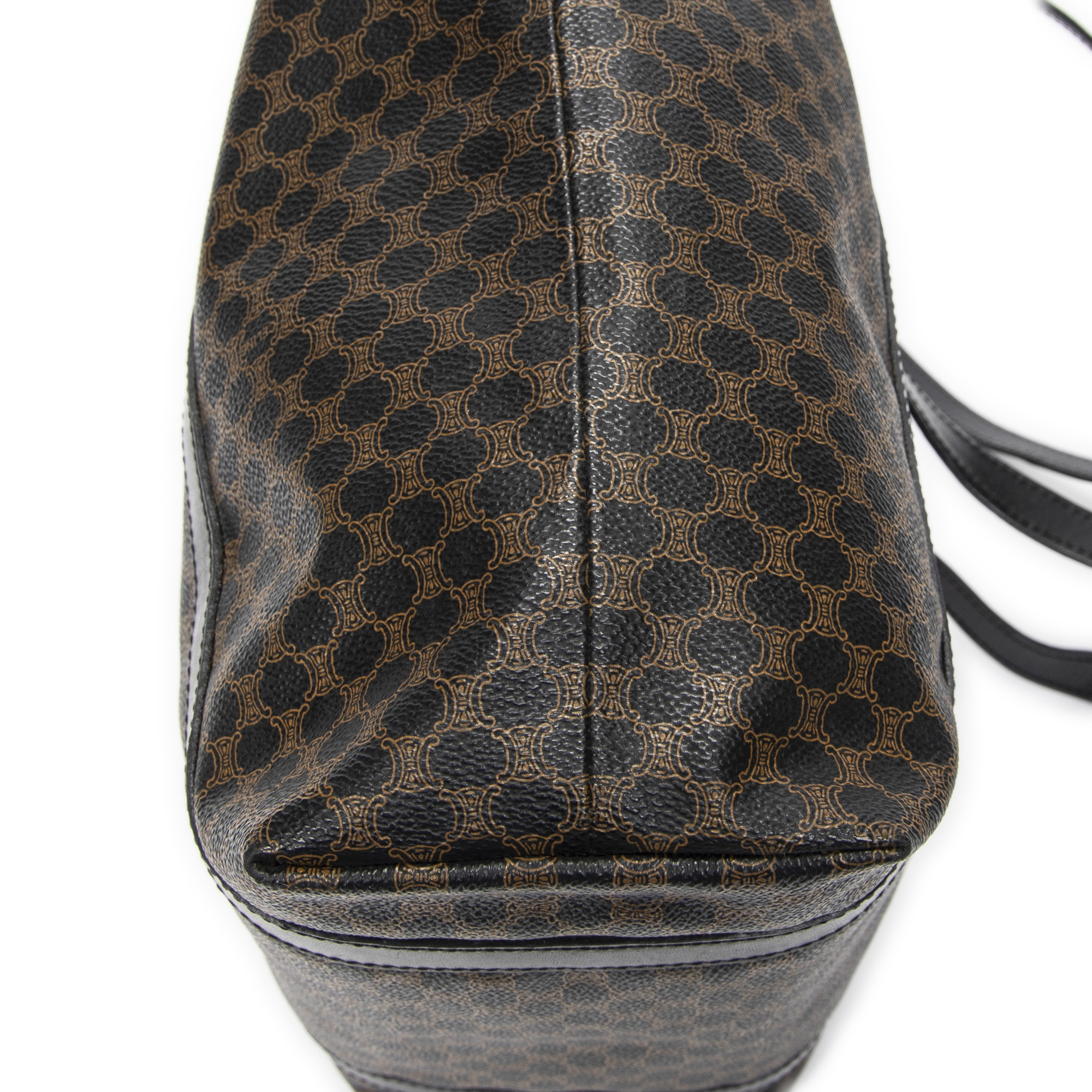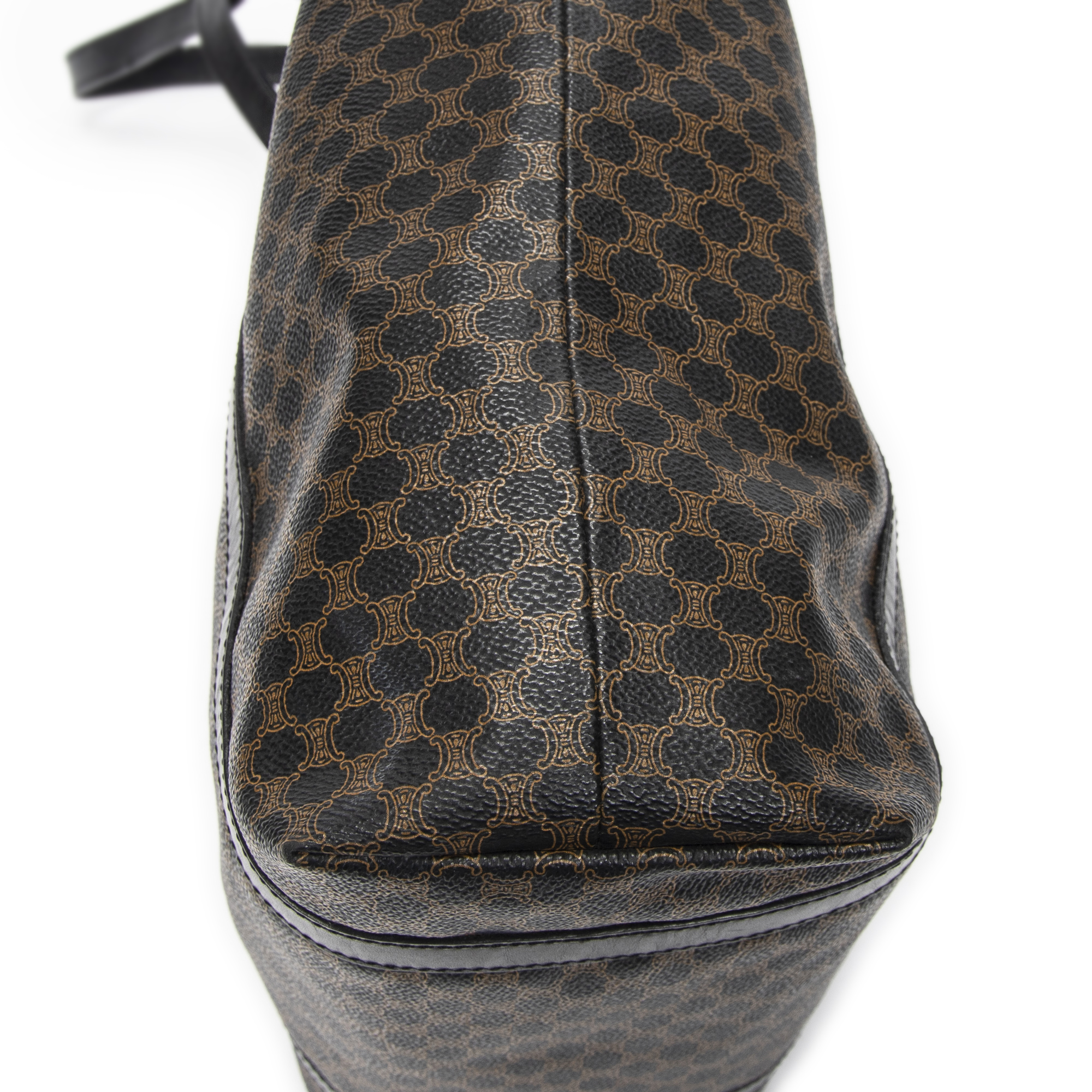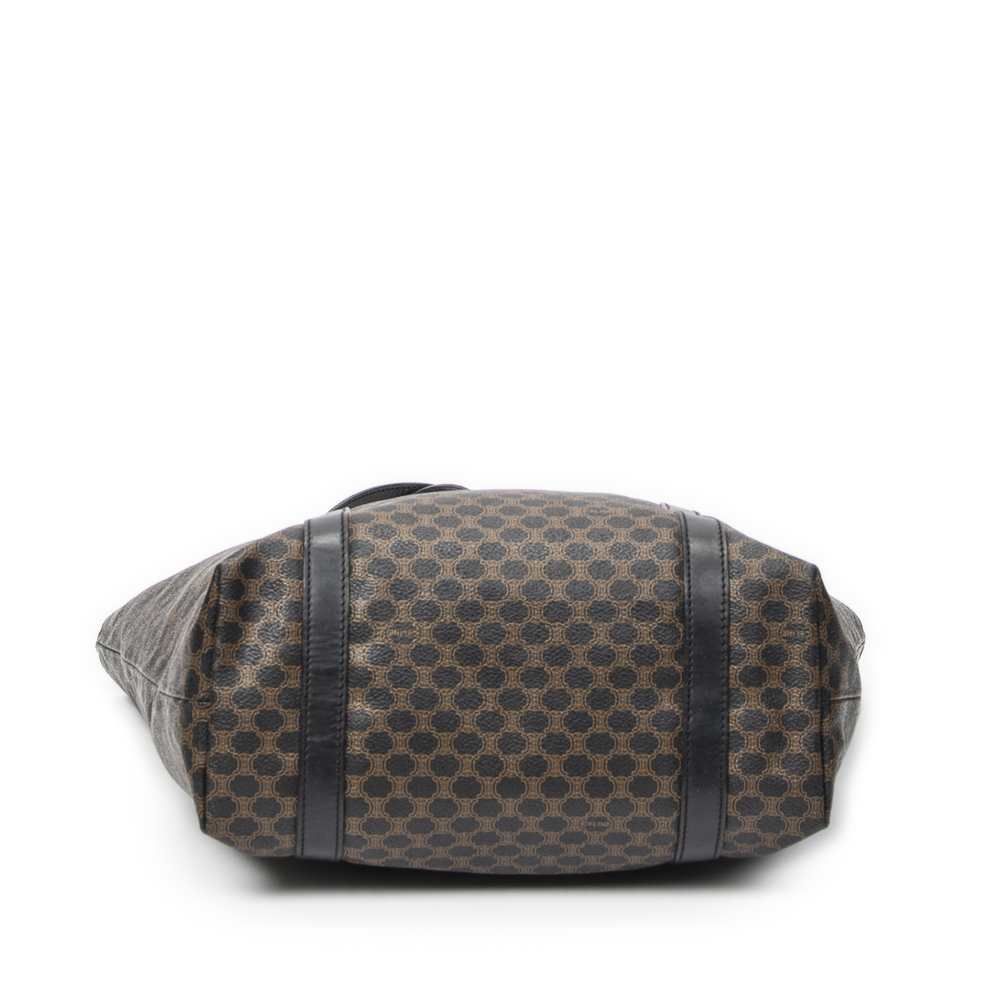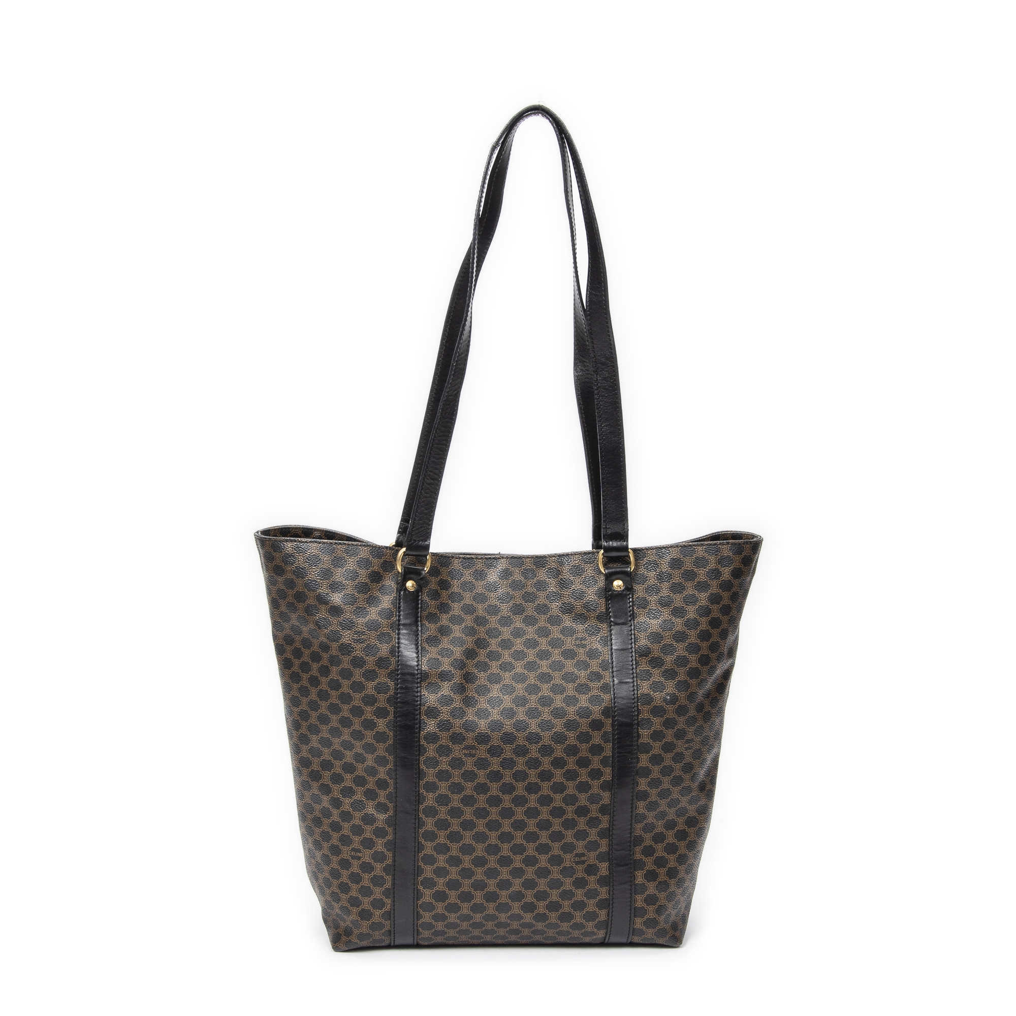 Celine Shoulder Bag Vintage Shopping Tote in Black/Brown Macadam Coated Canvas and Gold hardware. The product is in Very Good Condition (AB).