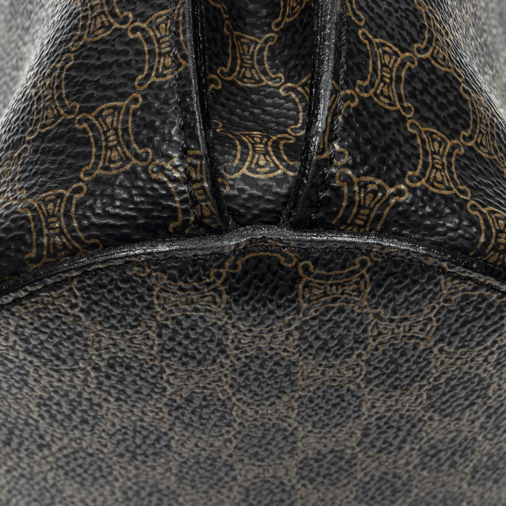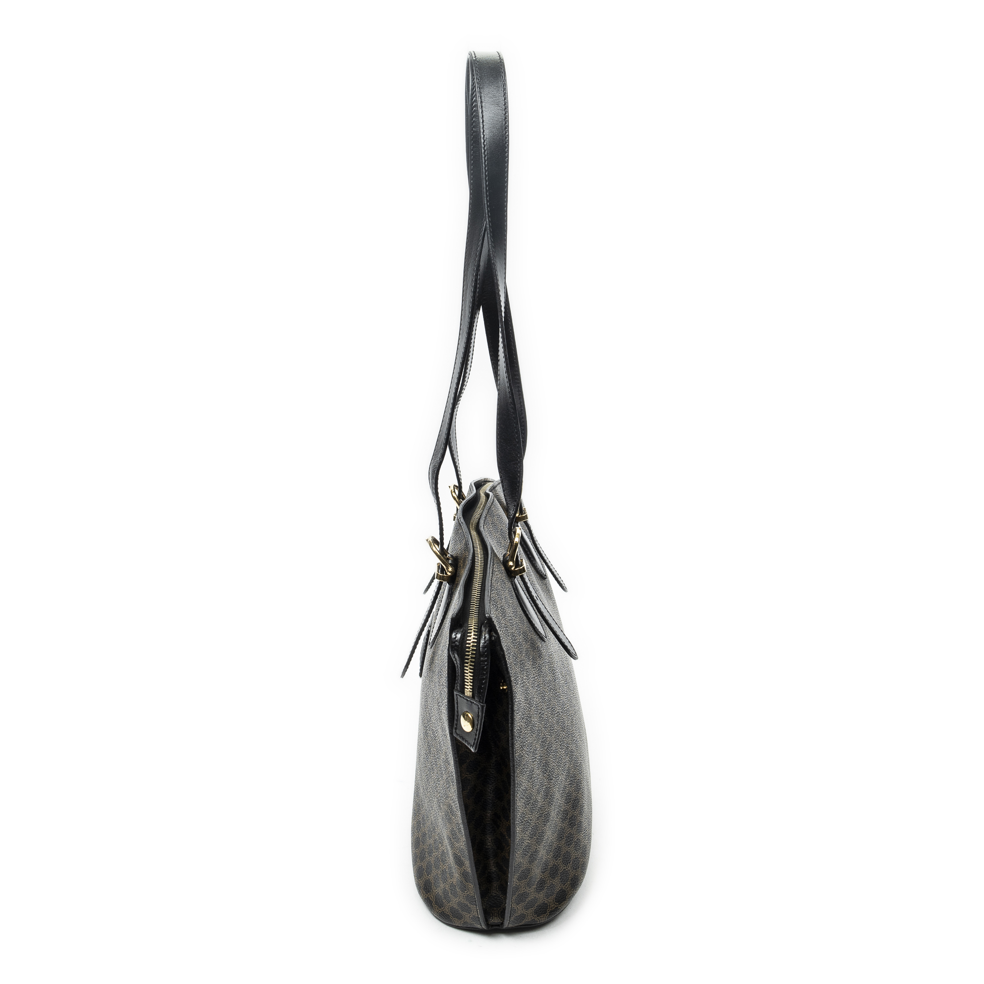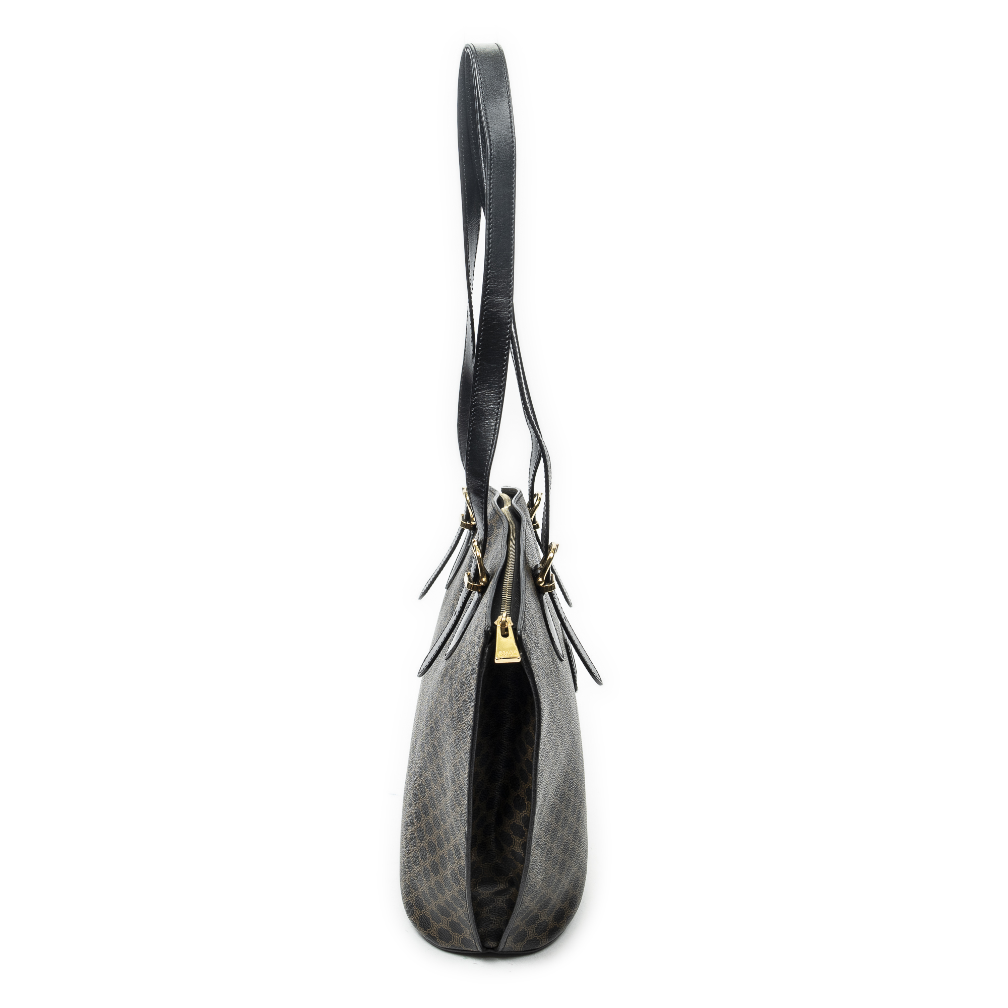 Celine Shoulder Bag Vintage Shoulder Zip Tote in Black/Brown Macadam Coated Canvas and Gold hardware. The product is in Excellent Condition (A).