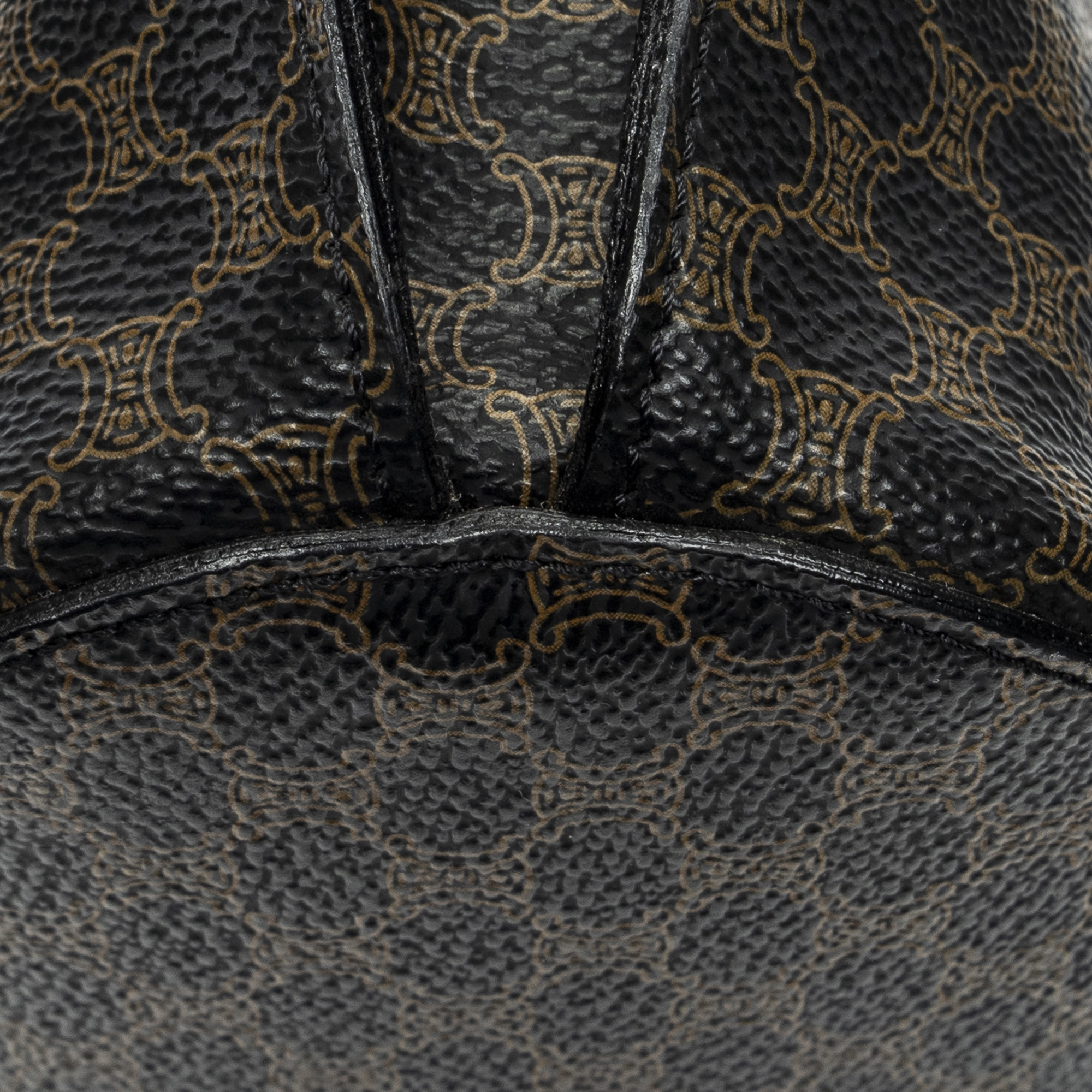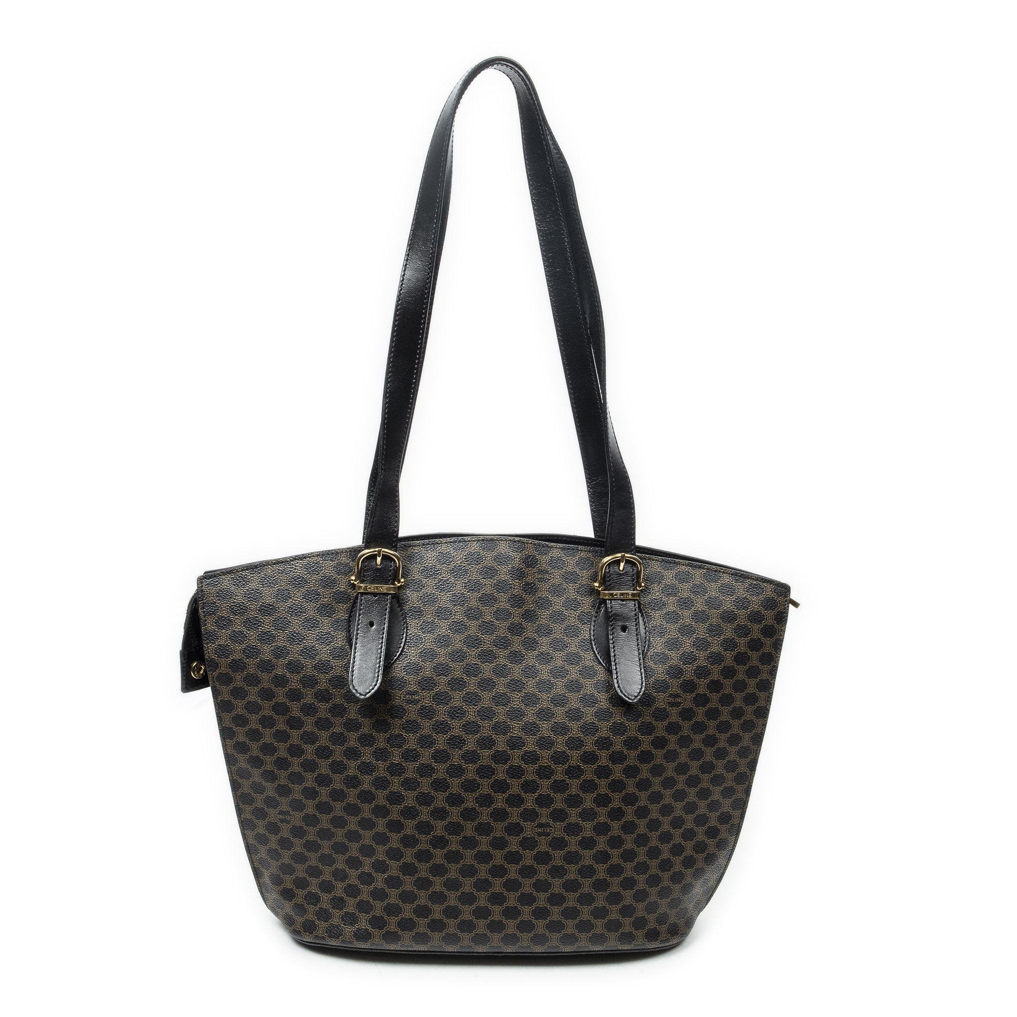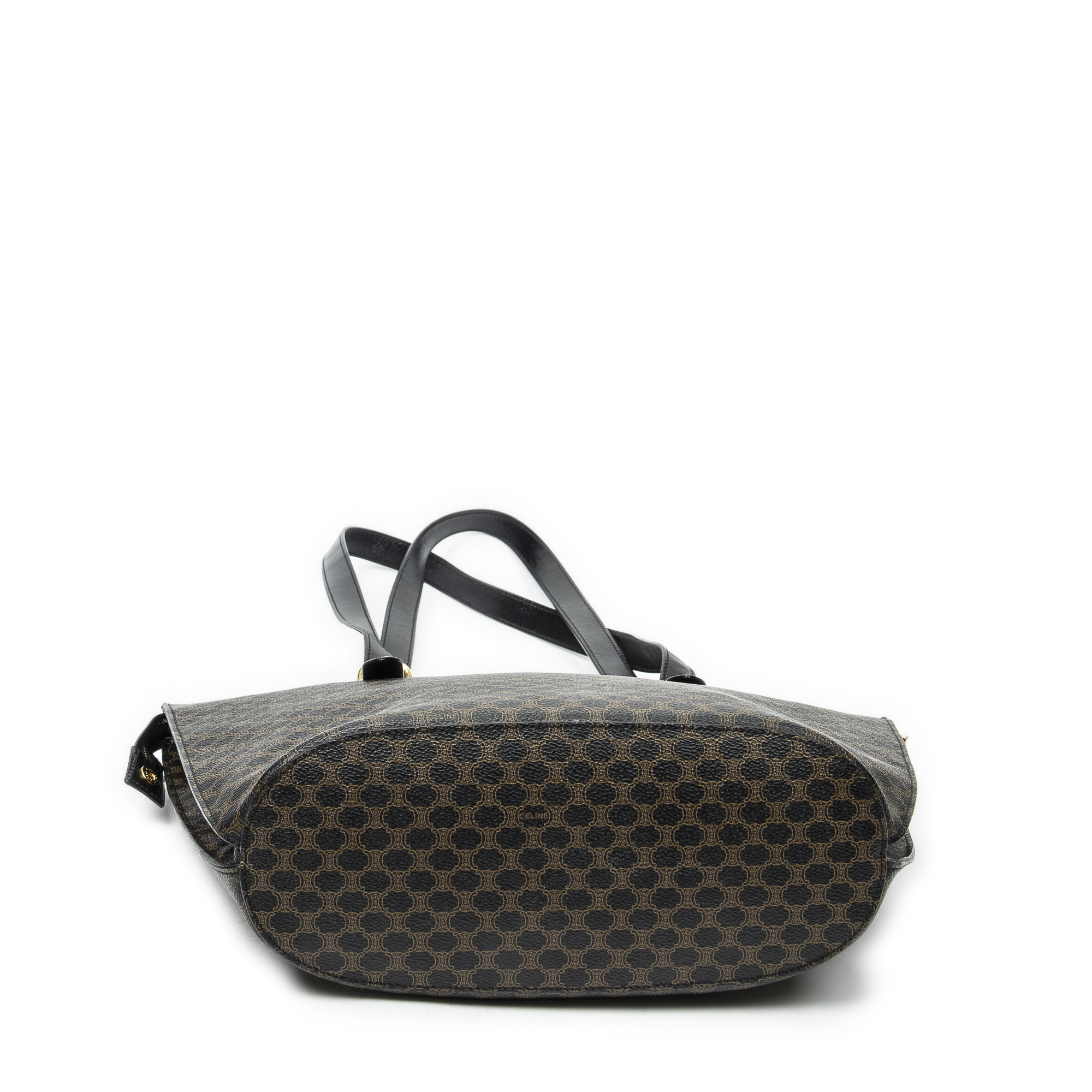 Celine Shoulder Bag Vintage Shoulder Zip Tote in Black/Brown Macadam Coated Canvas and Gold hardware. The product is in Excellent Condition (A).