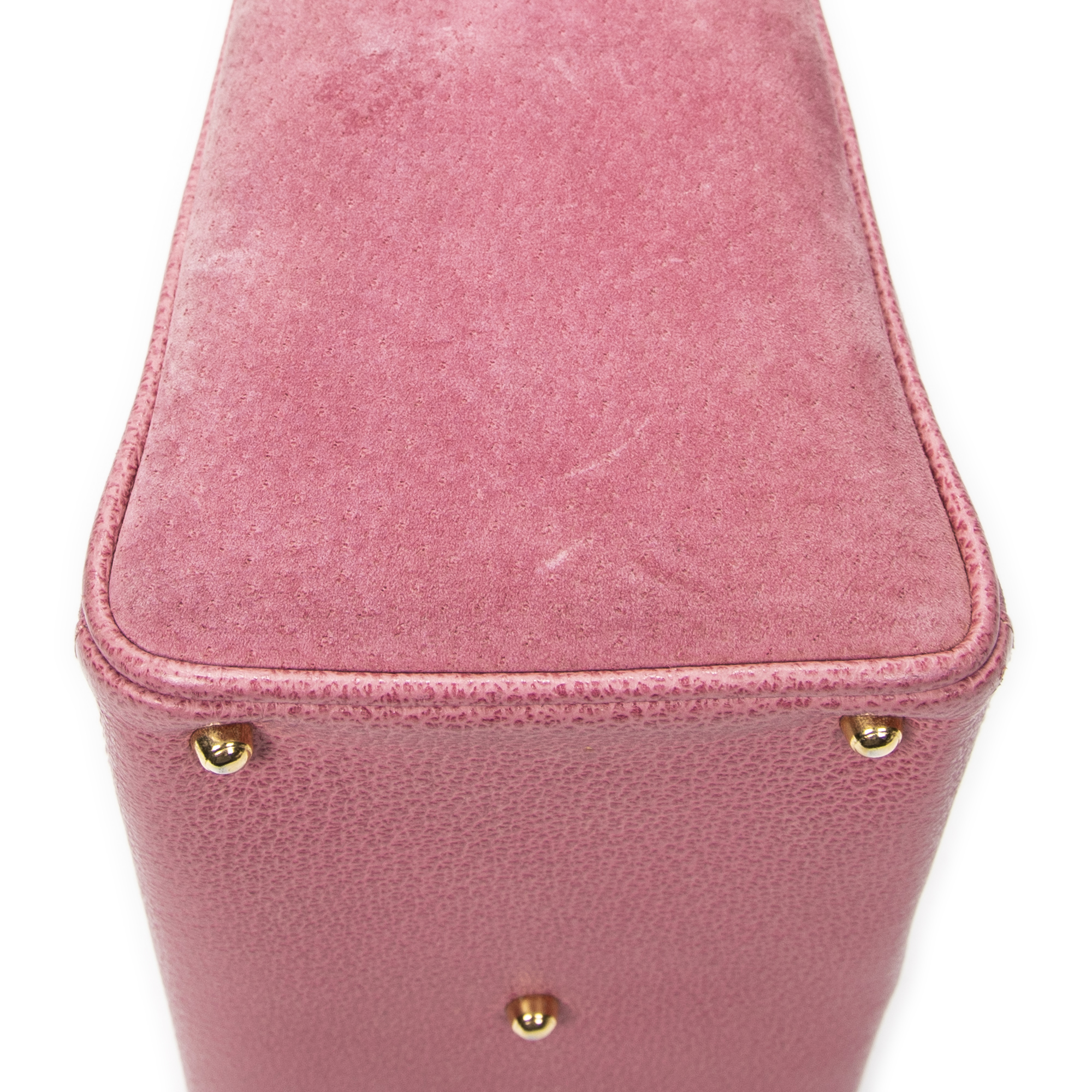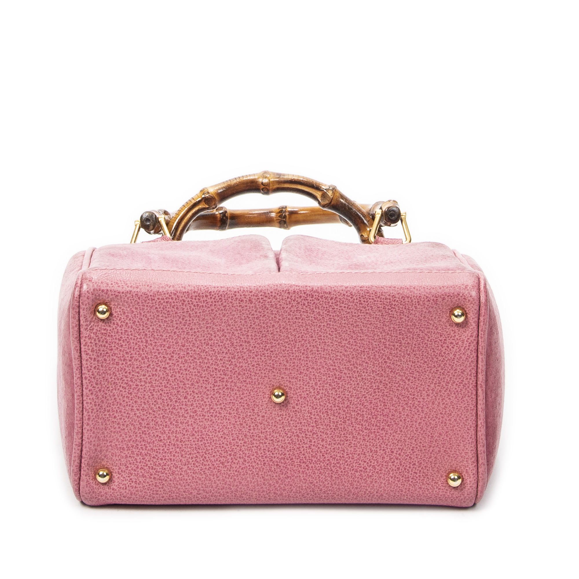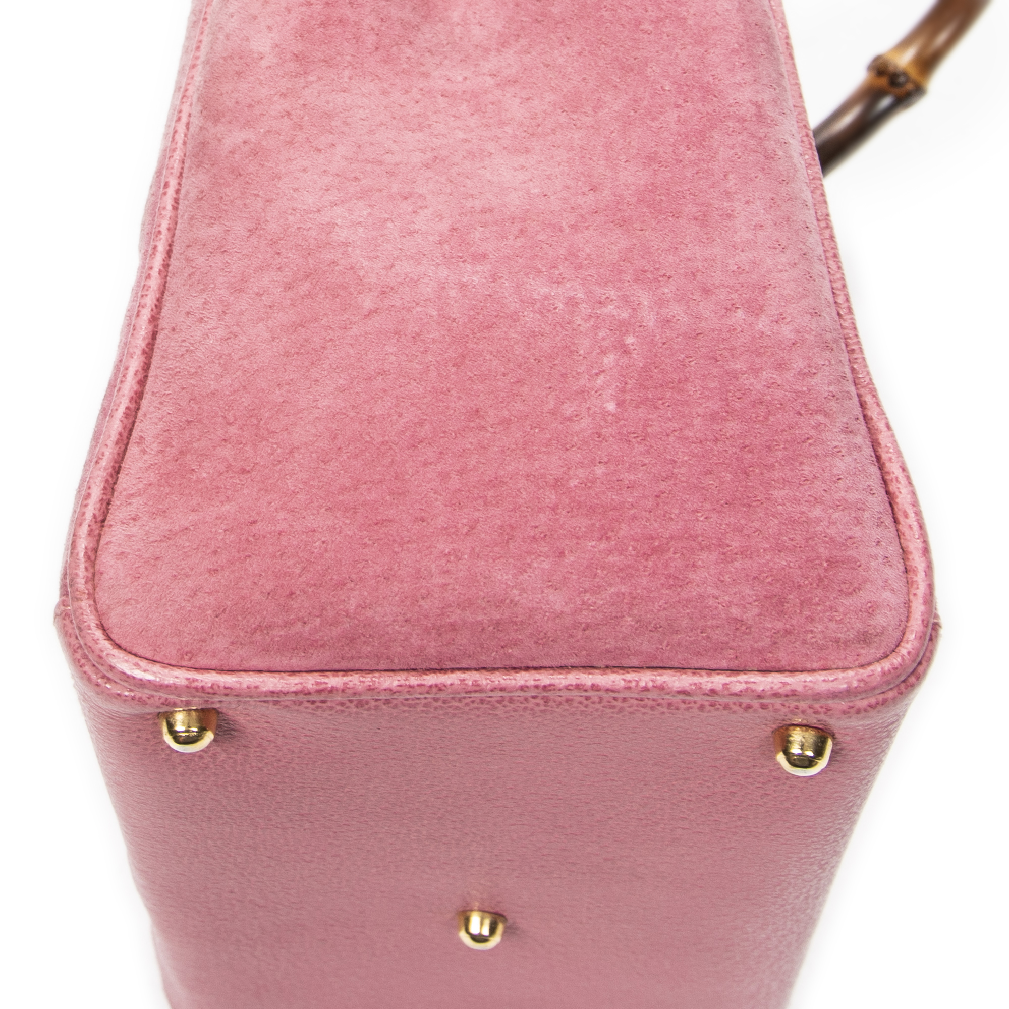 Gucci Shoulder Bag Vintage Small Bamboo Tote in Pink Suede Leather and Gold hardware. The product is in Very Good Condition (AB).