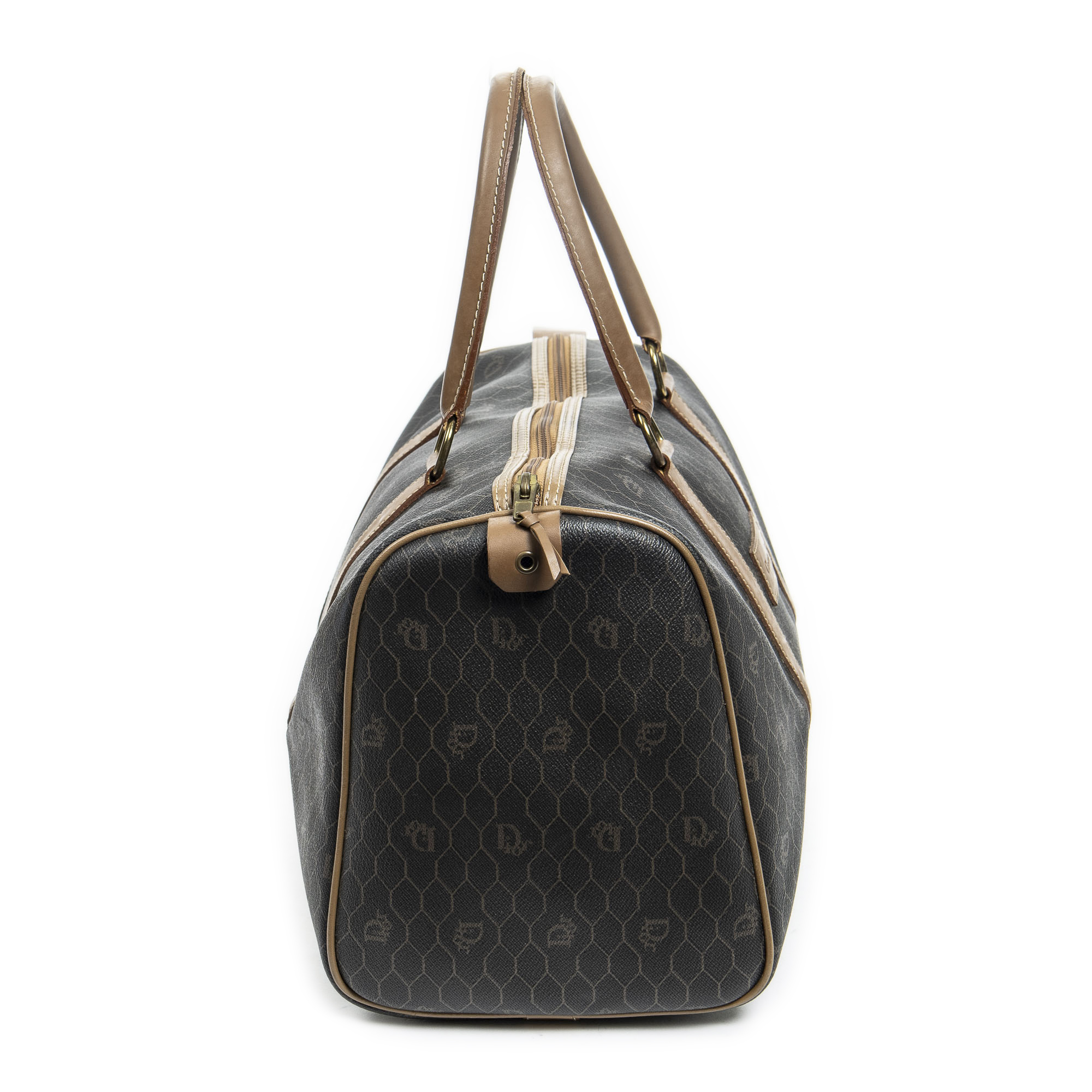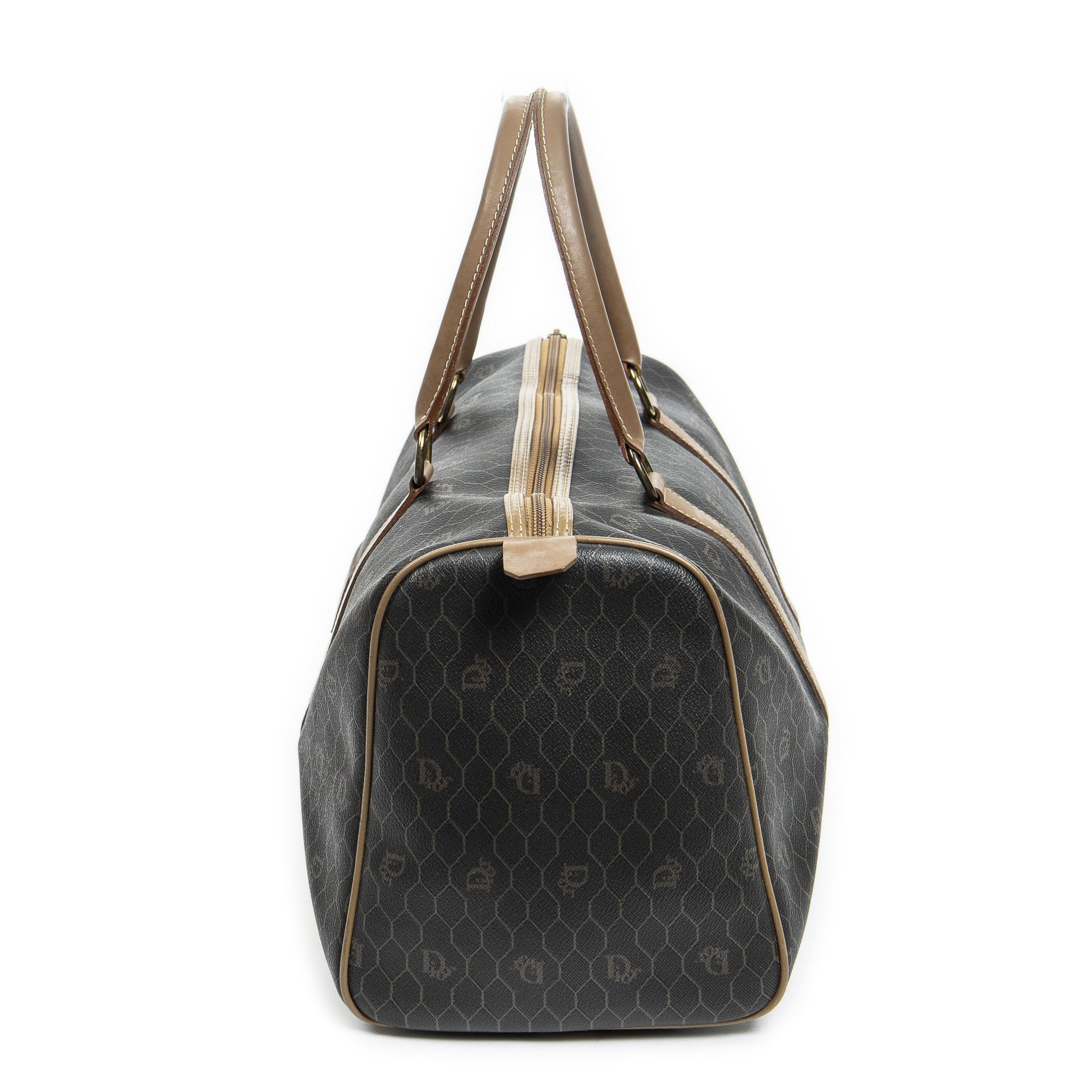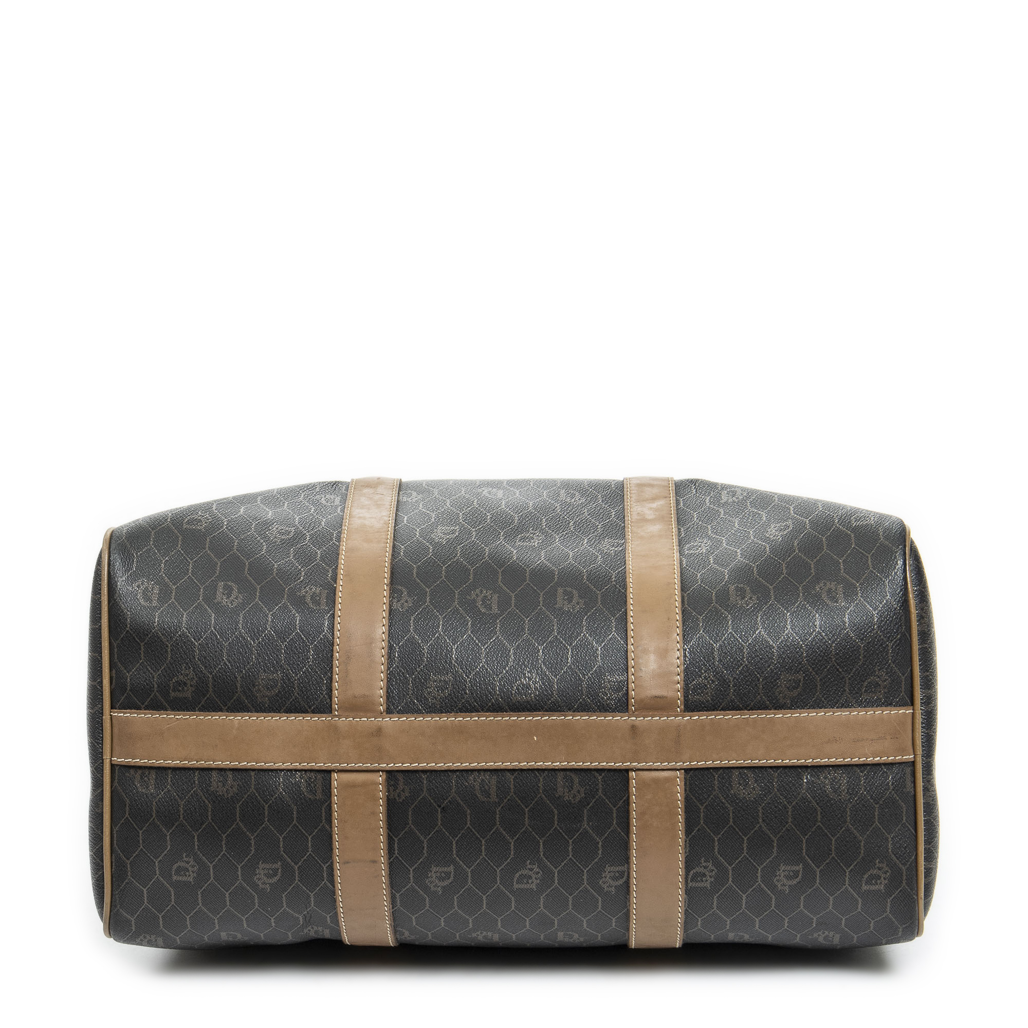 Dior Shoulder Bag Vintage Small Travel Boston in Dark Gray/Brown Honeycomb Coated Canvas and Gold hardware. The product is in Very Good Condition (AB).
