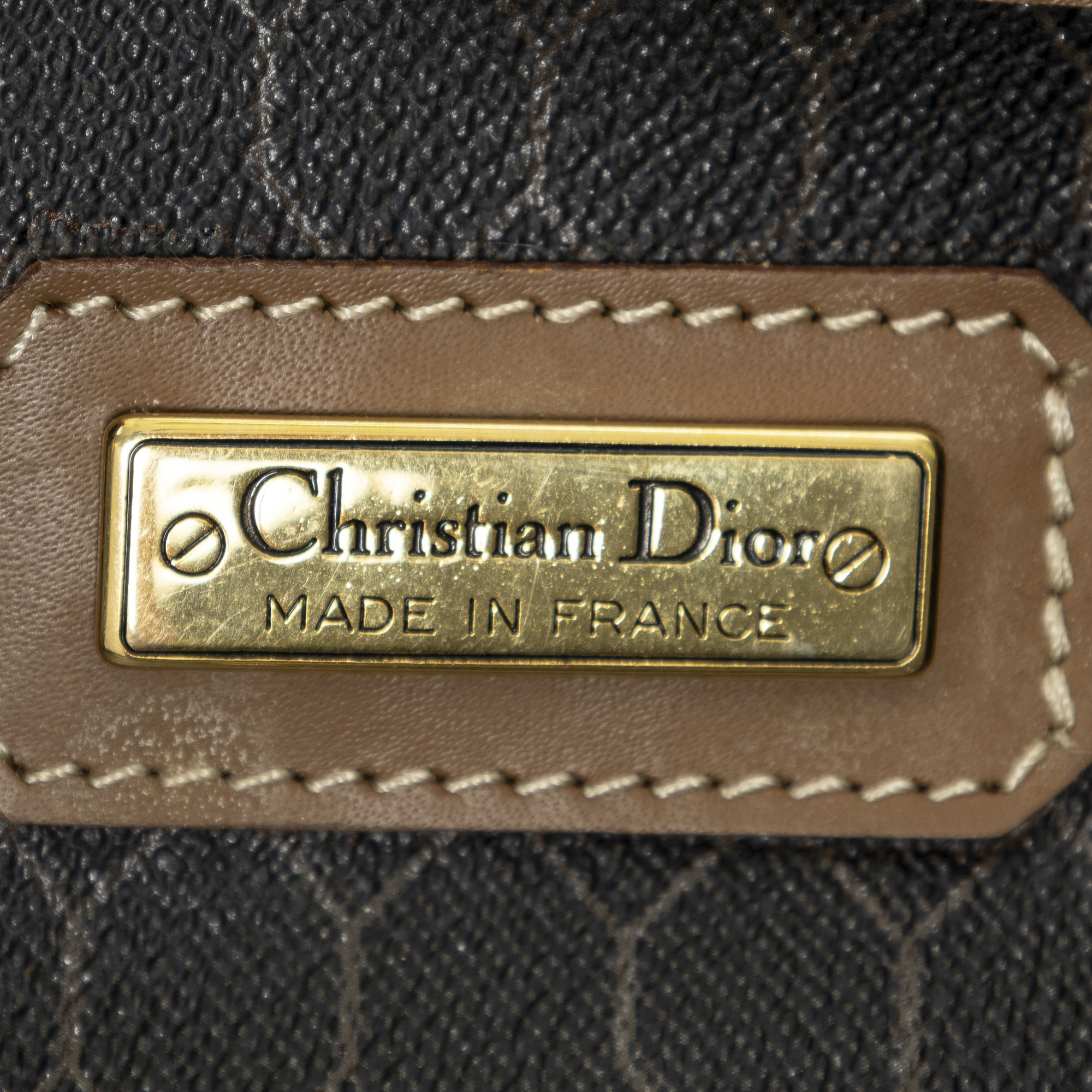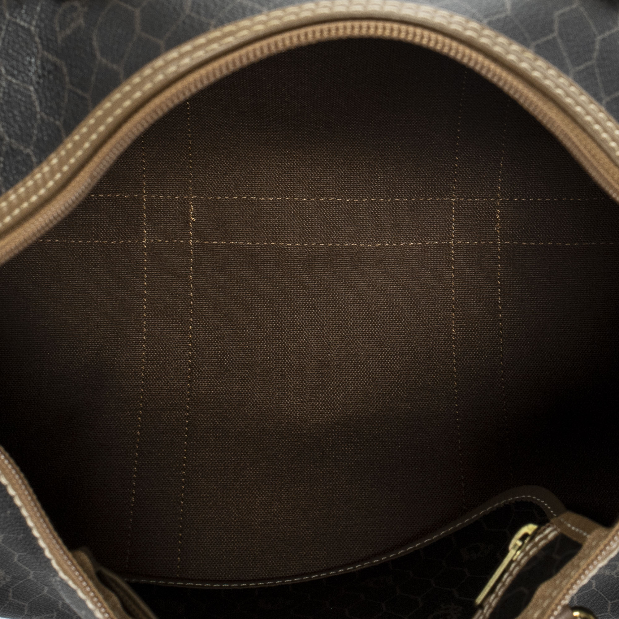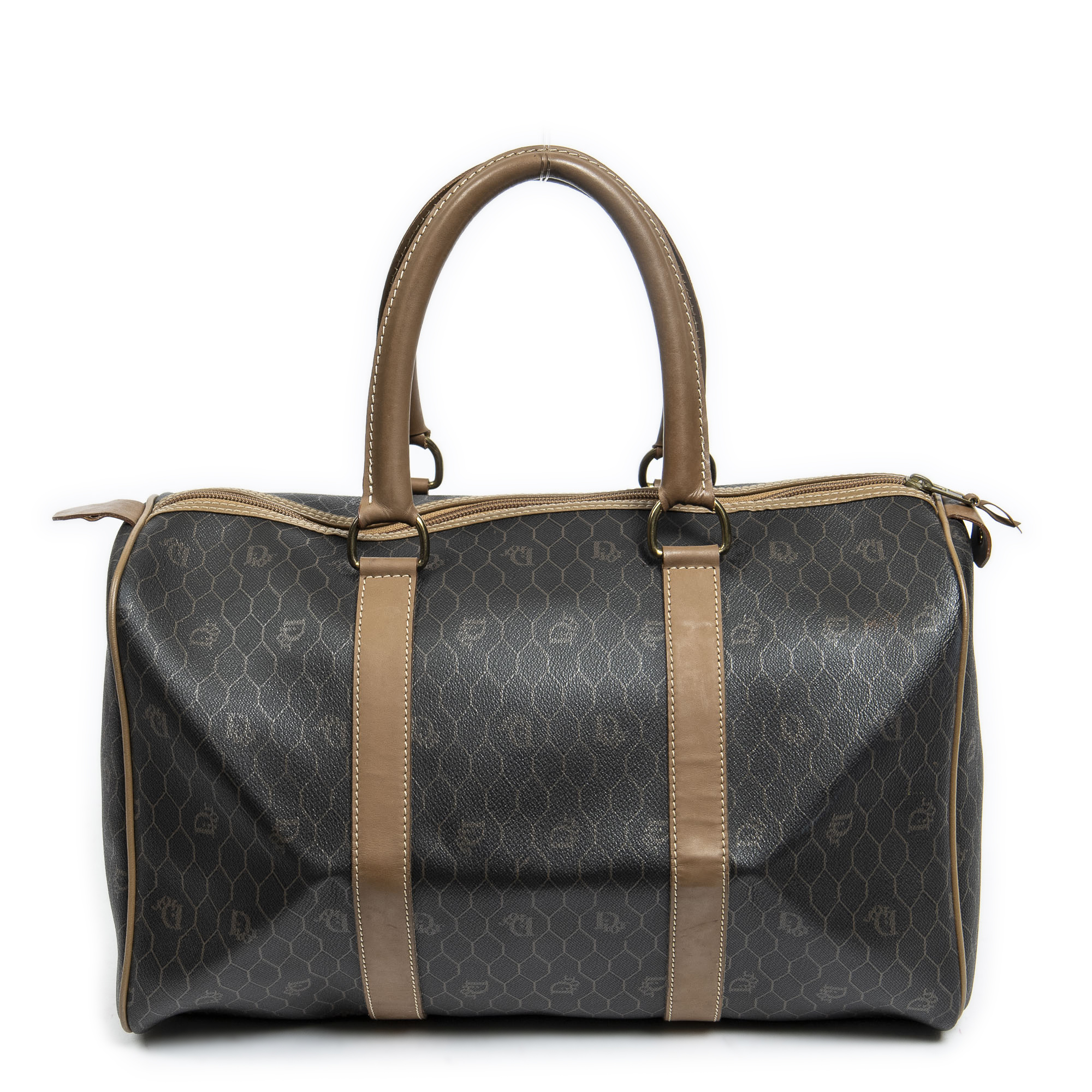 Dior Shoulder Bag Vintage Small Travel Boston in Dark Gray/Brown Honeycomb Coated Canvas and Gold hardware. The product is in Very Good Condition (AB).