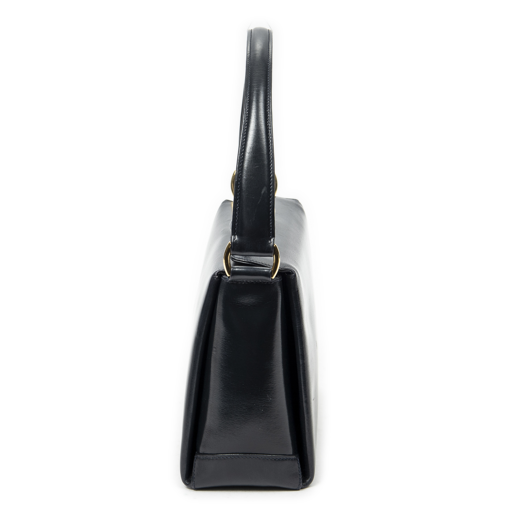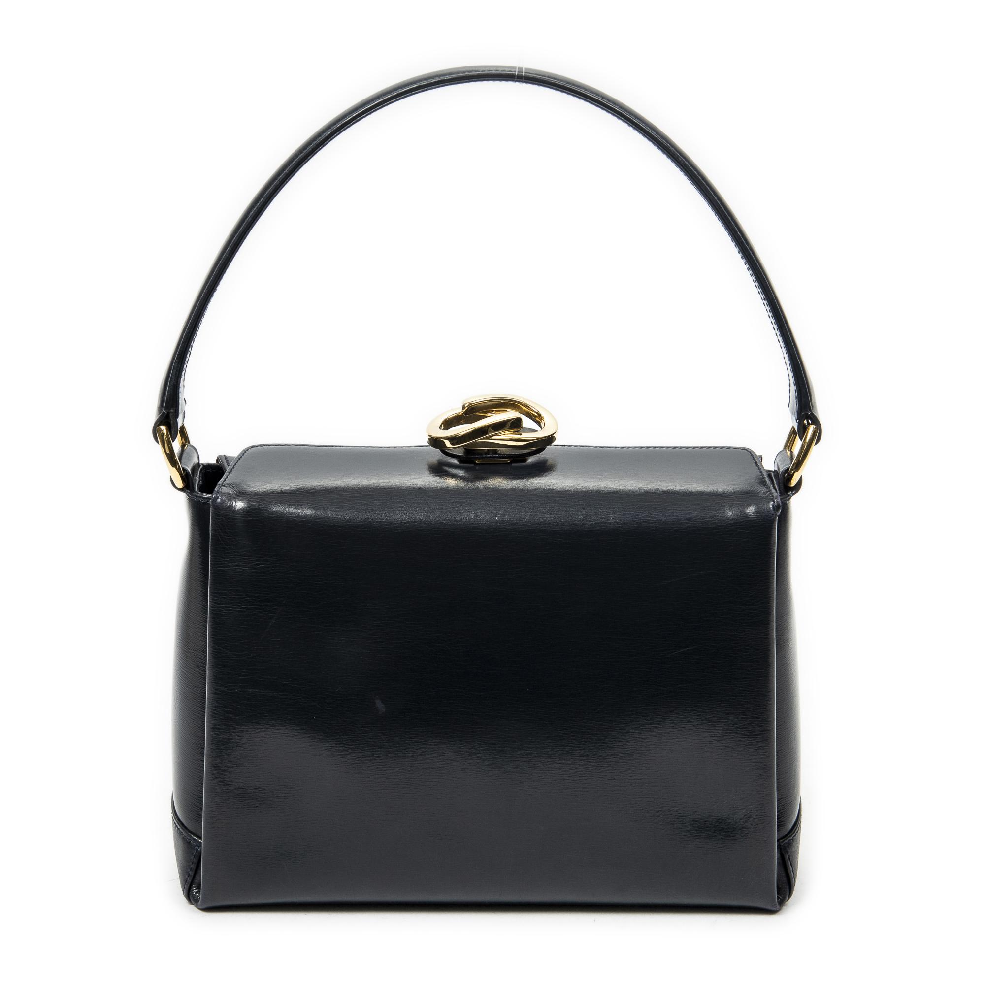 Description : Gucci Shoulder Bag Vintage Turn Lock Top Handle in Navy Smooth Calfskin Leather and Gold hardware. The product is in Excellent Condition (A). Dimensions: 23x16.5x9 cm SKU: ABC8386 Serial number: 000-406-0262 Accessories Included: None Delivery: We have a 5 to 7 business days delivery policy, hassle-free and duties/tariffs included! BrandCo Paris finds rare and top condition items at great deals, they are worth your patience! Shop with confidence - All BrandCo Paris items are carefully selected and authenticated by our team of experts. All the items come with an authenticity certificate and packaging delivered by BrandCo Paris. Item Condition Grading Table N (Like New) AA (Perfect Condition) A (Excellent Condition) AB (Very Good Condition) B (Good/Fair)