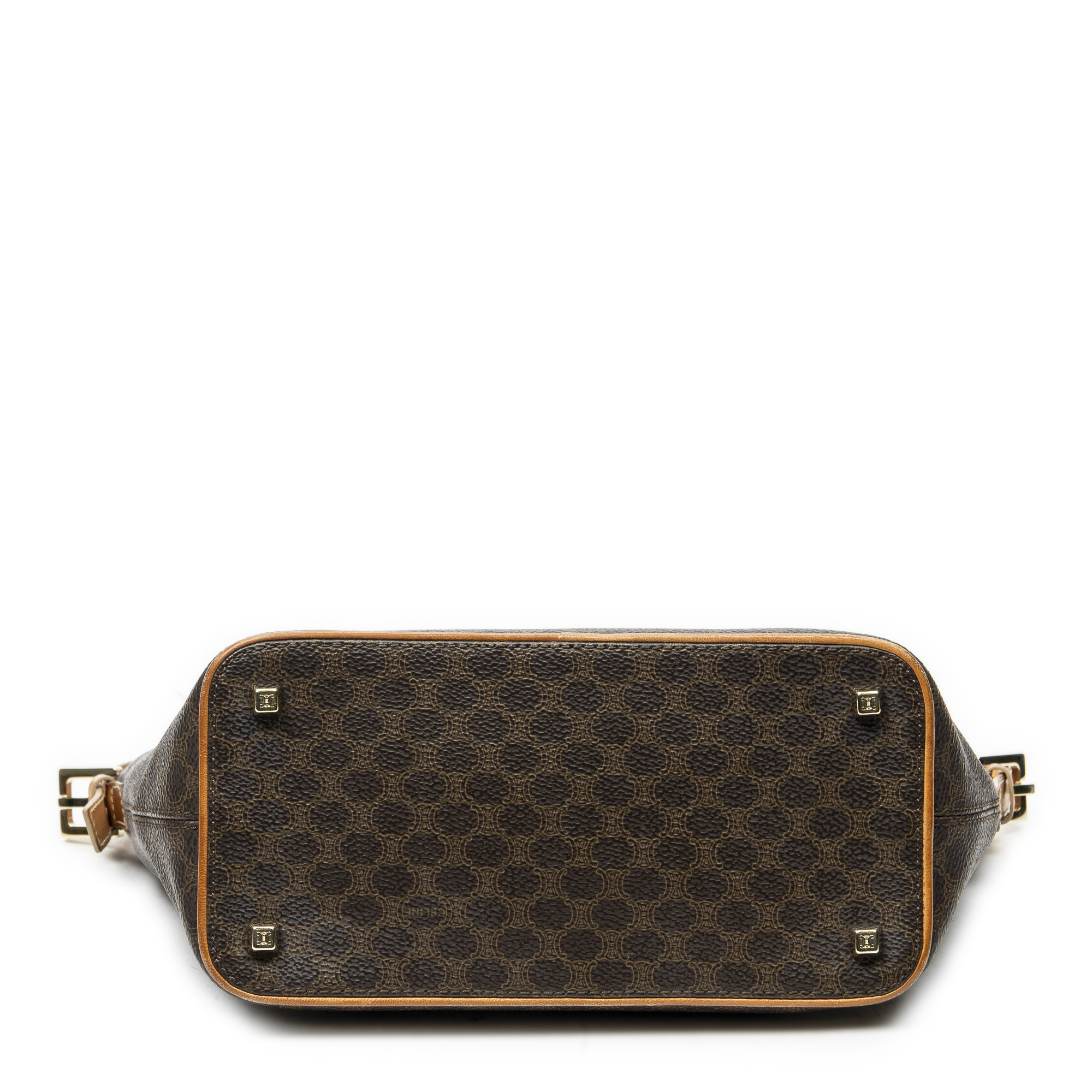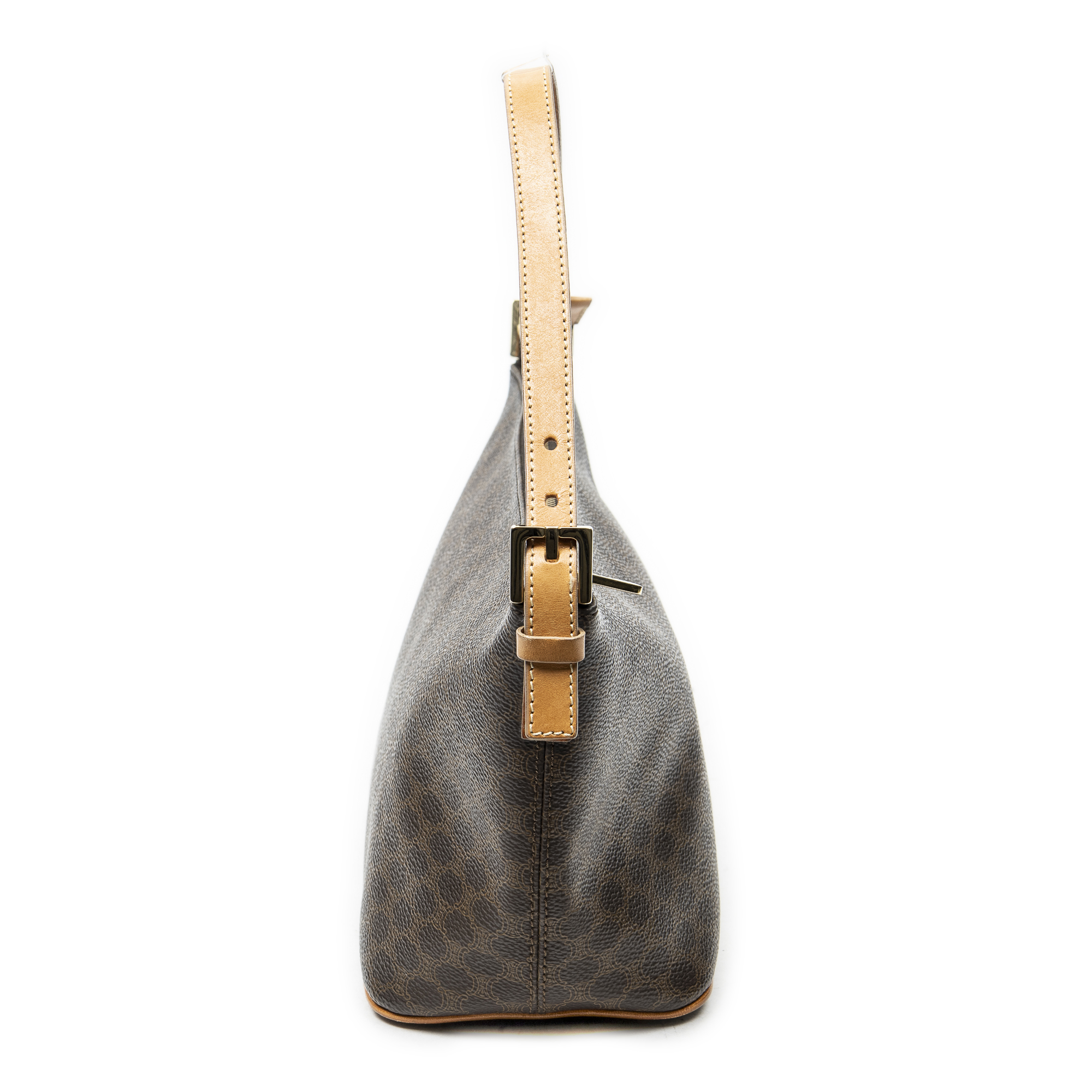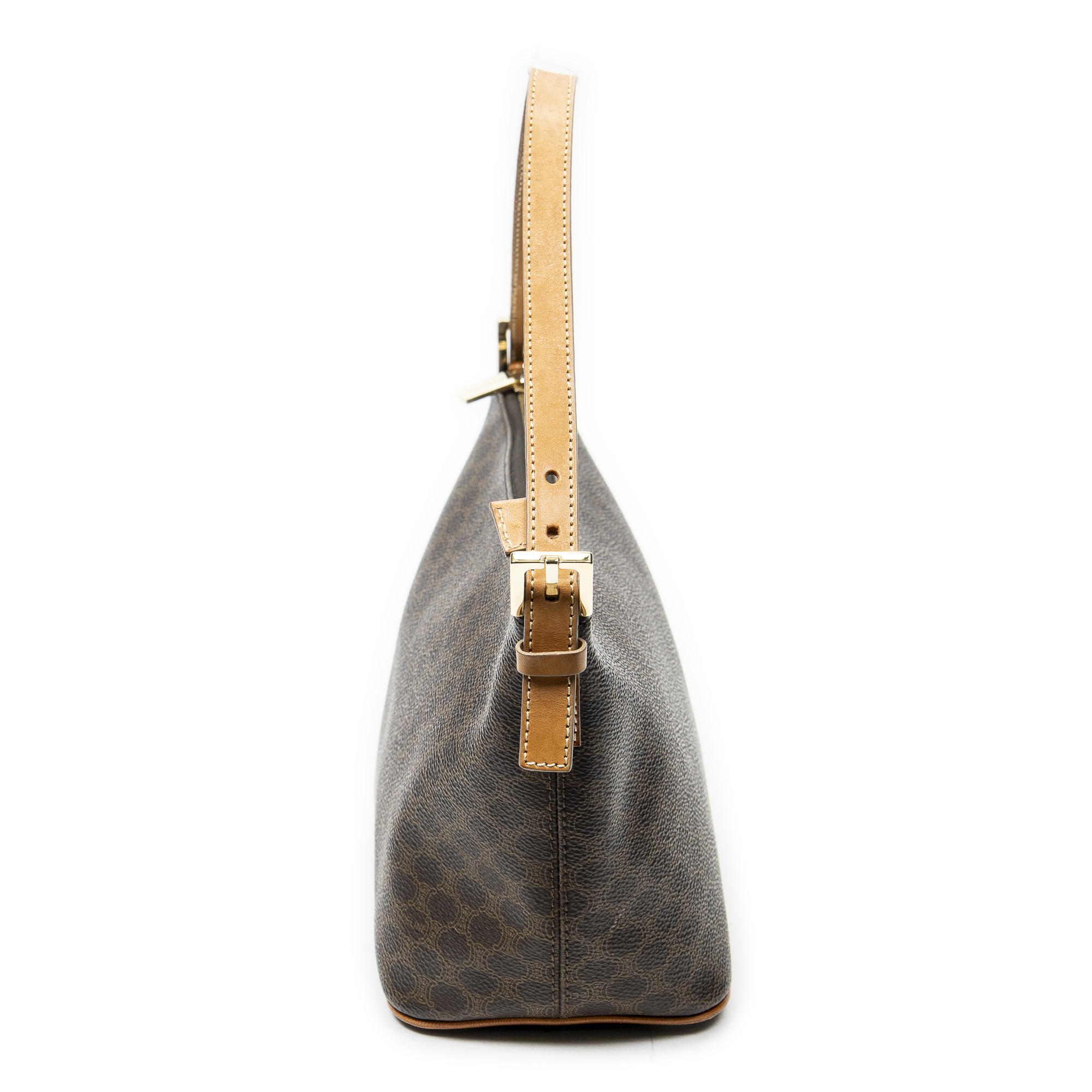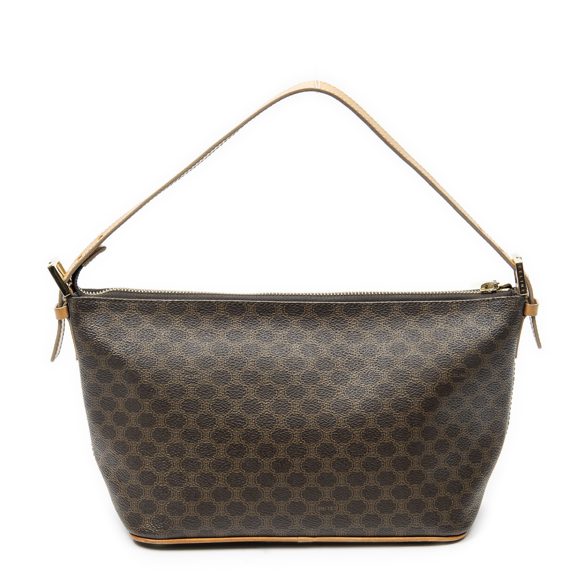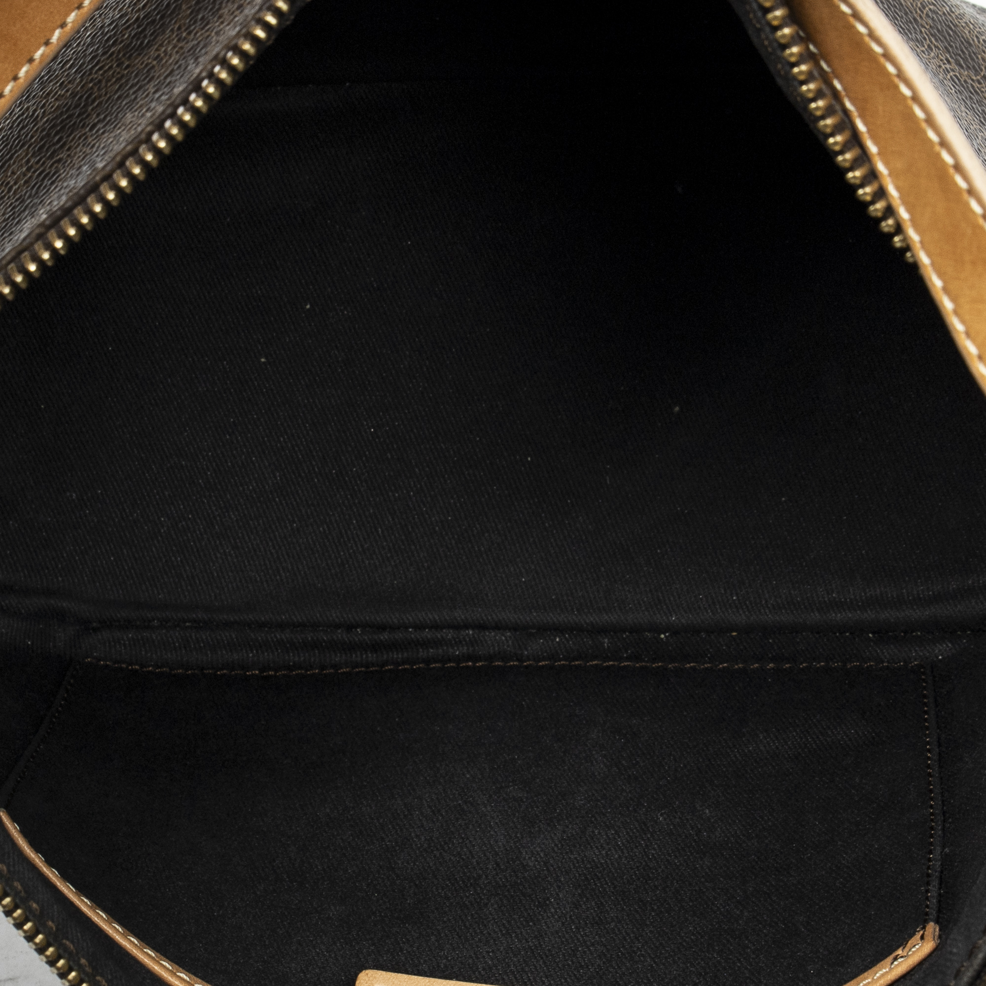 Celine Shoulder Bag Vintage Zip Hobo in Brown Macadam Coated Canvas and Gold hardware. The product is in Excellent Condition (A).