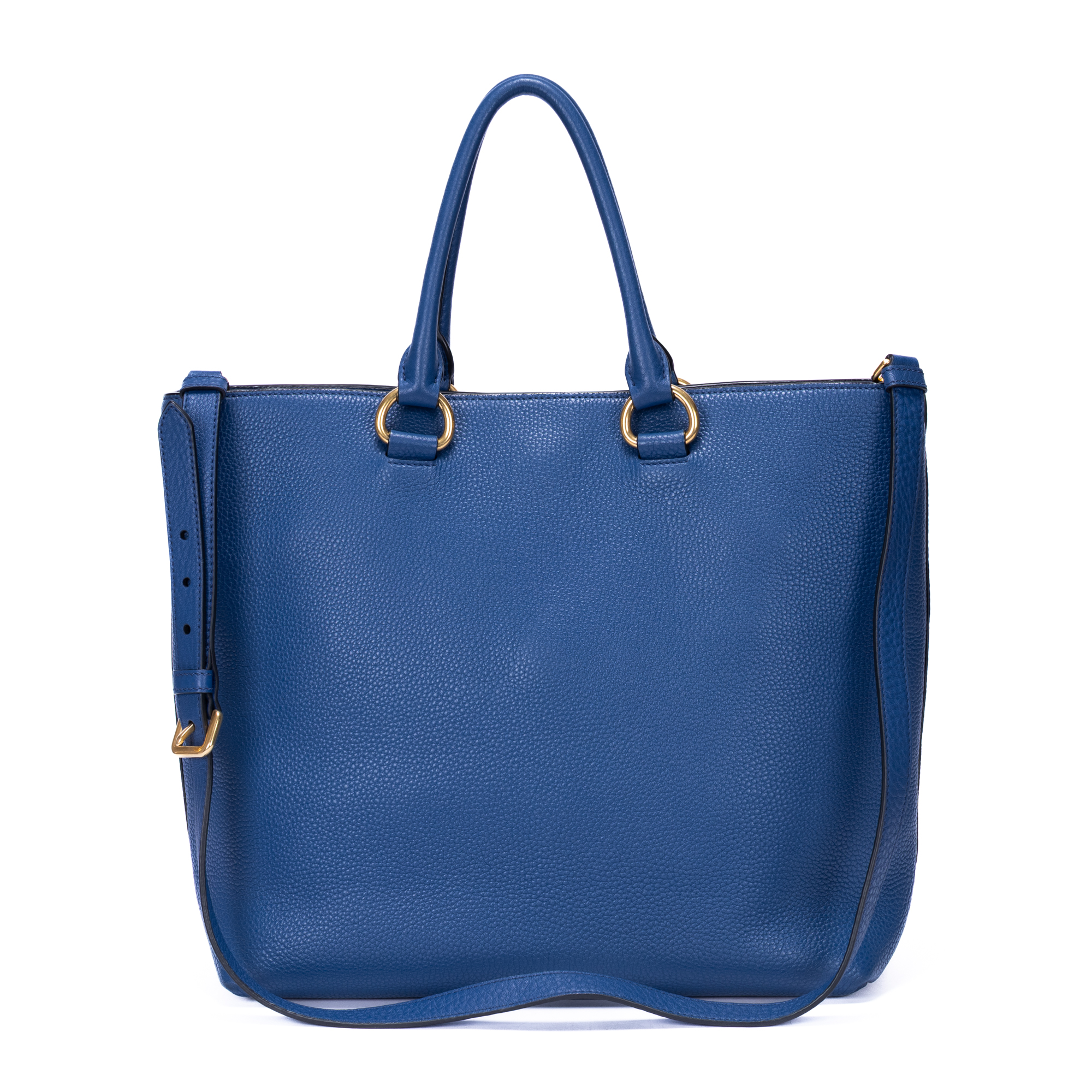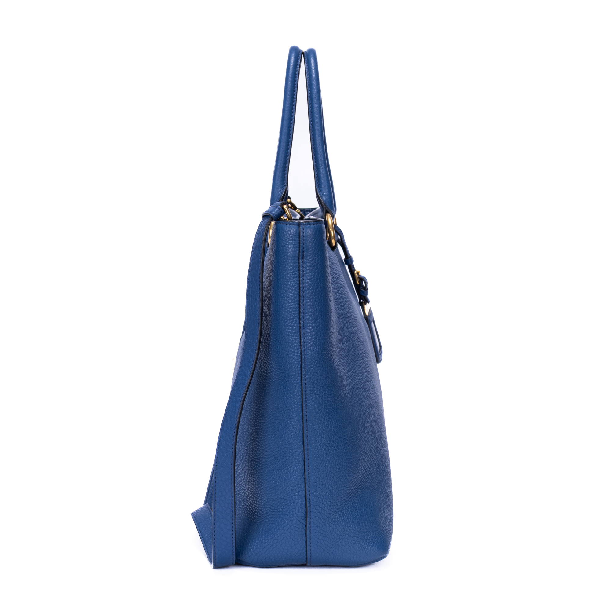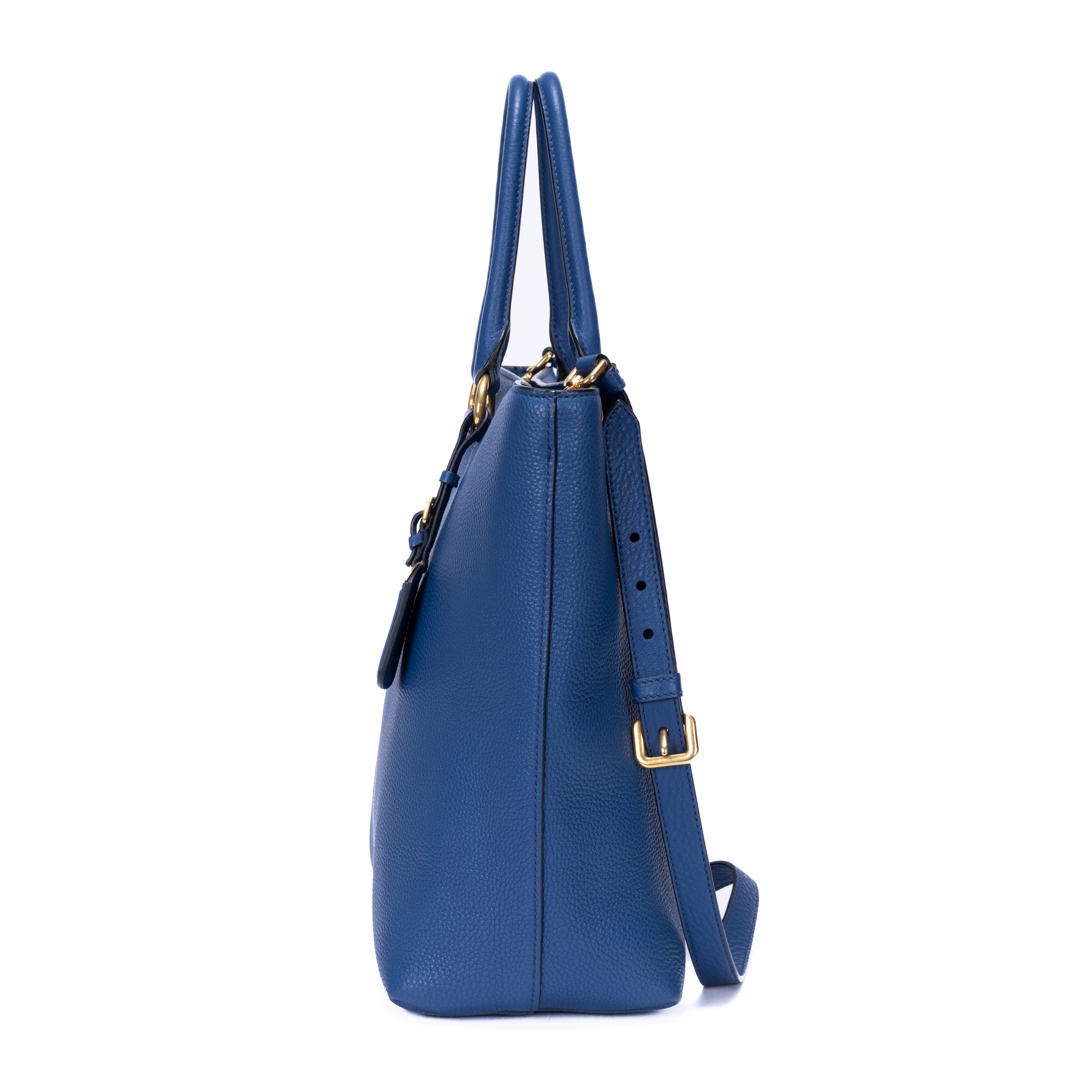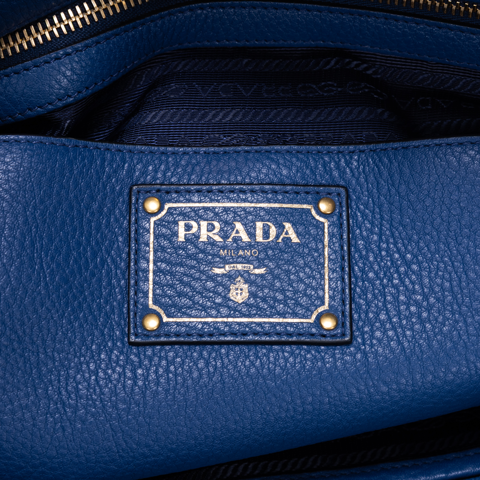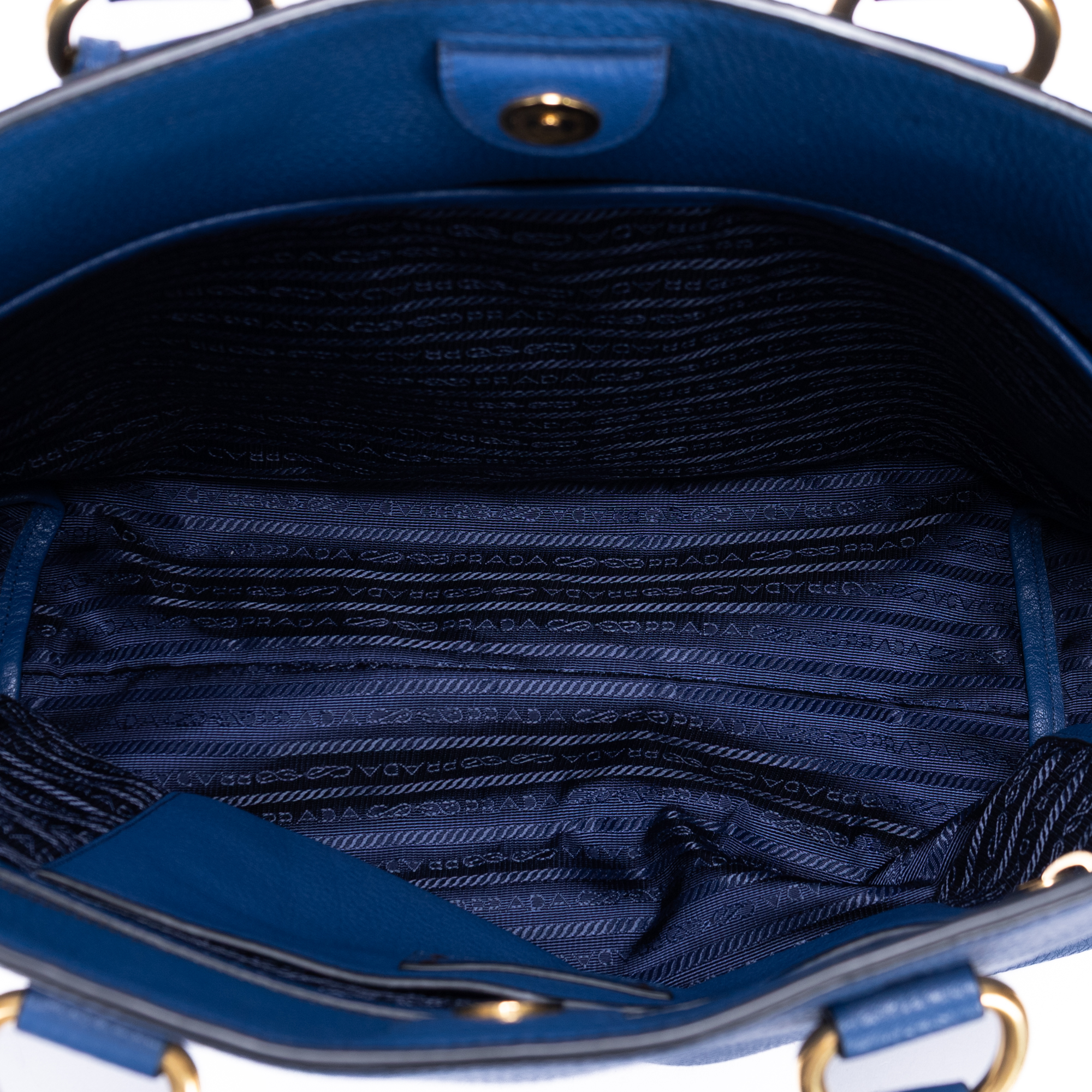 Prada Shoulder Bag Vitello Phoenix Tote in Blue Vitello Phenix Leather and Gold hardware. The product is in Perfect Condition (AA).
