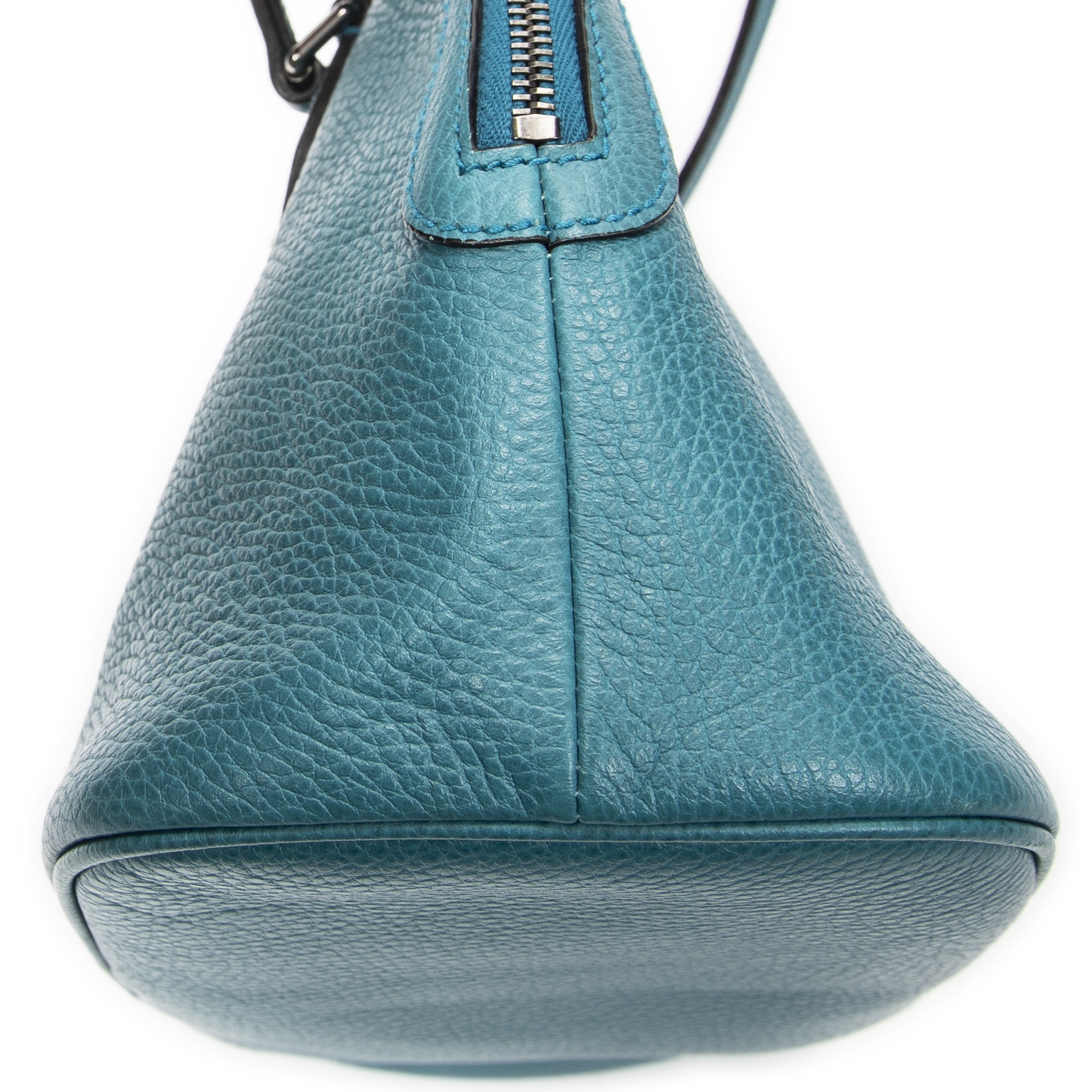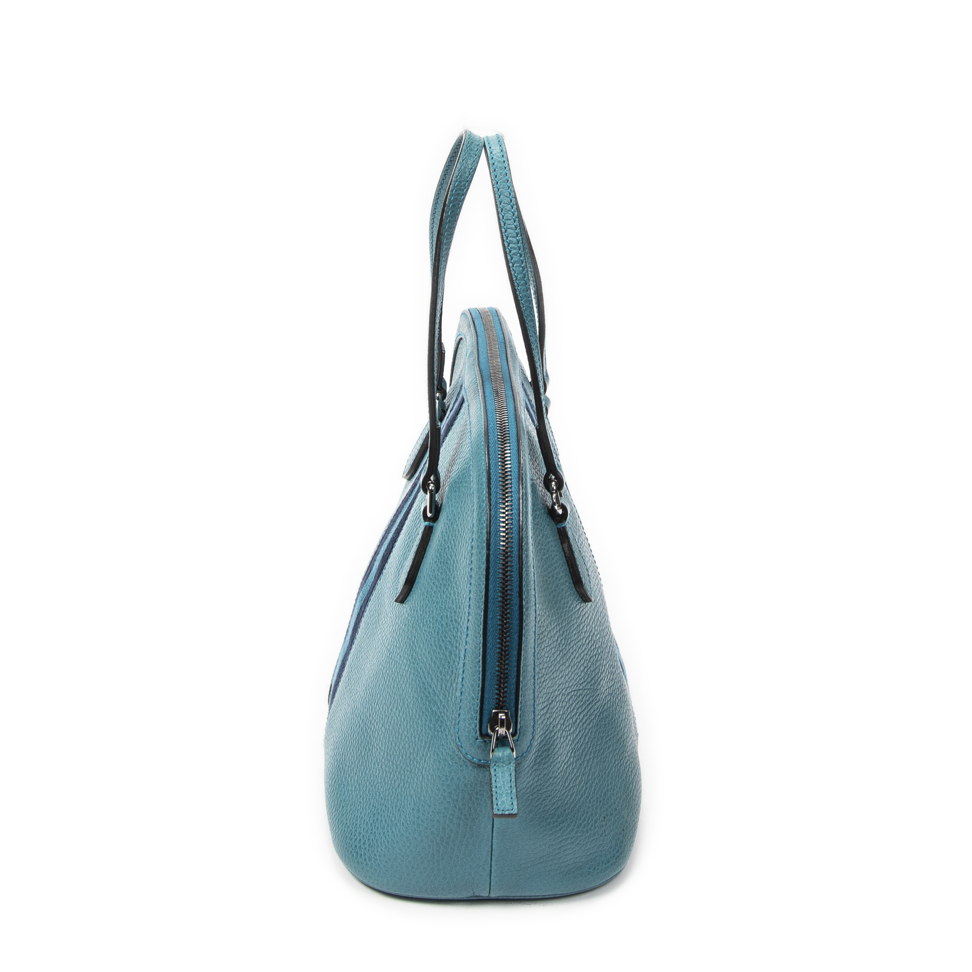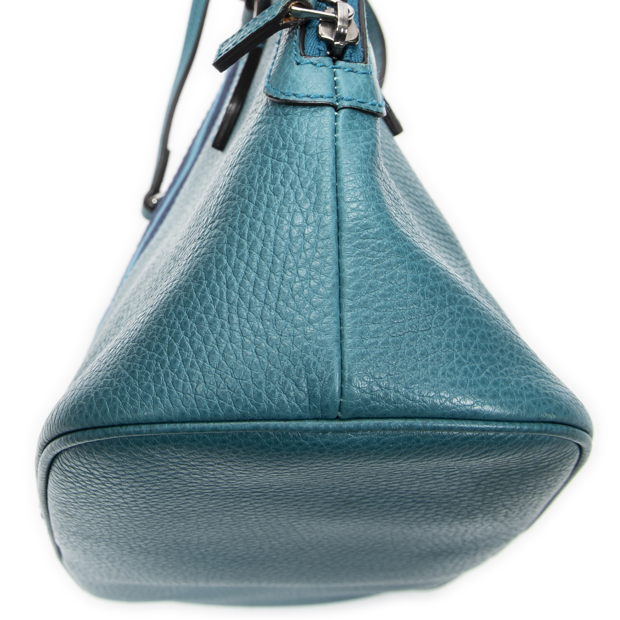 Gucci Shoulder Bag Web Dome Tote in Teal Grained Calfskin Leather and Silver hardware. The product is in Excellent Condition (A).