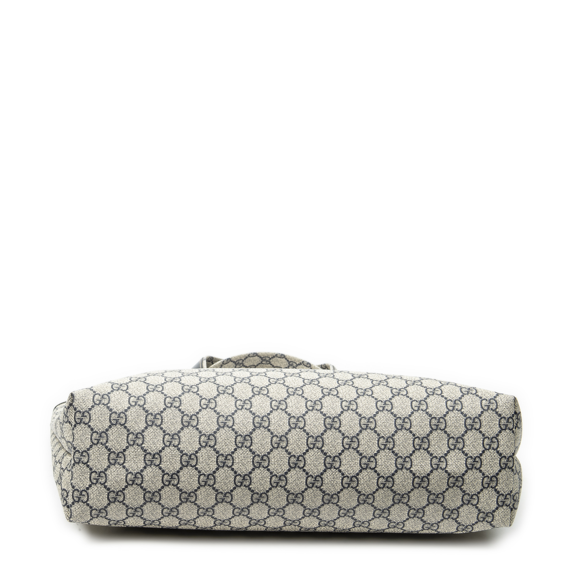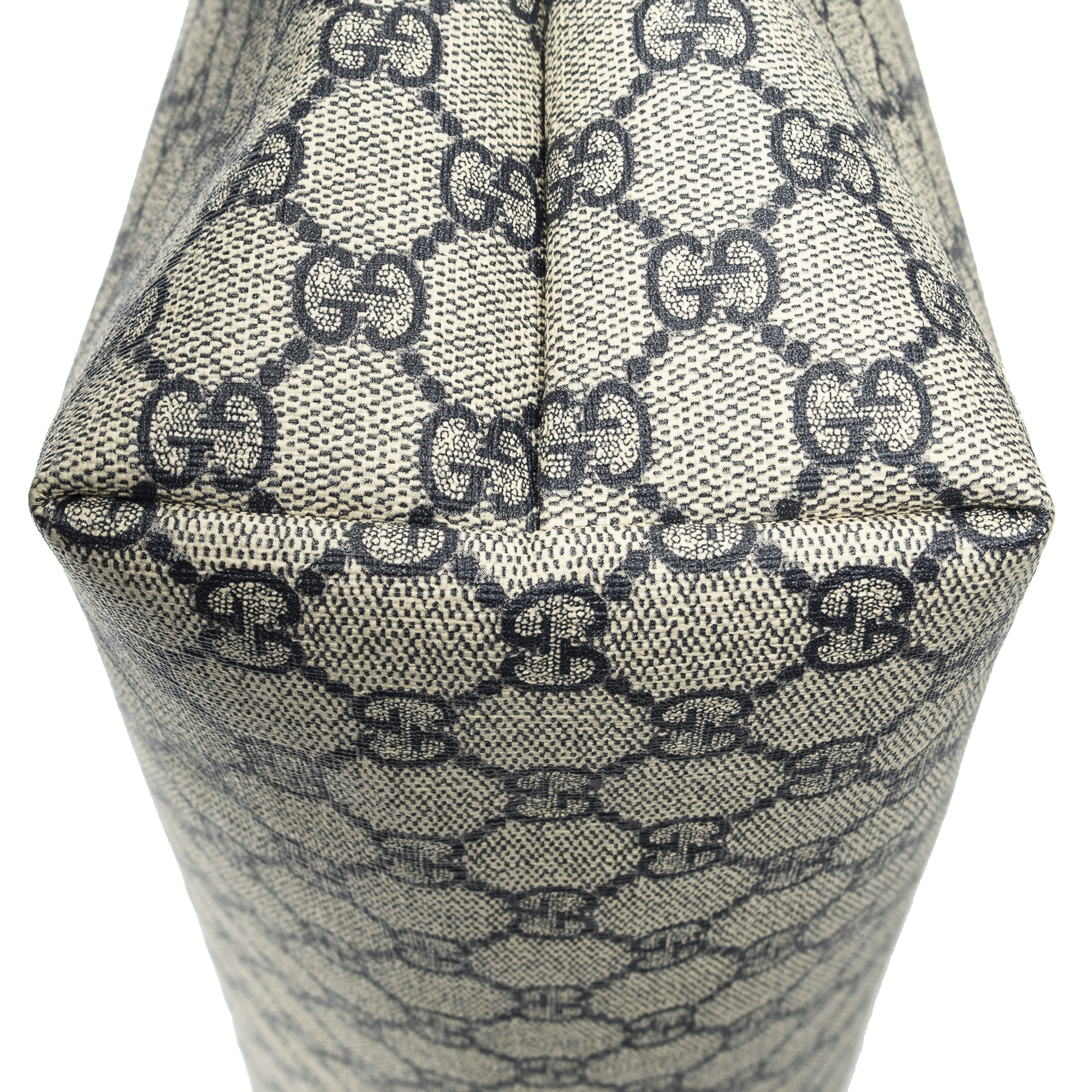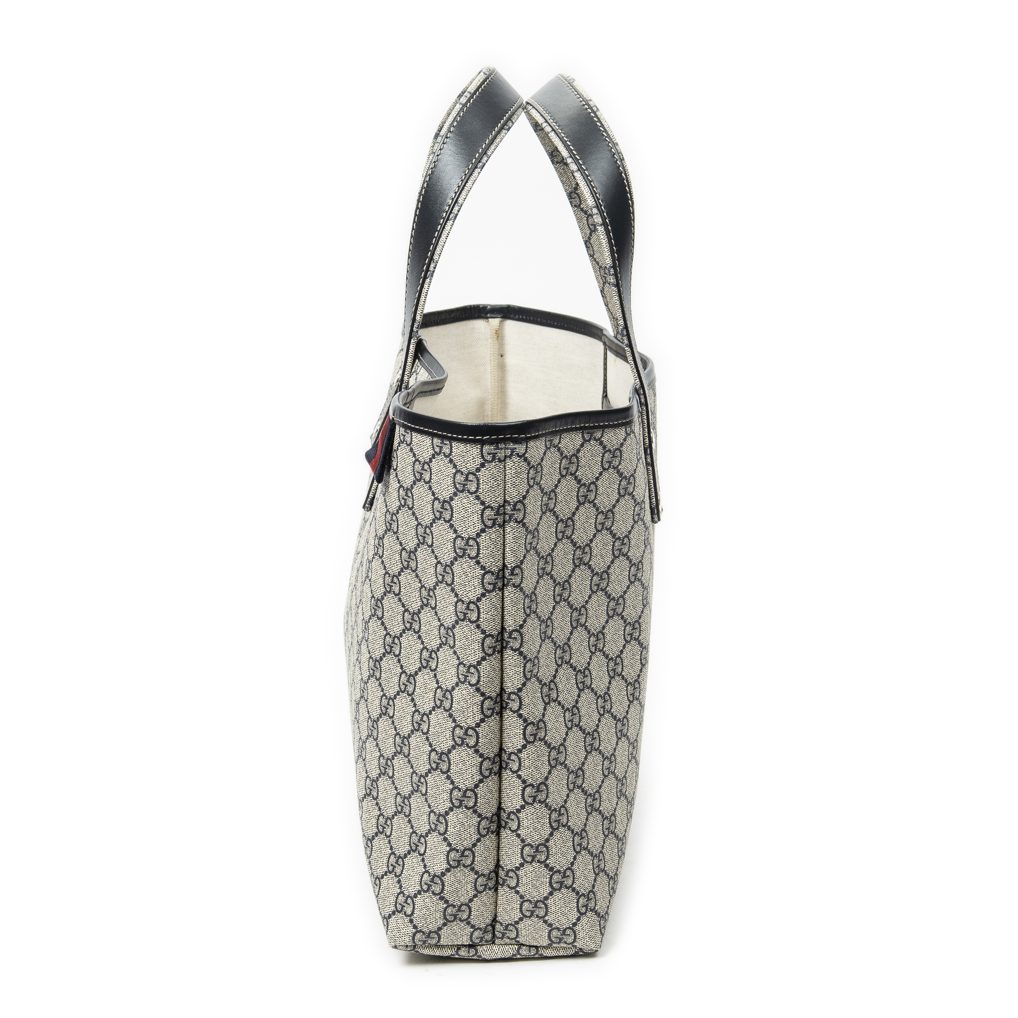 Gucci Shoulder Bag Web Loop Tote in Beige/Navy Supreme Coated Canvas and Silver hardware. The product is in Perfect Condition (AA).