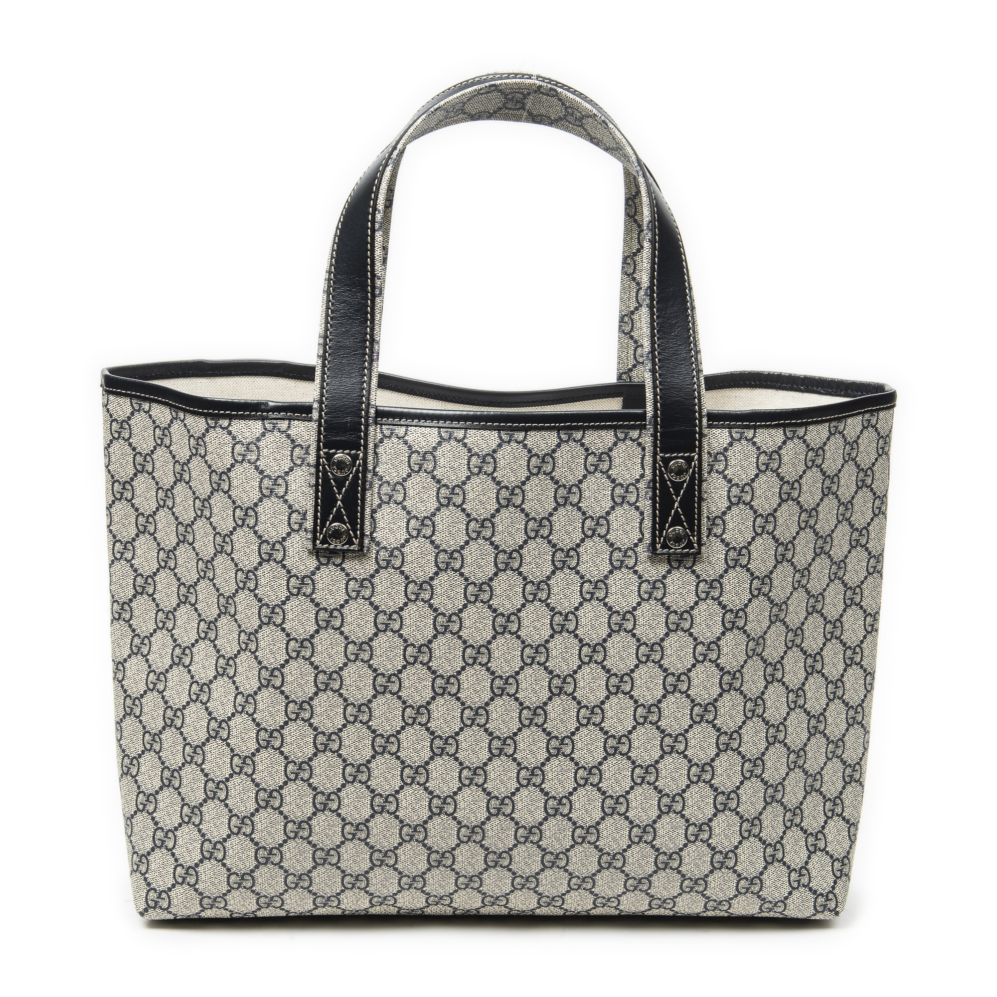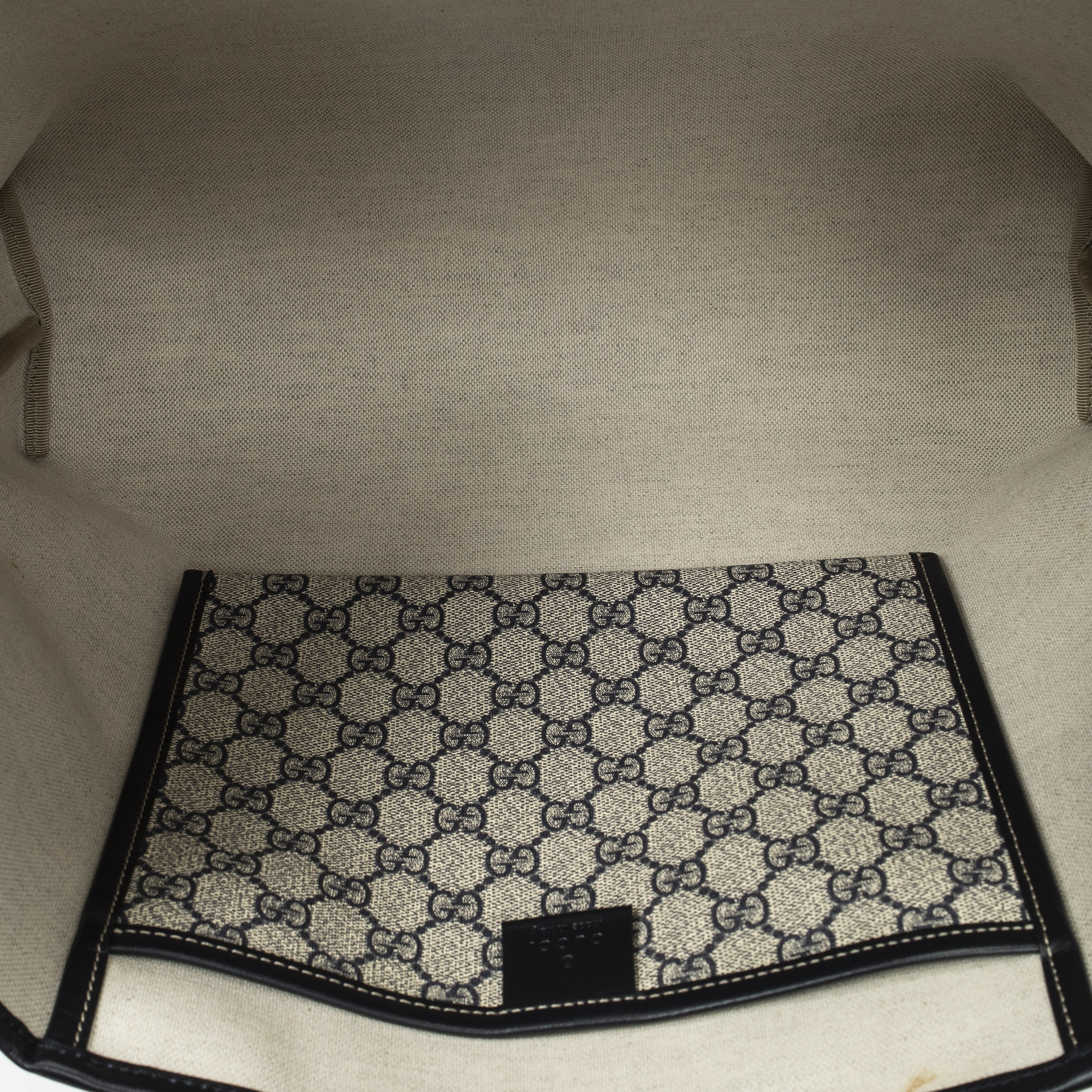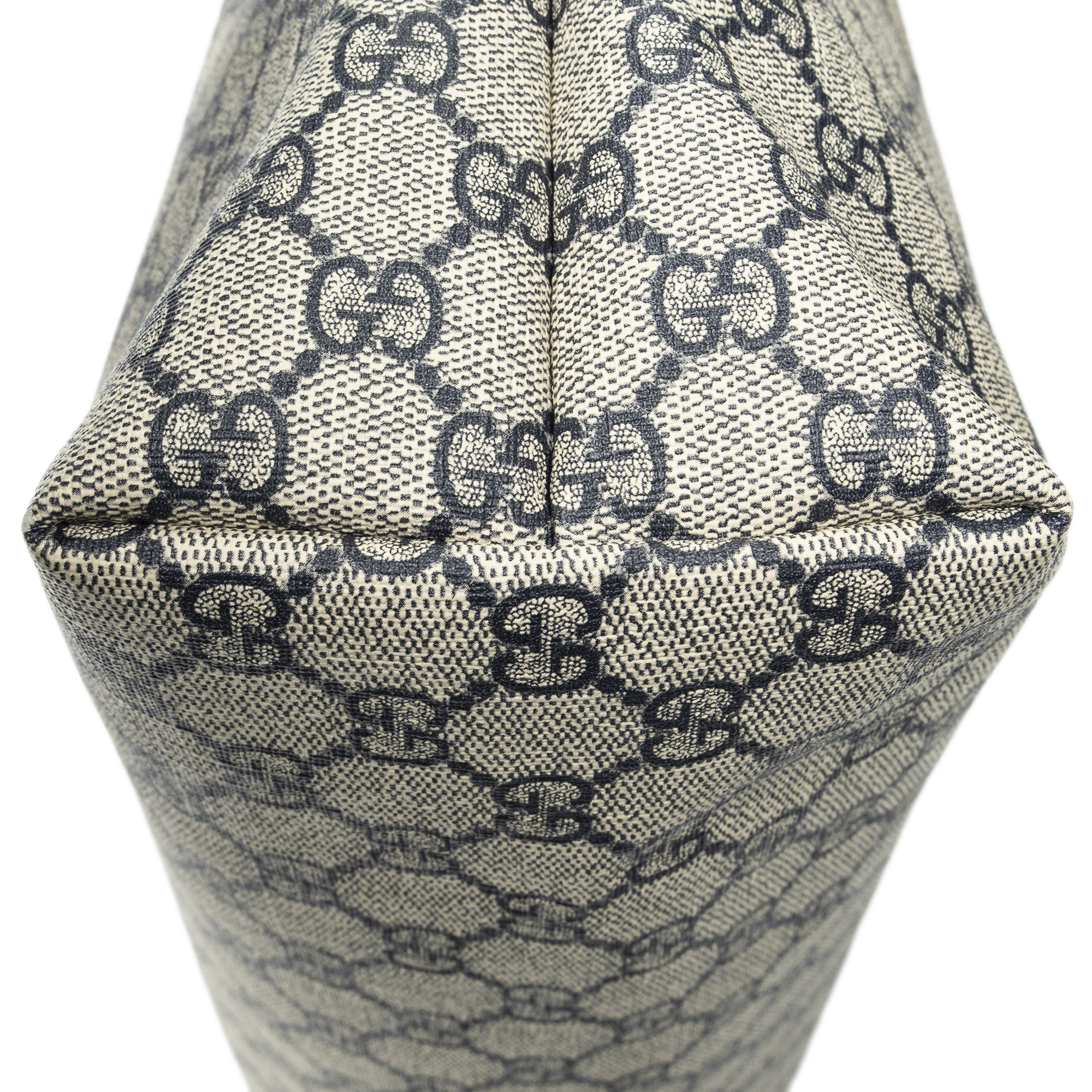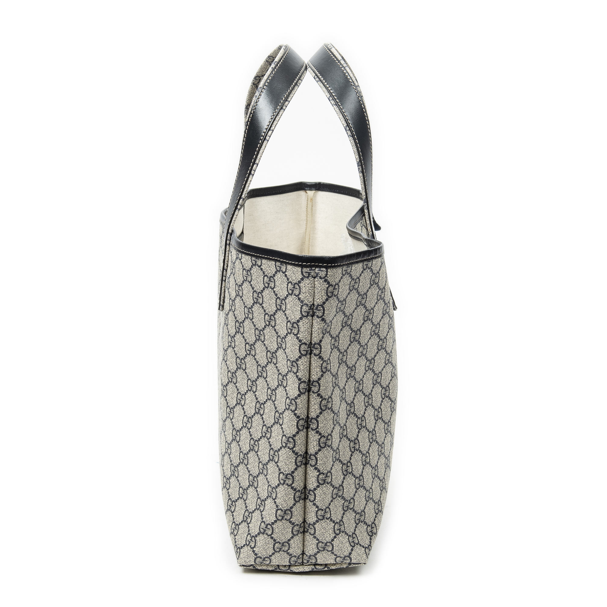 Gucci Shoulder Bag Web Loop Tote in Beige/Navy Supreme Coated Canvas and Silver hardware. The product is in Perfect Condition (AA).