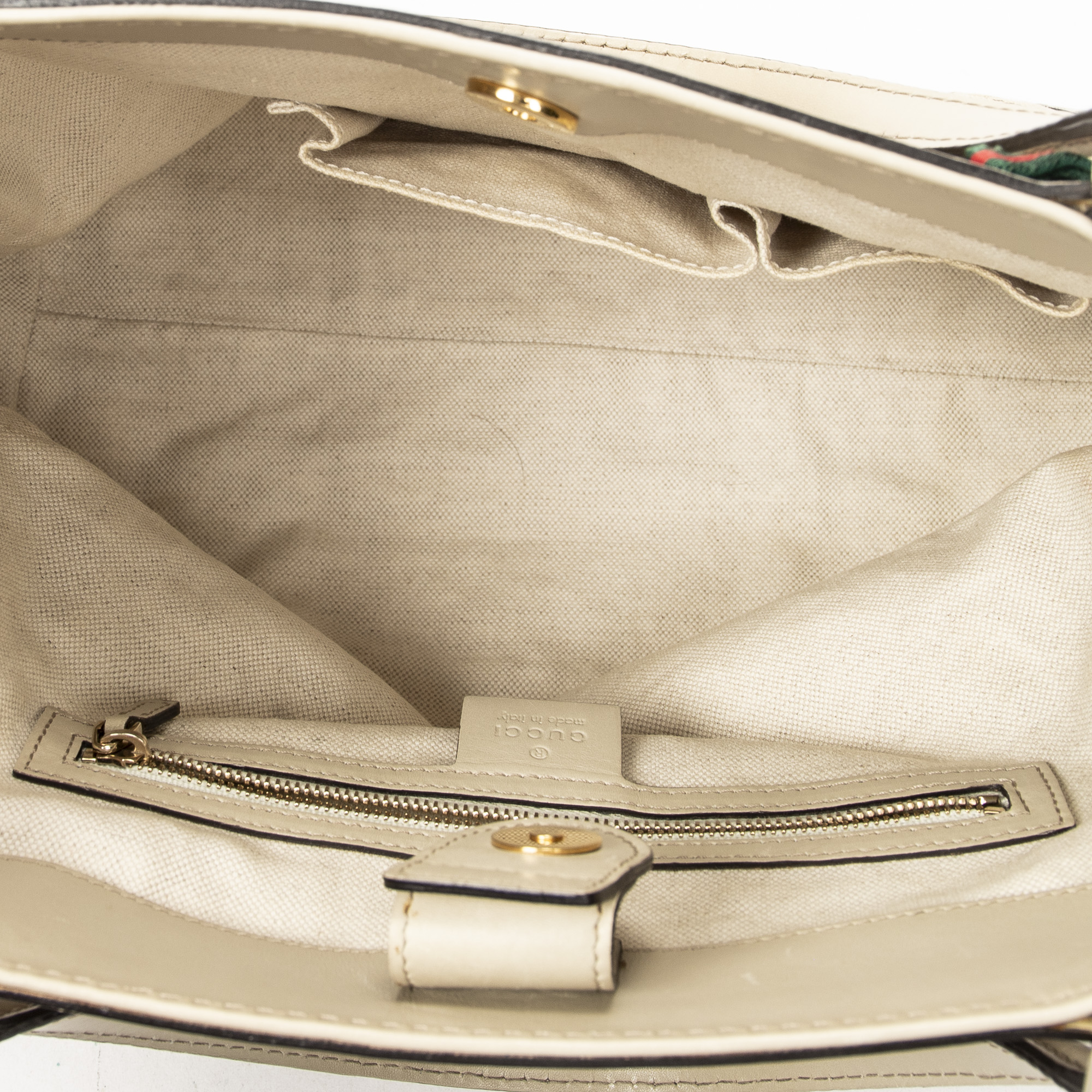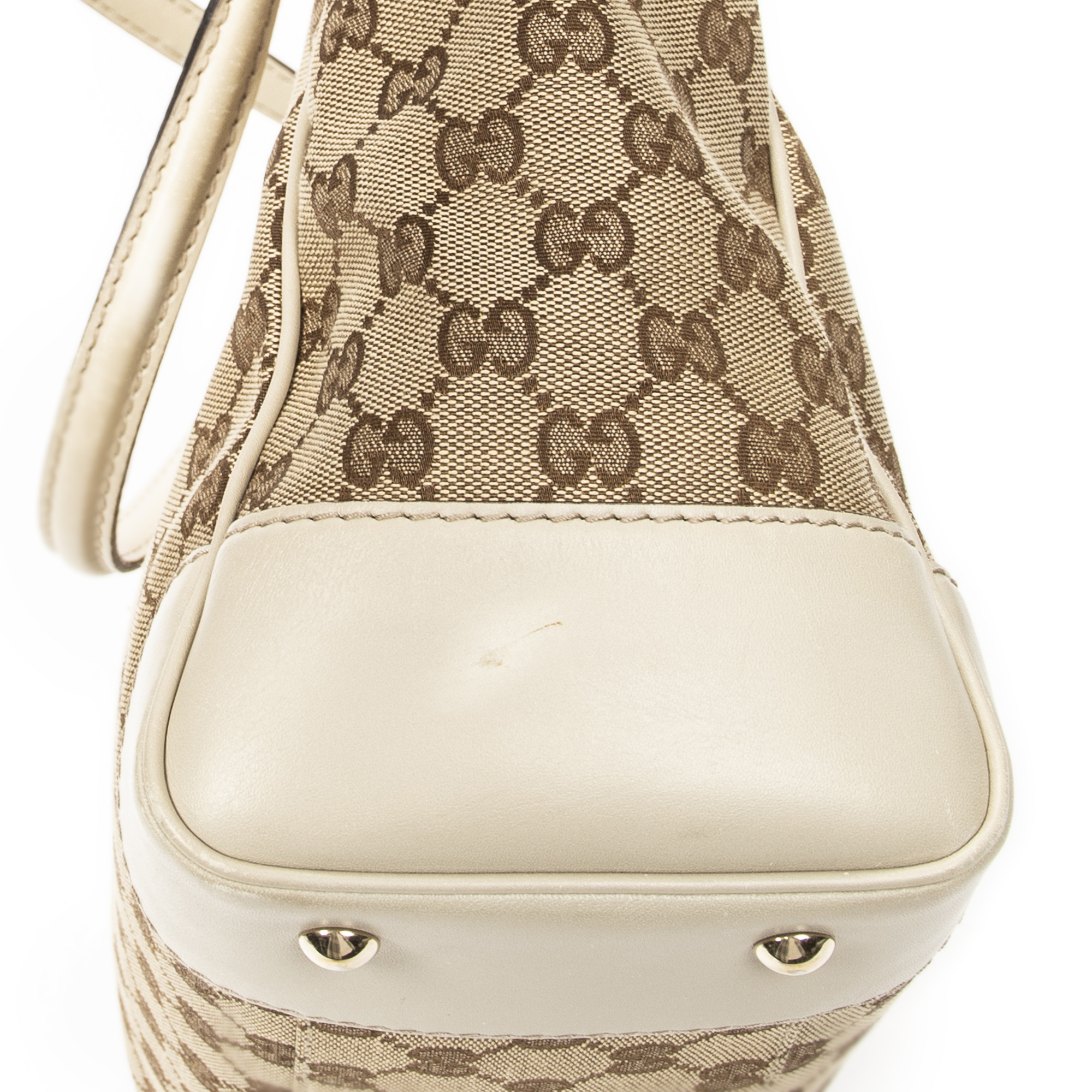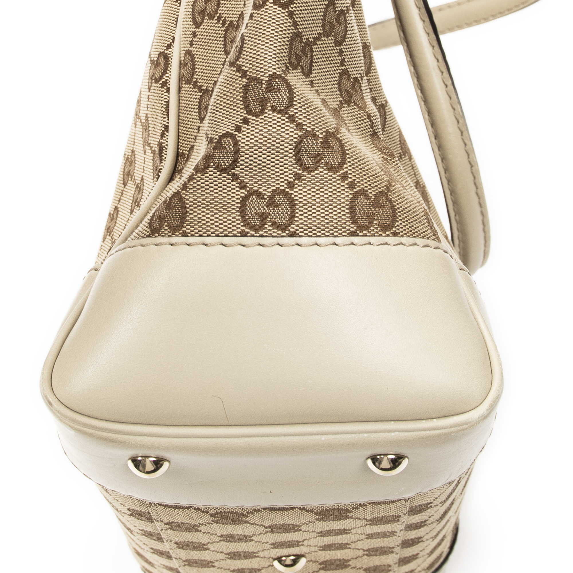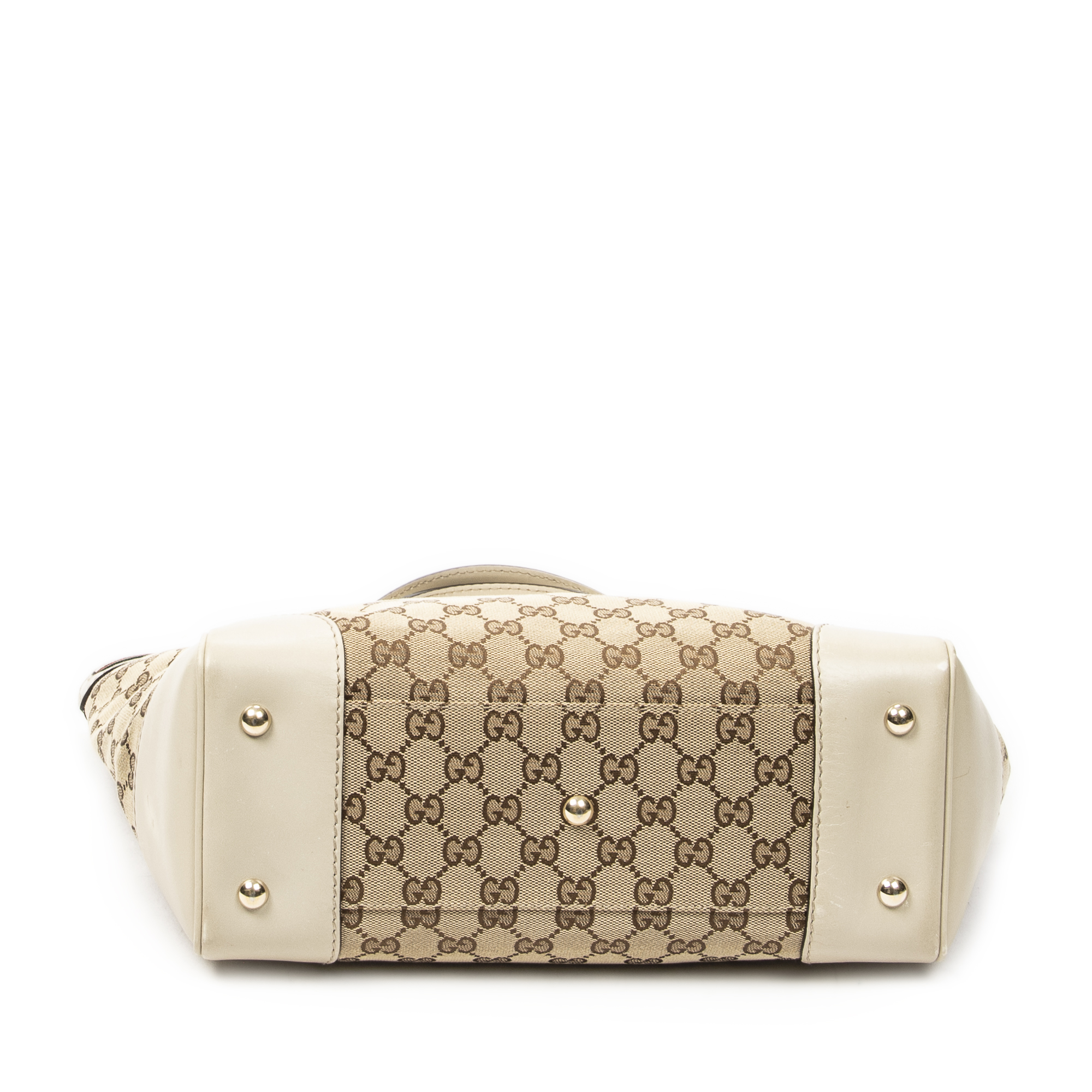 Gucci Shoulder Bag Web Mayfair Tote in Beige Monogrammed Canvas and Gold hardware. The product is in Excellent Condition (A).