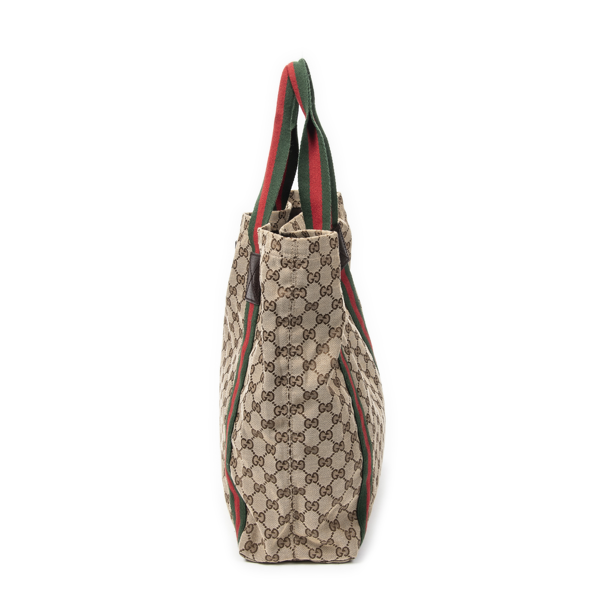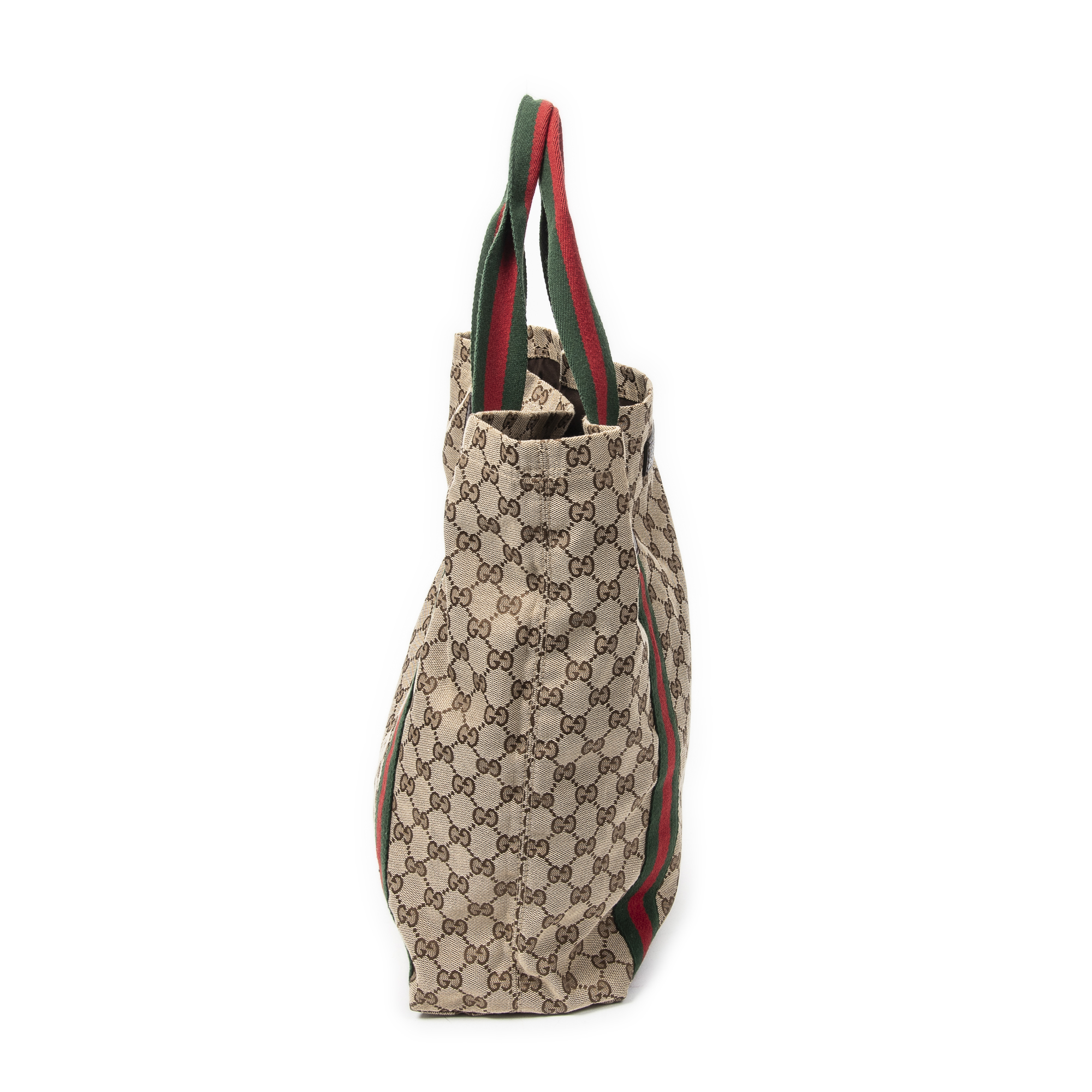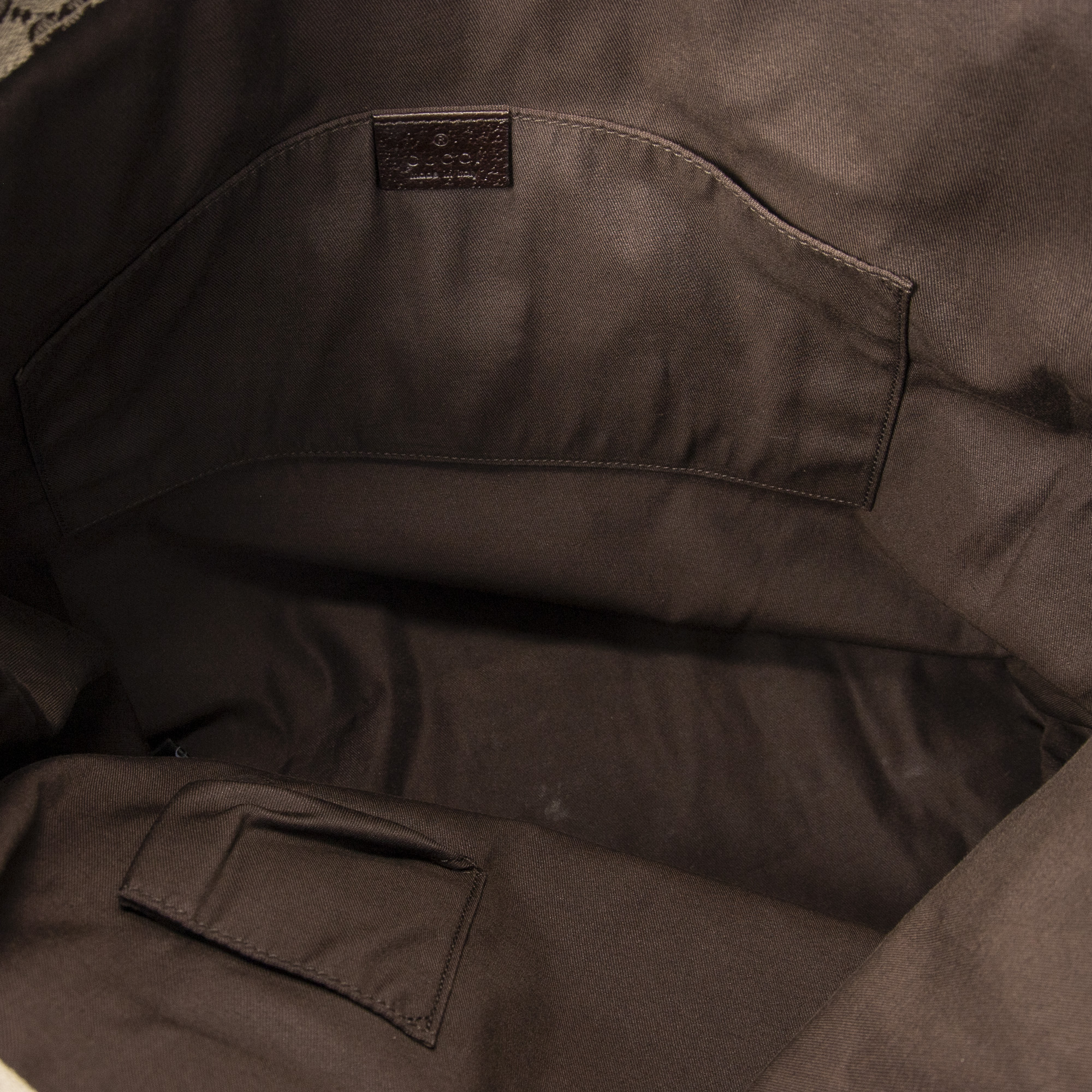 Gucci Shoulder Bag Web Open Shopper in Beige/Brown Monogrammed Canvas and None hardware. The product is in Excellent Condition (A).