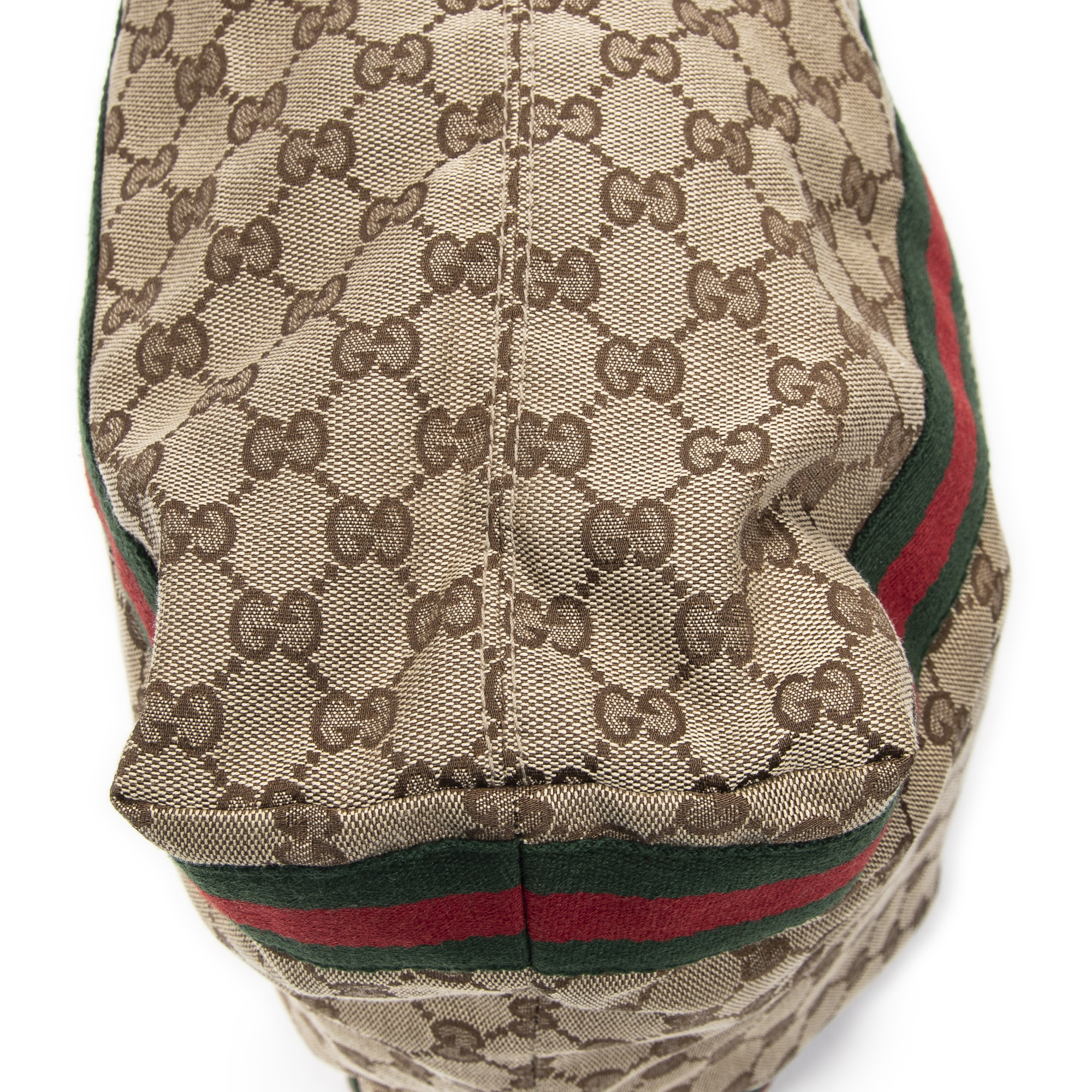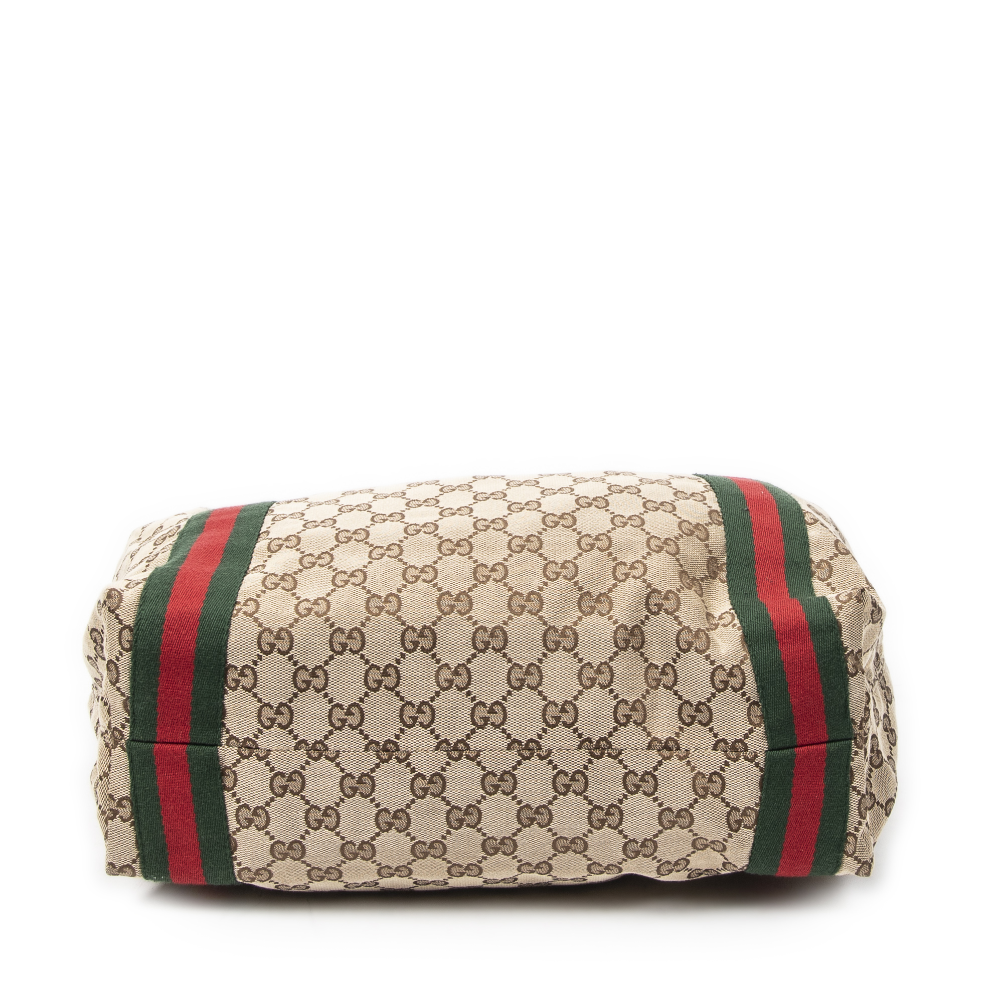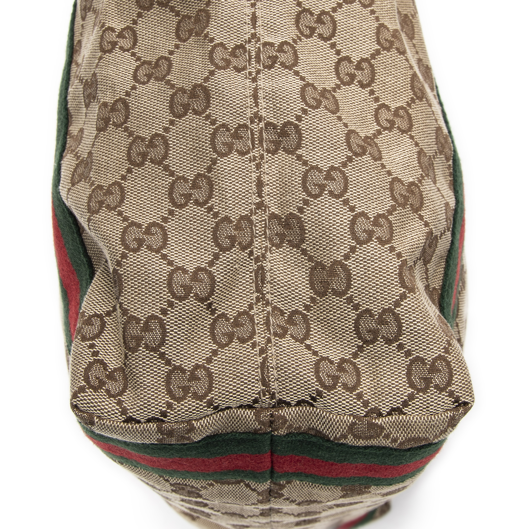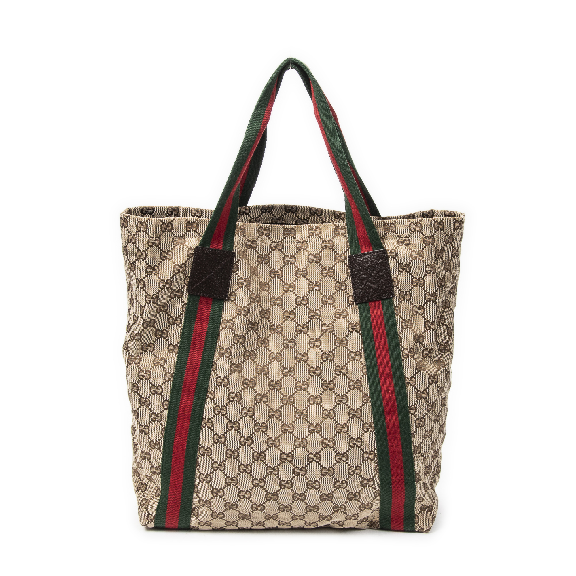 Gucci Shoulder Bag Web Open Shopper in Beige/Brown Monogrammed Canvas and None hardware. The product is in Excellent Condition (A).