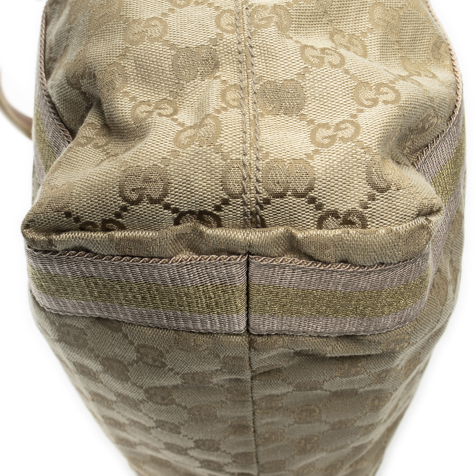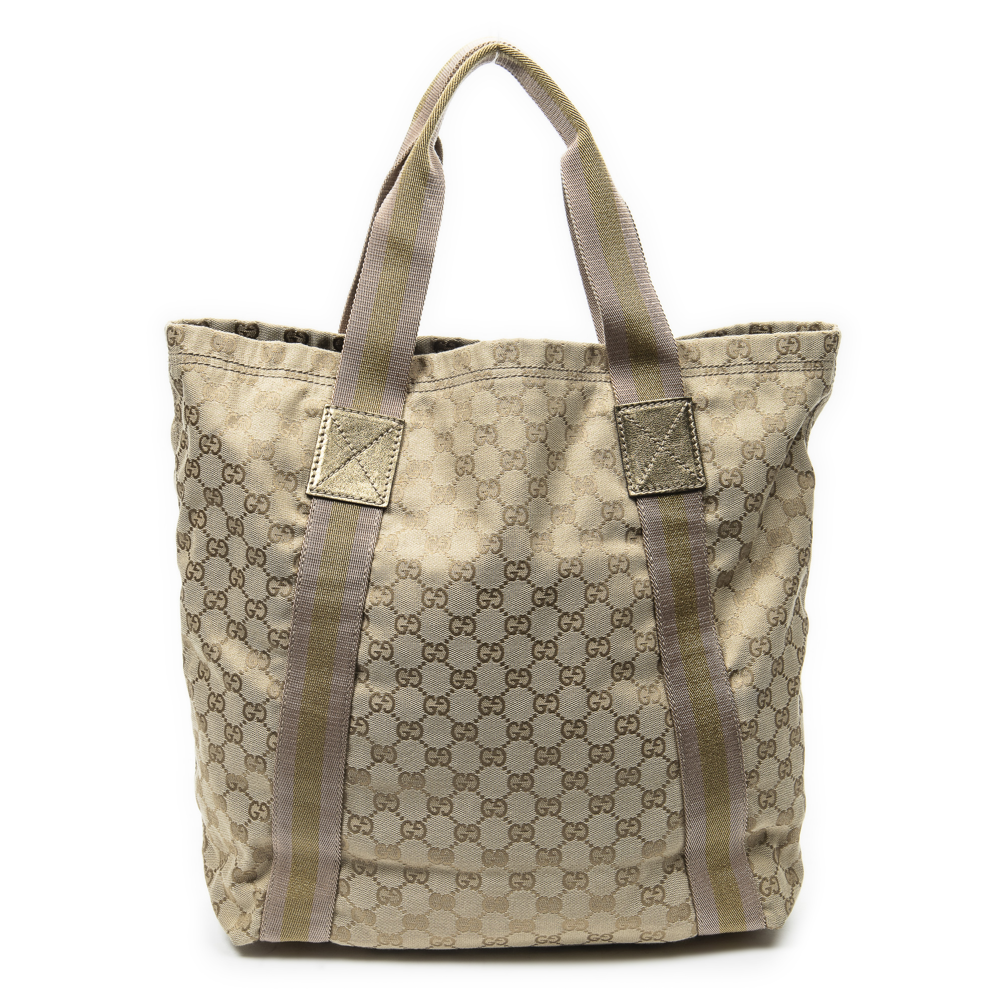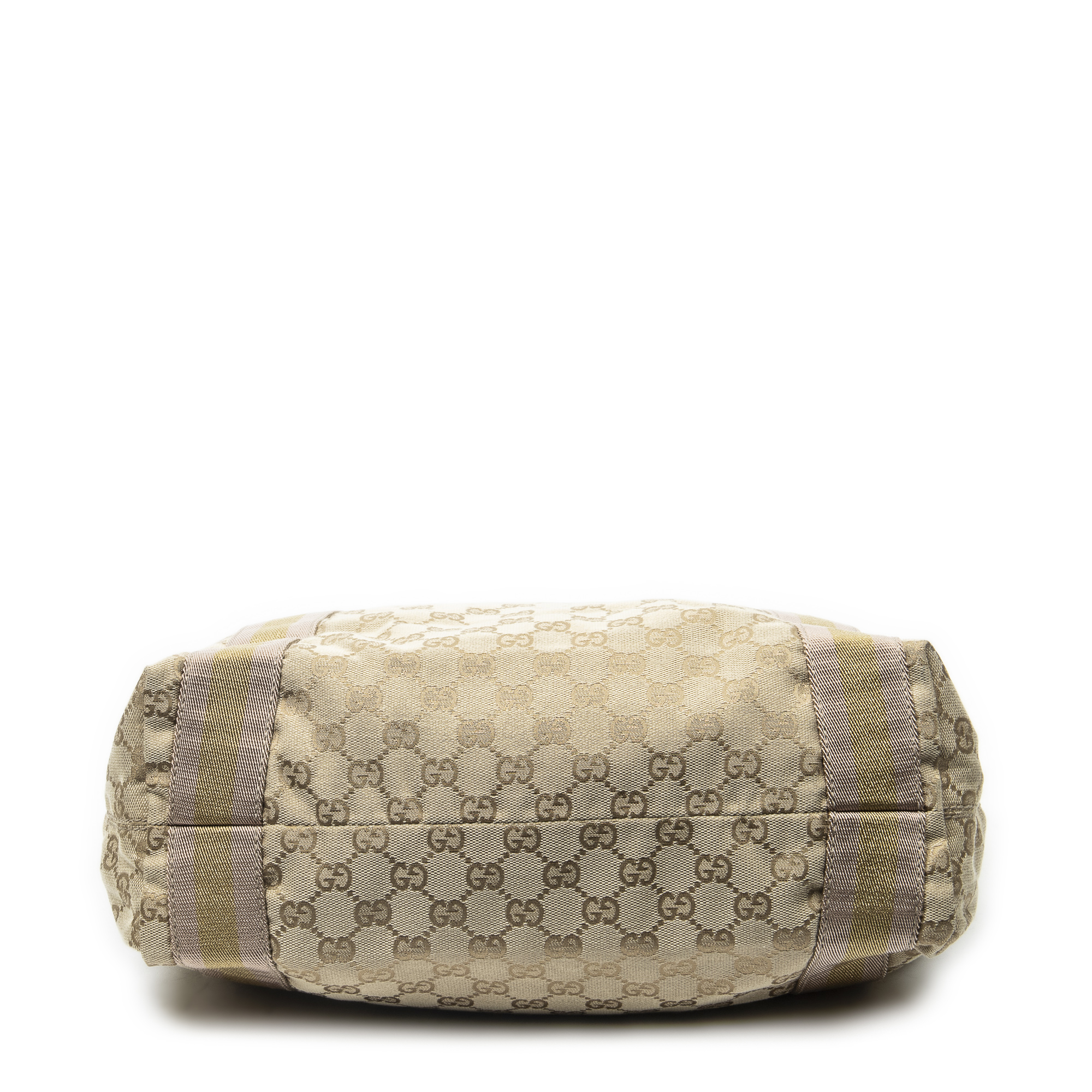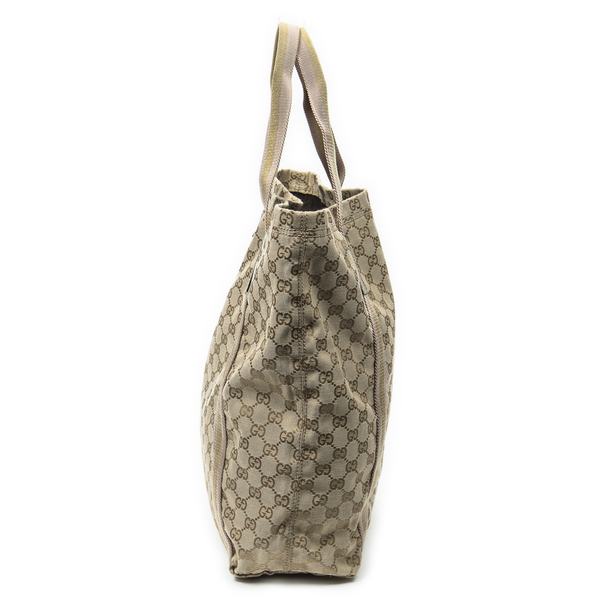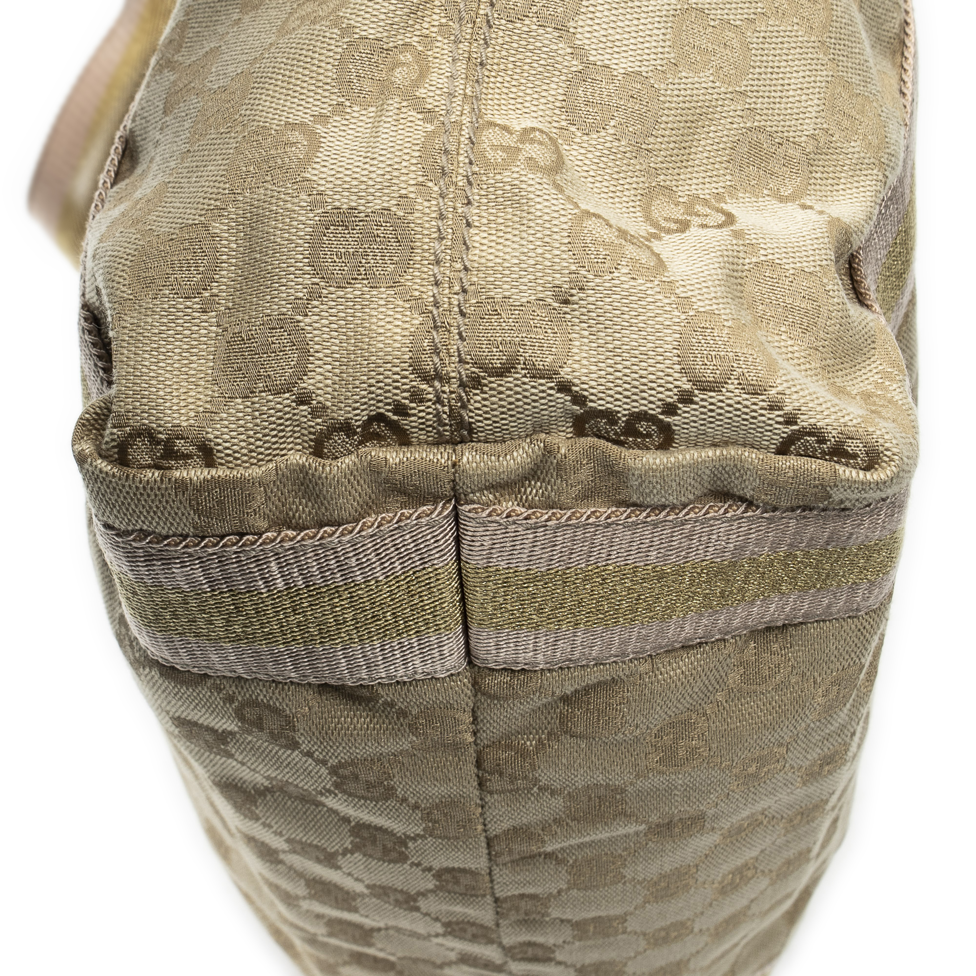 Gucci Shoulder Bag Web Open Shopper in Pink/Beige Monogrammed Canvas and hardware. The product is in Excellent Condition (A).