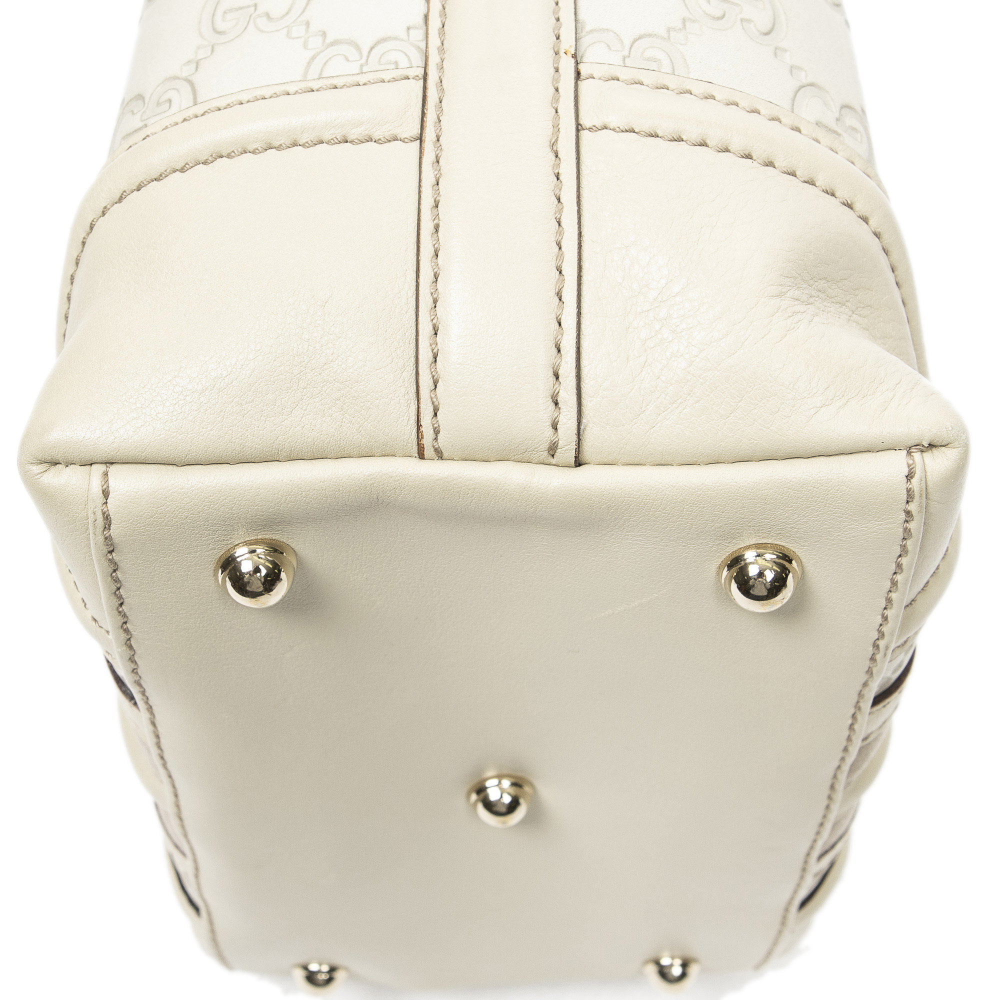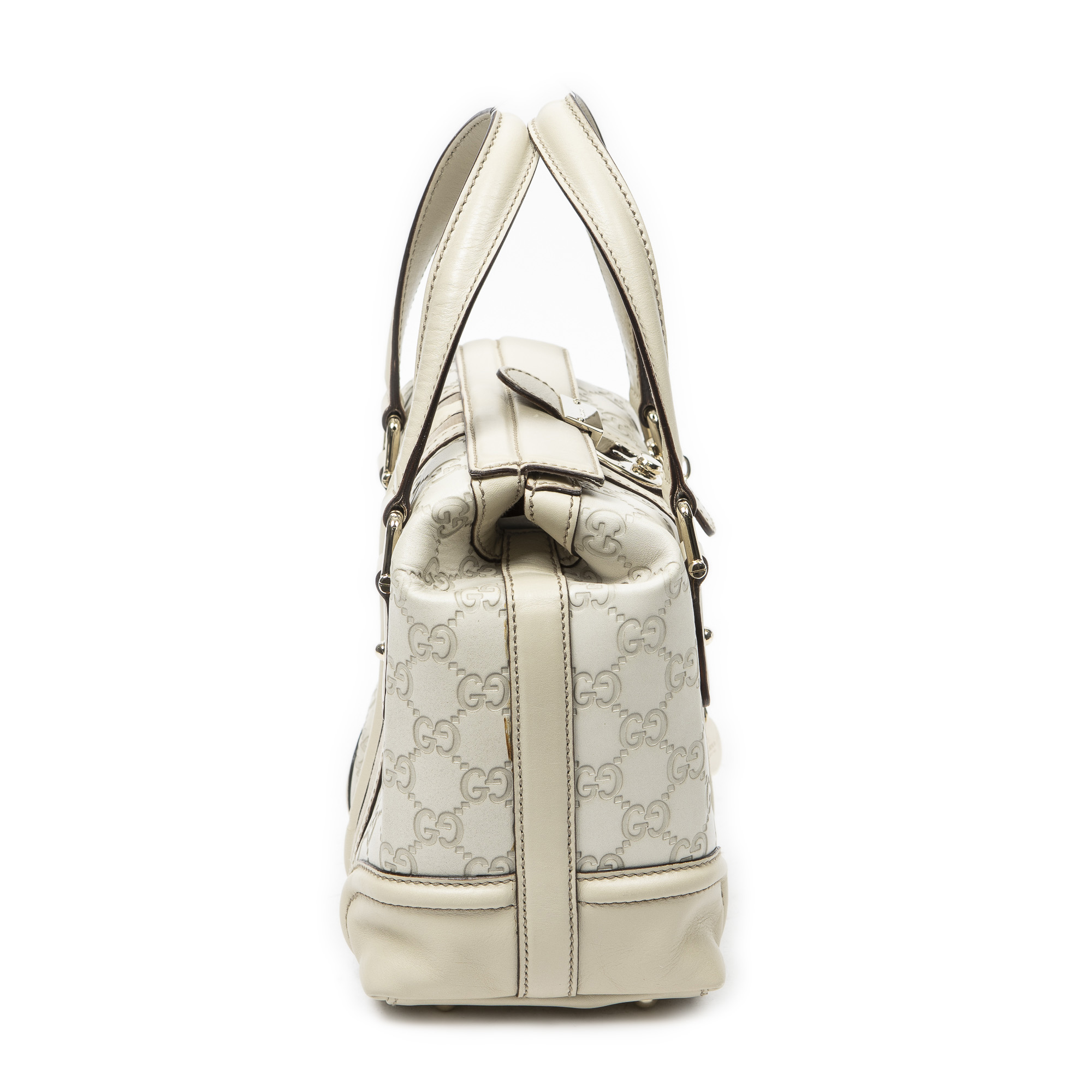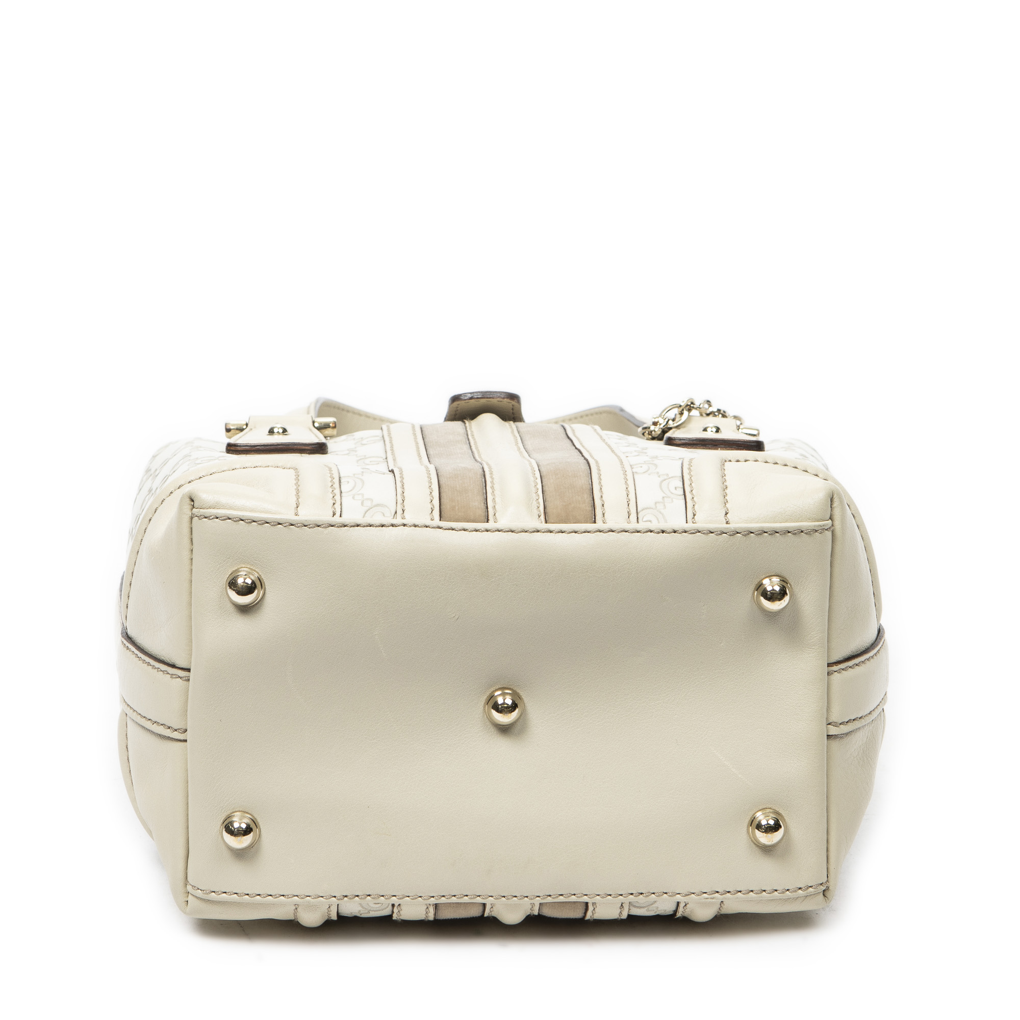 Gucci Shoulder Bag Web Treasure Boston in Ivory Guccissima Leather and Gold hardware. The product is in Excellent Condition (A).