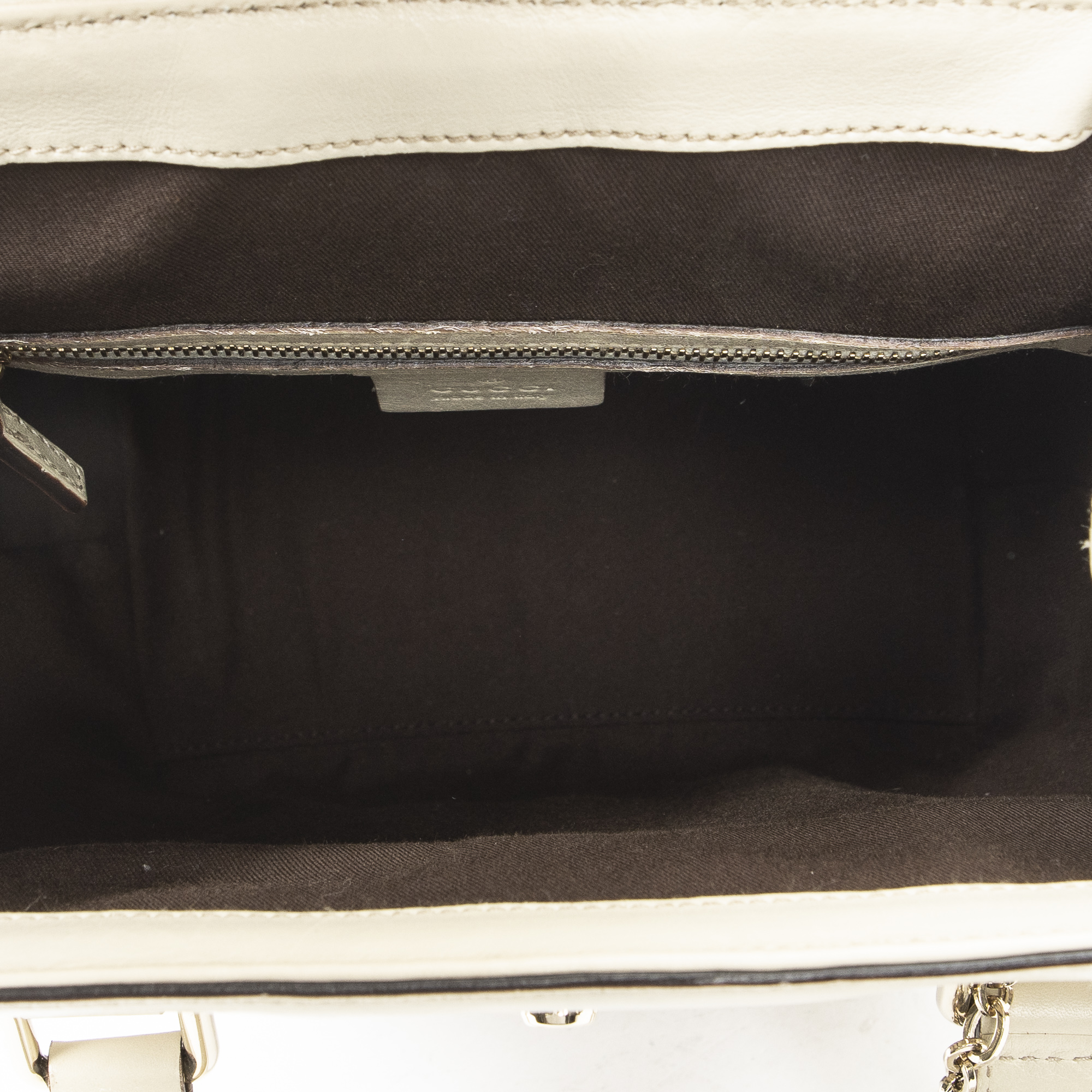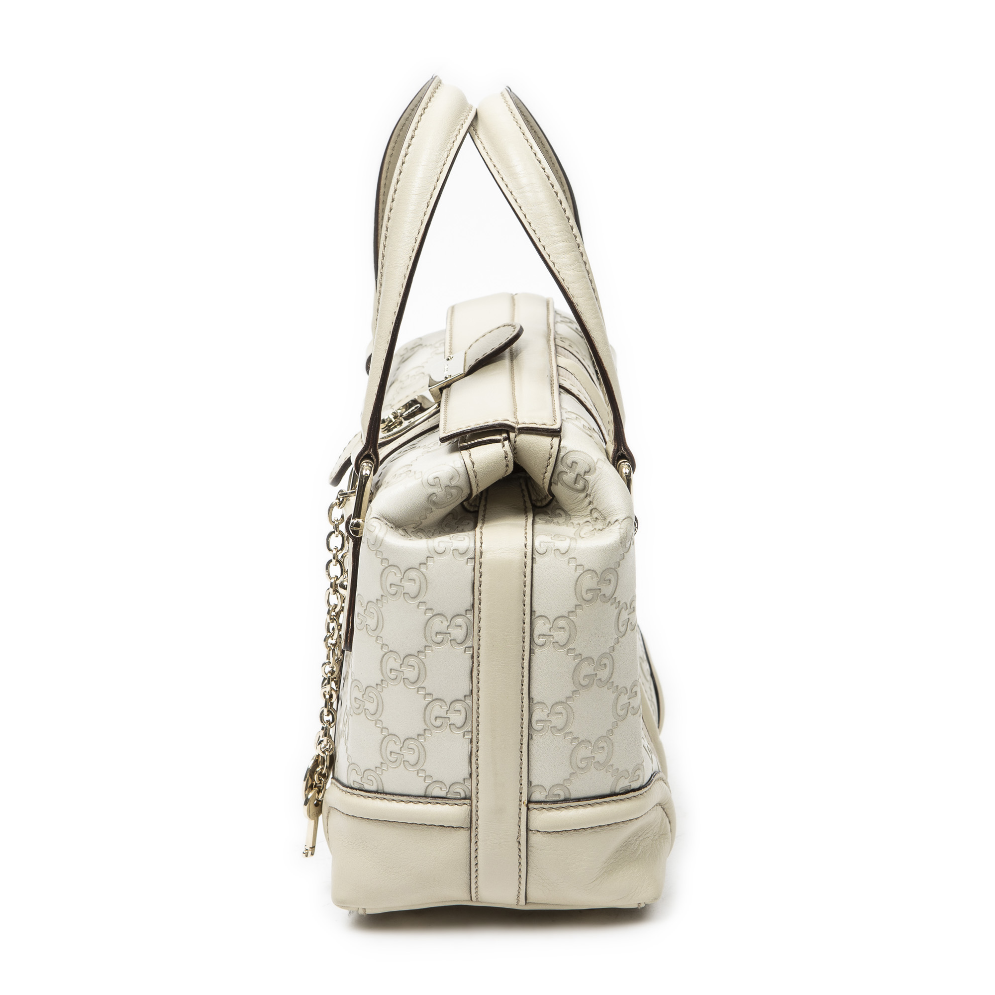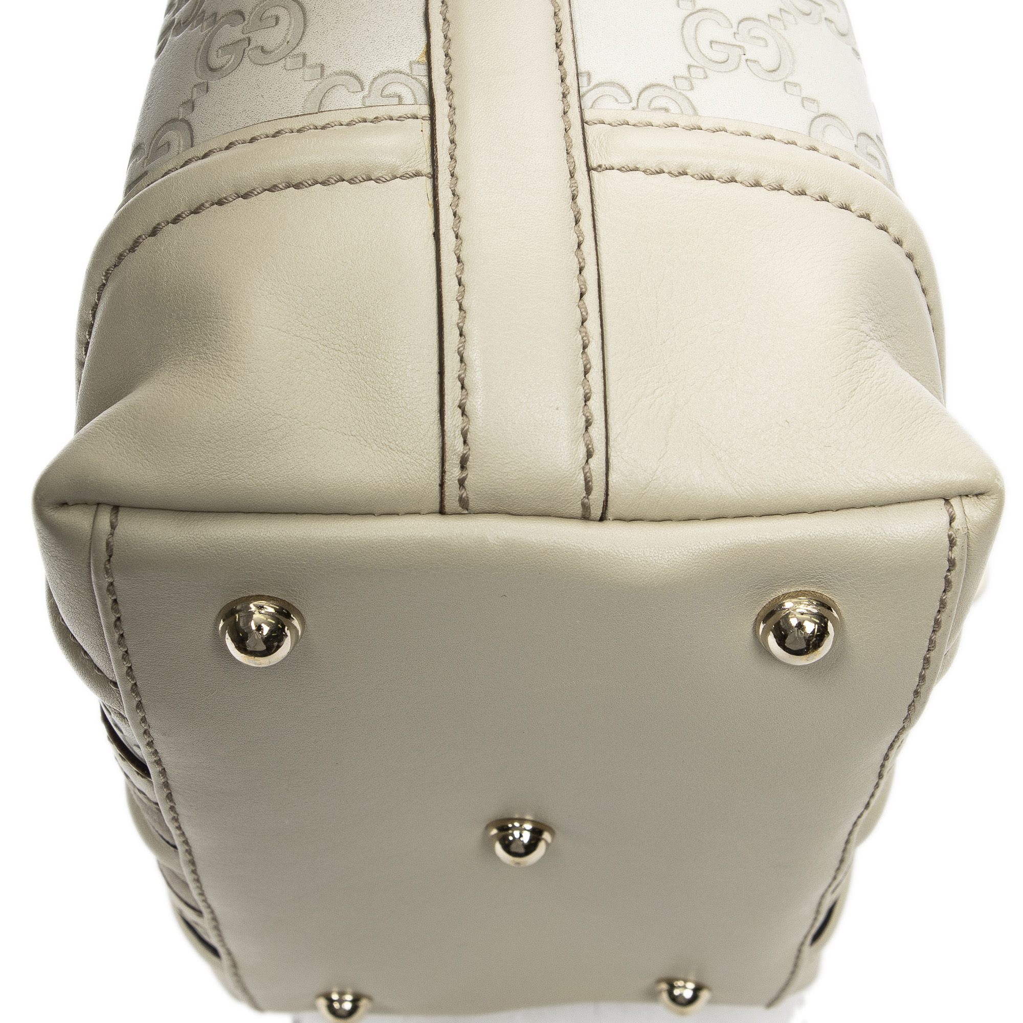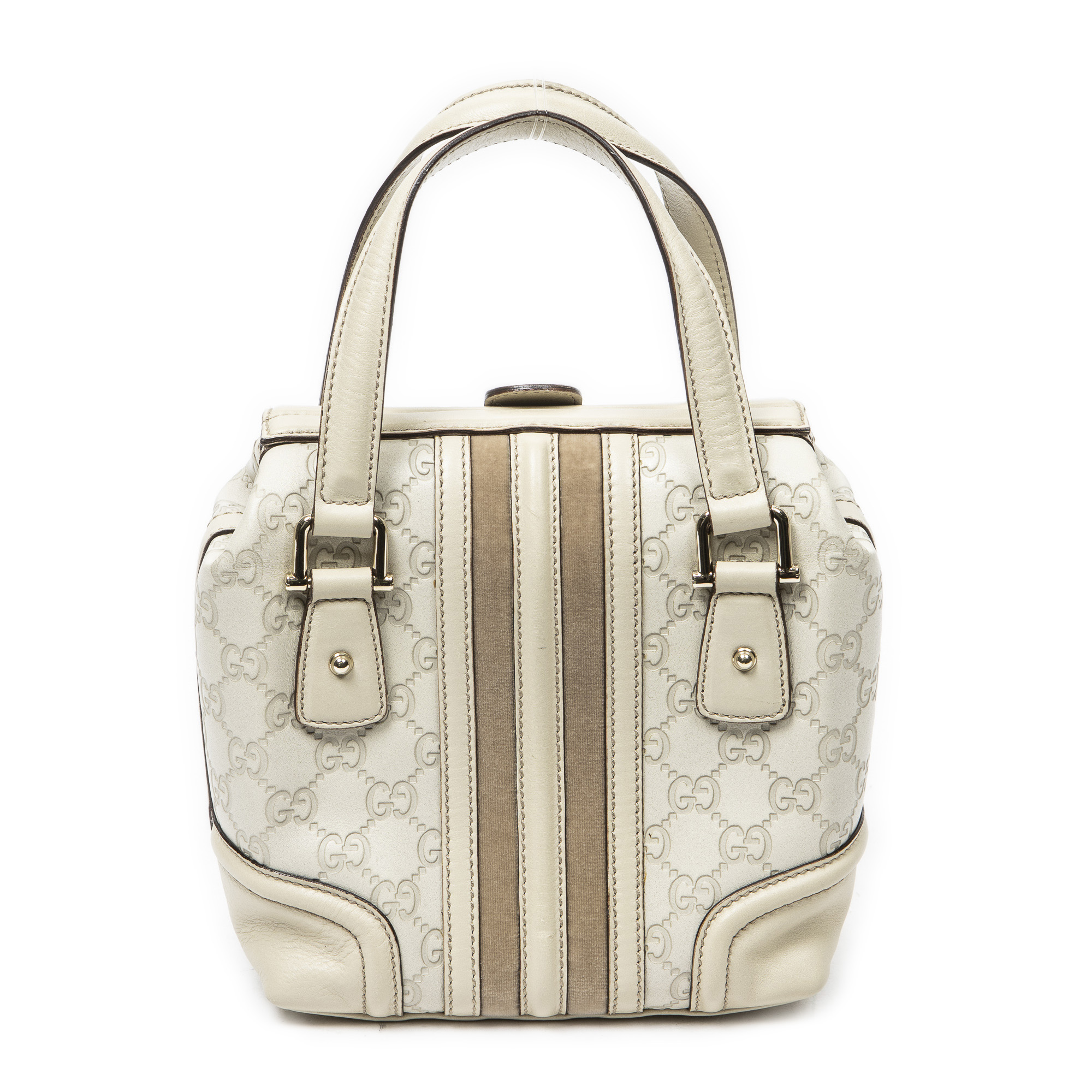 Gucci Shoulder Bag Web Treasure Boston in Ivory Guccissima Leather and Gold hardware. The product is in Excellent Condition (A).