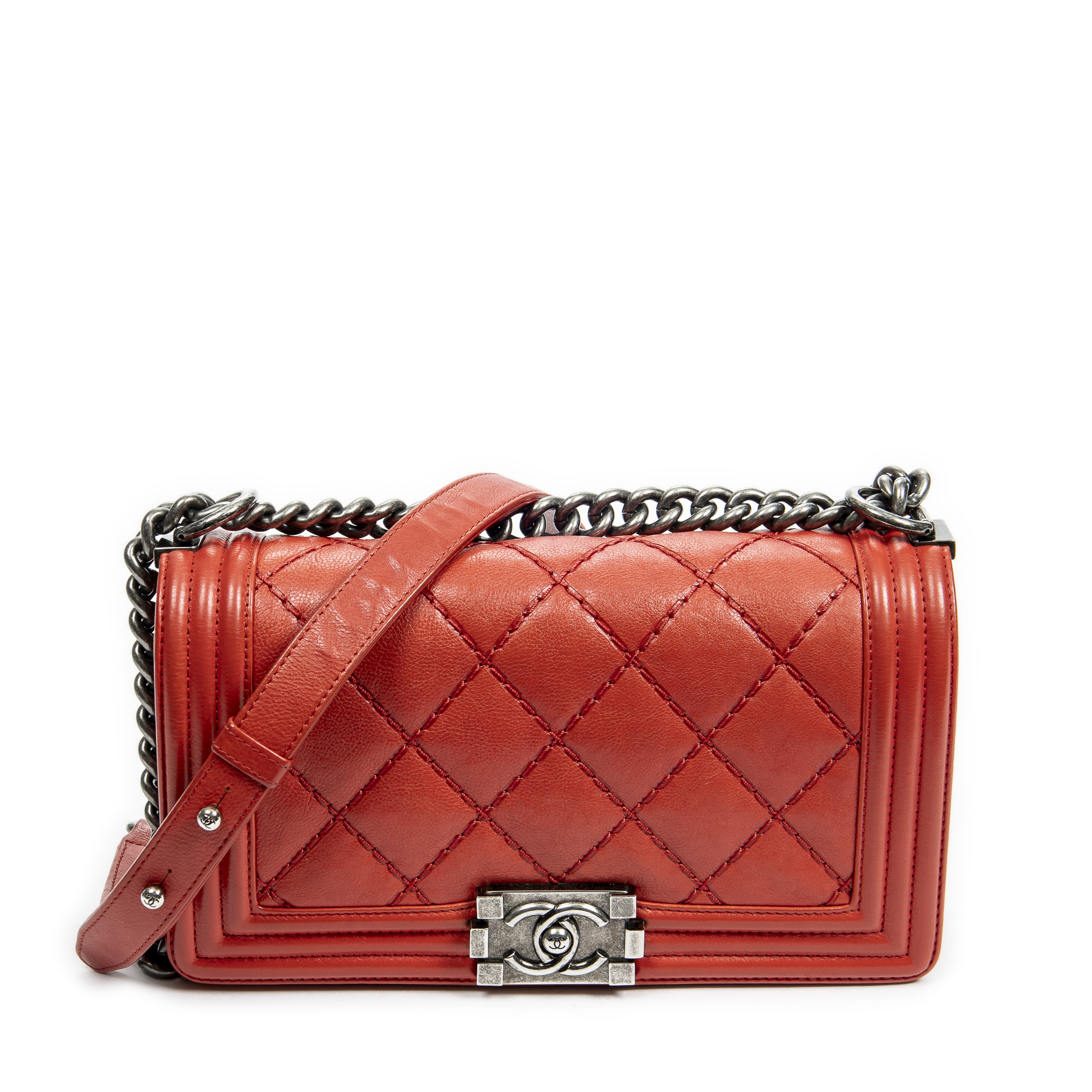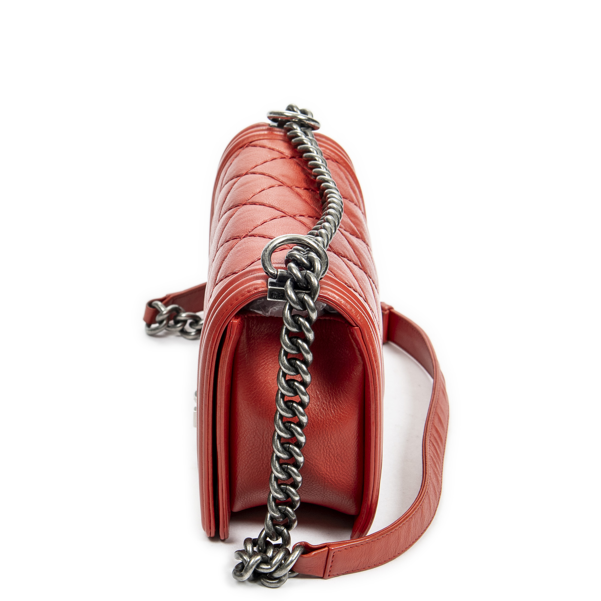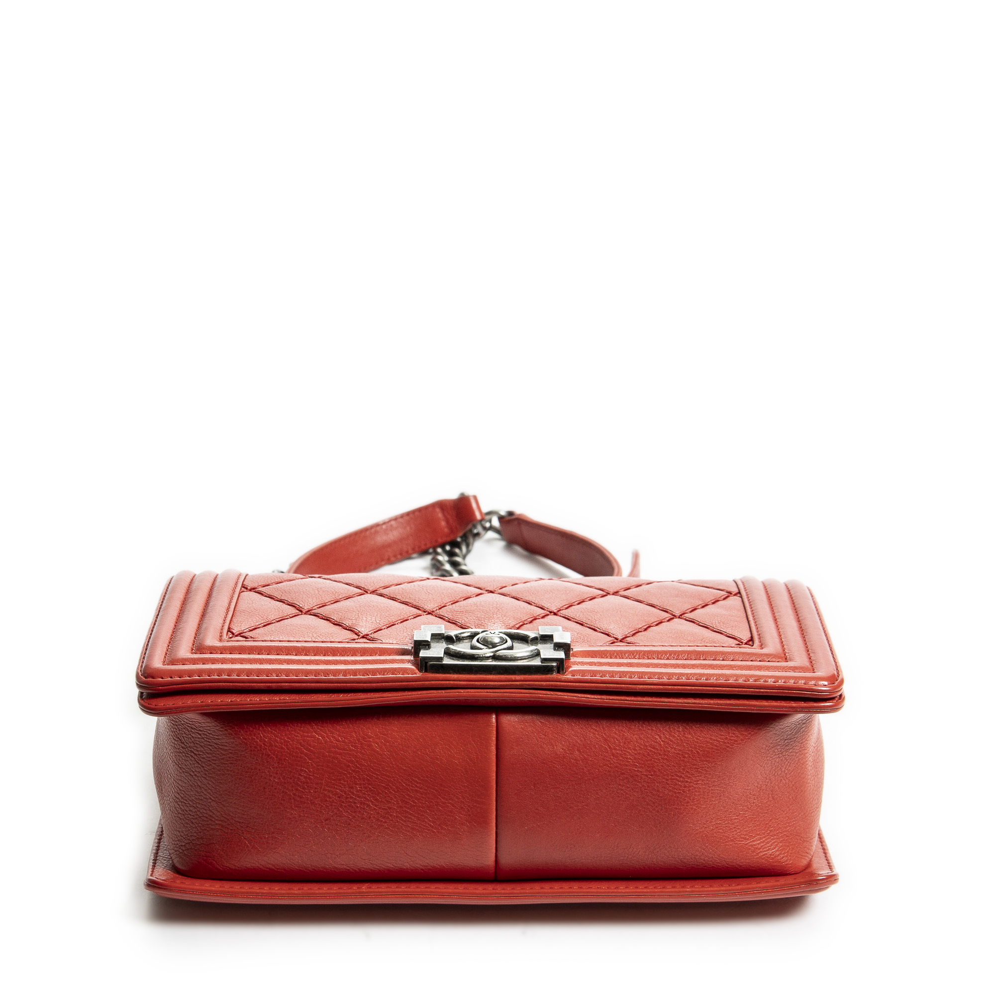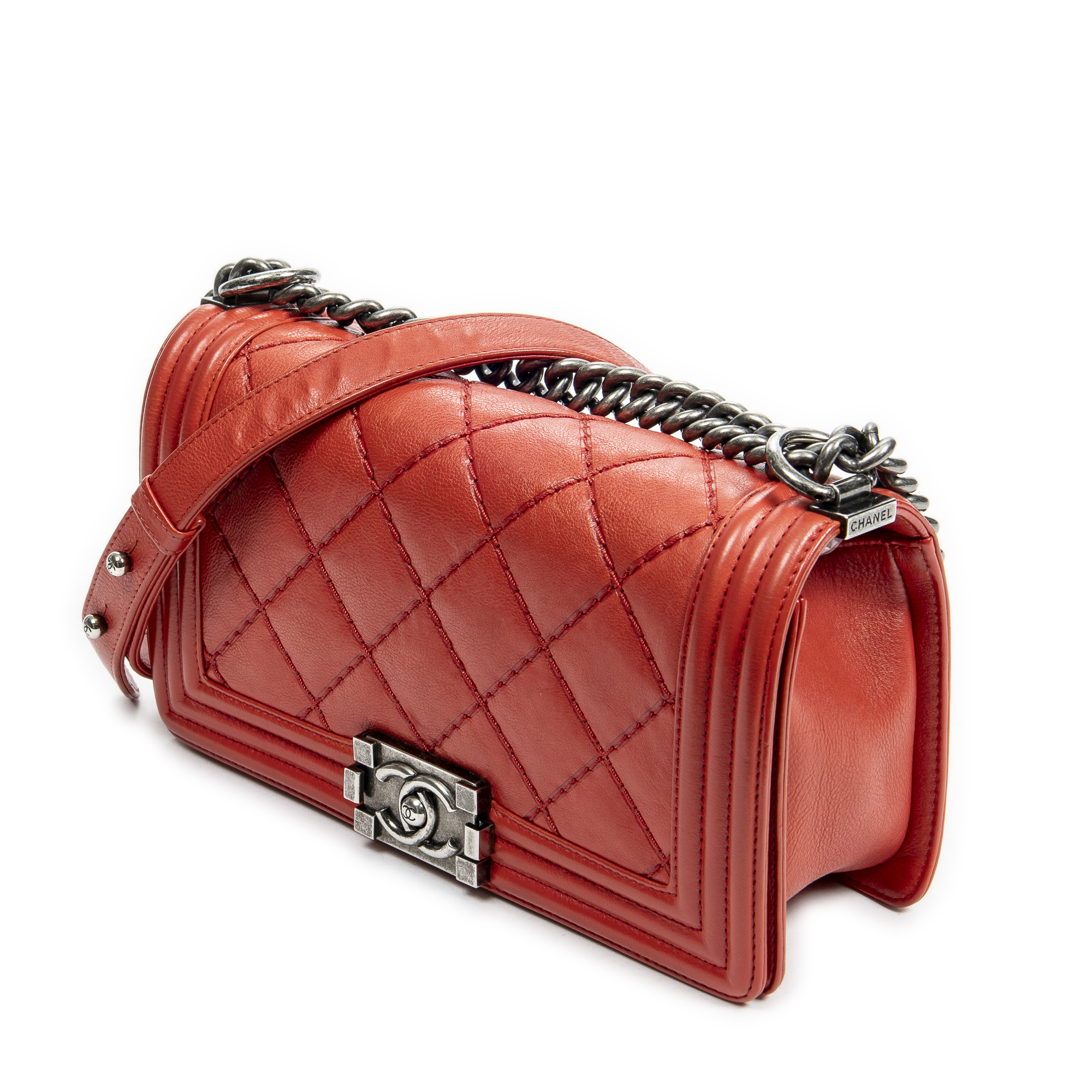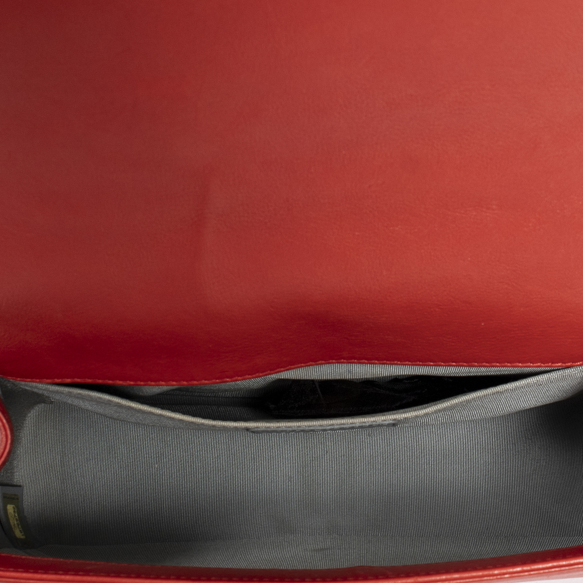 Chanel Shoulder Bag Wild Stitch Boy in Red Quilted Calfskin Leather and Silver hardware. The product is in Perfect Condition (AA).