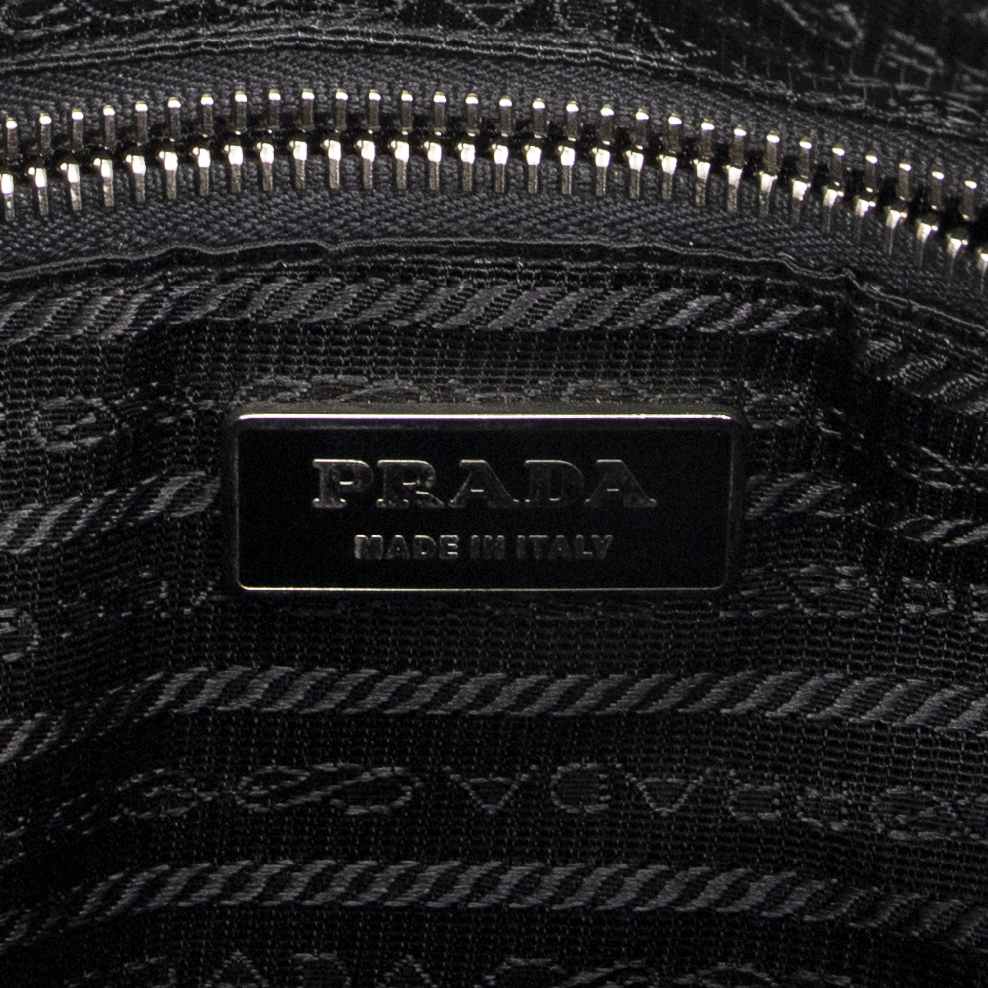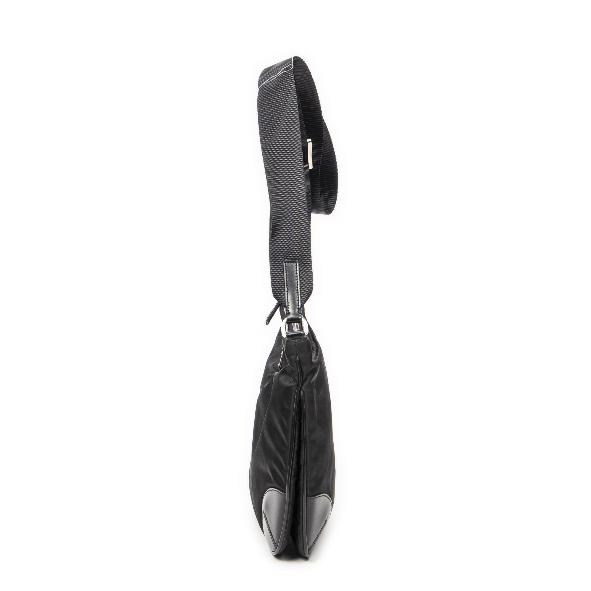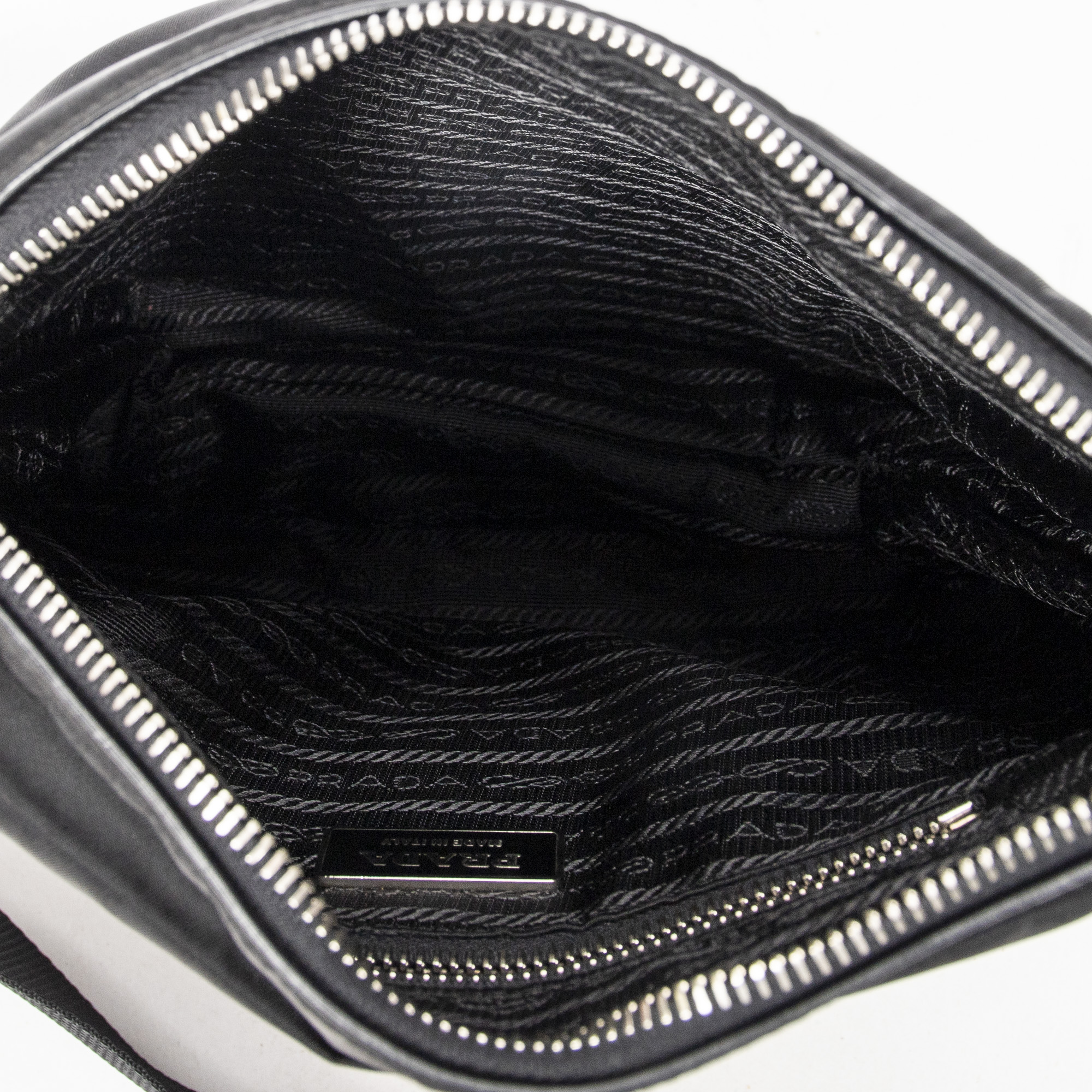 Prada Shoulder Bag Zip Crossbody in Black Nylon Canvas and Silver hardware. The product is in Excellent Condition (A).
