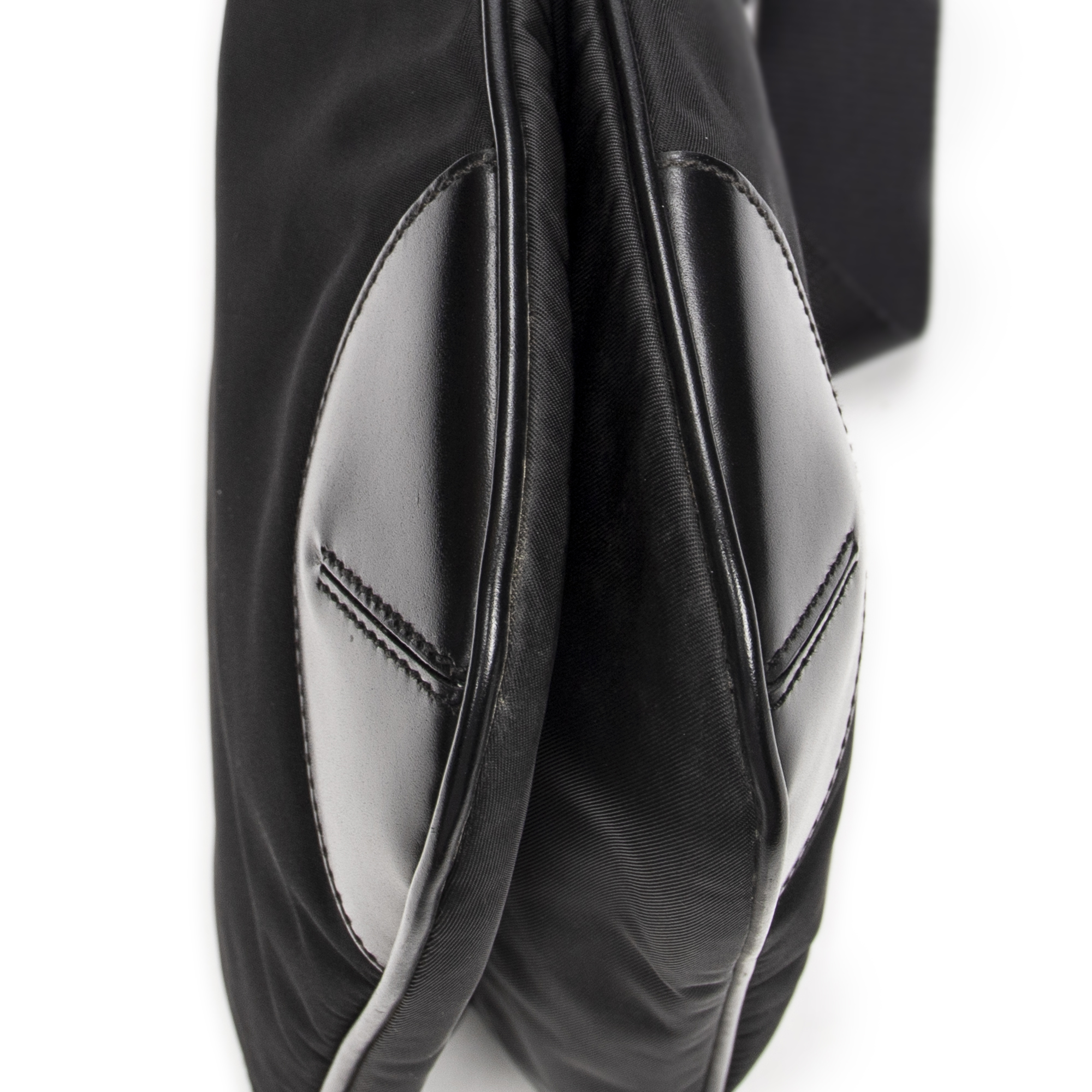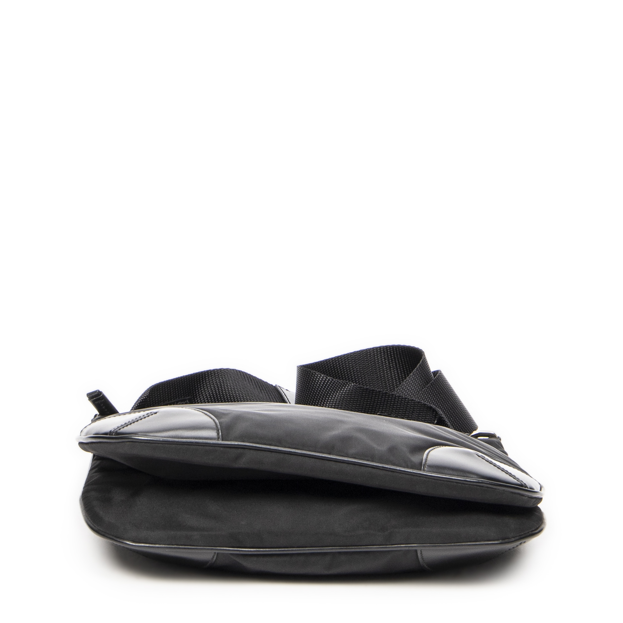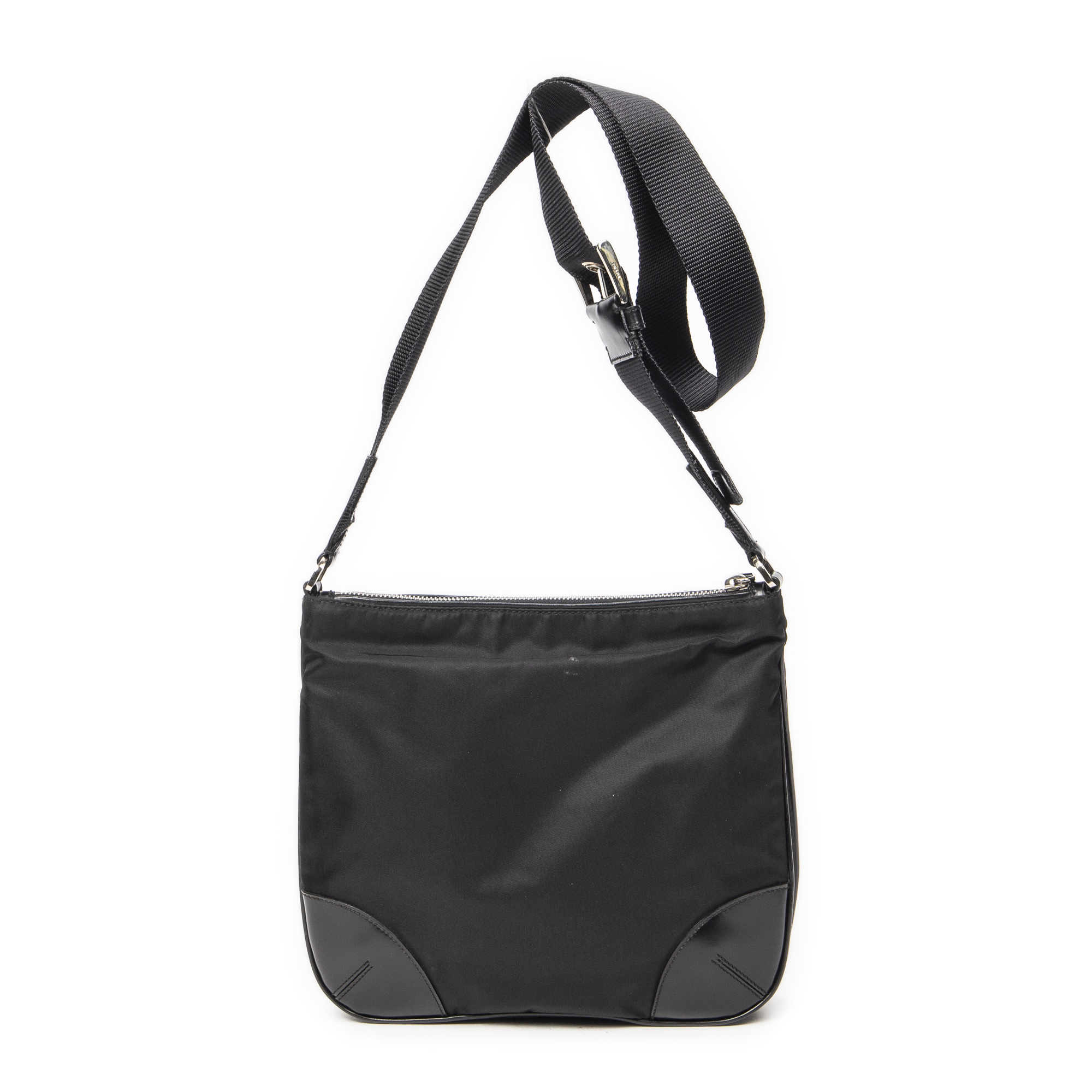 Prada Shoulder Bag Zip Crossbody in Black Nylon Canvas and Silver hardware. The product is in Excellent Condition (A).