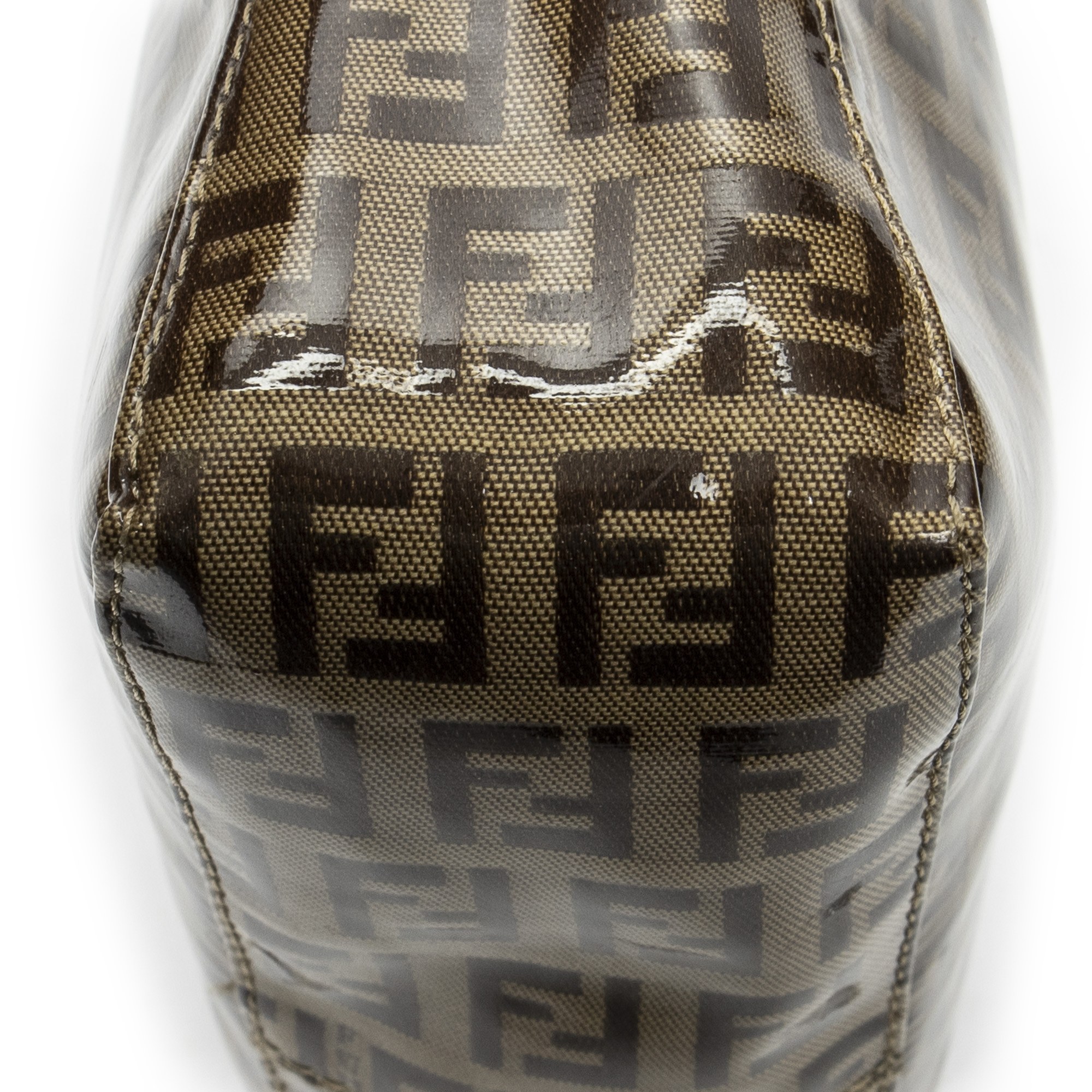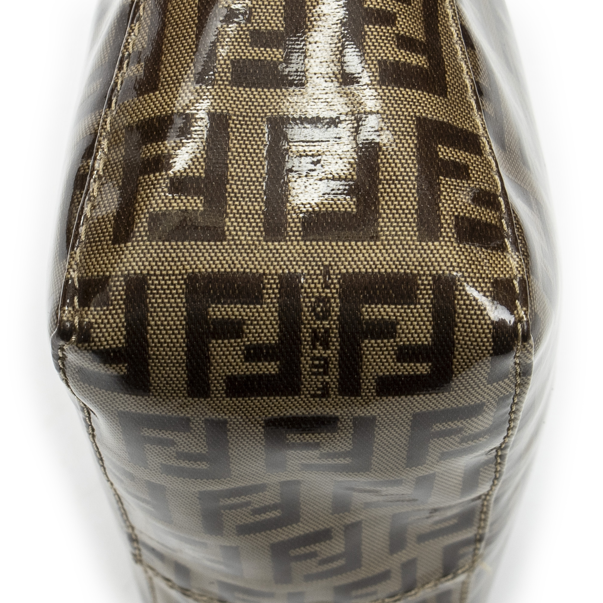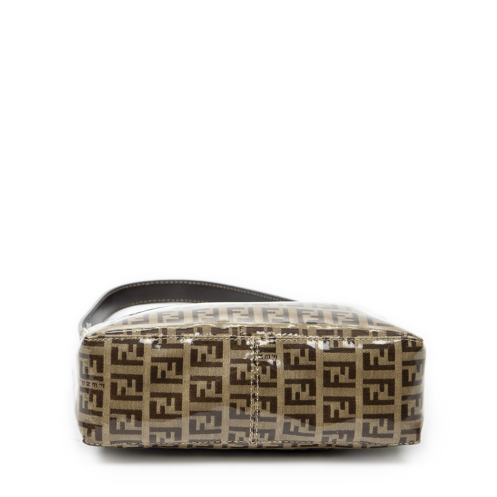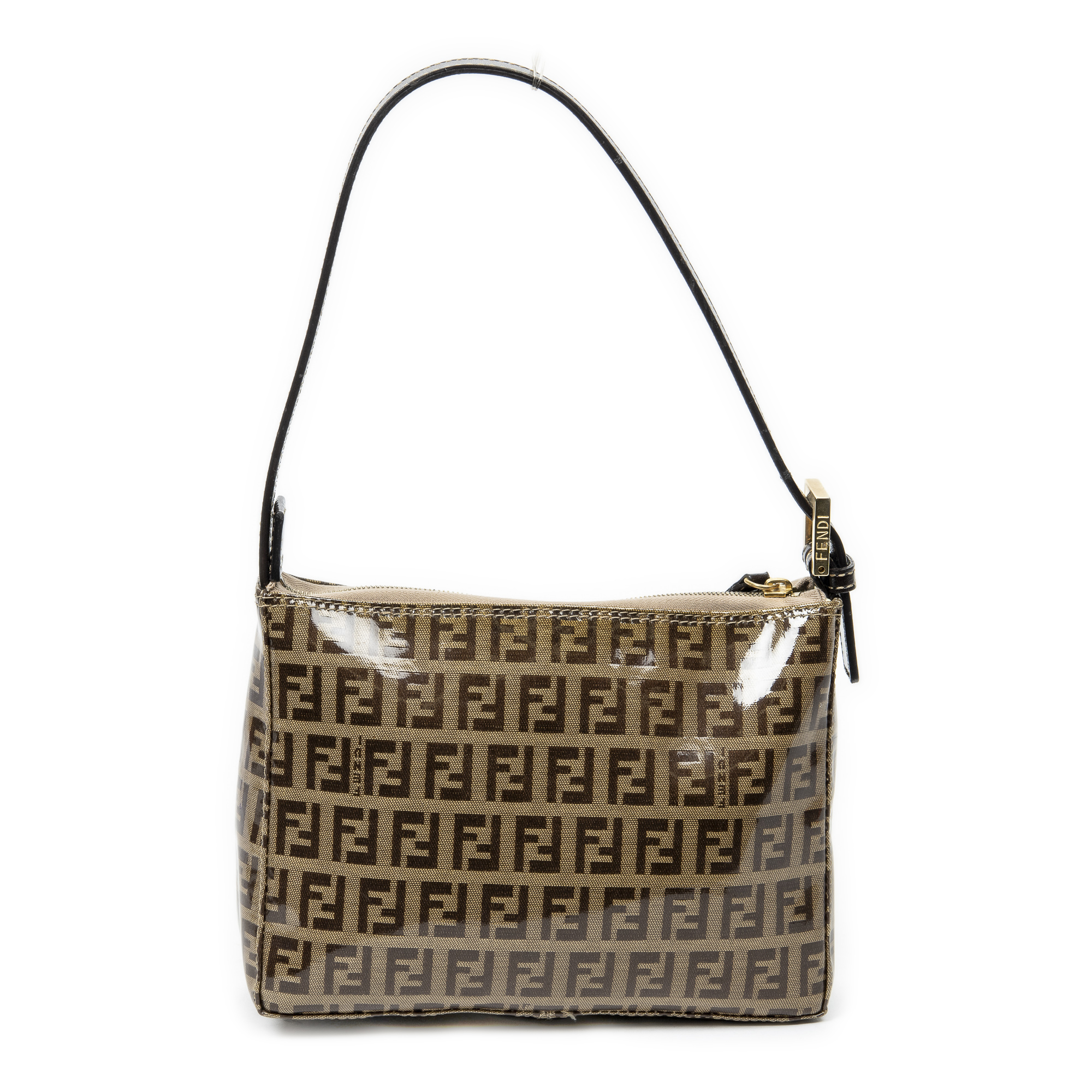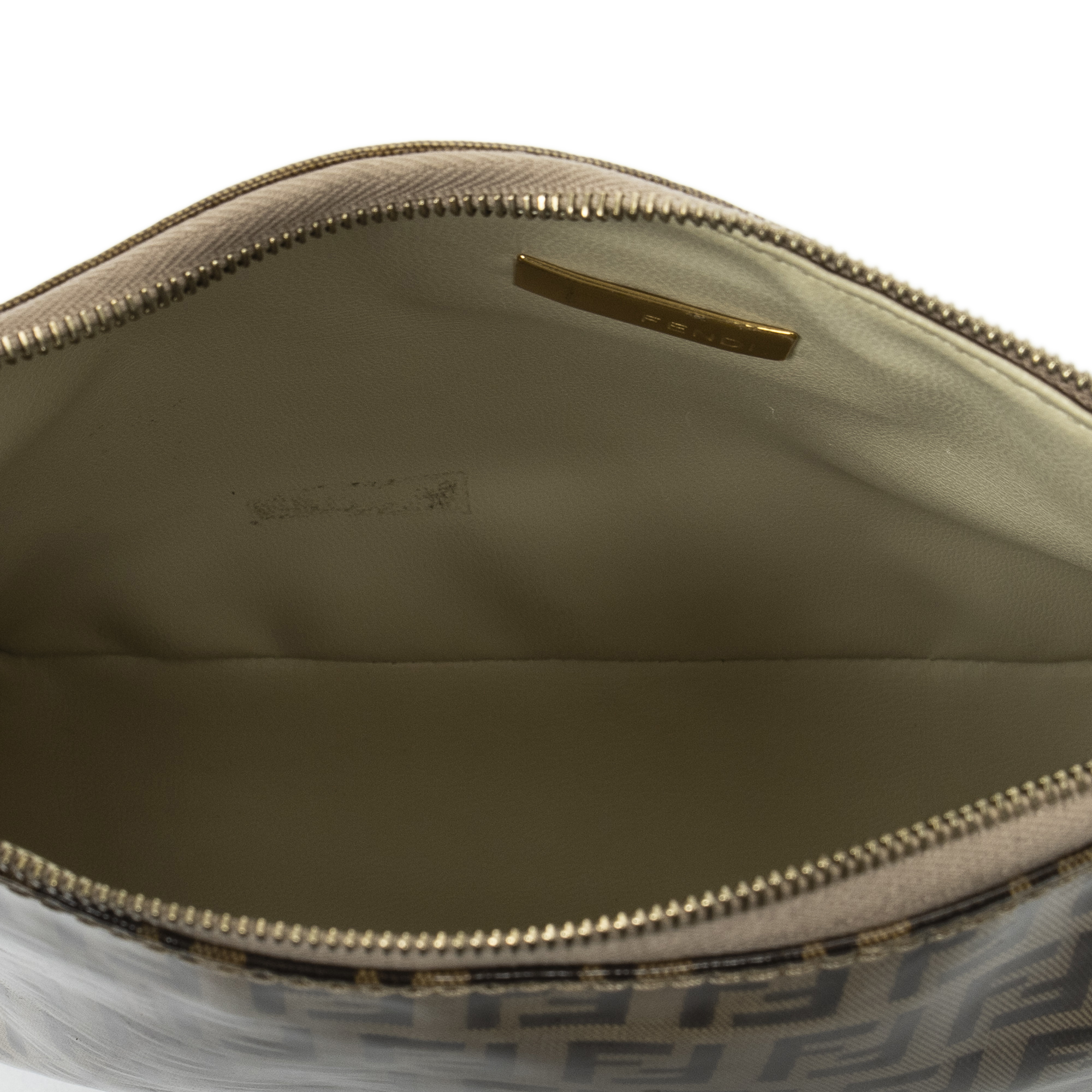 Fendi Shoulder Bag Zip Pochette in Brown Zucchino Coated Canvas and Gold hardware. The product is in Excellent Condition (A).