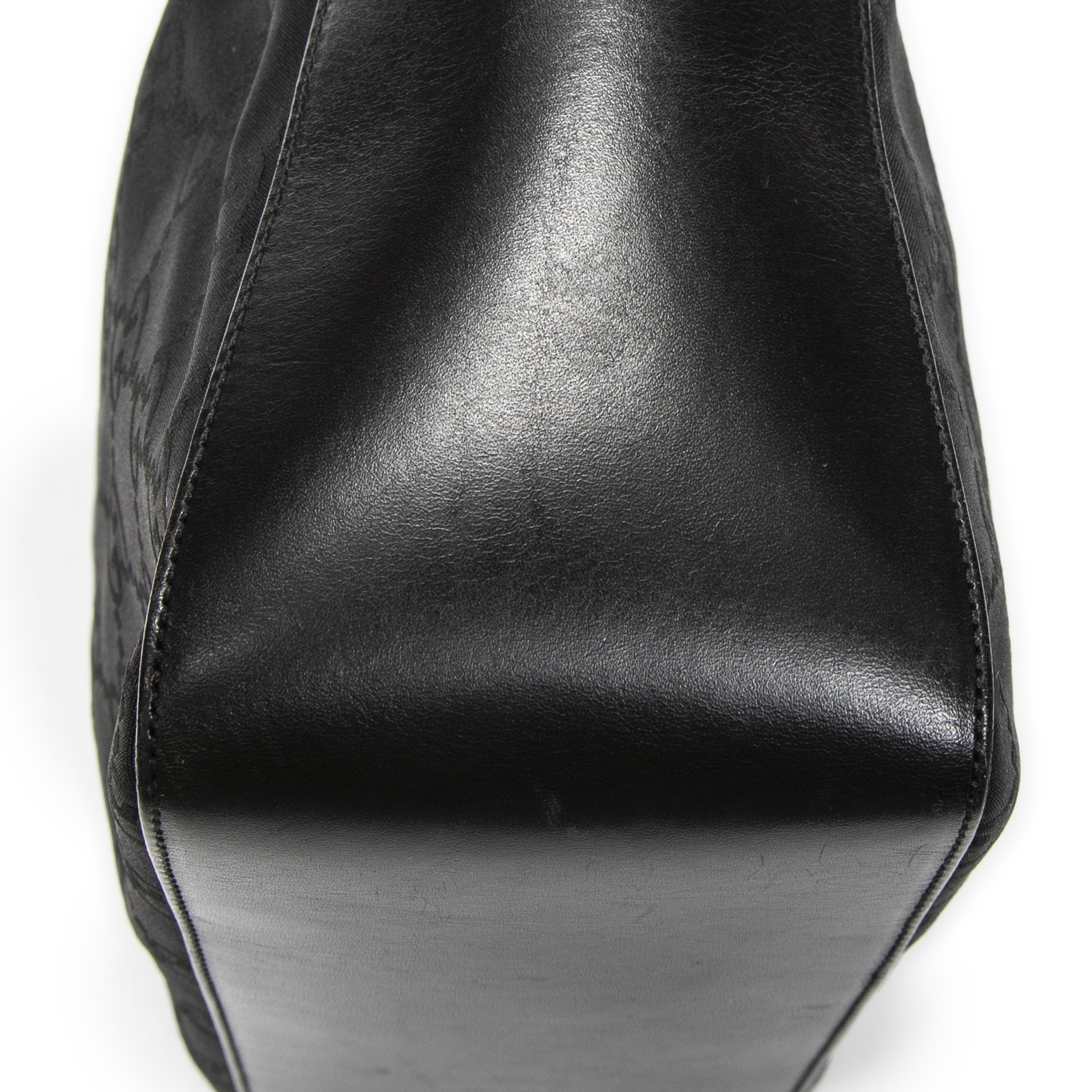 Gucci Shoulder Bag Zip Shoulder Hobo in Black Monogrammed Nylon Canvas and Silver hardware. The product is in Very Good Condition (AB).