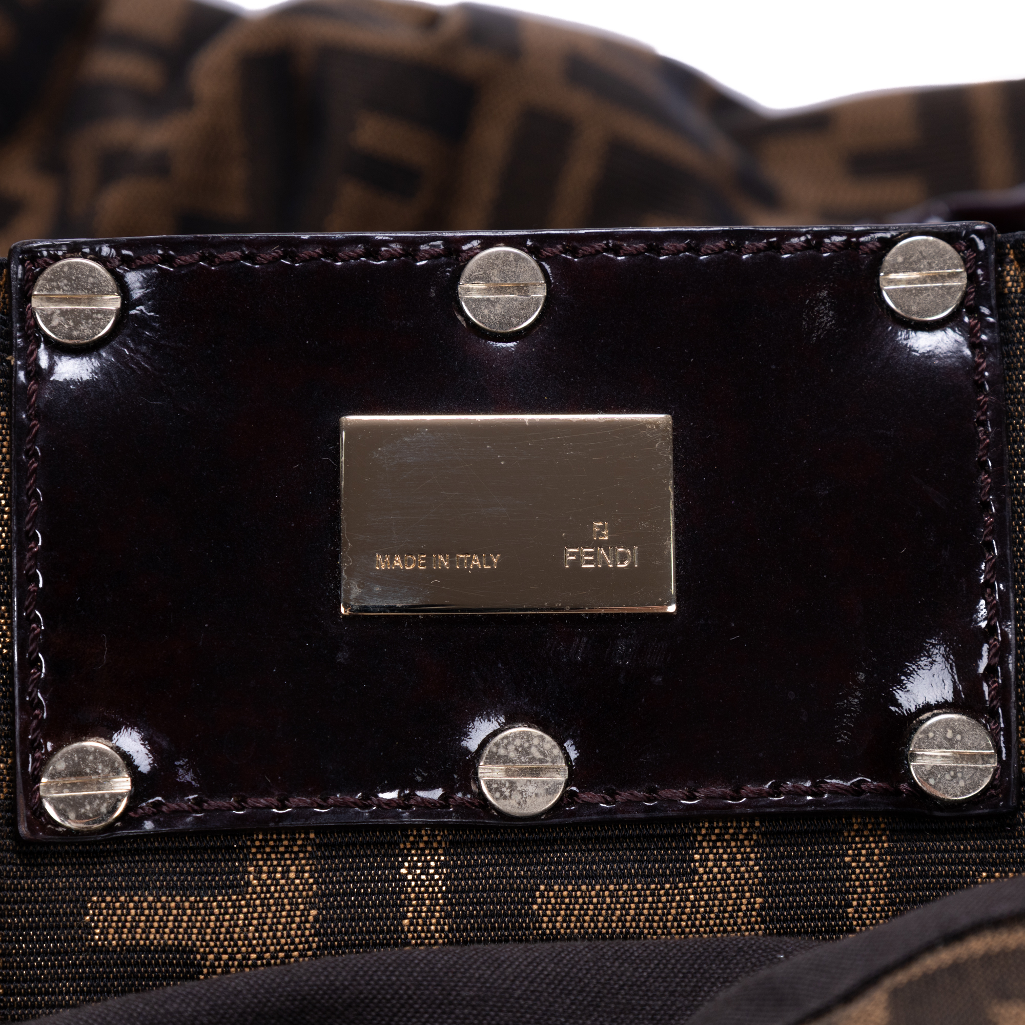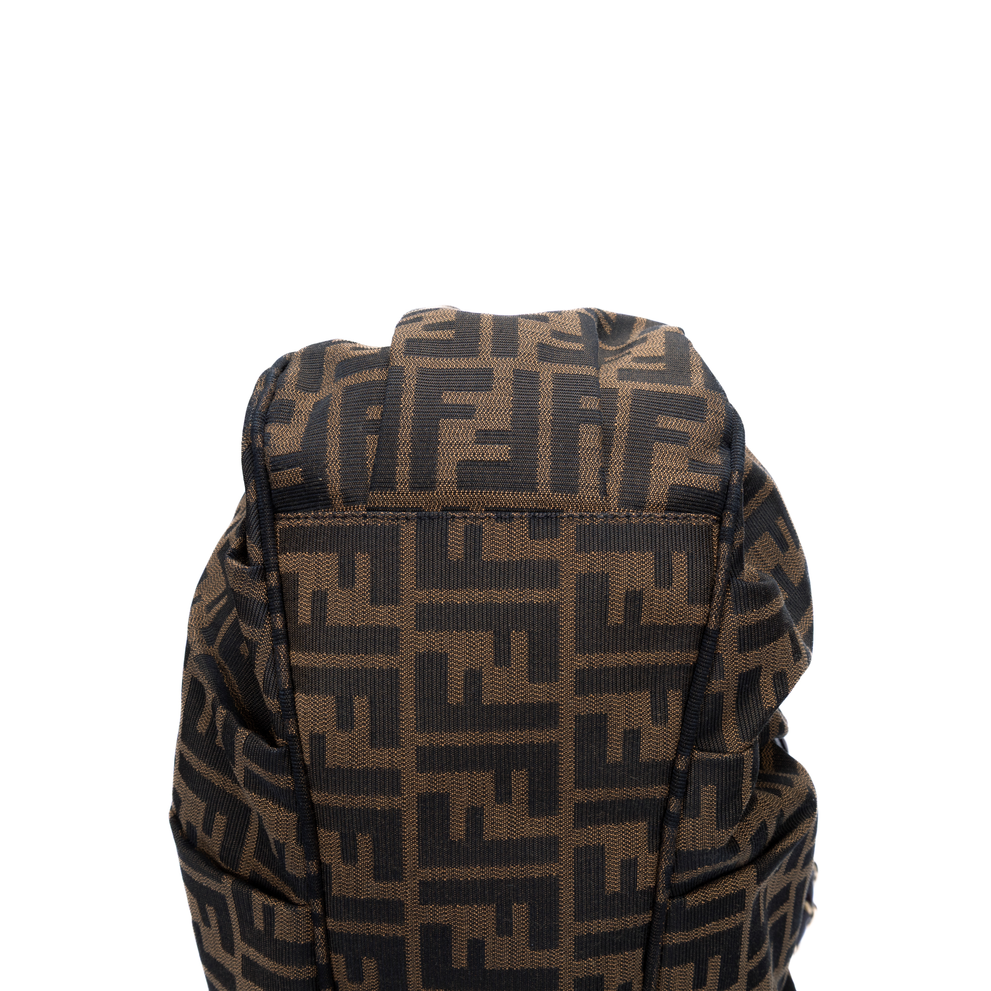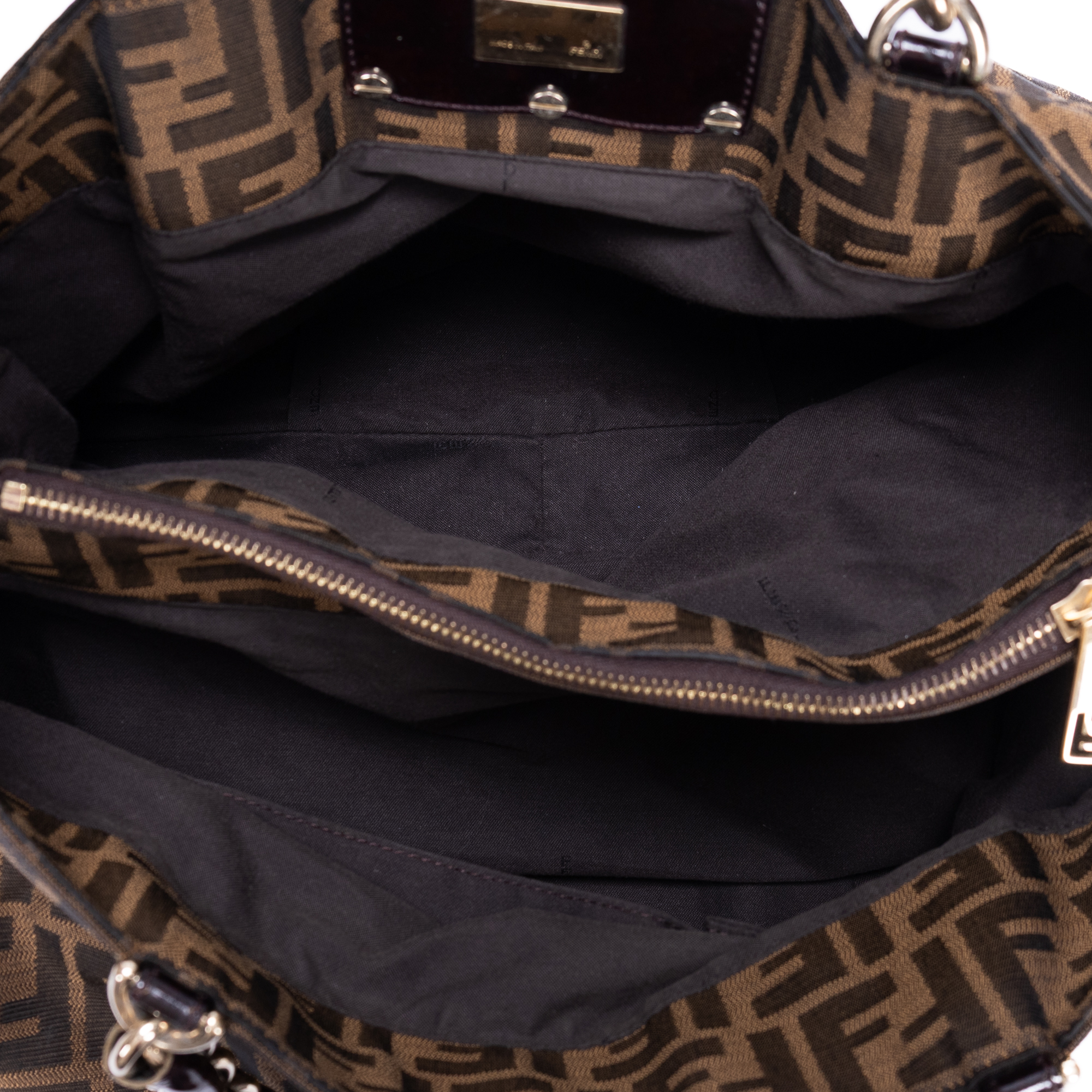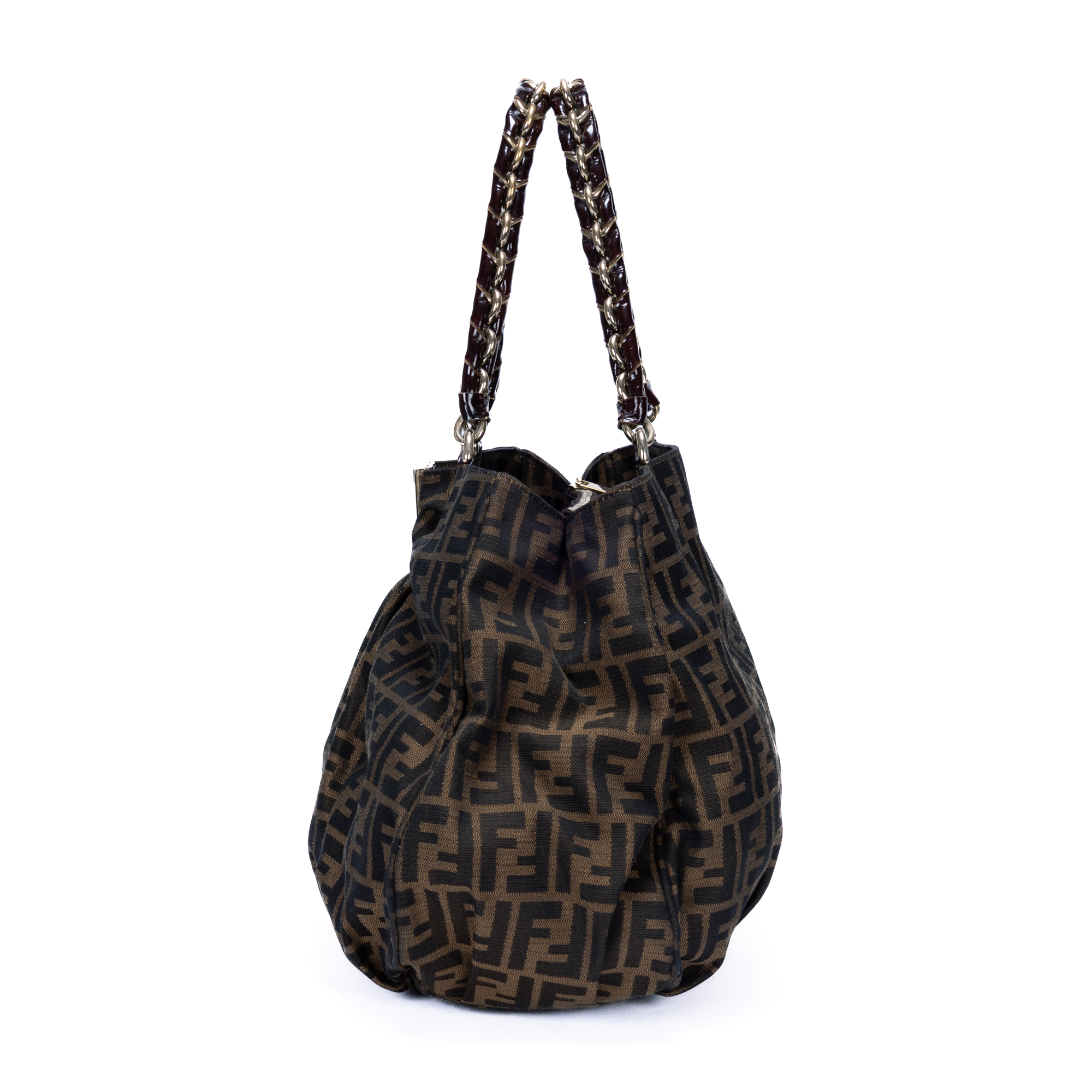 Fendi Shoulder Bag Zucca Mia Tote in Black/Beige Zucca Canvas and Champagne Gold hardware. The product is in Excellent Condition (A).