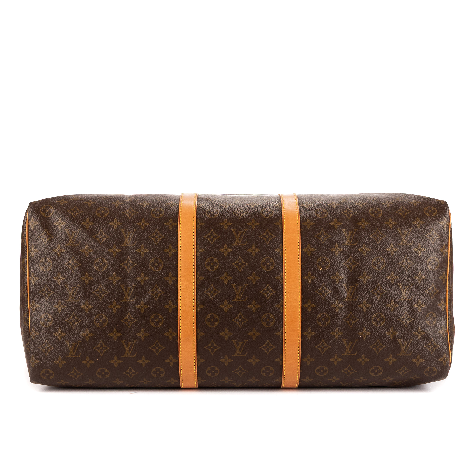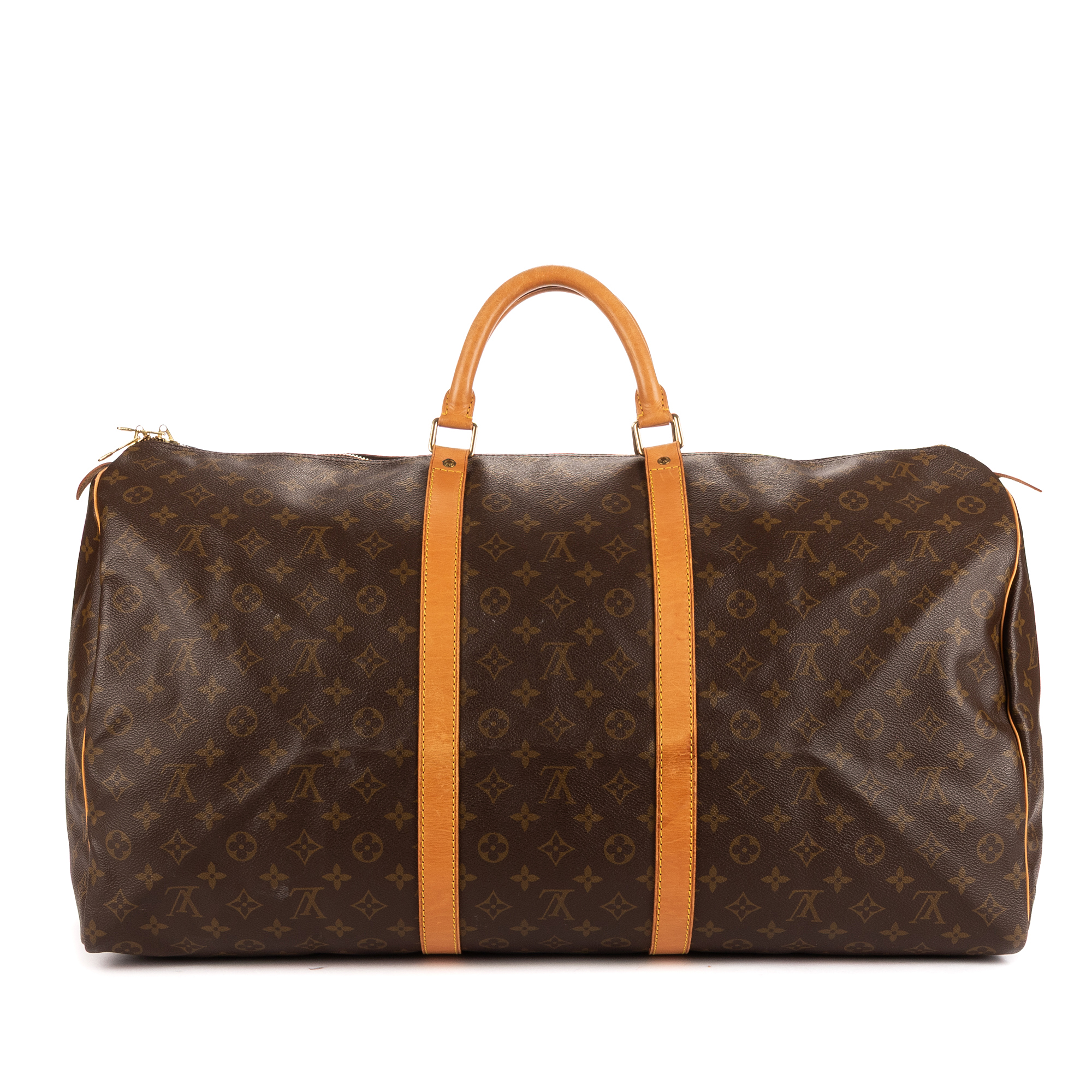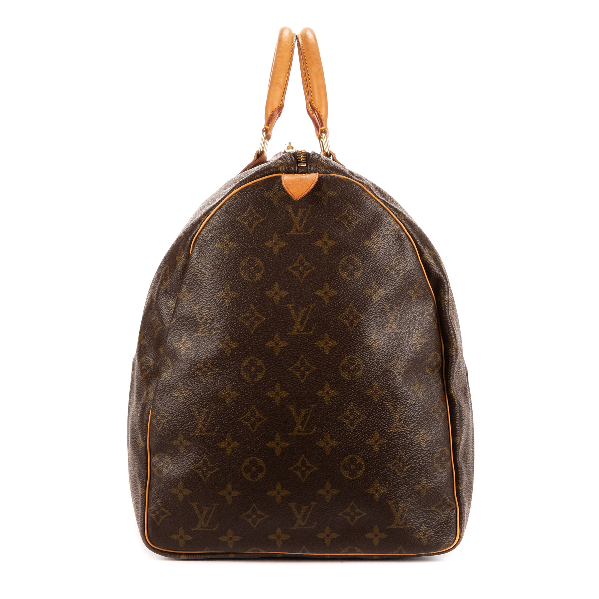 Louis Vuitton Travel Bag Keepall 60 in Brown Monogram Canvas and Golden Brass hardware. The product is in Excellent Condition (A).