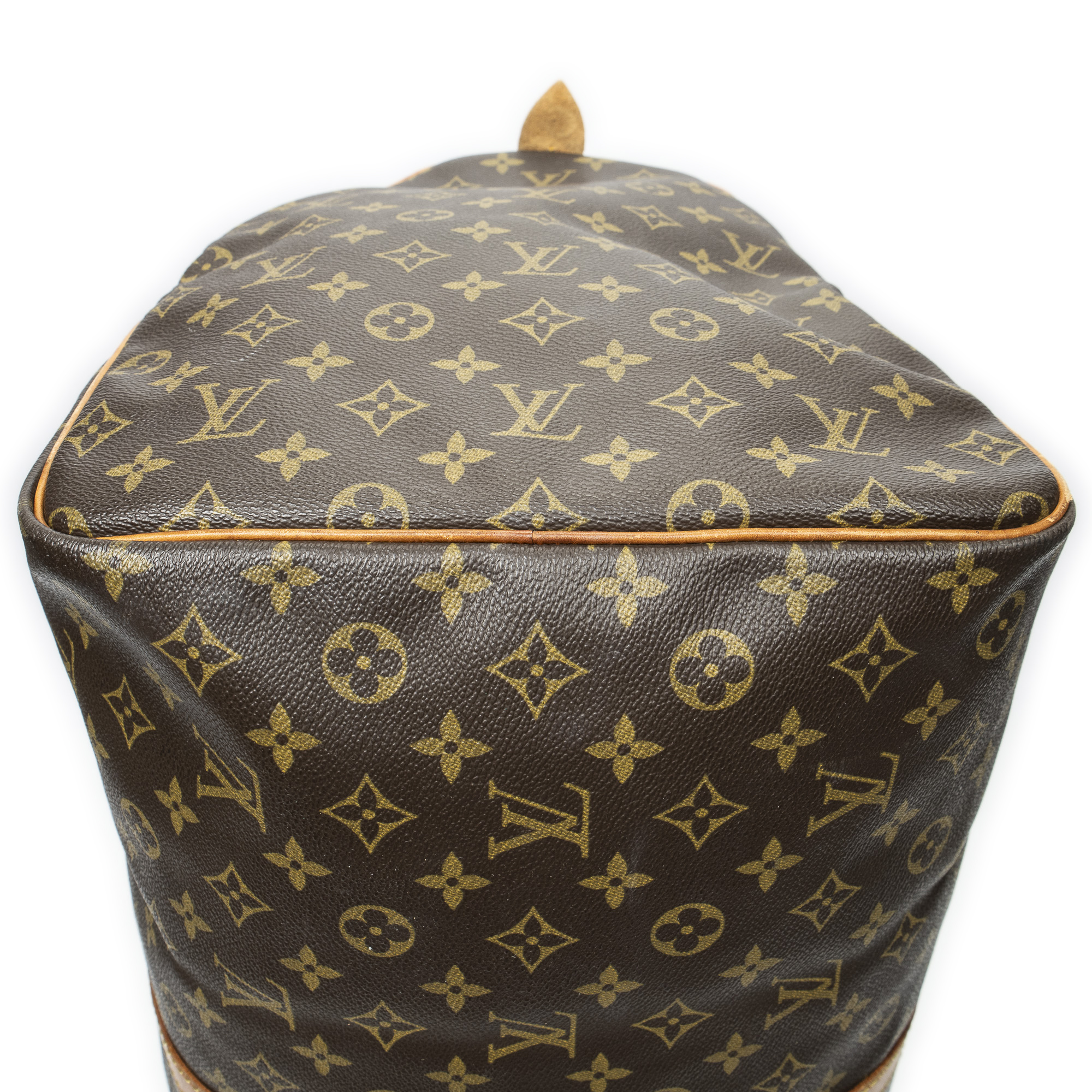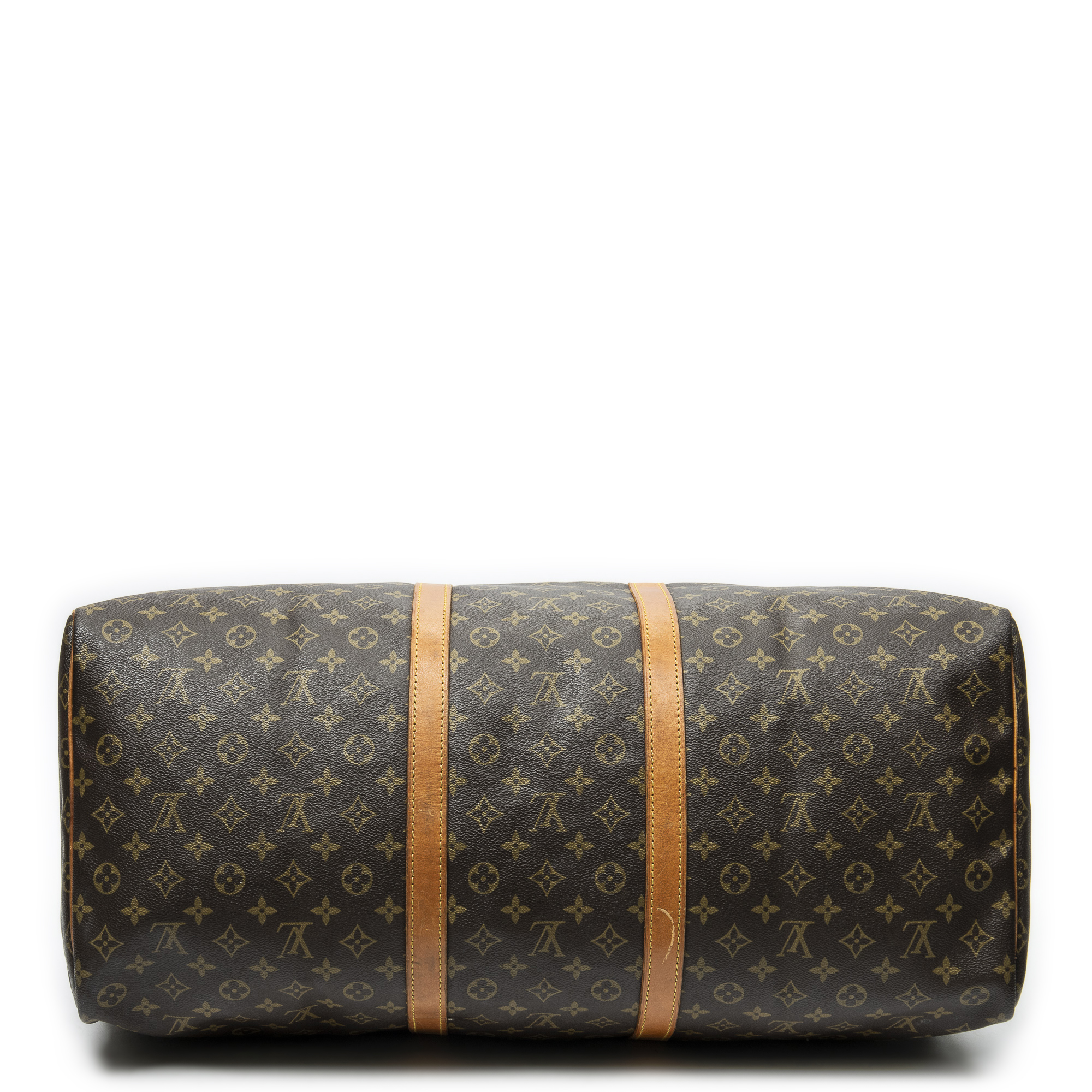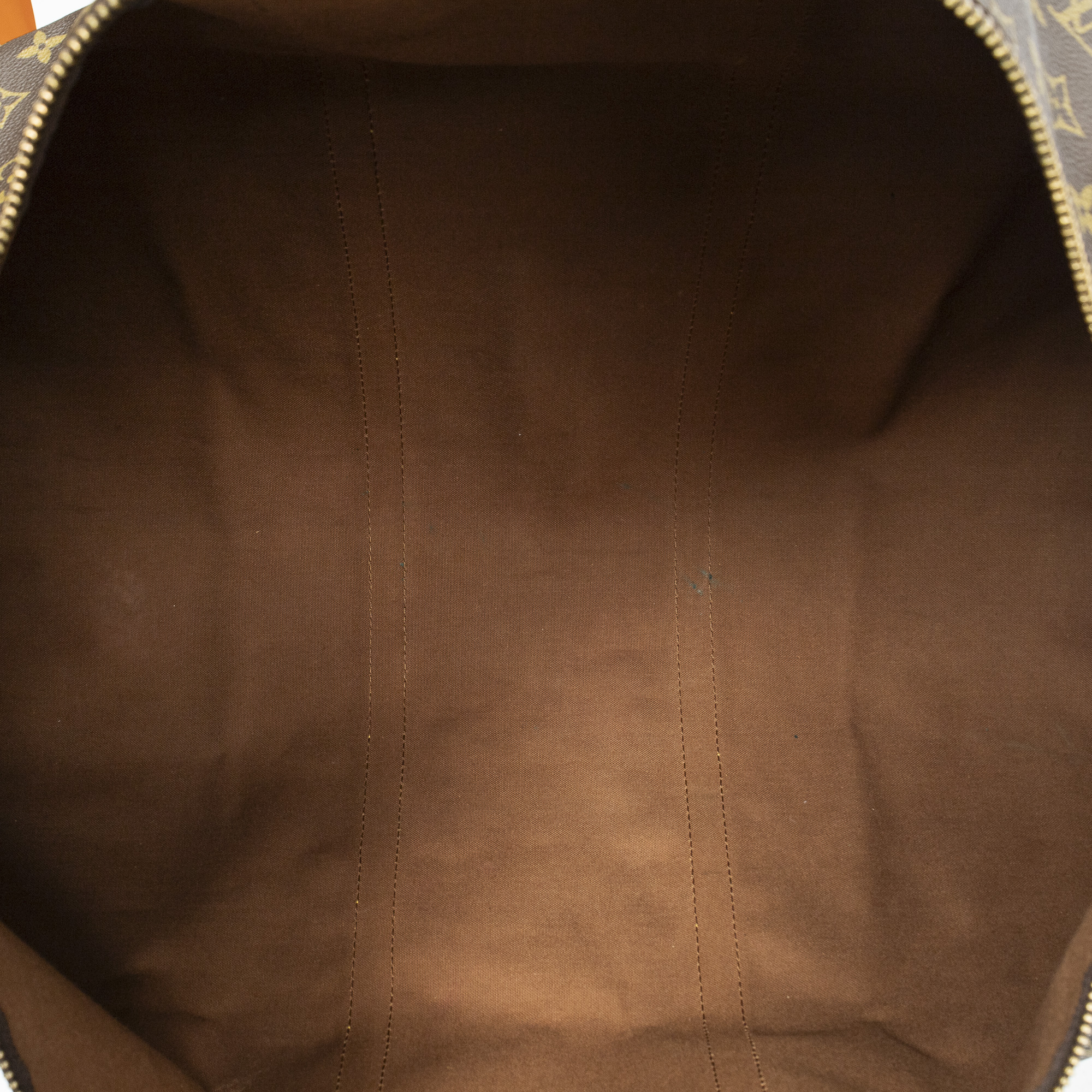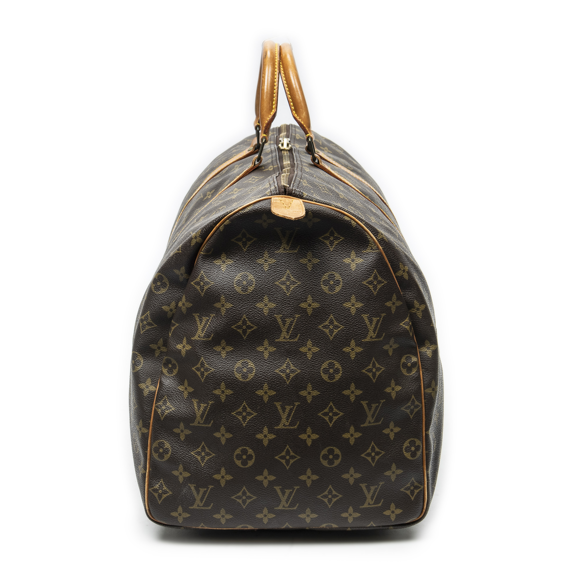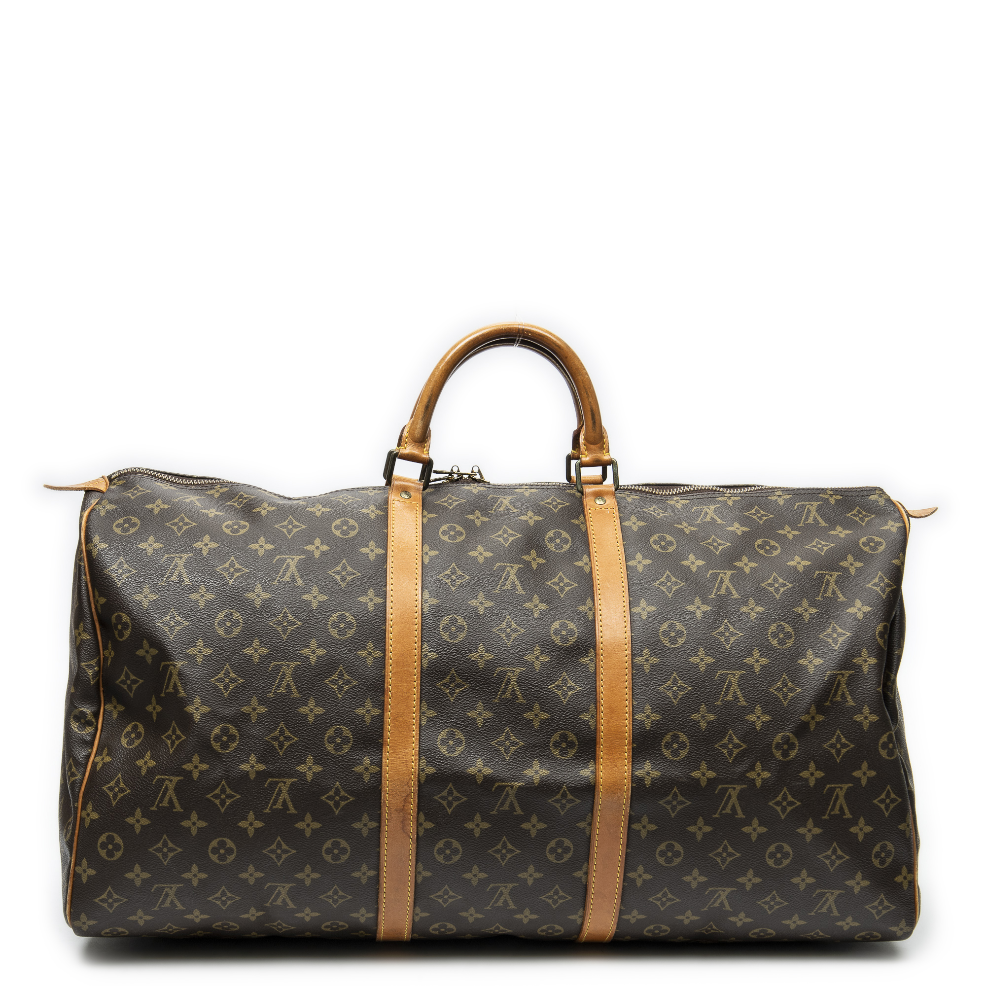 Louis Vuitton Travel Bag Keepall 60 in Brown Monogram Canvas and Golden Brass hardware. The product is in Very Good Condition (AB).