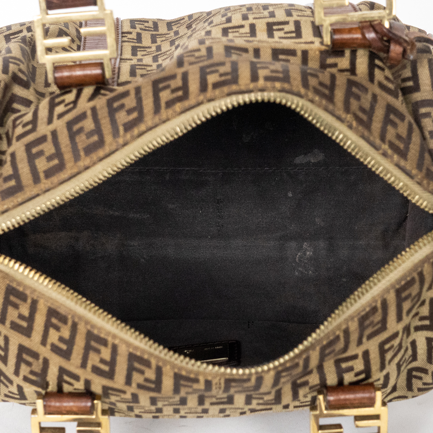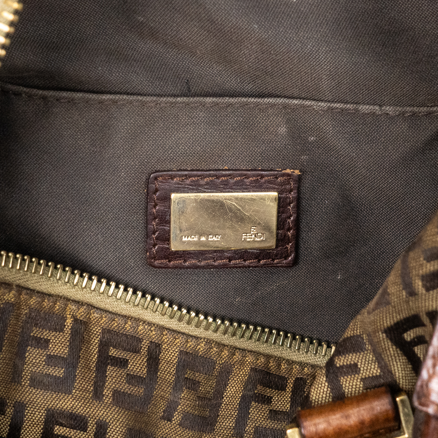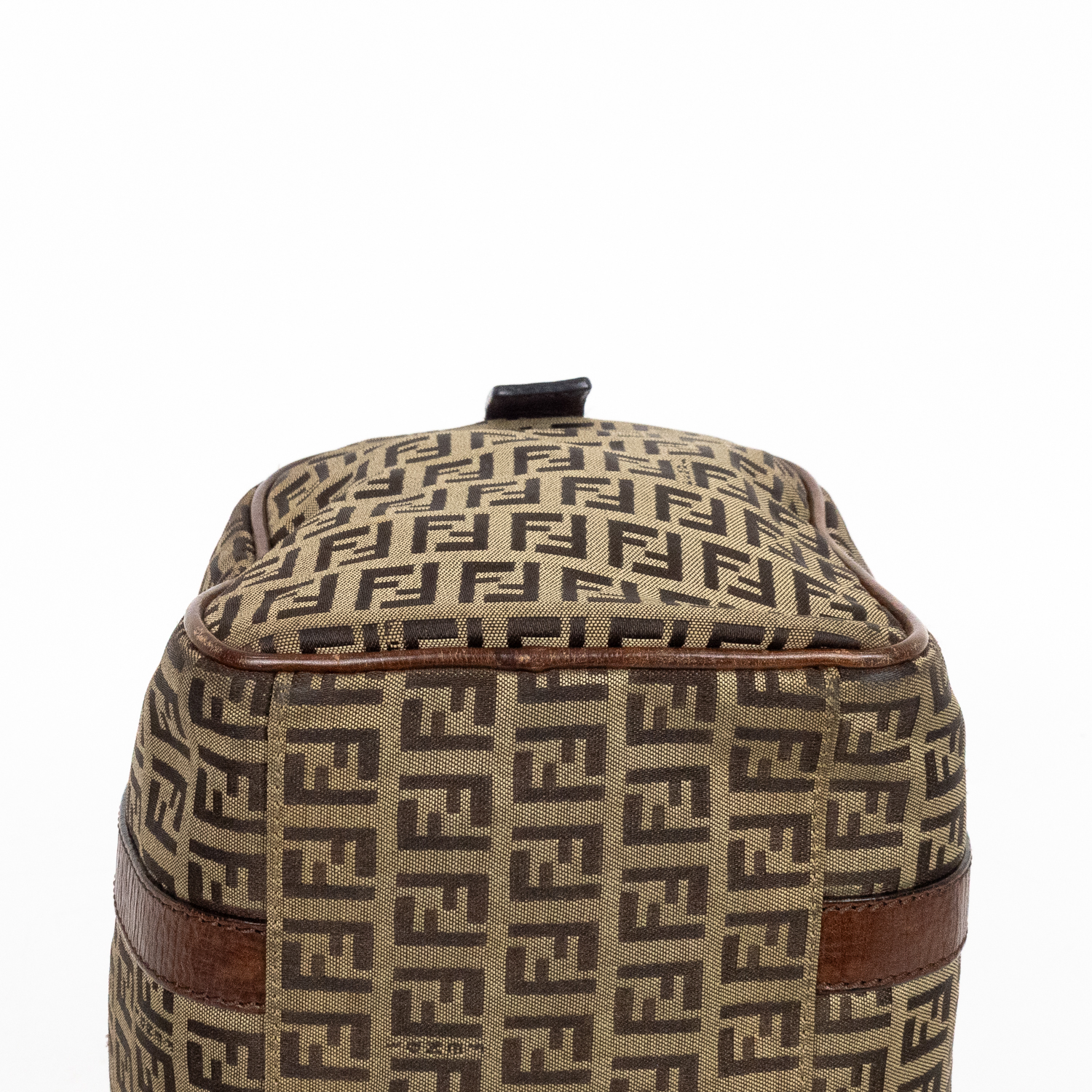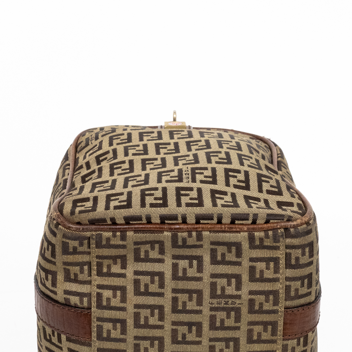Fendi Travel Bag Boston Small in Brown Zucchino Canvas and Gold hardware. The product is in Very Good Condition (AB).